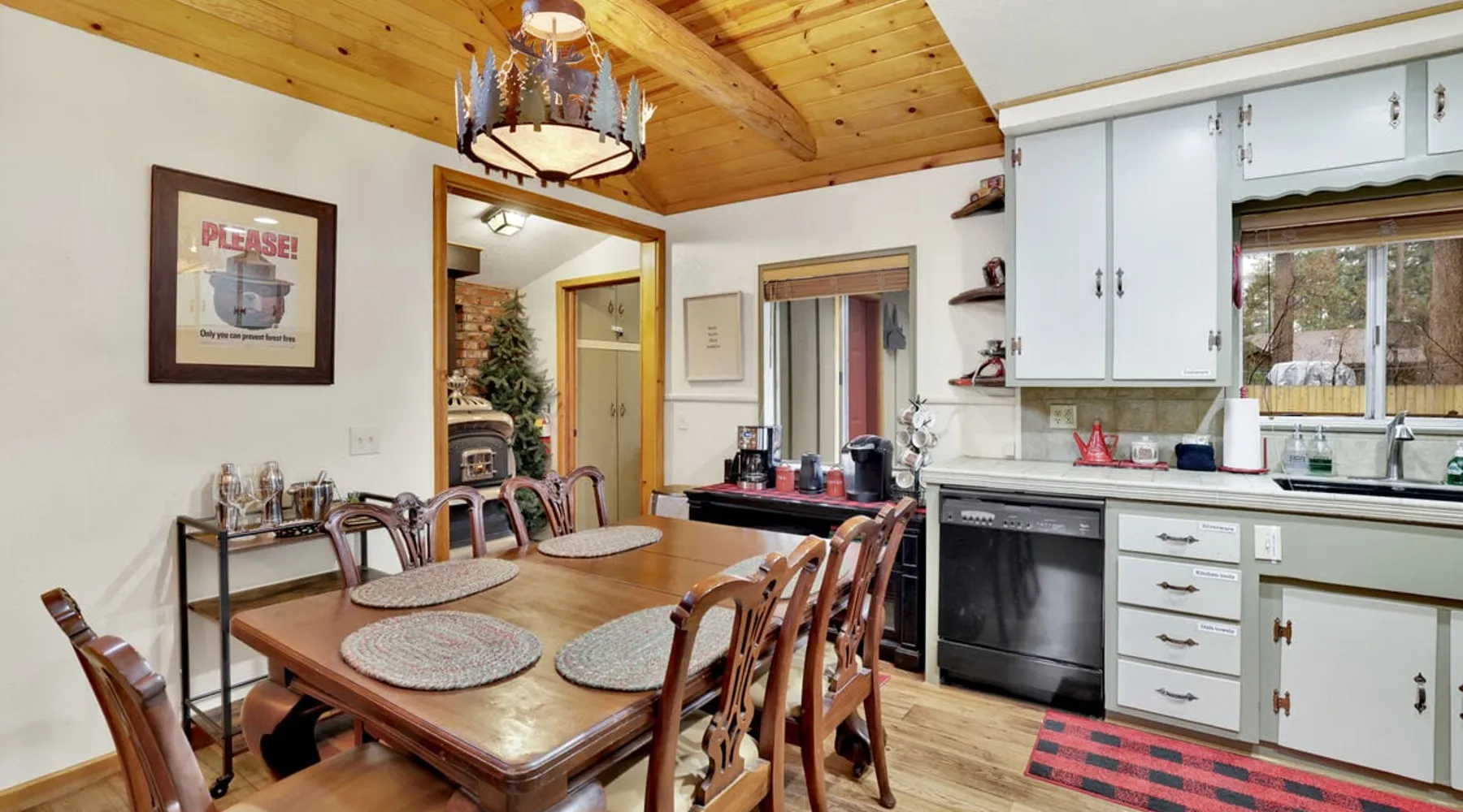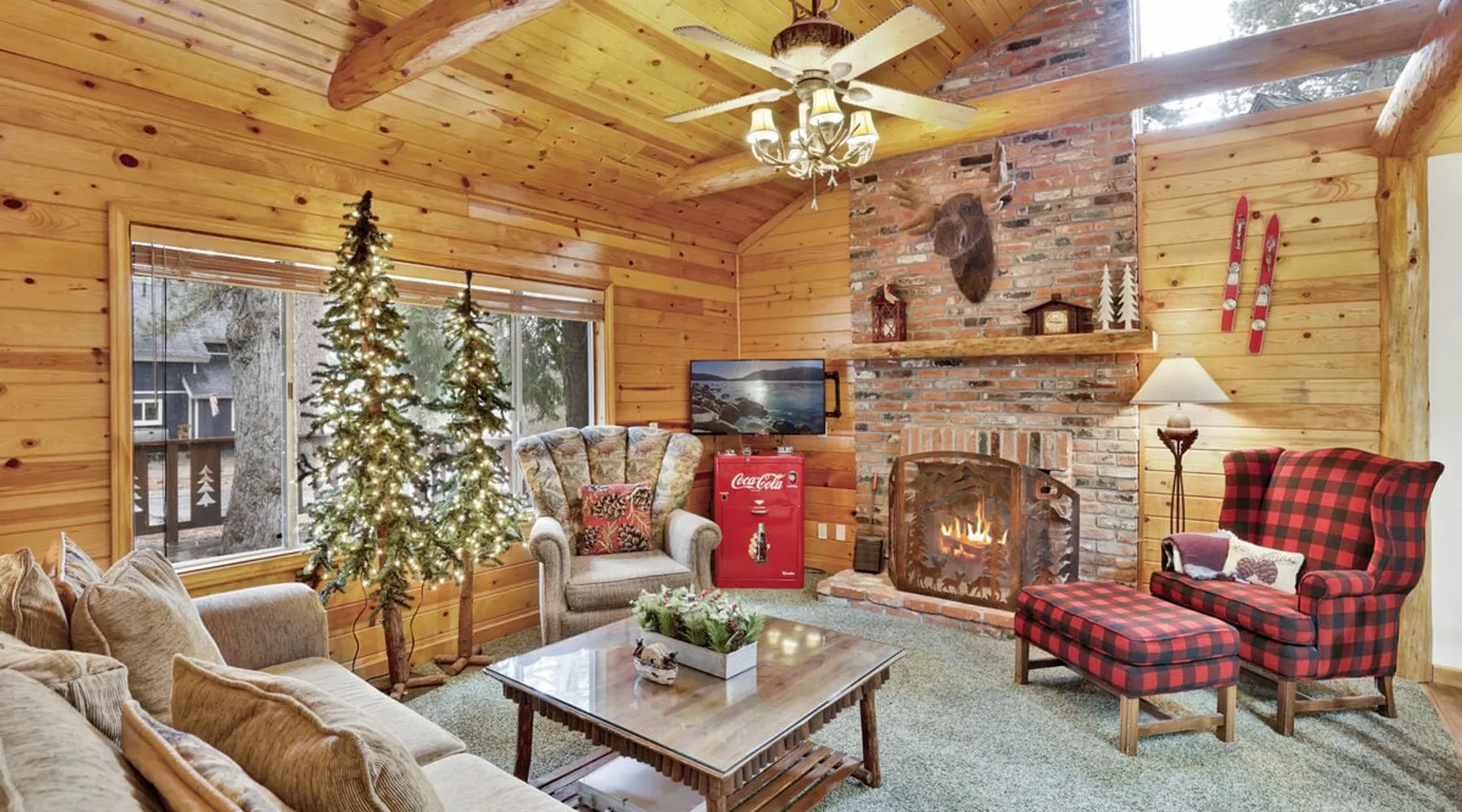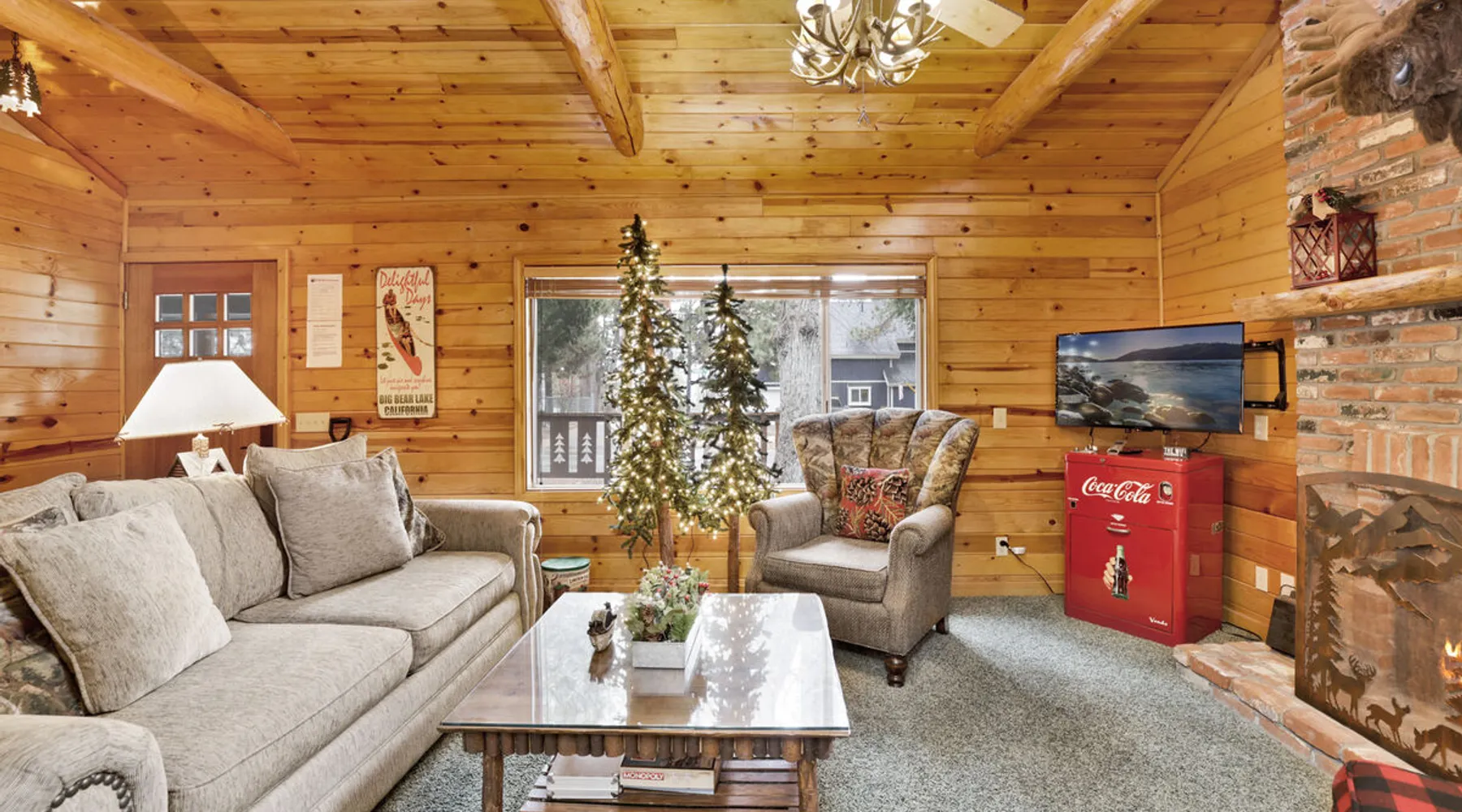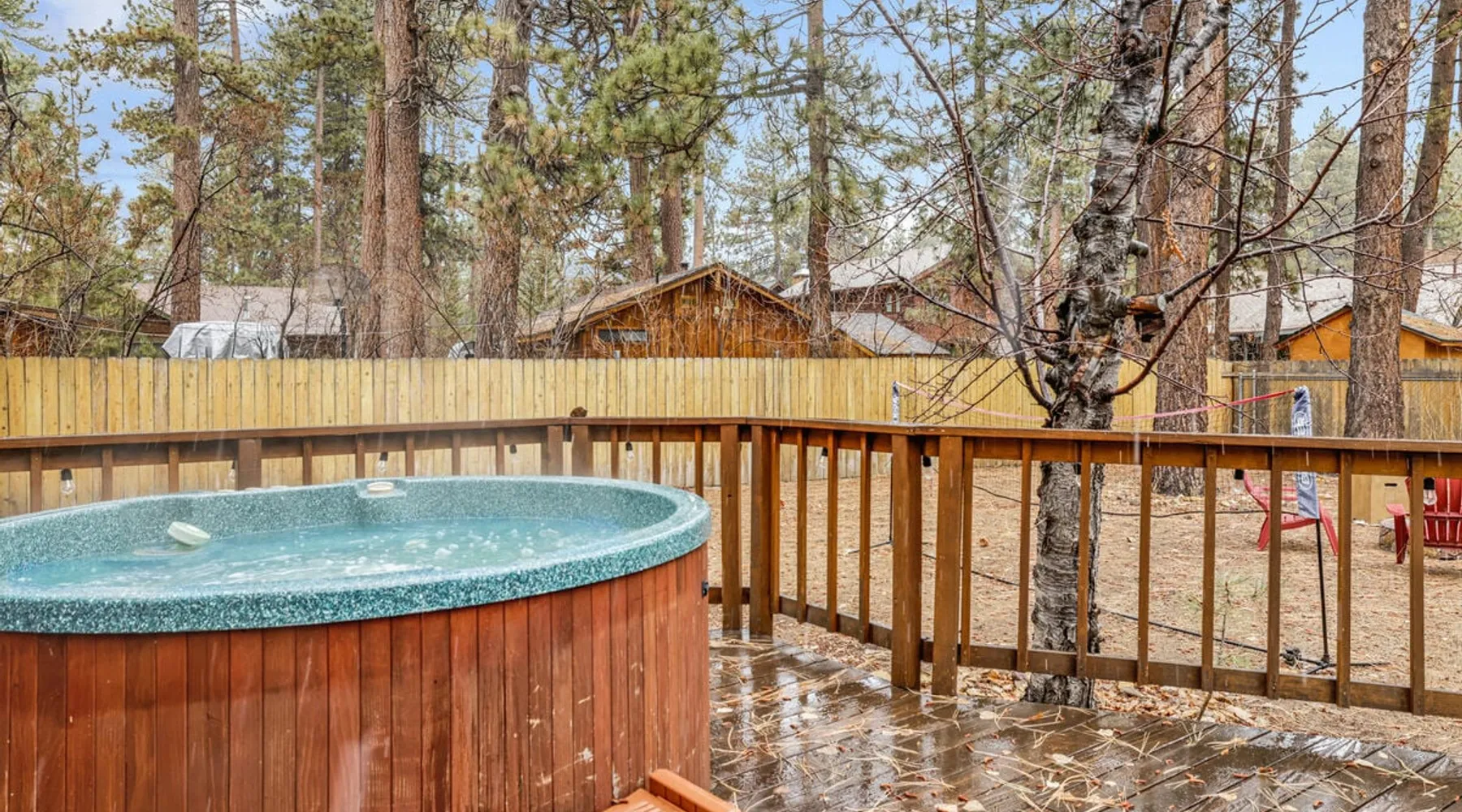 Welcome to Timber Pines Chalet! Relax and enjoy the serenity of Big Bear here within a bright and airy quintessential single level retreat nestled in the heart of Boulder Bay. The spacious treed and fenced property offers privacy and seclusion while still within 10 minutes to local activities and a short walk to the lake or marina. Freshly renovated from head to toe with your vacation stay in mind our tree house chalet offers all that you need for a memorable and relaxing visit to the mountains. The space Timber Pines Chalet | Hot Tub | Walk to Lake/Marina Welcome to Timber Pines Chalet! Relax and enjoy the serenity of Big Bear here within a bright and airy quintessential single level retreat nestled in the heart of Boulder Bay. The spacious treed and fenced property offers privacy and seclusion while still within ten minutes to local activities and a short walk to the lake or marina. Freshly renovated from head to toe with your vacation stay in mind our tree house chalet offers all that you need for a memorable and relaxing visit to the mountains and is topped off by your own private hot tub under the stars. Revel in the ambiance created by the wood beamed vaulted ceilings pairing with beautiful hardwood floors and modern comforts throughout, you will truly feel right at home at this tree house from the moment you enter. Snuggle up together on the couch and watch the snow falling from the massive picture windows or pop on a movie on the flat screen Streaming TV for a movie night at the cabin. The open space floor plan leads seamlessly to the dining area with a decorative vintage wood stove and the equipped chef's kitchen complete with all that you need to prepare home cooked meals here at the cabin including freshly painted cabinets, cookware, utensils, general appliances, and a dishwasher to ensure a breezy cleanup afterwards. Being a single level retreat you will have quick and convenient access to both of your sleeping quarters and modern bathrooms, each offers open windows, new beds, and will be made up for your arrival with warm linens, blankets, and fresh bath towels for your vacation stay. A separate laundry room area offers a great space for storing lake toys or ski gear and offers a washer and dryer for those wet snow clothes or extended visits to the mountain any time of the year and is also your access point to the back deck and yard where you will be sure to spend your evenings relaxing under soaring pine trees as you soak your muscles in your private hot tub as you look for shooting stars. Timber Pines Chalet has it all- oozing charm and seamlessly blending indoor and outdoor living in the mountains all while sitting in an unbeatable central location. Come see your new home away from home at Big Bear today! Sleeping Arrangements: Bedroom 1: Queen Bed Bedroom 2: Queen Bed Bathroom Arrangements: Hallway Full Bath Hallway 3/4 Bath (Shower Only) -Sleeps 4 -2 Cars Driveway Parking -NO PETS ALLOWED- Fines Imposed For Pets Found On Premises -1,009 Total Square Feet Other things to note Big Bear Vacations & Cabins House Rules and Policy Information *Please read all rules and policies completely- Your booking/request to book constitutes your understanding and agreement of the below Policies & Information* **Reservation Holder Must Be 21+** **Electronic Rental Agreement & Good Neighbor Policy Required** **Guests must provide ID for Cabin Access** Our Big Bear Vacations team is looking forward to hosting you here in the mountains! We are your longest standing local vacation experts with years of dedicated experience and knowledge brought forth within our exceptional customer service and support staff to ensure a 5 star experience for every guest. Our team offers 24/7 support along with local on site offices and experience packages. Big Bear GOOD NEIGHBOR POLICY is enforced at all times during your stay and includes removing trash from the property to local trash sites, washing dishes to alleviate wild animals being attracted to neighborhoods. NO PARTIES OR EVENTS, No Over Occupancy, No Loud Music, and No Street Parking is allowed in Big Bear homes at any time. This policy along with a rental agreement will be emailed to you immediately after booking and is REQUIRED by the City of Big Bear Lake for all rentals in Big Bear. If found in violation of these policies guests will be visited by staff and Code Enforcement officers who may or may not issue fines or evictions to the violating party members. No Smoking is allowed in any Big Bear homes. Check-in time is 4:00 pm Check-out time is 10:00 am There is no early arrival or later departure availability during peak season and holidays. Contact our office the morning of arrival or departure to confirm early arrival or later departure availability for your stay. (Fee Applies) Winter Snow & Parking- During winter months the driveways, steps, porches, decks, and other outdoor areas at your property may not be accessible due to snow or ice. Our teams are on fixed routes for snow and work alongside city and county resources to clear roads, driveways, walkways etc. Guests should be prepared in winter months to shovel themselves in or out of the property and off of the street in these snowstorm events. As there is no street parking allowed in Big Bear it is extremely important that guests make every attempt to get vehicles off the street for the snowplows. California Law requires that vehicles traveling to Big Bear from November thru April have snow chains in their vehicles however we also recommend proper footwear, an emergency kit, and an extra snow shovel. Pet Policy- Pet Friendly Homes ONLY Pet Fees $35/Pet Nightly Fee + Tax Pet Policy ~All dogs on the property must be registered and acknowledges with the front desk ~Dogs may not be left unattended in the home at any time ~Pet owners are responsible for cleanup of pets or are subject to an added cleaning fee Service Animals Are Welcome! California Penal Code: (a) Any person who knowingly and f