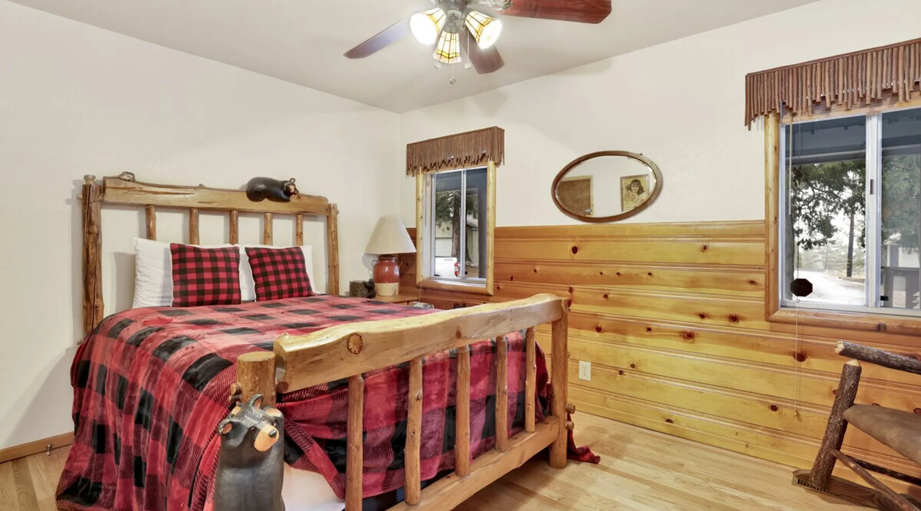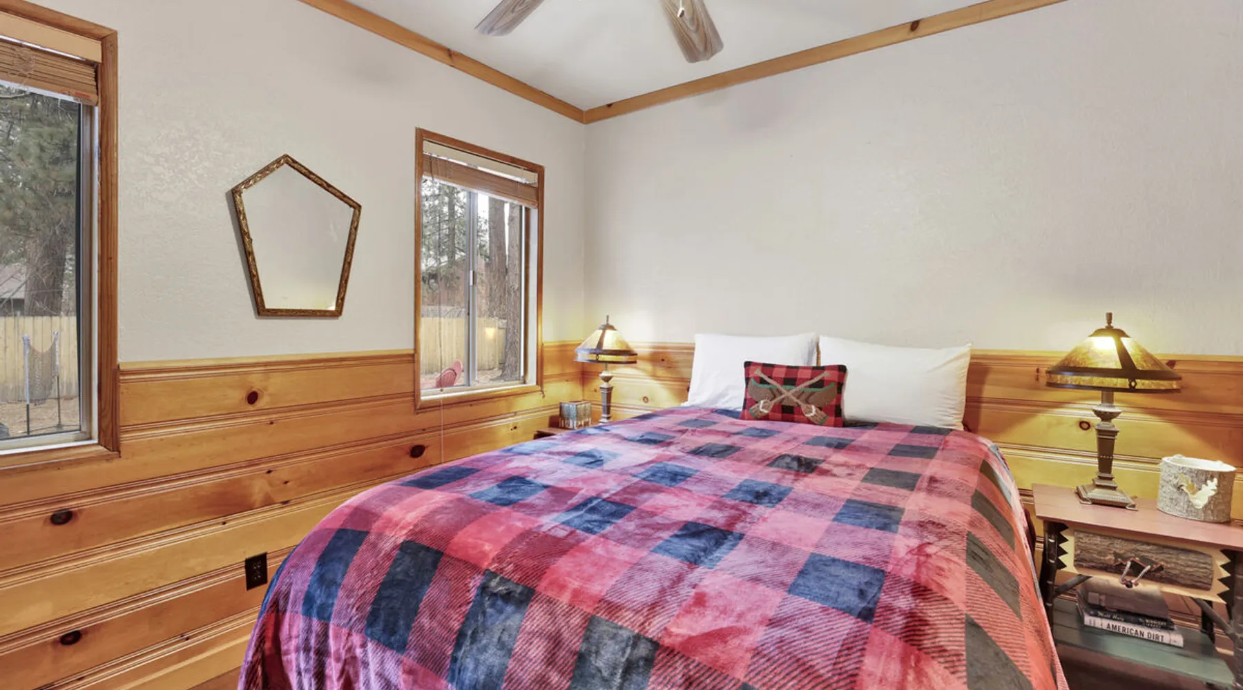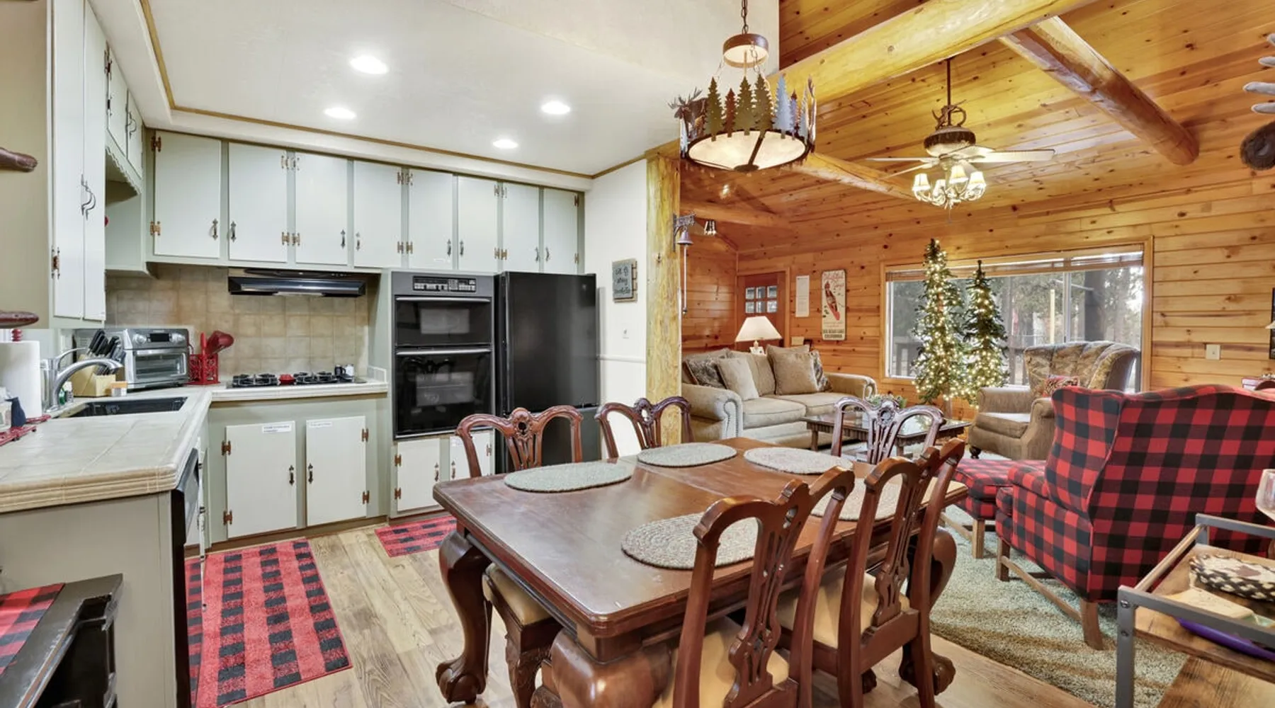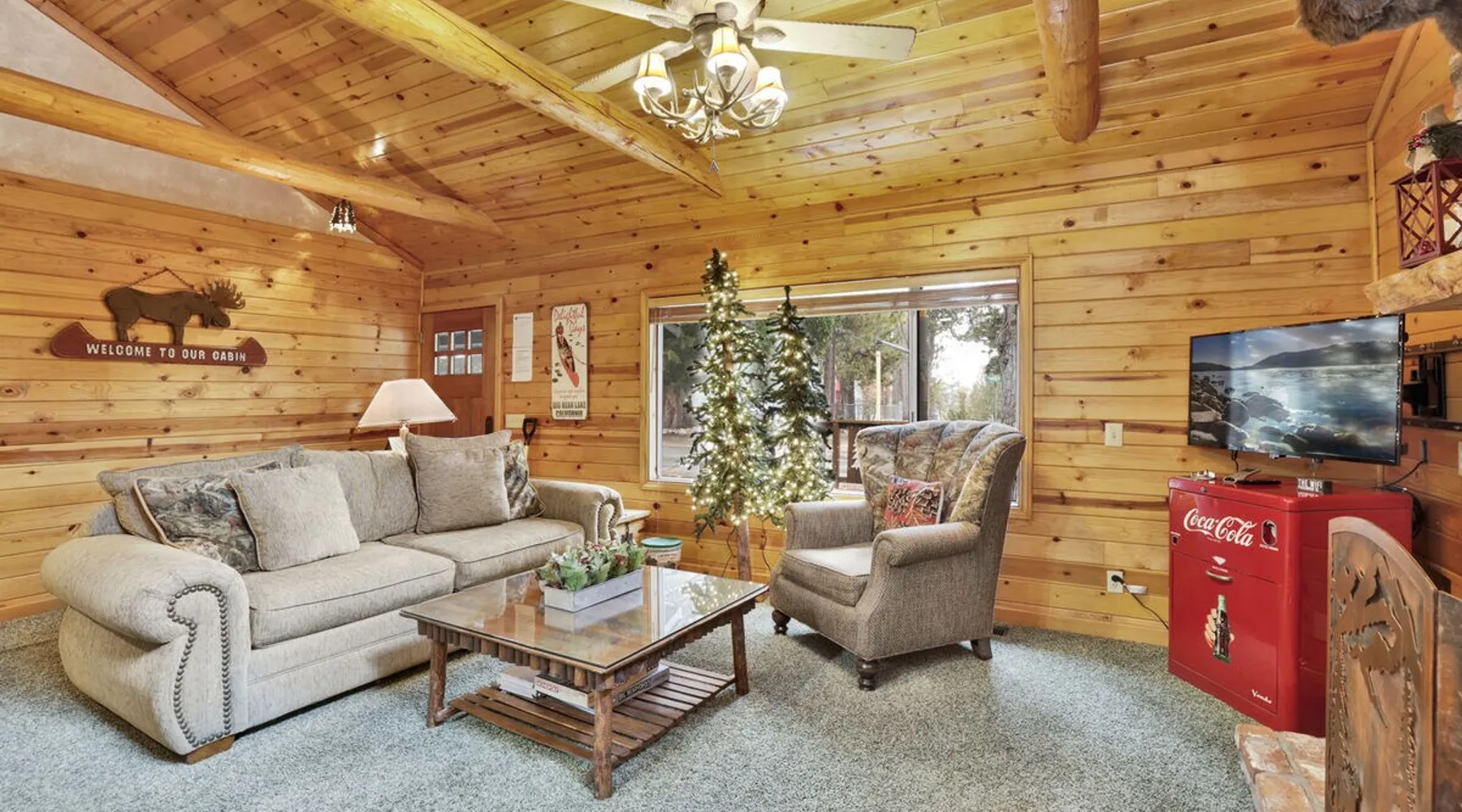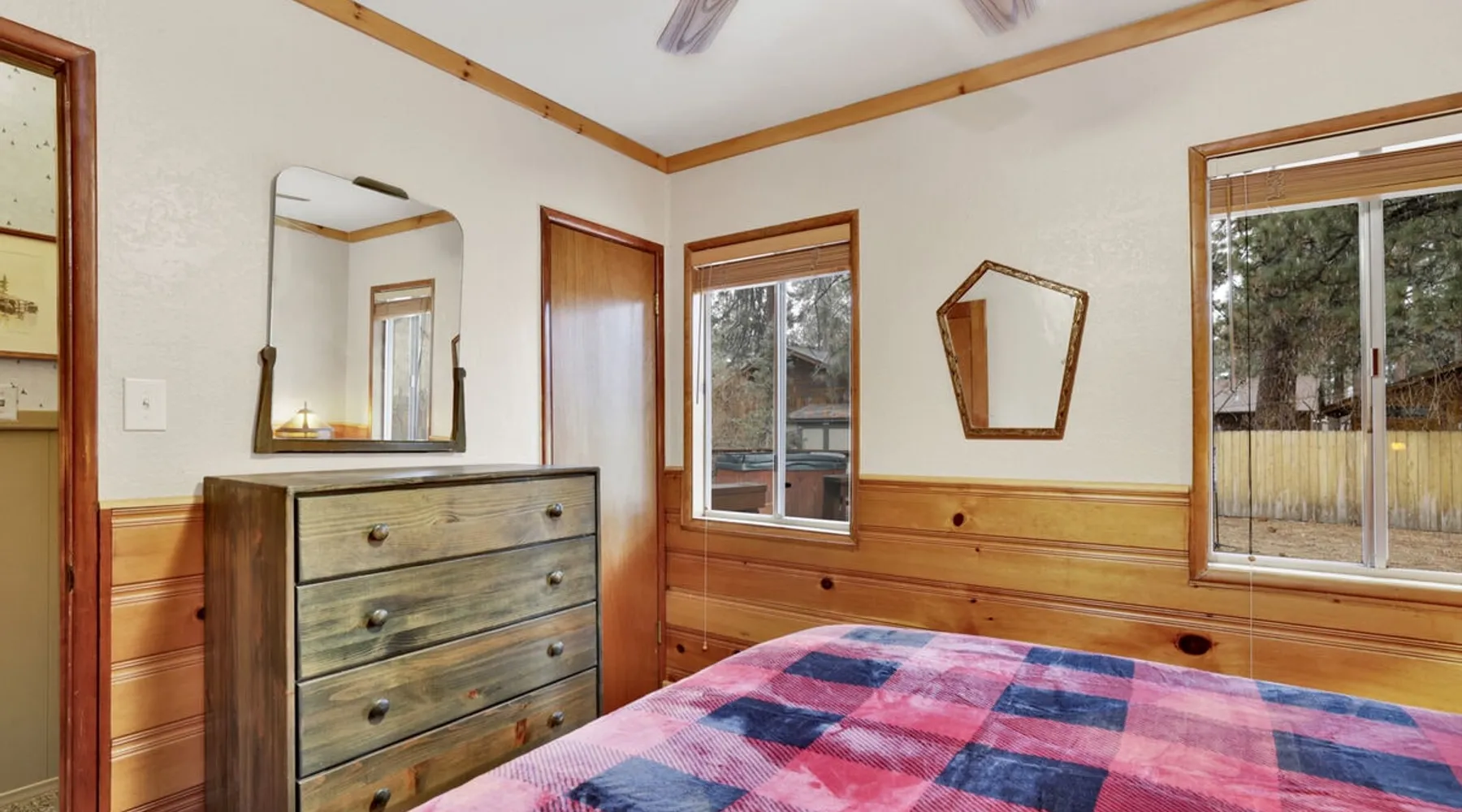 Welcome to Timber Pines Chalet! Relax and enjoy the serenity of Big Bear here within a bright and airy quintessential single level retreat nestled in the heart of Boulder Bay. The spacious treed and fenced property offers privacy and seclusion while still within 10 minutes to local activities and a short walk to the lake or marina. Freshly renovated from head to toe with your vacation stay in mind our tree house chalet offers all that you need for a memorable and relaxing visit to the mountains. The space Timber Pines Chalet | Hot Tub | Walk to Lake/Marina Welcome to Timber Pines Chalet! Relax and enjoy the serenity of Big Bear here within a bright and airy quintessential single level retreat nestled in the heart of Boulder Bay. The spacious treed and fenced property offers privacy and seclusion while still within ten minutes to local activities and a short walk to the lake or marina. Freshly renovated from head to toe with your vacation stay in mind our tree house chalet offers all that you need for a memorable and relaxing visit to the mountains and is topped off by your own private hot tub under the stars. Revel in the ambiance created by the wood beamed vaulted ceilings pairing with beautiful hardwood floors and modern comforts throughout, you will truly feel right at home at this tree house from the moment you enter. Snuggle up together on the couch and watch the snow falling from the massive picture windows or pop on a movie on the flat screen Streaming TV for a movie night at the cabin. The open space floor plan leads seamlessly to the dining area with a decorative vintage wood stove and the equipped chef's kitchen complete with all that you need to prepare home cooked meals here at the cabin including freshly painted cabinets, cookware, utensils, general appliances, and a dishwasher to ensure a breezy cleanup afterwards. Being a single level retreat you will have quick and convenient access to both of your sleeping quarters and modern bathrooms, each offers open windows, new beds, and will be made up for your arrival with warm linens, blankets, and fresh bath towels for your vacation stay. A separate laundry room area offers a great space for storing lake toys or ski gear and offers a washer and dryer for those wet snow clothes or extended visits to the mountain any time of the year and is also your access point to the back deck and yard where you will be sure to spend your evenings relaxing under soaring pine trees as you soak your muscles in your private hot tub as you look for shooting stars. Timber Pines Chalet has it all- oozing charm and seamlessly blending indoor and outdoor living in the mountains all while sitting in an unbeatable central location. Come see your new home away from home at Big Bear today! Sleeping Arrangements: Bedroom 1: Queen Bed Bedroom 2: Queen Bed Bathroom Arrangements: Hallway Full Bath Hallway 3/4 Bath (Shower Only) -Sleeps 4 -2 Cars Driveway Parking -NO PETS ALLOWED- Fines Imposed For Pets Found On Premises -1,009 Total Square Feet Other things to note Big Bear Vacations & Cabins House Rules and Policy Information *Please read all rules and policies completely- Your booking/request to book constitutes your understanding and agreement of the below Policies & Information* **Reservation Holder Must Be 21+** **Electronic Rental Agreement & Good Neighbor Policy Required** **Guests must provide ID for Cabin Access** Our Big Bear Vacations team is looking forward to hosting you here in the mountains! We are your longest standing local vacation experts with years of dedicated experience and knowledge brought forth within our exceptional customer service and support staff to ensure a 5 star experience for every guest. Our team offers 24/7 support along with local on site offices and experience packages. Big Bear GOOD NEIGHBOR POLICY is enforced at all times during your stay and includes removing trash from the property to local trash sites, washing dishes to alleviate wild animals being attracted to neighborhoods. NO PARTIES OR EVENTS, No Over Occupancy, No Loud Music, and No Street Parking is allowed in Big Bear homes at any time. This policy along with a rental agreement will be emailed to you immediately after booking and is REQUIRED by the City of Big Bear Lake for all rentals in Big Bear. If found in violation of these policies guests will be visited by staff and Code Enforcement officers who may or may not issue fines or evictions to the violating party members. No Smoking is allowed in any Big Bear homes. Check-in time is 4:00 pm Check-out time is 10:00 am There is no early arrival or later departure availability during peak season and holidays. Contact our office the morning of arrival or departure to confirm early arrival or later departure availability for your stay. (Fee Applies) Winter Snow & Parking- During winter months the driveways, steps, porches, decks, and other outdoor areas at your property may not be accessible due to snow or ice. Our teams are on fixed routes for snow and work alongside city and county resources to clear roads, driveways, walkways etc. Guests should be prepared in winter months to shovel themselves in or out of the property and off of the street in these snowstorm events. As there is no street parking allowed in Big Bear it is extremely important that guests make every attempt to get vehicles off the street for the snowplows. California Law requires that vehicles traveling to Big Bear from November thru April have snow chains in their vehicles however we also recommend proper footwear, an emergency kit, and an extra snow shovel. Pet Policy- Pet Friendly Homes ONLY Pet Fees $35/Pet Nightly Fee + Tax Pet Policy ~All dogs on the property must be registered and acknowledges with the front desk ~Dogs may not be left unattended in the home at any time ~Pet owners are responsible for cleanup of pets or are subject to an added cleaning fee Service Animals Are Welcome! California Penal Code: (a) Any person who knowingly and f