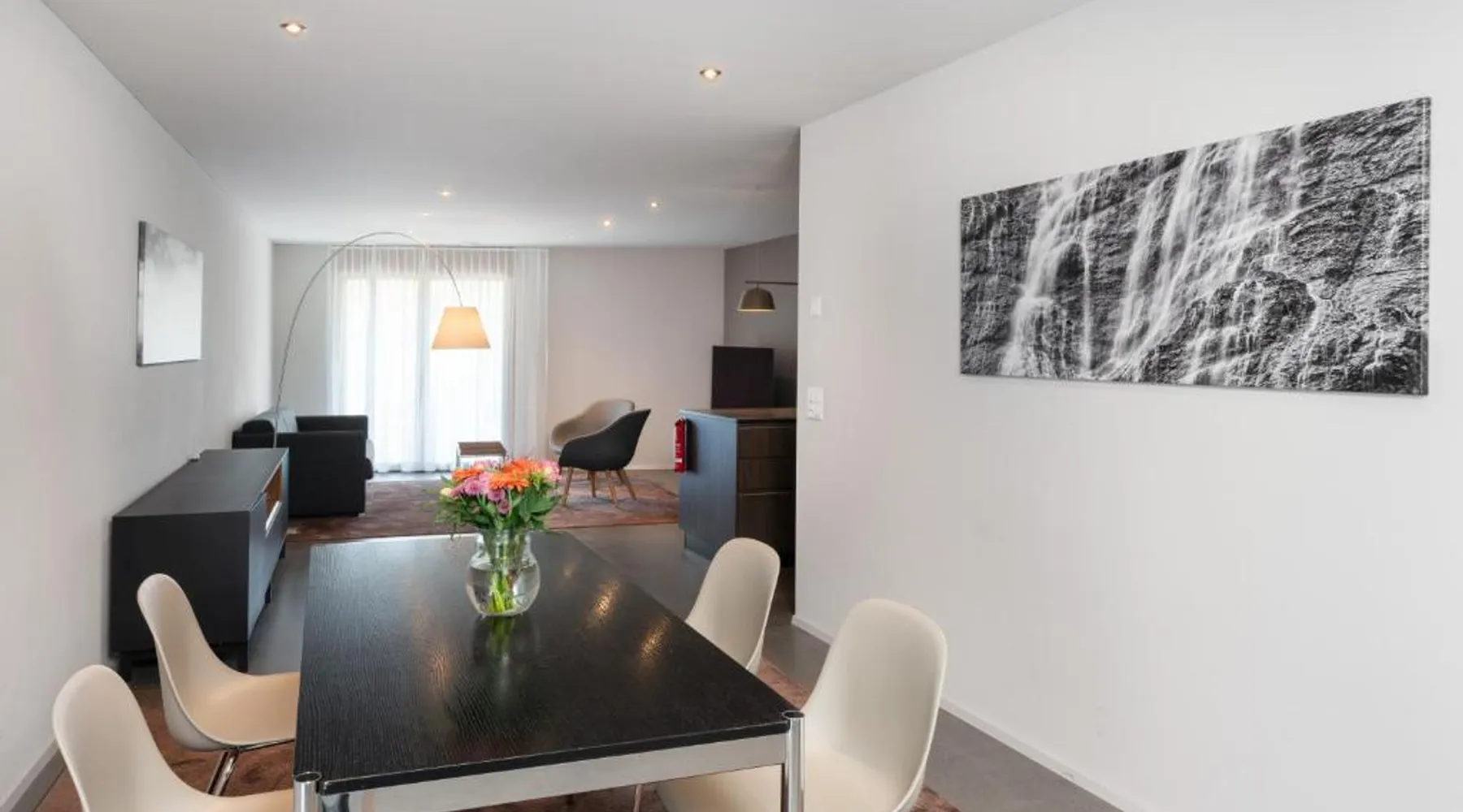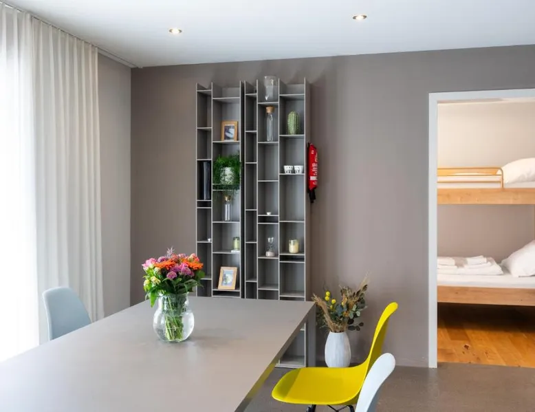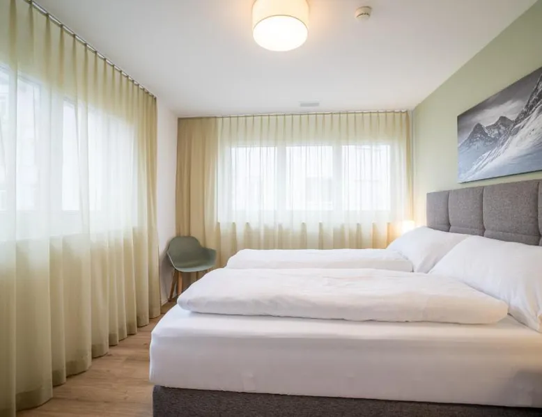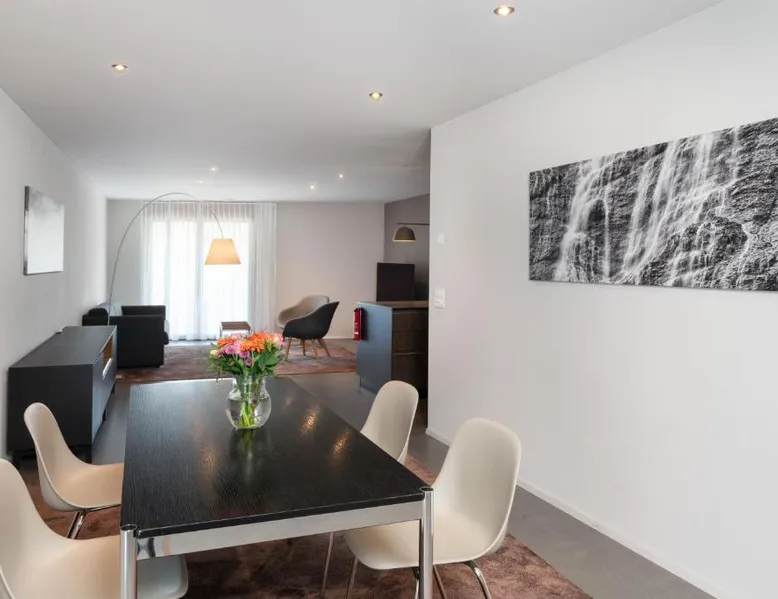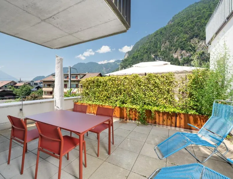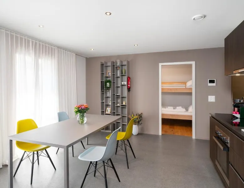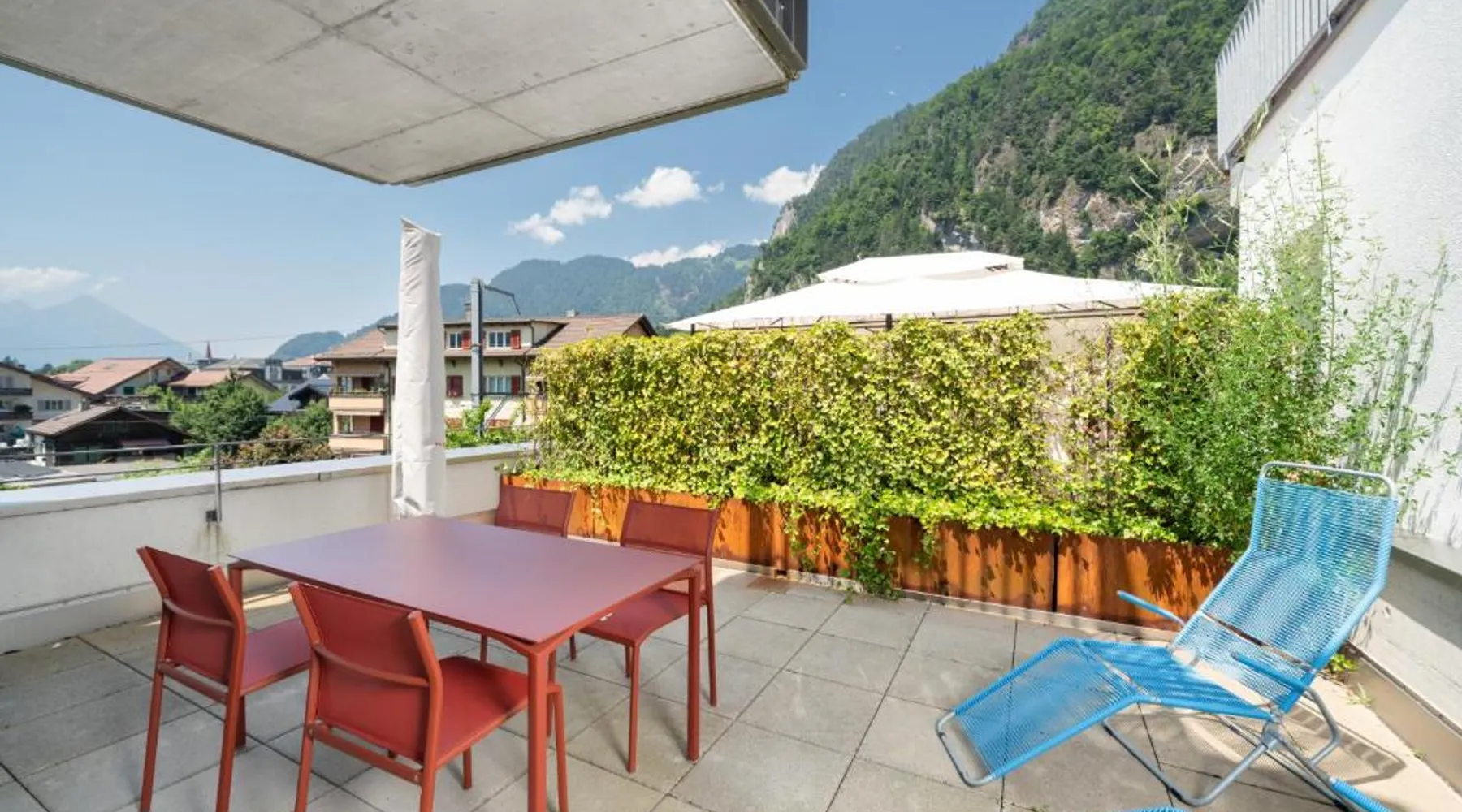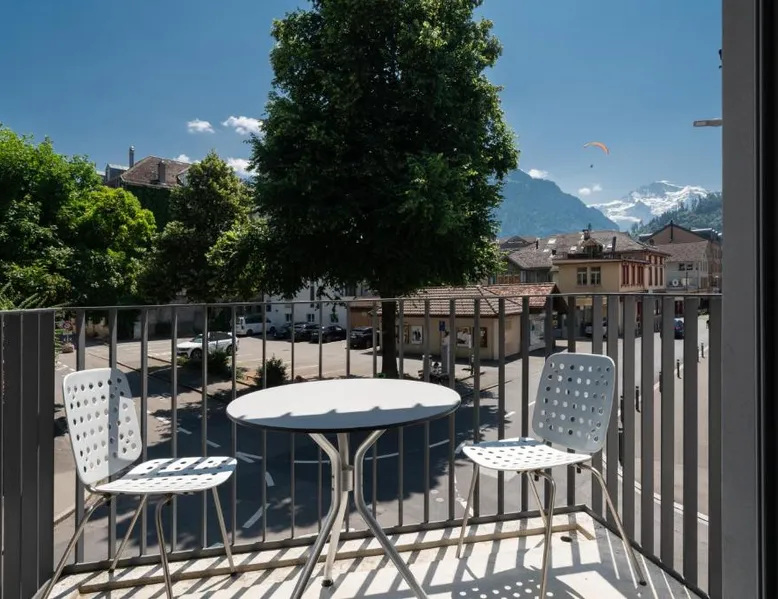 Prime Location: Modern City Apartments in Interlaken offers a central position with Grindelwald Terminal 12 mi away and Giessbachfälle 14 mi from the property. Zurich Airport is 82 mi distant. Comfortable Accommodations: Each apartment features a private bathroom, balcony with mountain views, and a fully equipped kitchen. Additional amenities include a washing machine, dishwasher, and free WiFi. Convenient Facilities: Guests benefit from private check-in and check-out, a casino, elevator, outdoor seating area, family rooms, and a tour desk. Paid off-site private parking is available. Local Attractions: Nearby activities include skiing, hiking, cycling, ice-skating, winter sports, and scuba diving. Points of interest such as Grindelwald Terminal and Giessbachfälle are easily accessible. Boasting a private entrance, this spacious apartment also includes 1 living room, 2 separate bedrooms and 1 bathroom with a walk-in shower. In the kitchen, guests will find a stovetop, a refrigerator, a dishwasher and kitchenware. The apartment offers a washing machine, soundproof walls, a coffee machine, a flat-screen TV with cable channels, as well as mountain views. The unit has 2 beds.