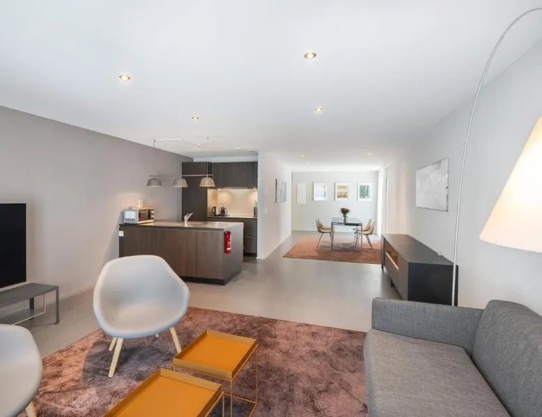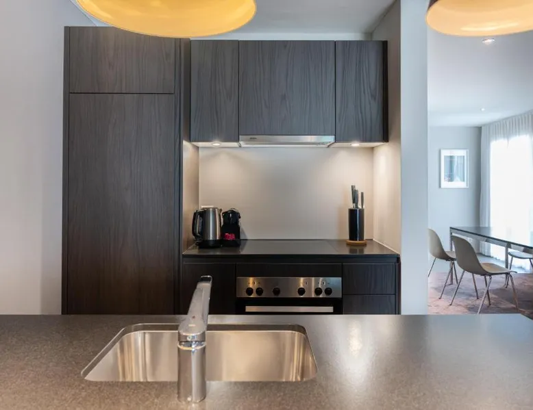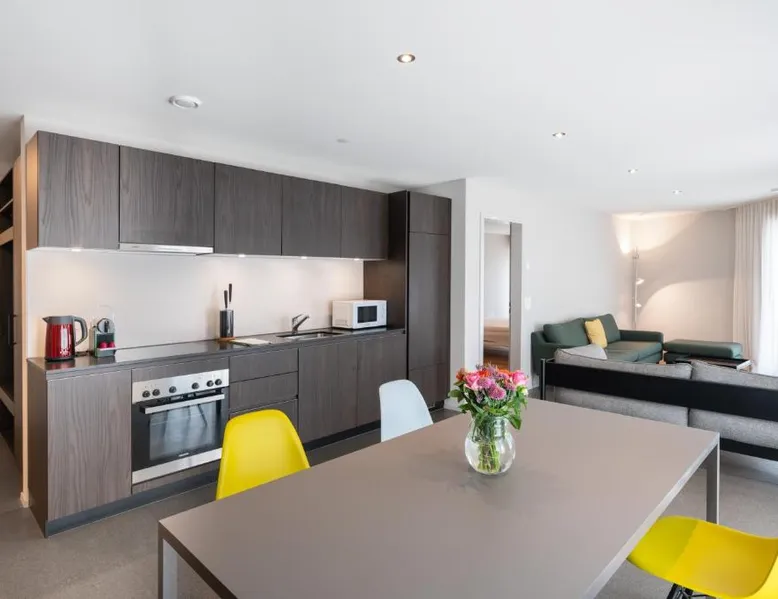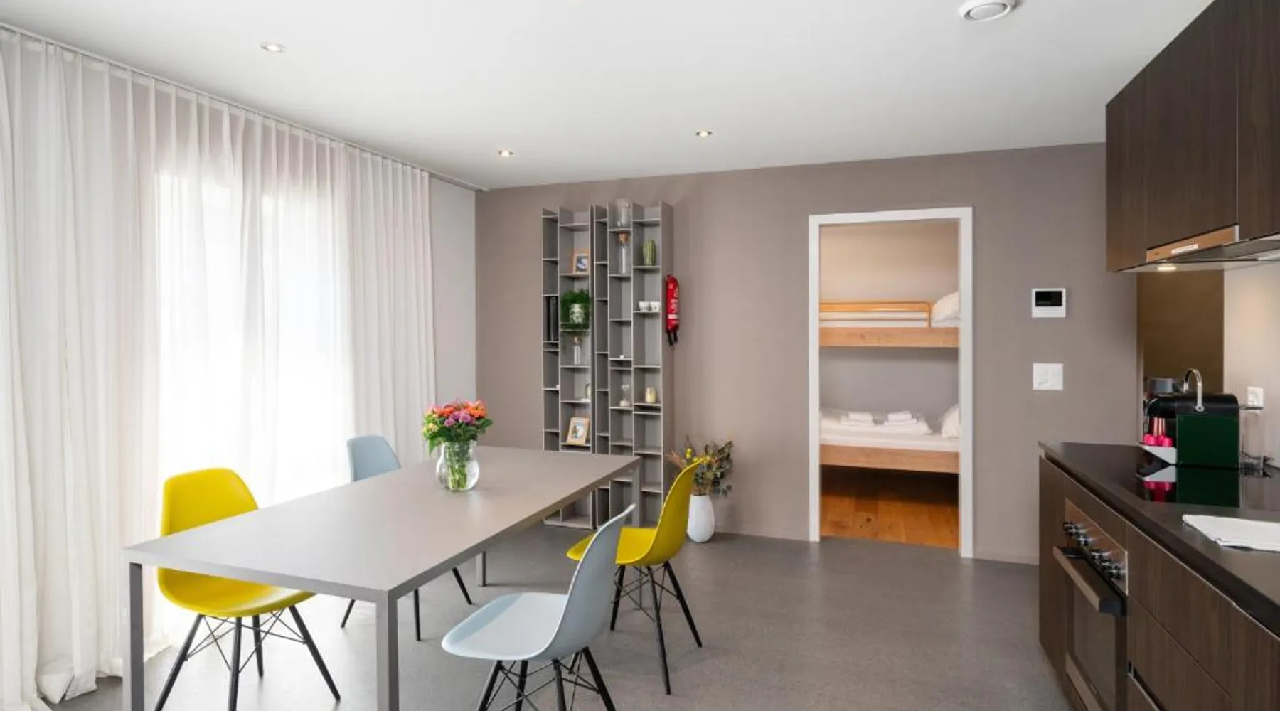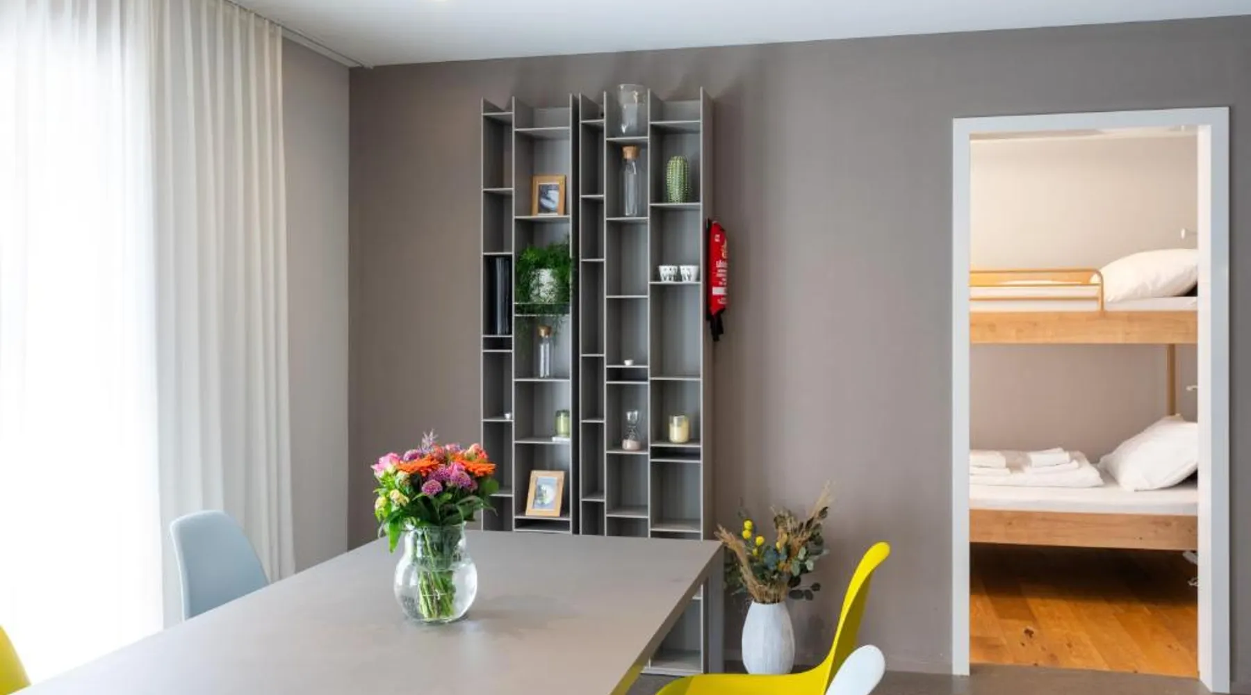 Prime Location: Modern City Apartments in Interlaken offers a central position with Grindelwald Terminal 12 mi away and Giessbachfälle 14 mi from the property. Zurich Airport is 82 mi distant. Comfortable Accommodations: Each apartment features a private bathroom, balcony with mountain views, and a fully equipped kitchen. Additional amenities include a washing machine, dishwasher, and free WiFi. Convenient Facilities: Guests benefit from private check-in and check-out, a casino, elevator, outdoor seating area, family rooms, and a tour desk. Paid off-site private parking is available. Local Attractions: Nearby activities include skiing, hiking, cycling, ice-skating, winter sports, and scuba diving. Points of interest such as Grindelwald Terminal and Giessbachfälle are easily accessible. Boasting a private entrance, this spacious apartment also includes 1 living room, 2 separate bedrooms and 1 bathroom with a walk-in shower. In the kitchen, guests will find a stovetop, a refrigerator, a dishwasher and kitchenware. The apartment offers a washing machine, soundproof walls, a coffee machine, a flat-screen TV with cable channels, as well as mountain views. The unit has 2 beds.