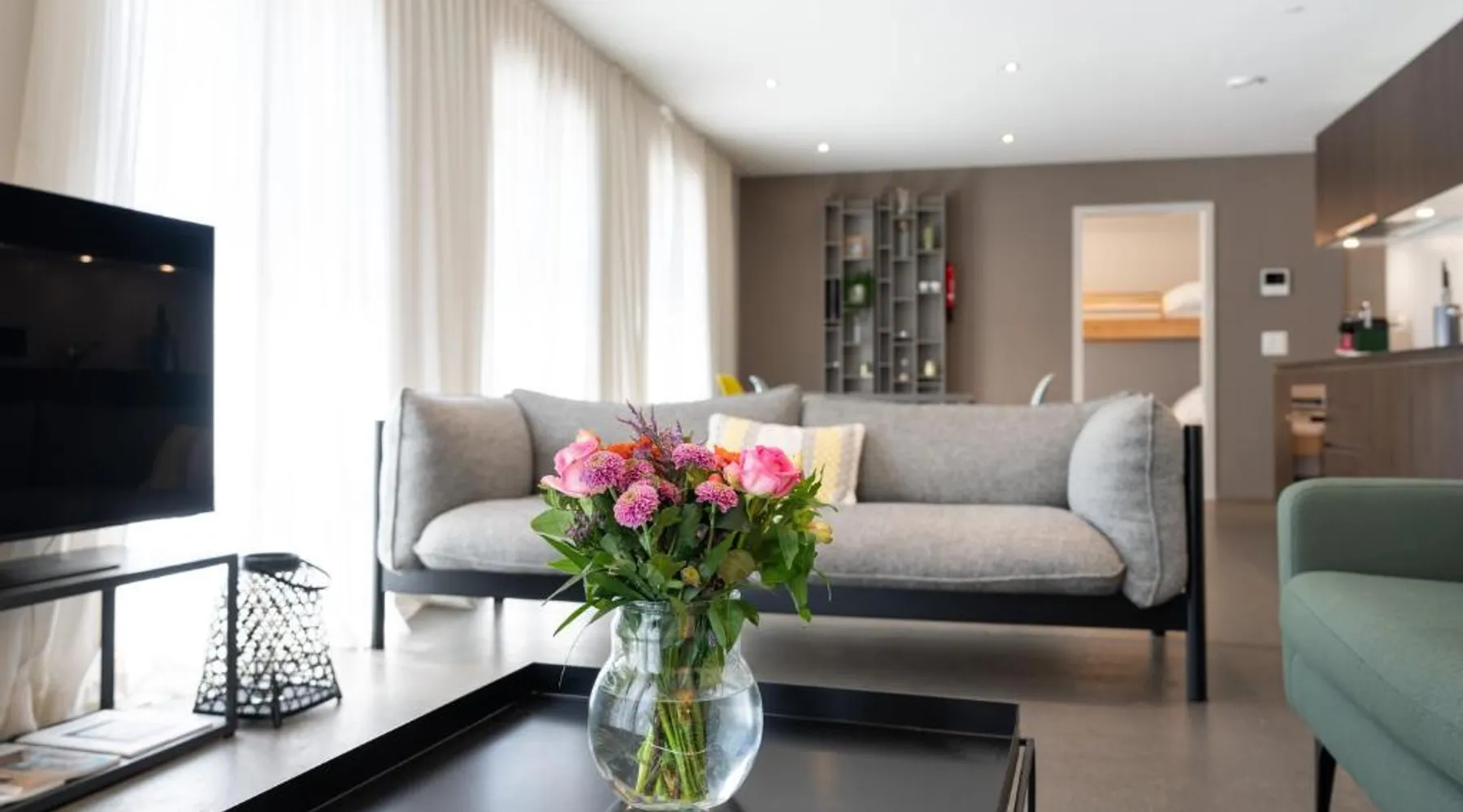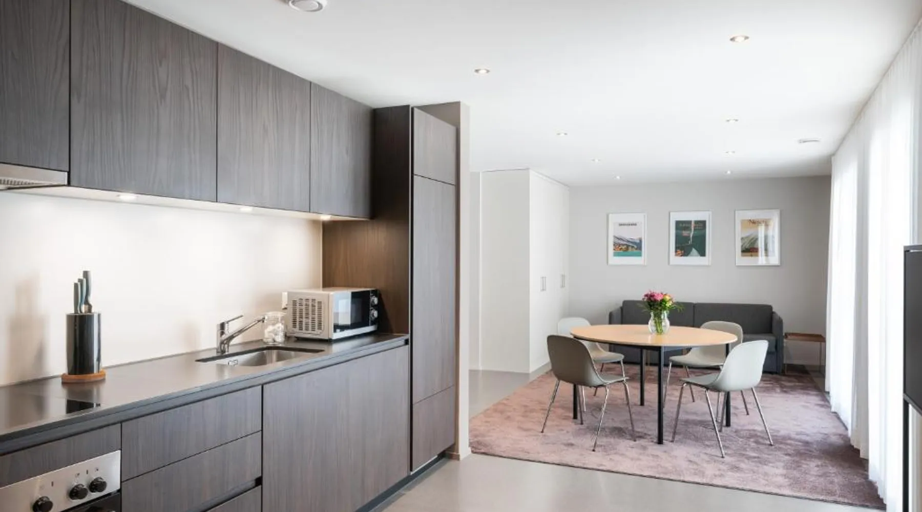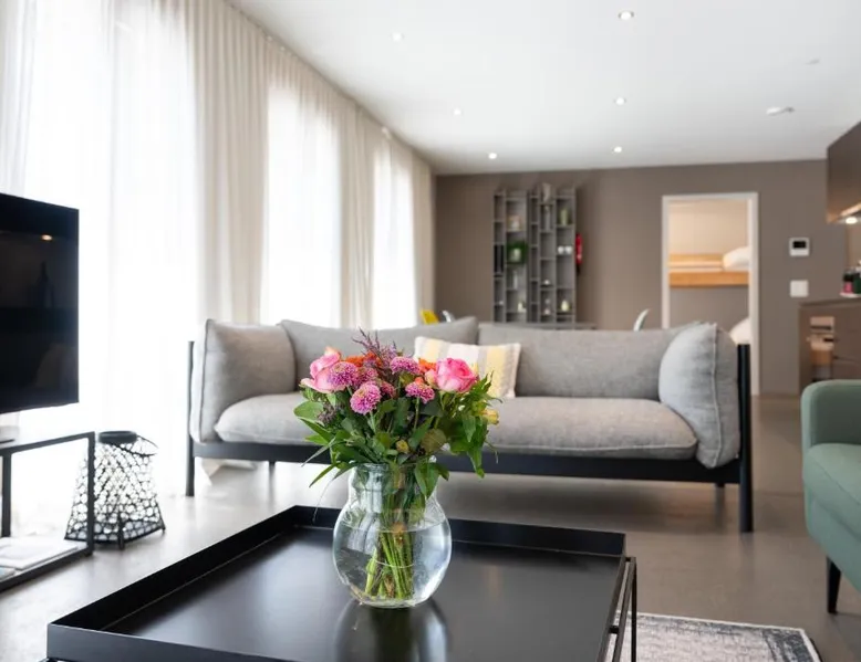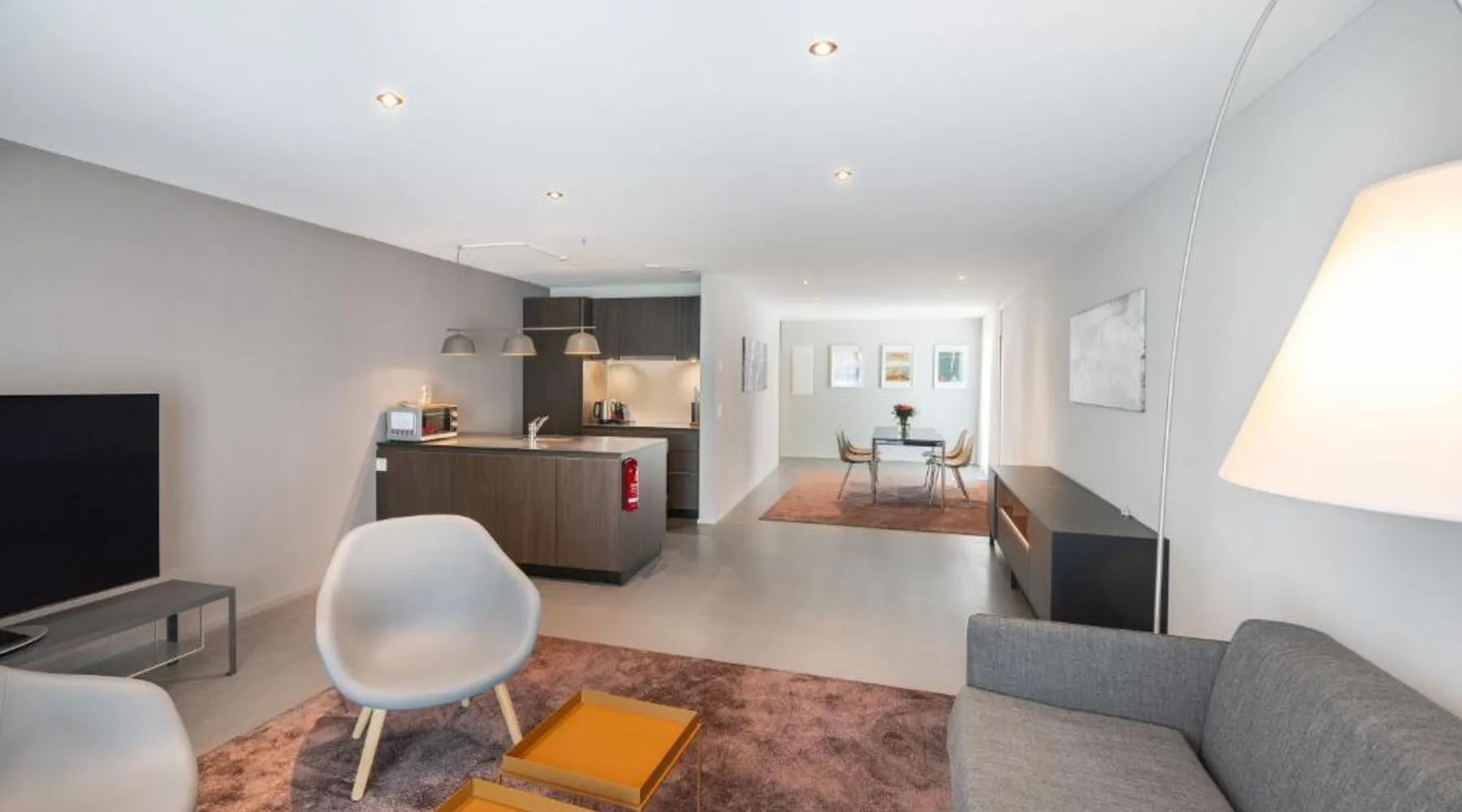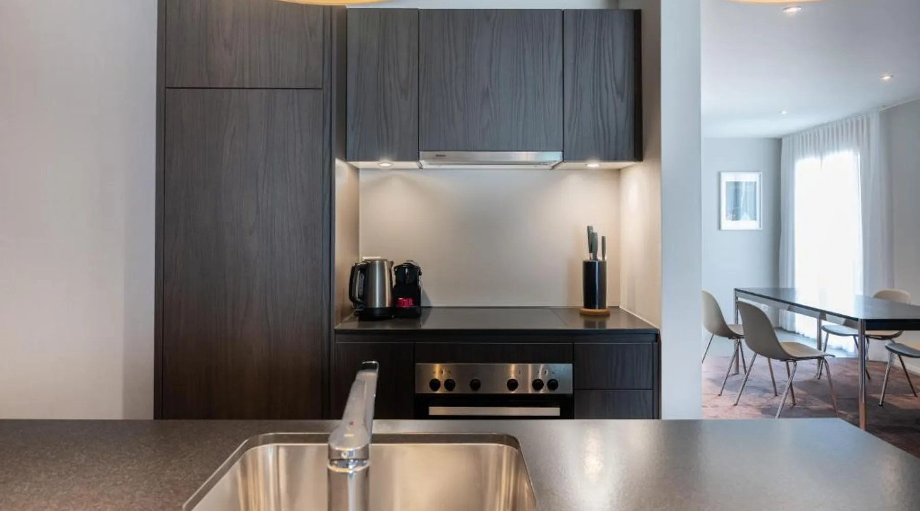 Prime Location: Modern City Apartments in Interlaken offers a central position with Grindelwald Terminal 12 mi away and Giessbachfälle 14 mi from the property. Zurich Airport is 82 mi distant. Comfortable Accommodations: Each apartment features a private bathroom, balcony with mountain views, and a fully equipped kitchen. Additional amenities include a washing machine, dishwasher, and free WiFi. Convenient Facilities: Guests benefit from private check-in and check-out, a casino, elevator, outdoor seating area, family rooms, and a tour desk. Paid off-site private parking is available. Local Attractions: Nearby activities include skiing, hiking, cycling, ice-skating, winter sports, and scuba diving. Points of interest such as Grindelwald Terminal and Giessbachfälle are easily accessible. Boasting a private entrance, this spacious apartment also includes 1 living room, 2 separate bedrooms and 1 bathroom with a walk-in shower. In the kitchen, guests will find a stovetop, a refrigerator, a dishwasher and kitchenware. The apartment offers a washing machine, soundproof walls, a coffee machine, a flat-screen TV with cable channels, as well as mountain views. The unit has 2 beds.