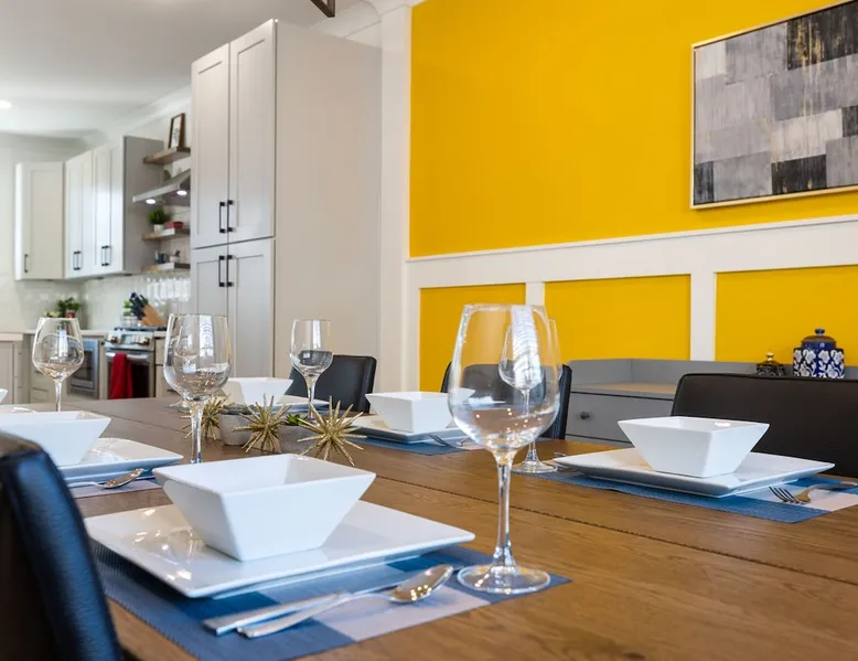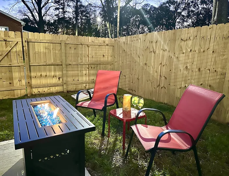 This gorgeous new construction 4BR/3BA home in Graham Heights is perfect for group getaways. Enjoy a private hot tub, fire pit, grill, chef’s kitchen with gas range, Smart TVs, and an open layout with modern finishes. All bedrooms include blackout curtains and fans, plus there’s a spacious yard, covered porch, and dedicated workspace. Just minutes from Camp North End, NoDa, and Uptown Charlotte, this peaceful corner-lot home offers style & convenience for families, friends & business travelers. The space Tucked on a quiet corner lot in Charlotte’s Graham Heights, this brand-new 4BR/3BA duet townhome offers thoughtful design, modern amenities, and room for everyone. Bancroft Bungalow is thoughtfully managed by me and my team at The Brighthouse, local hospitality experts known for warm, elevated guest experiences. Ideal for group stays, it combines upscale finishes with laid-back spaces indoors and out, to make for the perfect getaway in the Queen City. In this absolutely gorgeous home, you will enjoy plenty of space for the whole group. ✨ Key Features - 4 bedrooms, 2.5 bathrooms - Chef’s kitchen with gas range, stainless steel appliances, and oversized island (coffee and tea provided) - Private hot tub and fire pit with seating - Fenced-in side yard and covered front porch, Cornhole included - This home is dog-friendly! See other things to note for fee & info - 65” Smart TVs in the living room and primary bedroom - Hardwood floors, quartz counters, shiplap electric fireplace with reclaimed wood mantle - Blackout curtains and ceiling fans in every bedroom - Fast WiFi, central AC, and in-unit washer/dryer (detergent provided) - Driveway parking for 2 vehicles + free street parking ✨Layout by Floor First Floor - Bedroom 1: Two twin beds, dedicated workspace, blackout curtains, and fan - Living room with sectional, Smart TV, electric fireplace - Open dining room (seats 6) and kitchen island (seats 2) - Half bath - Access to side yard with hot tub and fire pit Second Floor - Primary Bedroom: King bed, ensuite bath with soaking tub + walk-in shower, Smart TV, walk-in closet - Bedroom 3: Queen bed, closet and dresser - Bedroom 4: Two twin beds, extra blankets - Shared bathroom: Tub/shower combo - Laundry room (laundry detergent provided) Outdoor Space - Covered front porch with Adirondack chairs - Fenced-in side yard with 4-person hot tub, gas fire pit, and outdoor seating - Quiet corner lot with added privacy Guest access The entire property is yours to enjoy. Note: This townhouse is part of a "duet." There is another townhouse on the other side. We own both sides. Other things to note NO SMOKING & NO PARTIES No smoking, absolutely no parties. Excessive noise that disturbs the neighbors will not be tolerated. Quiet hours from 10pm - 8am. NO UNAUTHORIZED PETS. Pets allowed with pet fee of $100 and agreement to pet policy. All pets must be registered. Failure to register your pet will result in a $200 unauthorized pet fee. OTHER THINGS TO NOTE This house is in a quiet residential neighborhood. There is a train track about 8 blocks away, so you may ocassionally hear the sound of trains as they pass.