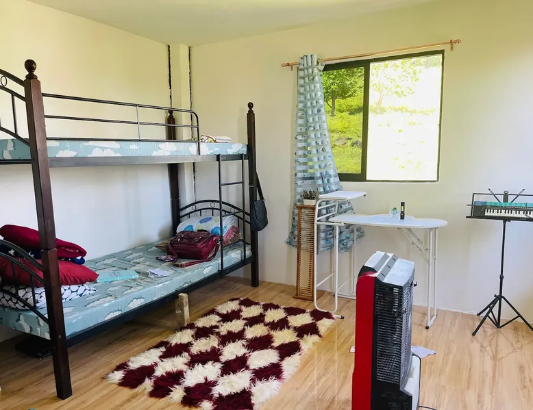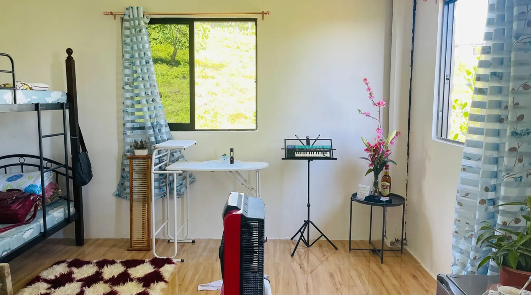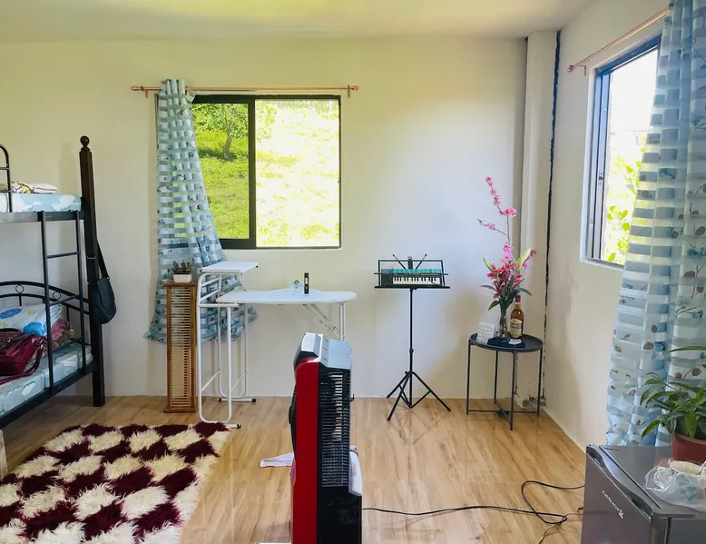 The spacious room is overlooking the ocean with wide area of pasture field at the back, with a large motel at the side and comfortable room where you can relax with fresh air and a nice view of the surroundings. Located about 8 minutes from the city proper. Near the provincial hospital and about 10 minutes from the airport. The property is located at the gated community with security guards at the main entrance. This rental property offers free breakfast or free dinner at your own choice.