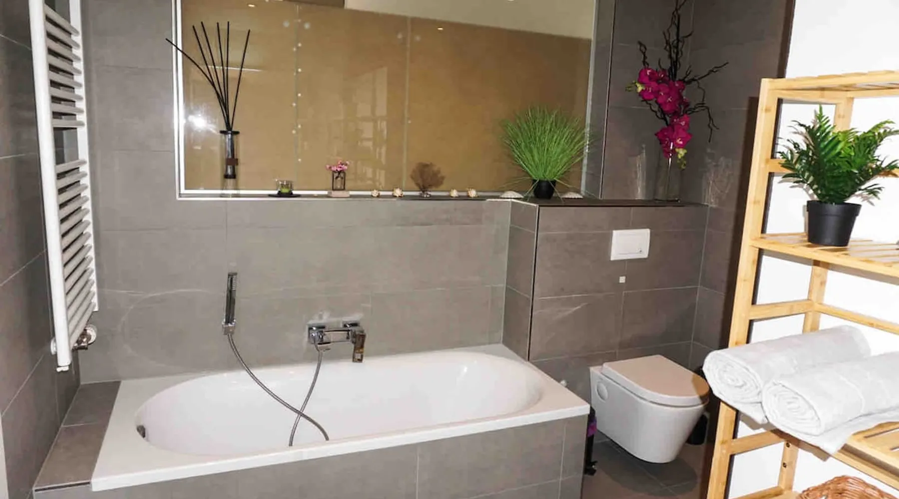 Apartment on the 2nd floor – perfect for 3 travelers Fully furnished with fully equipped kitchen (oven, fridge, etc.). Bathroom with shower & bathtub. Free parking. Top location: • Luxembourg City: about 25 min. by car, 35 min. by train • Ettelbruck: 5 min. by train or bus • Train station & shopping nearby Ideal for nature & city explorers! The space Welcome to our cozy 1-bedroom apartment in Schieren! This fully furnished apartment can accommodate 2 travelers in the bedroom and 1 more person on the pull-out sofa in the living room. You have full access to all amenities, including a well-equipped kitchen with oven, fridge and much more, as well as a bathroom with shower. Guest access 🏡 Cozy second-floor apartment – Ideal for 3 guests This cozy, fully equipped apartment offers everything you need for a relaxed and comfortable stay. It features: • A fully equipped kitchen (with oven, fridge, dishes, etc.) • A bathroom with both shower and bathtub • Free parking available ⸻ 📍 Quiet location with direct access to city & nature Enjoy the peaceful surroundings – thanks to Luxembourg's free public transport system, you're well connected: • Luxembourg City: approx. 25 minutes by car, 35 minutes by train • Ettelbruck: only 5 minutes by train or bus • Train station, supermarkets, and shops are all within walking distance 🚉 Bonus: Public transport is completely free throughout Luxembourg – travel by bus and train at no cost anywhere in the country! 🏡 Cozy apartment on the 2nd floor – ideal for 3 travelers This cozy, fully equipped apartment offers everything you need for a relaxing stay. It features: • A fully equipped kitchen (with oven, fridge, dishes, etc.) • A bathroom with shower and bathtub • Free parking place ⸻ 📍 Quiet location with direct connection to city & nature Enjoy the relaxed surroundings – with free public transport throughout Luxembourg, you are well connected: • Luxembourg City: about 25 minutes by car, 35 minutes by train • Ettelbruck: only 5 minutes by train or bus • Train station, supermarkets and shops are in the immediate vicinity 🚉 Extra advantage: Public transport throughout Luxembourg is free – you can use the bus and train throughout the country for free!