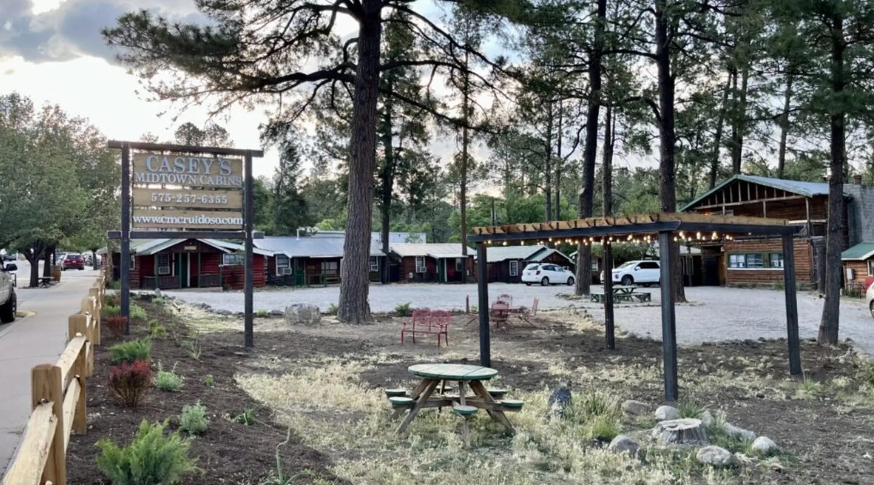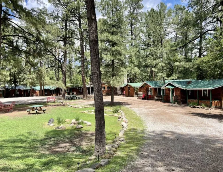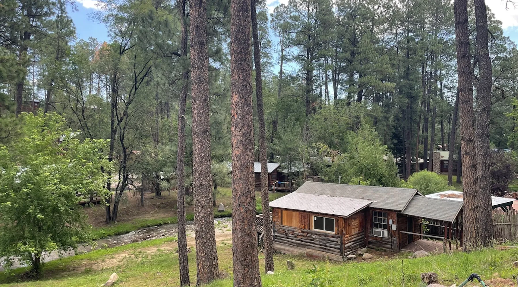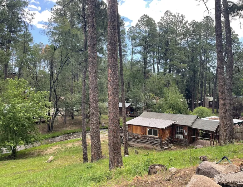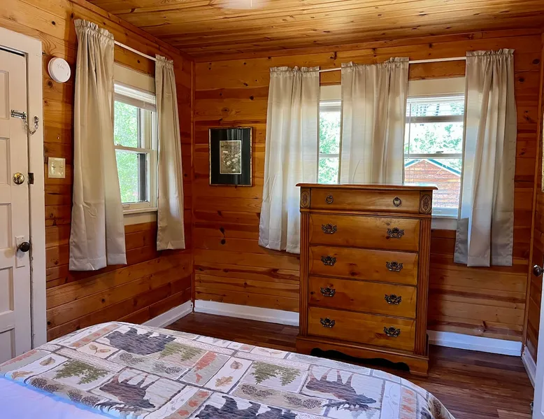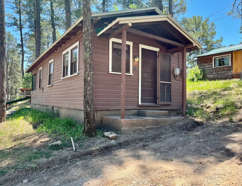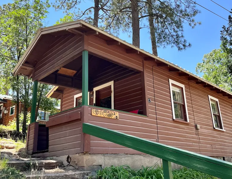 Casey's is on Ruidoso's main street, one block from the river and steps away from the Village's best restaurants, shops and cafes. Our cozy, rustic cabins have been the “Heart of Midtown” since their construction in the 1940s. The cabins vary in size from single bedrooms to large cabins that accommodate up to ten, making Casey's the perfect spot for individuals, couples or large groups looking to rent multiple cabins together at one convenient site. The space Butterfly is one of our top cabins, tucked away for privacy at the back of the property on Rio Street and Grindstone Road. It comes with a full kitchen, a queen bed, and an updated bathroom with a new toilet and shower. In the living room, there's a sofa that turns into a full-sized bed. The cabin has two entrances, one in the front and one in the back, so if both the bed and sofa are in use, each guest will have their own entrance. Although the view of the Ruidoso River from the two small porches is mostly blocked, you'll still feel the calming river atmosphere in this cozy rustic cabin, and you might even spot deer and elk. There's private parking right in front of the cabin. You'll have the entire cabin to yourself, and there's a shared yard out front where you can enjoy watching the seasonal parades on Sudderth Street.