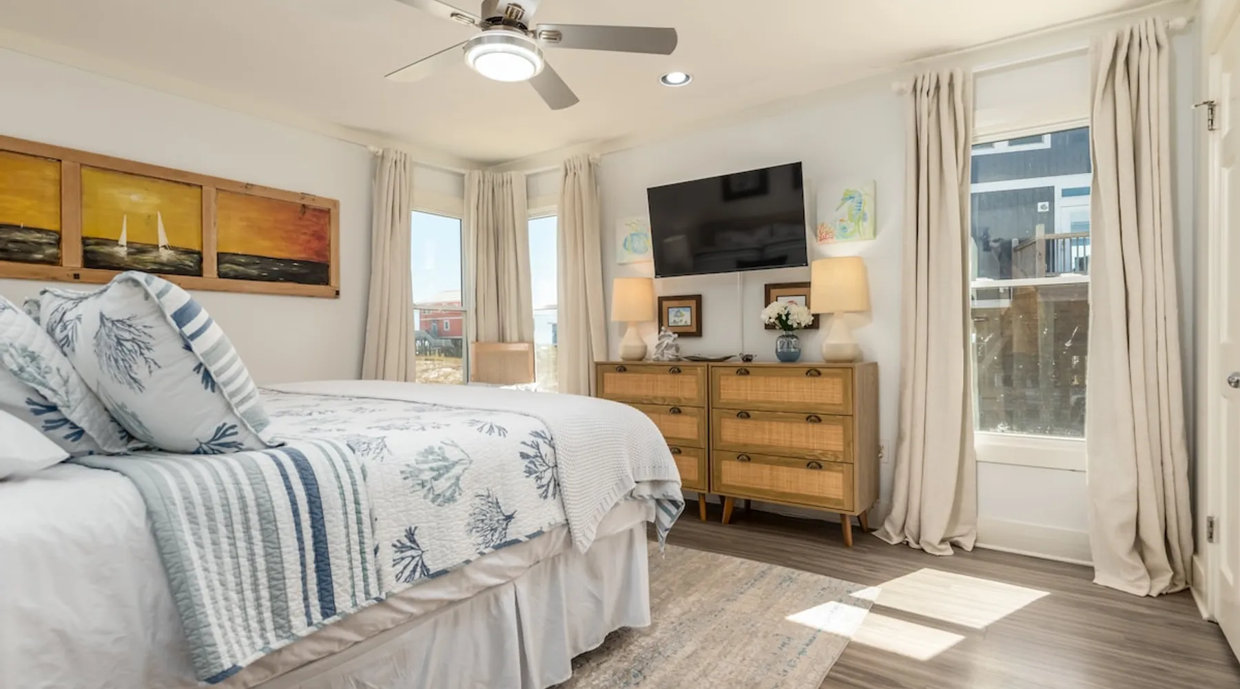 Feelin' Salty is an ocean-view four-bedroom, three-bath house with a private dipping pool! This home has been completely renovated and has a beautiful southern beach house aesthetic. The vaulted beadboard ceiling sets off the entire property as soon as you enter the doors. The home is tastefully furnished and has something for everyone. The bunk room includes an XBOX 360 console, something for the kids when they are not in the sun! The home enjoys modern lighting, flat-screen TVs, beautiful Other things to note As with all of our Dauphin Island Beach Rentals, all linens and towels are provided, WIFI, along with a fully-outfitted kitchen. There will be a starter pack of toilet paper, paper towels, and trash bags; please plan on bringing more for day 2 ;). A great beach vacation is waiting on you! House Rules: 1. Minimum Age for the Primary Renter is 25, and Primary Renter must be present for the entire stay. 2. Maximum Occupancy numbers include Children 3 and over and cannot be exceeded at any time. 3. All of our Homes are Non-Smoking. 4. A signed Rental Agreement is Required, which contains additional Rules and Guidance. 5. This property does not allow weddings or parties. 6. Check-in time is 3 pm, and check-out time is 10 am. 7. Start dishes and linens before departure. 8. Take the trash can to the street on Tuesday night and Friday night. 9. This home is pet-friendly, dogs only, 2-Pet Maximum Limit - $100 pet fee per pet plus tax applies. Pet Fee is NOT included in Airbnb quote and will result in additional charge.