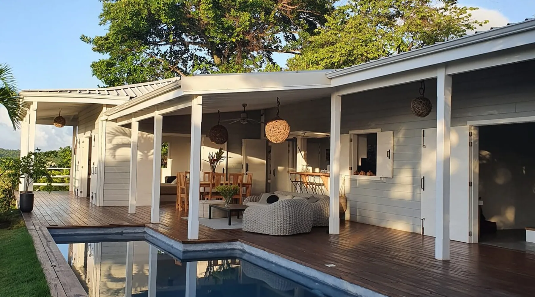 Contemporary Caribbean-style villa, with swimming pool and large wooden terrace, located on a beautiful Loma/hill near playa Bonita, for 6 people (3 bedrooms), only 3 minutes from the beach and 5 minutes from the village. Beautiful 180° views of the ocean. The space This new house of 150 m2 habitable and fenced (automatic gate) has 3 bedrooms, 3 bathrooms (large showers), a living room of 60 m2, with fully equipped kitchen, laundry, caretaker's house, parking. Surrounded by a landscaped tropical garden of 1500 m2 the house on one level (totally accessible to people with reduced mobility) has a large wooden terrace with outdoor lounge, which overlooks the pool. Guest access - Fridge-freezer - Stove/oven - Toaster - Electric coffee maker - Blender - Microwave - Water Fountain - Washing machine - Beach mattress - Bicourant 110/220V - TV - Flat screen - Cable/sattelite + DVD player - Hi-fi - Fans - Washing machine, - Wifi internet - Outdoor gas barbecue. Linens and cleaning three times a week water, gas included as well as garden and pool maintenance and the caretaker 24/7. Electricity charged in addition. Other things to note 15mn de l 'airport de El Catey