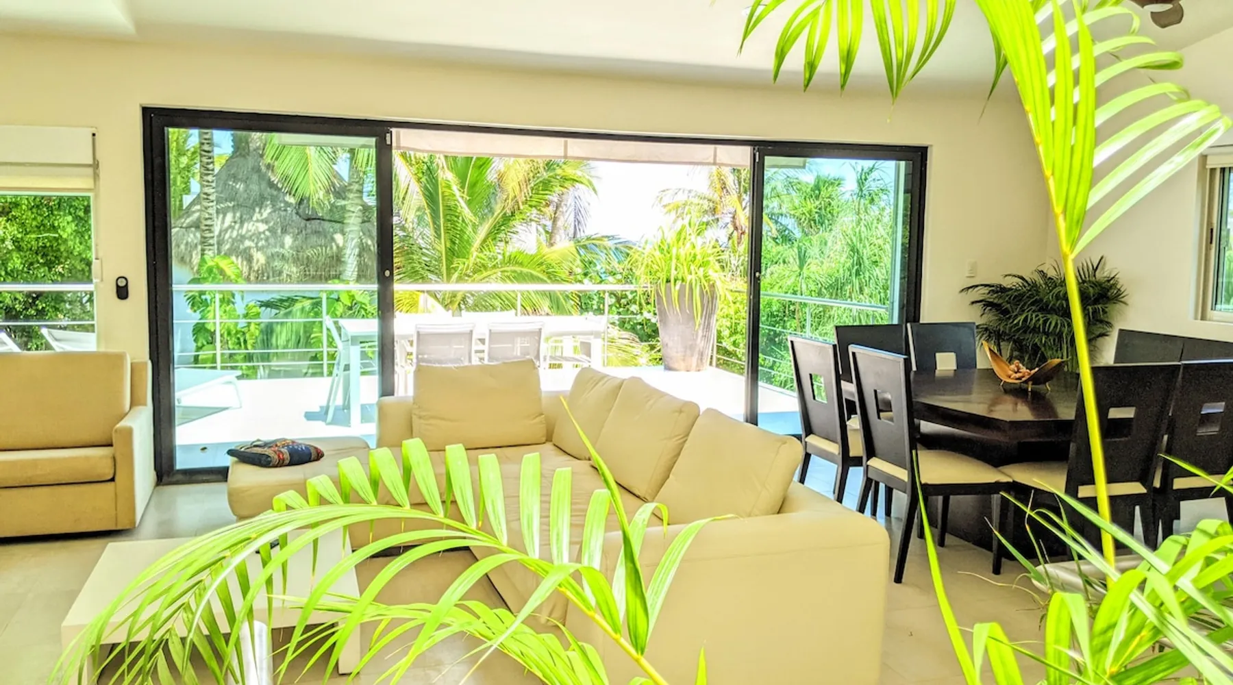 Your own tropical retreat—Ocean view from the living room & patio, just 2 min walk to beach & 5th Ave. 4BR, 4.5BA, including a compact 4th room (maid’s quarters) with private entrance, two bunk beds & full bath. Private rooftop lounge, BBQ grill, palm-shaded patios, fast 1000 Mbps Wi-Fi & big living room TV. Kitchens stocked with cookware ready for a chef. Quiet sleep, lush setting, smooth check-in. Want a chef, massage, mezcal tasting or airport pickup? Message us for trusted local referrals. The space Welcome to Villa Vista Real—your tropical escape in Playa del Carmen. 🌴 Ocean View from the living room & patio 🚶♀️ Just 2 min walk to the beach & 5th Ave 🛏 4BR / 4.5BA including compact 4th room (maid’s quarters) with exterior access, bunk beds & private bath 📡 1000 Mbps Wi-Fi for remote work or streaming 🍽 Fully equipped kitchen 📺 Huge Smart TV in living room 🔥 BBQ grill, palm-shaded patios & sunny lounging spaces 🌅 Private rooftop-style patio for gathering or sun bathing 😴 Designed for quiet sleep, lush surroundings 💼 Smooth check-in & responsive local support Looking for a chef, mezcal tasting, massage or airport pickup? Message us for trusted local referrals. Kim manages reservations—Danny & Judy are on the ground to assist you. Guest access It is a private home so you will have access to everything except for the utility closet and private storage. Other things to note Note the 4th bed/bath is a separeate quaters with an exterior entrance. Vista Real offers a unique and comfortable vacation experience in a prime location in Playa del Carmen. Built in 2005 Vista real can accommodate large groups of up to 20 guests. Due to the humidity, sun, and salty air in Playa del Carmen, homes like these may require ongoing maintenance. If any issues arise during your stay, our team, led by Danny, is ready to address them promptly. Please also note that we do not provide groceries, drinking water, or other beverages, so be sure to order everything you need from Paloma for deliveries before your arrival, or take a 2 minute taxi to the store for all of your supplies. We hope you have a wonderful stay at Los Castillos. We are connected to Airbnb with API software and thus are responsible for damages at our home. This requires a security deposit of $1500usd fully refundable OR a $59 fee that is not refundable, outside of the Airbnb platform. You will see this noted at your Airbnb check out just below your total.