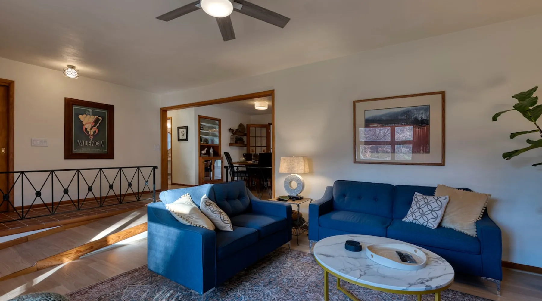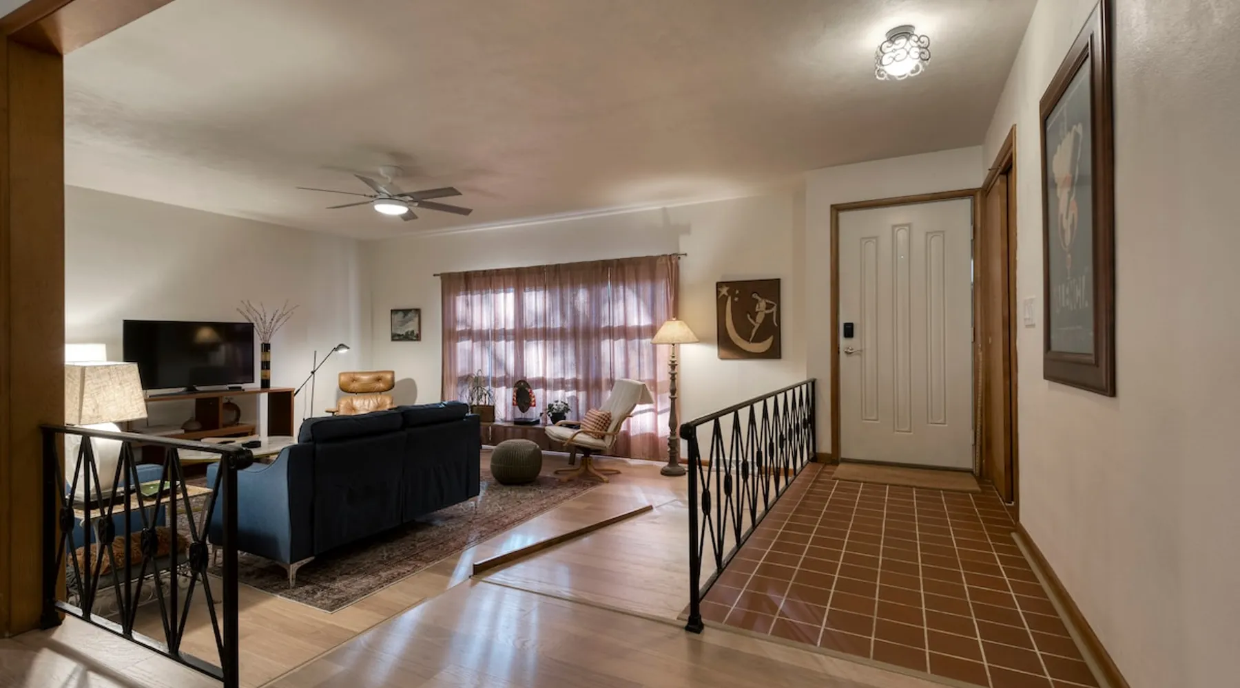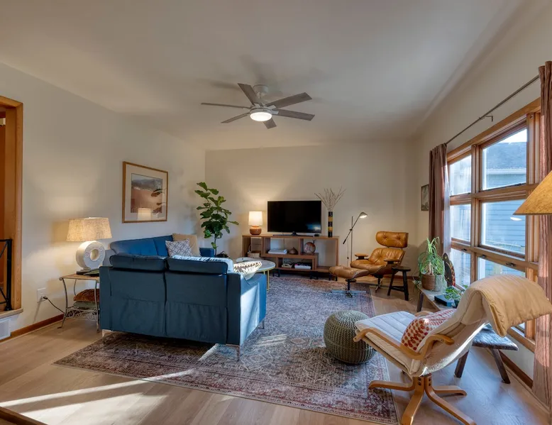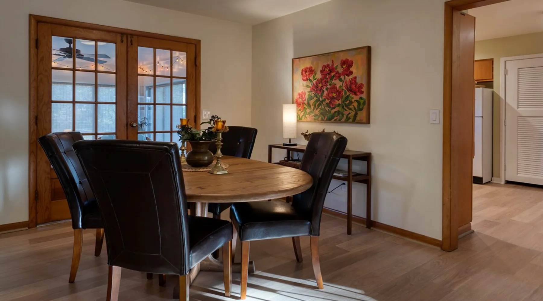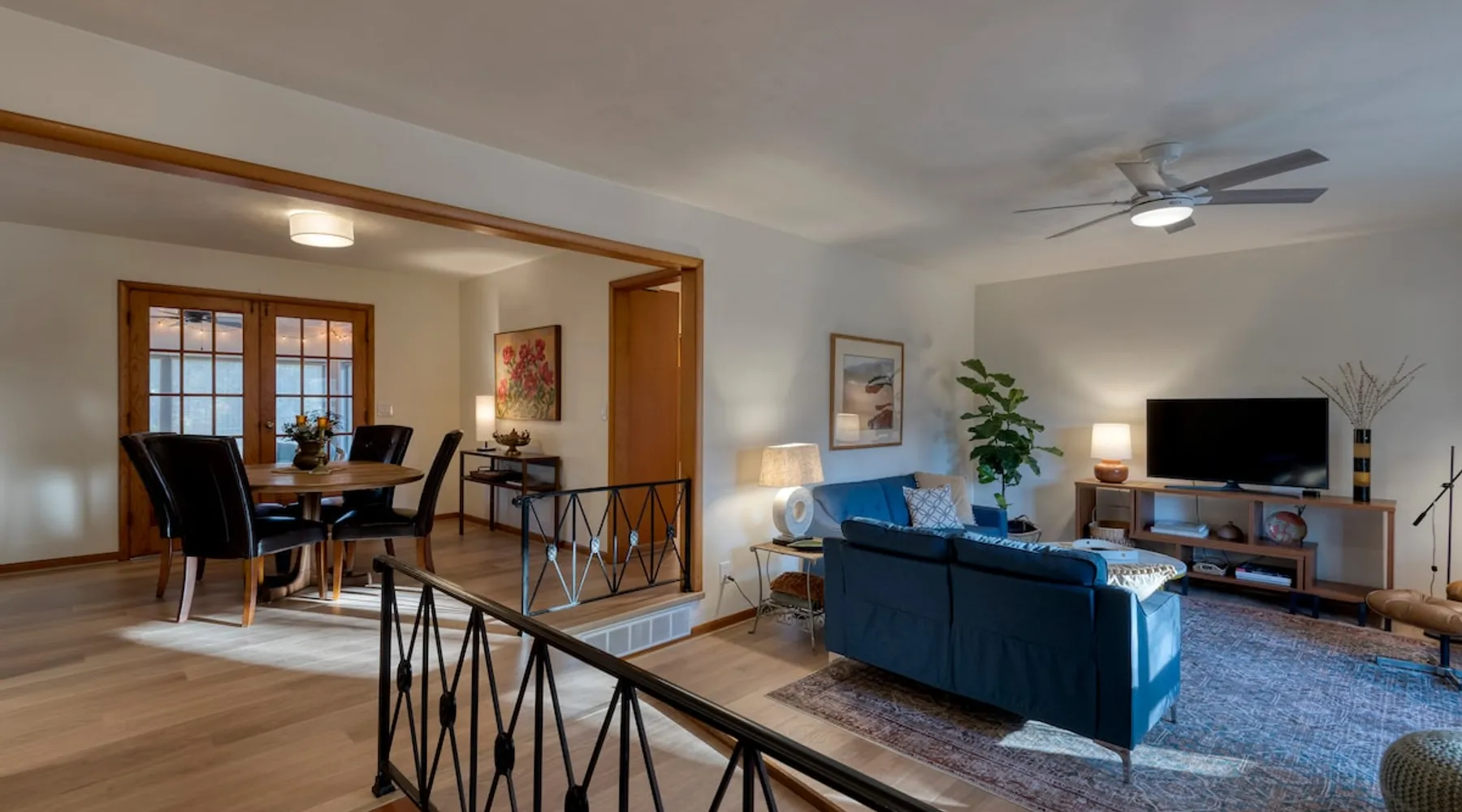 The Craig House's closeness to Indiana University, IU Health Hospital, and Meadowood Retirement Community and its accessibility features mean that no one needs to miss out on important events. A well-appointed ranch, it accommodates up to six Guests, including any that rely on a walker or wheelchair. Vintage furniture, artwork, and a quiet neighborhood create a comfortable retreat. It has high speed internet, a washer/dryer, a private driveway. Its proximity to everything makes it an ideal spot! The space Walk to IU sports events and save parking fees. Private driveway parks up to 4 vehicles. ADA compliant ramp from the driveway to the front deck. No-step entry. Living room is accessible by ramp or step. Main bedroom is wheelchair accessible with a 22" high queen bed. Blue bedroom is walker accessible with a 24" high queen bed. Paneled bedroom is walker accessible with a 23" high full bed. Bathroom is fully wheelchair accessible. Dining room seats six. Kitchen is well-equipped and features a complete laundry. Sunroom has three walls of louvered glass windows and vintage rattan furniture. Outdoor seating on the front deck. Guest access Indiana University athletic facilities are a 15-minute walk or 5-minute drive. Indiana University sororities and fraternities on David Baker Avenue are a 10-minute walk or a 3-minute drive. The Indiana University Auditorium and Memorial Union are a 35-minute walk or a 10-minute drive. The IU Health Hospital Bloomington is a 25-minute walk or a 4-minute drive. Meadowood Retirement Community is a 10-minute walk through the Griffy Lake Nature Preserve or a 3-minute drive. Other things to note At the end of the lane, Guests can enter the Griffy Lake Nature Preserve and meet up with the new 4.5 mile South Shore Loop Trail. Head east to arrive at the Griffy Lake Accessible Fishing Pier on the causeway. Head west and follow the trail cross the top of the Griffy Lake dam. Hosts Lauren and Peter Cowan bought the house from Wayne Craig, their neighbor and longtime resident of this close-knit neighborhood. Friendly and courtly, Wayne always had time to chat, especially when walking his dog. Wayne was a career staff member at Indiana University. In 1994 he was awarded the Thomas Hart Benton Mural Medallion for distinguished service and retired three years later as Director of University Ceremonies. As the owners of Agewise Design LLC, Lauren and Peter recognized the need for accessible short-term housing in Bloomington. They created the Craig House as a tribute to Wayne.