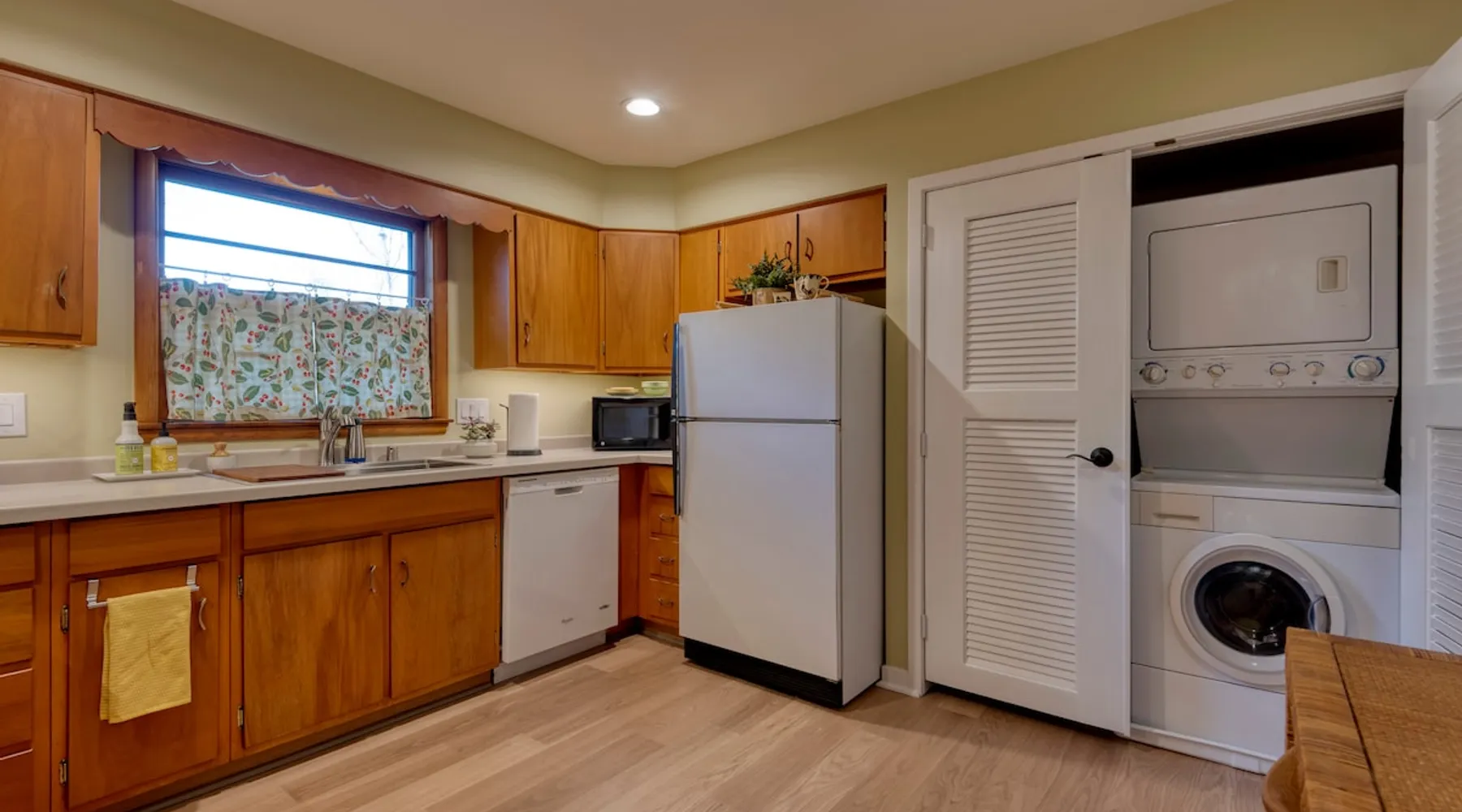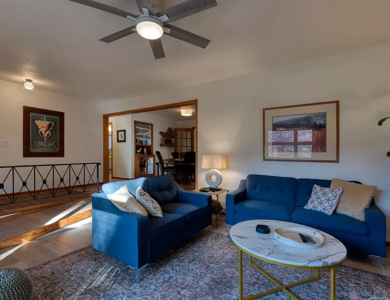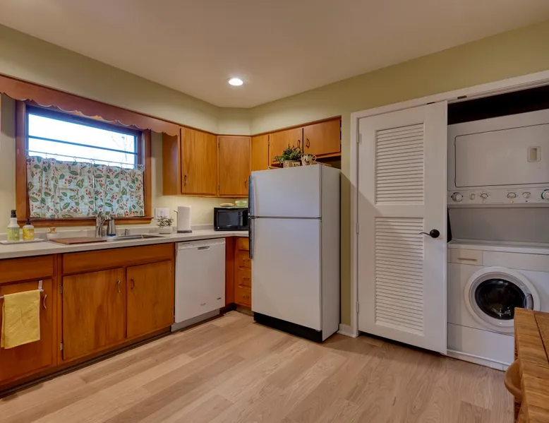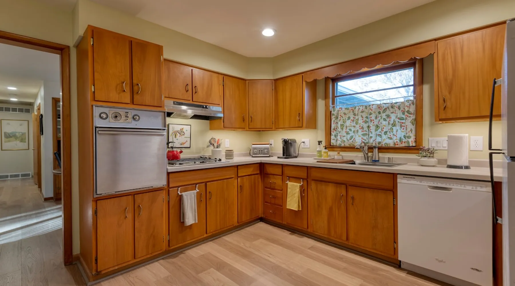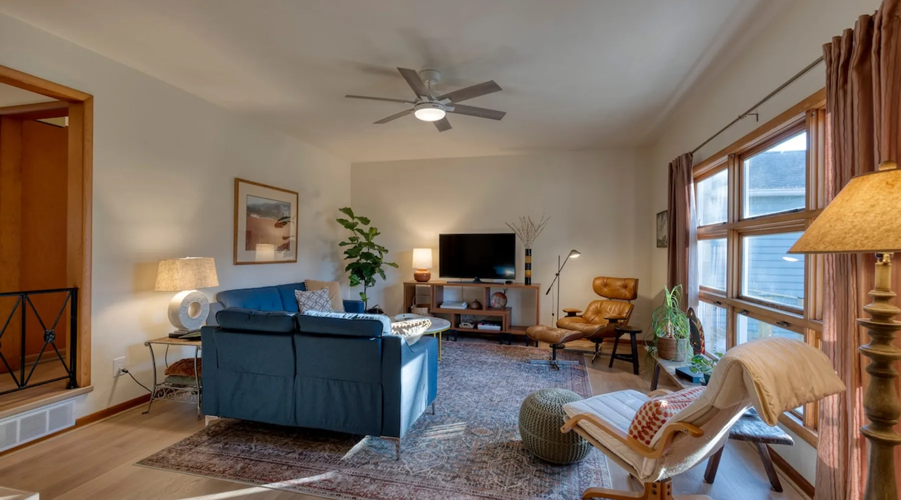 The Craig House's closeness to Indiana University, IU Health Hospital, and Meadowood Retirement Community and its accessibility features mean that no one needs to miss out on important events. A well-appointed ranch, it accommodates up to six Guests, including any that rely on a walker or wheelchair. Vintage furniture, artwork, and a quiet neighborhood create a comfortable retreat. It has high speed internet, a washer/dryer, a private driveway. Its proximity to everything makes it an ideal spot! The space Walk to IU sports events and save parking fees. Private driveway parks up to 4 vehicles. ADA compliant ramp from the driveway to the front deck. No-step entry. Living room is accessible by ramp or step. Main bedroom is wheelchair accessible with a 22" high queen bed. Blue bedroom is walker accessible with a 24" high queen bed. Paneled bedroom is walker accessible with a 23" high full bed. Bathroom is fully wheelchair accessible. Dining room seats six. Kitchen is well-equipped and features a complete laundry. Sunroom has three walls of louvered glass windows and vintage rattan furniture. Outdoor seating on the front deck. Guest access Indiana University athletic facilities are a 15-minute walk or 5-minute drive. Indiana University sororities and fraternities on David Baker Avenue are a 10-minute walk or a 3-minute drive. The Indiana University Auditorium and Memorial Union are a 35-minute walk or a 10-minute drive. The IU Health Hospital Bloomington is a 25-minute walk or a 4-minute drive. Meadowood Retirement Community is a 10-minute walk through the Griffy Lake Nature Preserve or a 3-minute drive. Other things to note At the end of the lane, Guests can enter the Griffy Lake Nature Preserve and meet up with the new 4.5 mile South Shore Loop Trail. Head east to arrive at the Griffy Lake Accessible Fishing Pier on the causeway. Head west and follow the trail cross the top of the Griffy Lake dam. Hosts Lauren and Peter Cowan bought the house from Wayne Craig, their neighbor and longtime resident of this close-knit neighborhood. Friendly and courtly, Wayne always had time to chat, especially when walking his dog. Wayne was a career staff member at Indiana University. In 1994 he was awarded the Thomas Hart Benton Mural Medallion for distinguished service and retired three years later as Director of University Ceremonies. As the owners of Agewise Design LLC, Lauren and Peter recognized the need for accessible short-term housing in Bloomington. They created the Craig House as a tribute to Wayne.