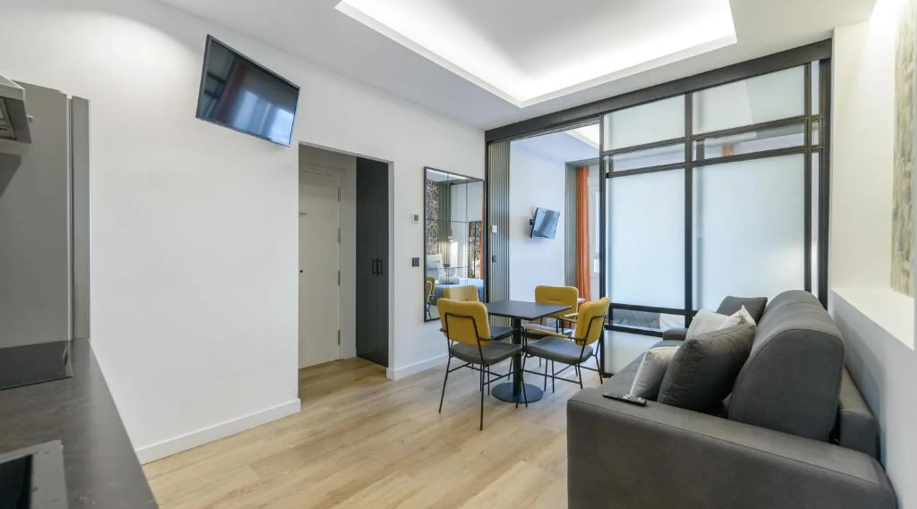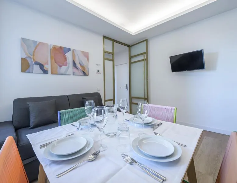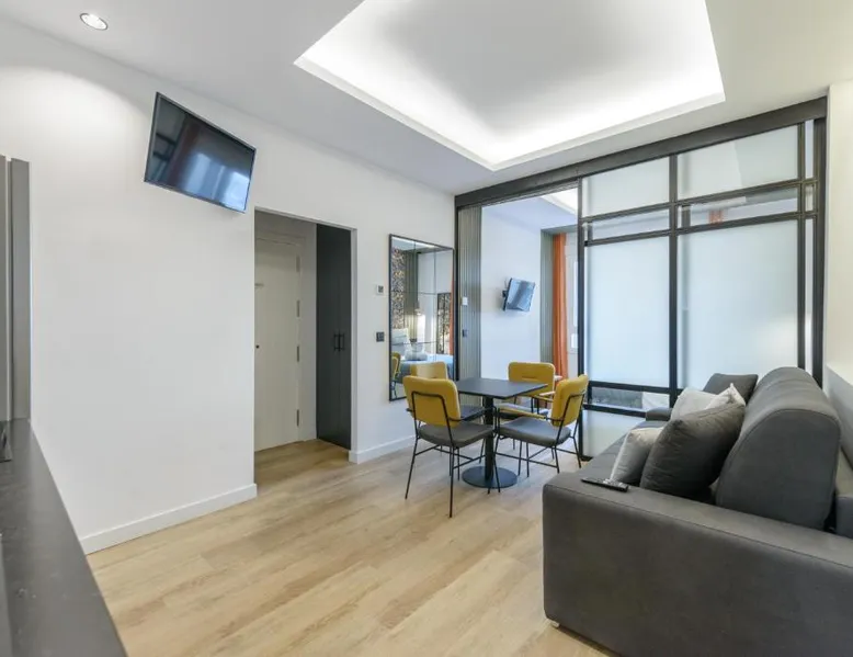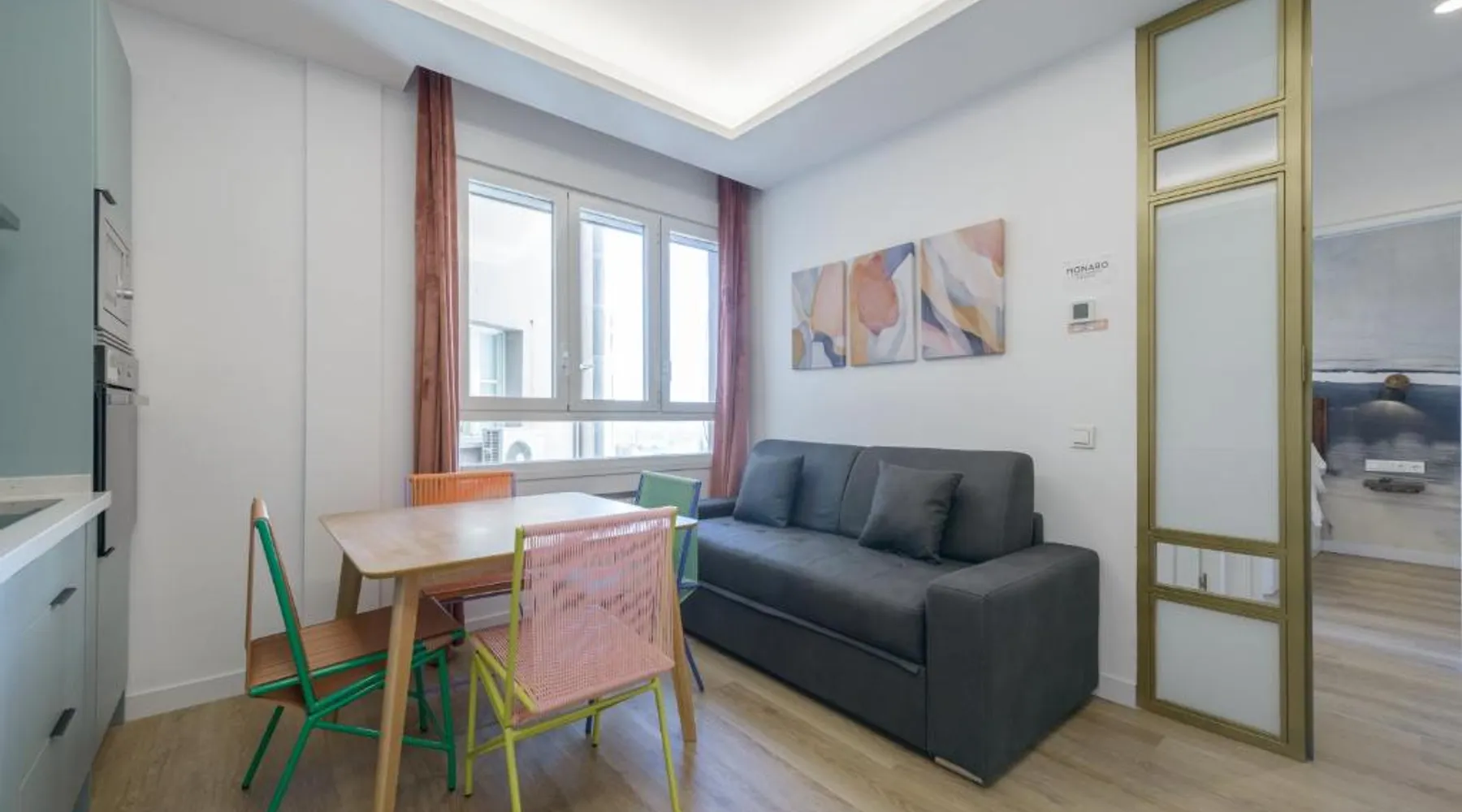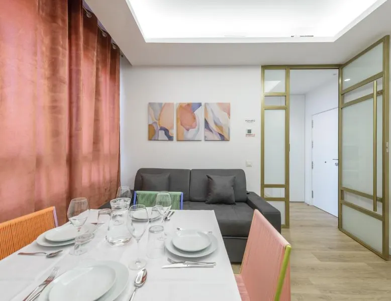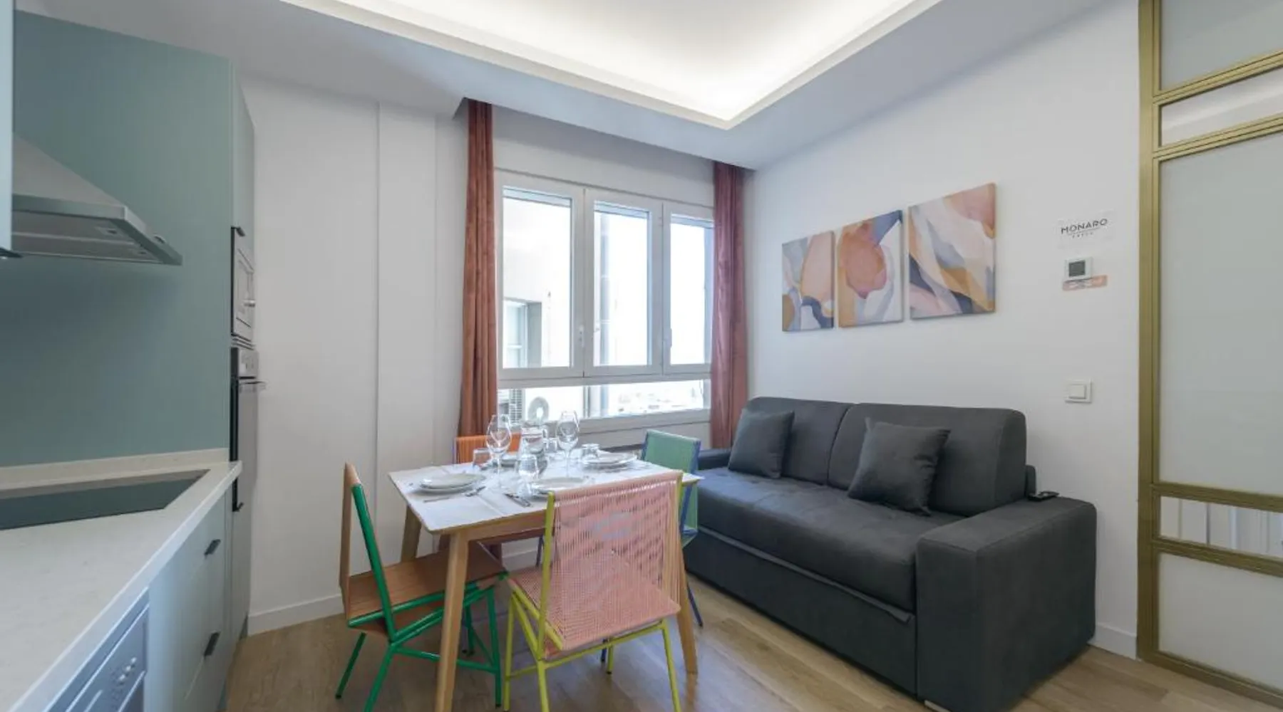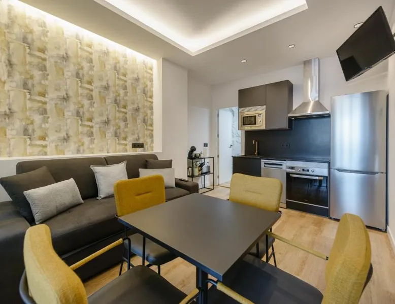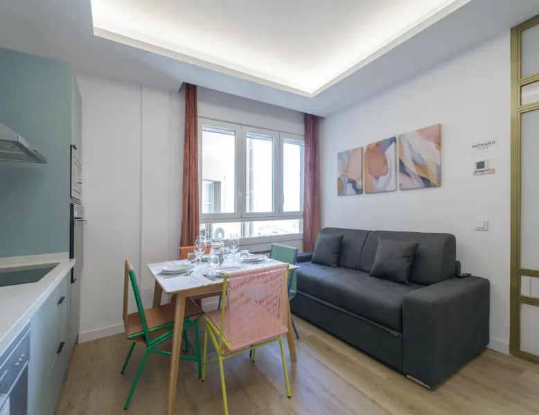 Prime Location: GRAN VIA capitals by MONARO***** is located in Madrid city center, offering easy access to key attractions. Gran Via is just a few steps away, while Plaza Mayor and Puerta del Sol are within 0.6 mi. The Royal Palace and Thyssen-Bornemisza Museum are also nearby. Comfortable Accommodations: The apartment features air-conditioning, a kitchenette, and a private bathroom. Guests enjoy free WiFi, a washing machine, and a dining area. Additional amenities include a terrace, balcony, and soundproofing. Convenient Services: The property provides private check-in and check-out, a 24-hour front desk, and a tour desk. Services include a paid shuttle, electric vehicle charging, laundry, and full-day security. Adolfo Suarez Madrid-Barajas Airport is 12 mi away. Featuring a private entrance, this air-conditioned apartment consists of 1 living room, 1 separate bedroom and 1 bathroom with a walk-in shower and a hairdryer. Meals can be prepared in the kitchen, which is equipped with a stovetop, a refrigerator, a dishwasher and kitchenware. The apartment provides a washing machine, soundproof walls, a tea and coffee maker, a flat-screen TV with streaming services, as well as city views. The unit offers 2 beds.