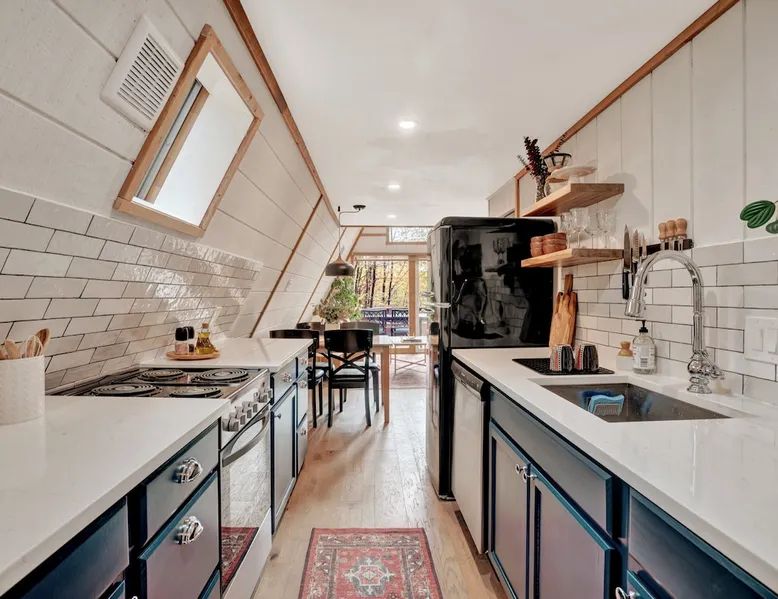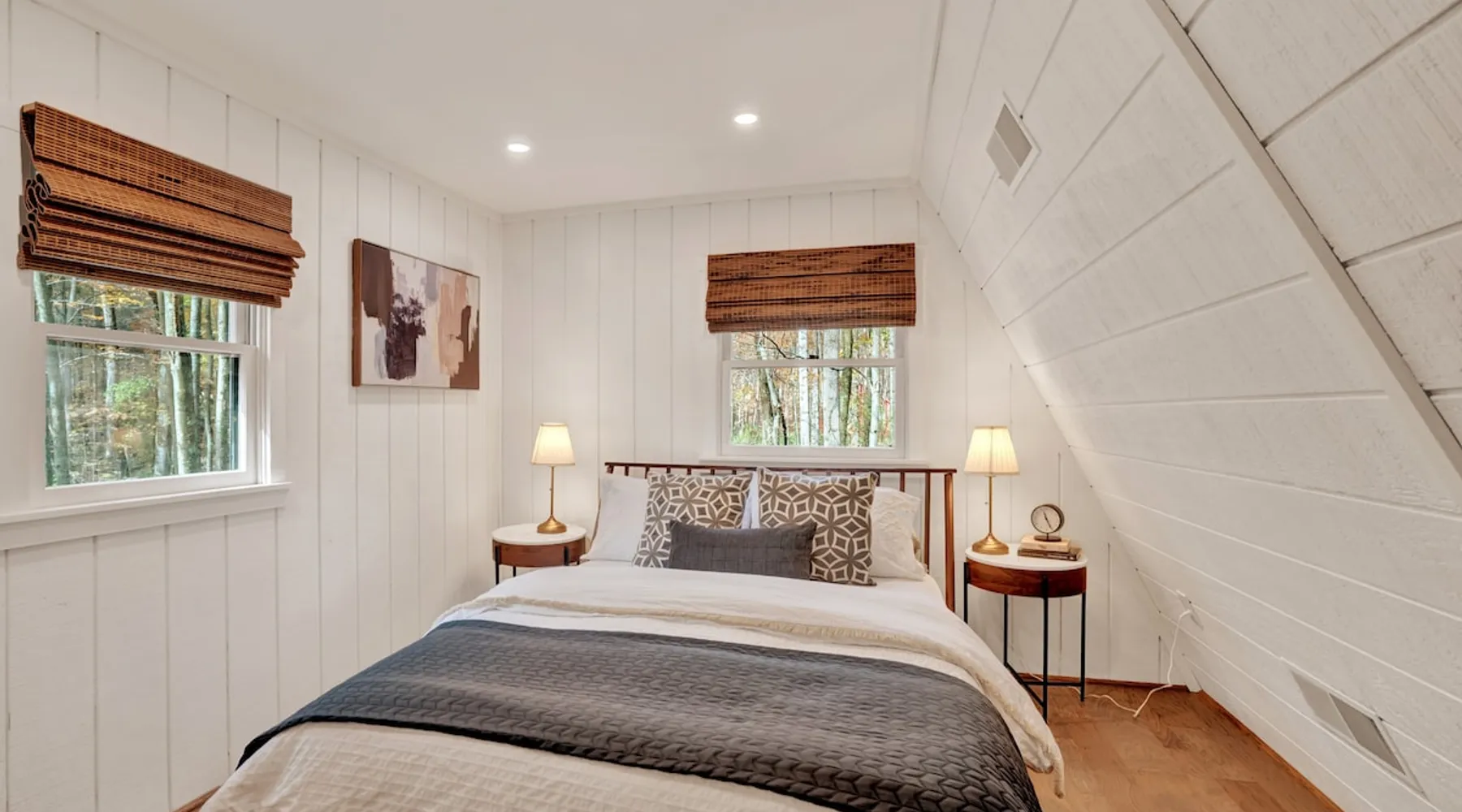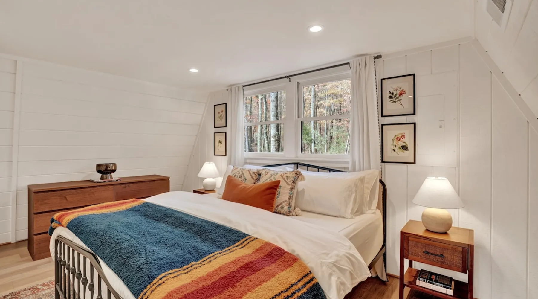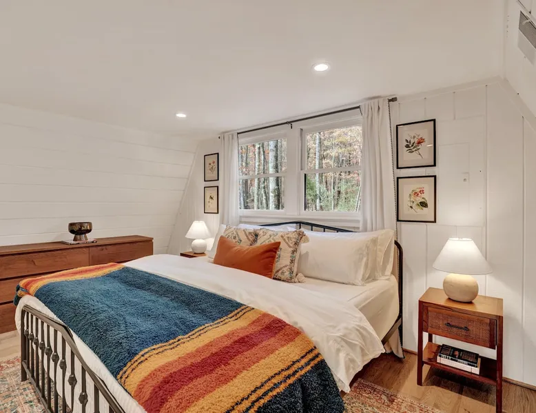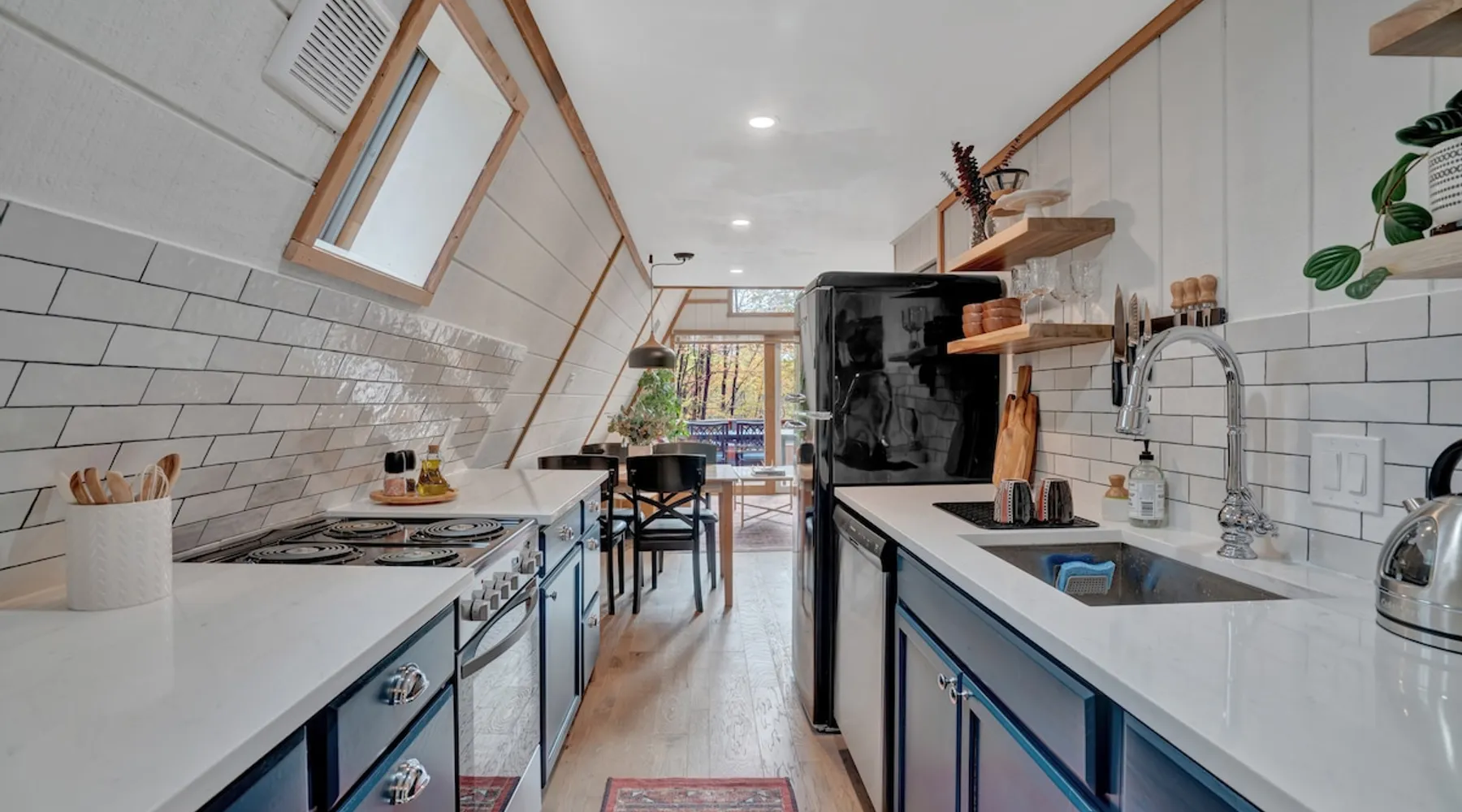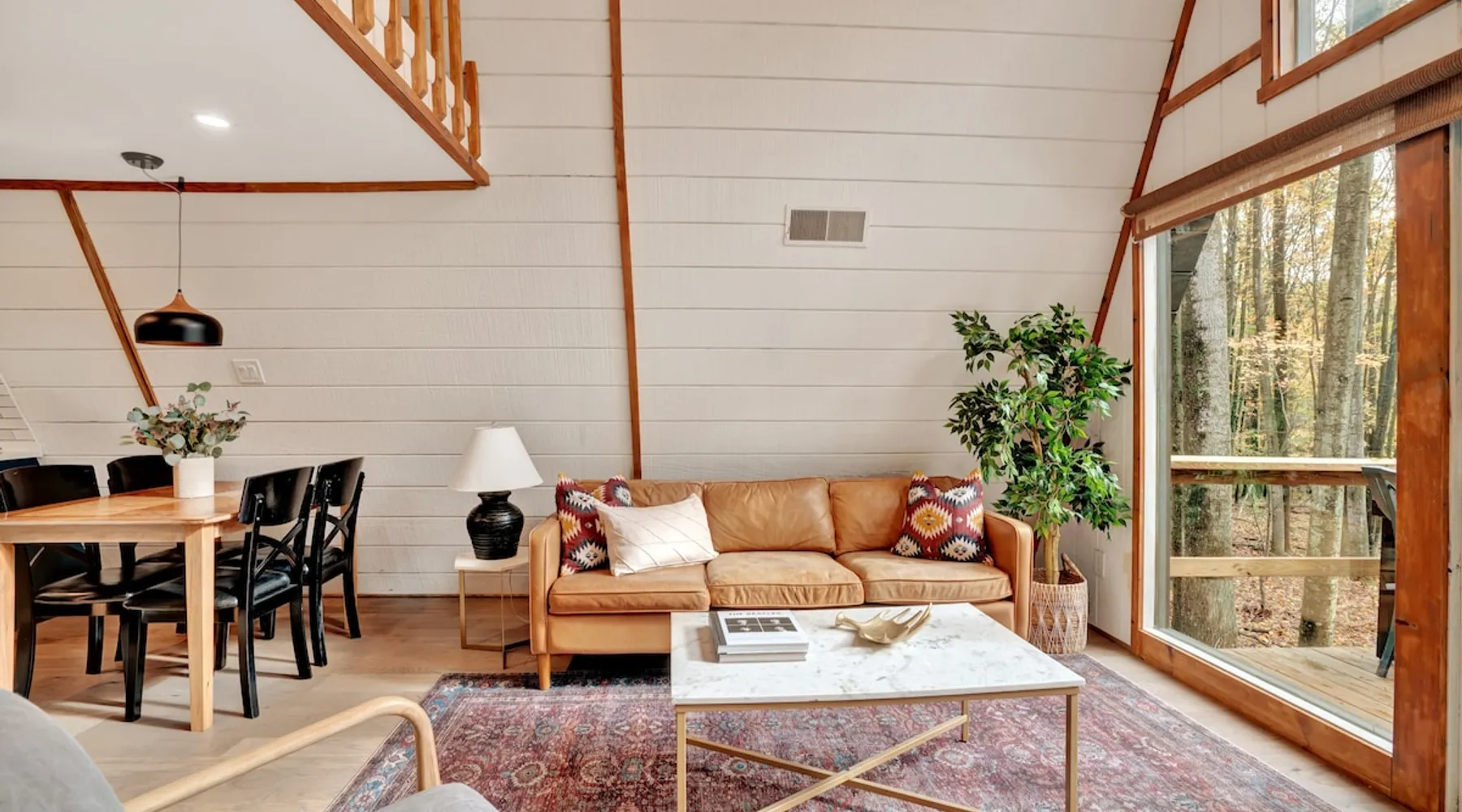 Welcome to @dreamtimestays A-Frame. A fantastic, owner renovated & designed, two-bedroom, two-bathroom A-frame cabin tucked away in a semi-secluded area, close to Berkeley Springs, WV. The cabin and the entire community it's part of are surrounded by tall trees on the mountainside. Quick access to nearby trails, mins to Berkeley Springs Brewing Co. Cold Run Valley Winery, and Cacapon Resort State Park. Find yourself in the town center with highly rated local restaurants & cafés. The space AMENITIES YOU WILL LOVE The Top Wish-listed Dreamtime A-Frame Cabin is fully equipped to be your home-away-from-home with a touch of luxury. The kitchen is furnished with stainless steel appliances, quartz countertops, and all you need for coffee & tea each morning! Enjoy your meals together around the dining table, or take it to the deck for an epic BBQ next to your private picnic table. This modern A-frame Cabin includes a flatscreen TV with Roku streaming apps (require guest login), Roku live TV, and WiFi. (A note about WiFi: due to the remote location of the cabin in West Virginia's mountainous terrain, we offer WiFi through a hotspot which may be spotty at times.). Gather around the wood fireplace/stove next to a massive glass door and windows with a picturesque view. Bedrooms include a master with a king bed and one queen bedroom (for a total of four). With two full bathrooms, there is plenty of space for everyone to keep up with daily routines. FAQs: Q: Do you have a fire pit? A: We don't have a fire pit due to the fire risk in the area, but check out the pictures of our living room with the wood stove. Q: Can we bring a 5th person? A: We're unfortunately strict about the number of guests due to many reasons, such as the living space, and other reasons, such as putting too much pressure on the infrastructure. Q: Should we bring our firewood? Do you charge for it? A: We stock plenty of firewood during the winter and cooler times of the year from October to April, and you will have access to the entire stack during your stay. Guest access Keyless Entry. We will message your unique entry code 3 days before arrival, along with our house manual and our recommendations for local eateries, hiking, kayaking, and so on. Other things to note Wi-fi is provided via a hotspot due to the remote location of our cabin; it provides plenty of speed for audio/video calls, video streaming, and so on, but it may be spotty sometimes. We're a pet-friendly property and can accommodate a dog up to 50 lbs (see our house rules for further info). Please ensure your pet is added to your booking.