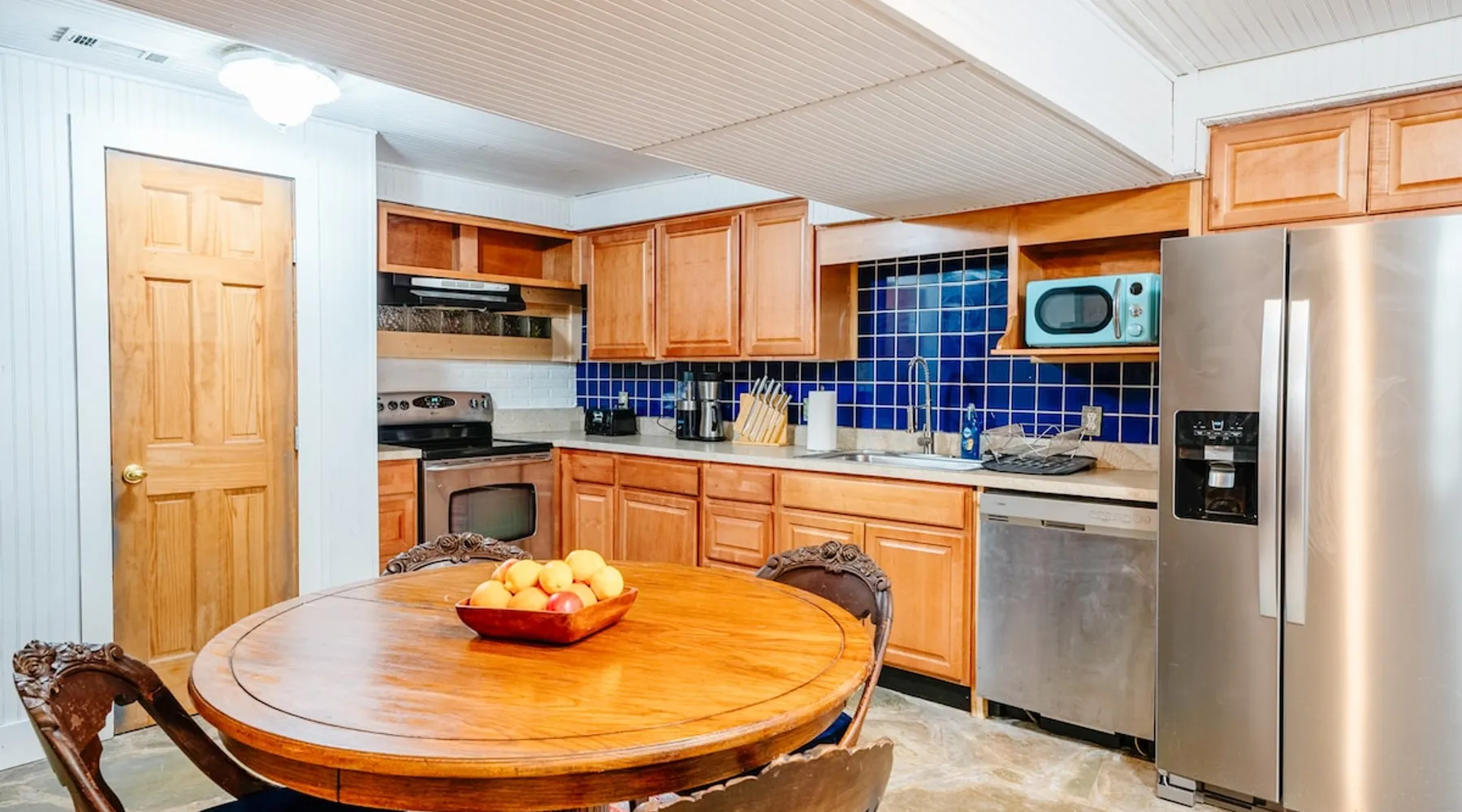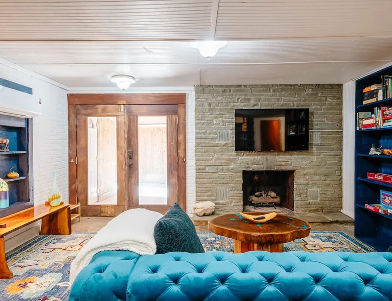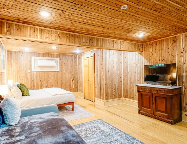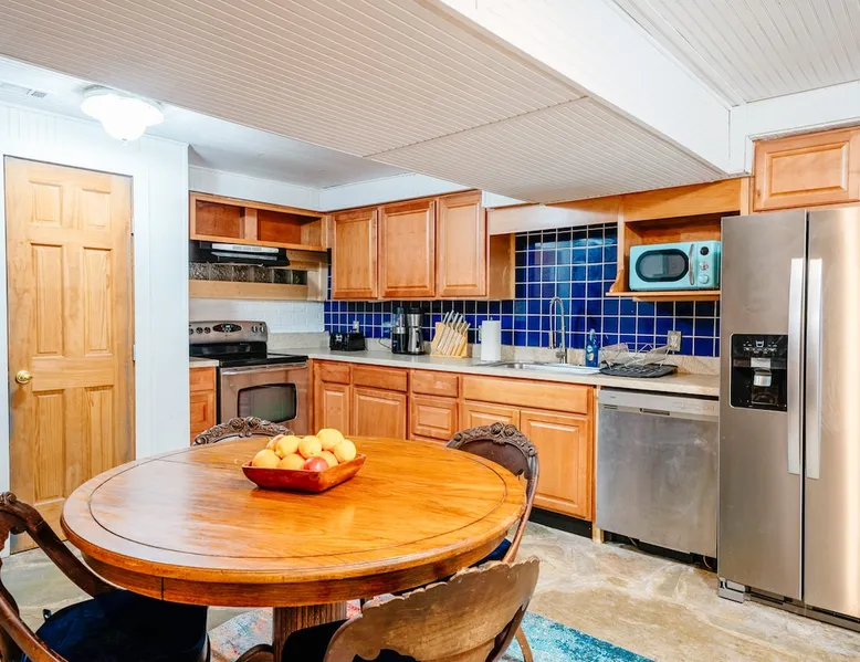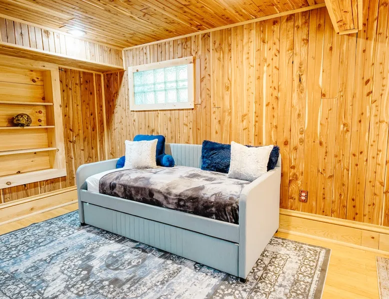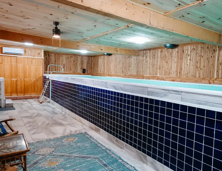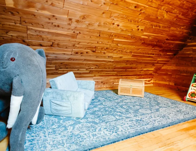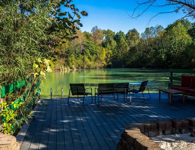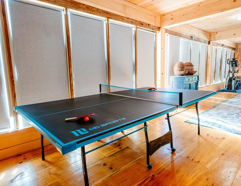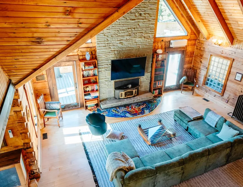 Majestic timber home on 20 private acres with swimming pond, heated indoor pool, hot tub, rec room with pool table, ping pong, foosball and free weights, extensive gardens and walking paths on property. Cows, sheep, goats & donkeys in fully fenced pasture land/barnyard. Sleeps 12+ 8 min to Paoli Peaks 15 minutes to French Lick 35 minutes to Patoka Lake (boating, fishing, hiking) One hour to Bloomington One hour to Louisville (SDF airport) The space •Huge main living room with 26ft vaulted ceilings, extra large super comfy couch, 70-inch TV. •Second living room with book shelves, games, 55-inch TV. •Fully equipped kitchen with drip coffee and pour over, complementary coffee beans, oatmeal and snacks. Electric range, oven, microwave, dishwasher, toaster, full-size refrigerator and mini-fridge. •Second fully equipped kitchen with French-door refrigerator, microwave, oven/stove, dishwasher, toaster, drip coffee maker. •Formal dining room with eight-seat dining table. •Second indoor dining area with seating for four. •Outdoor dining area with seating for six. •Large jacuzzi tub in upstairs bathroom. • Additional seating area/reading nook or optional nursery space • Kids play spaces upstairs with mini couches, toy chests and stuffed animals. •Rec room with pool table, ping pong, foosball, elliptical machine, free weights, 65-inch TV. •40ft indoor heated swimming pool. 4ft depth across. •Walking trail around lake Guest access Guests have access to all parts of the property except for barns, workshop and barnyard. Other things to note This property has a small menagerie of retired animal friends, including donkeys, cows, sheep and goats. They love compliments, and being serenaded. No fishing allowed in the lake. It is stocked with only koi and rescued turtles.
