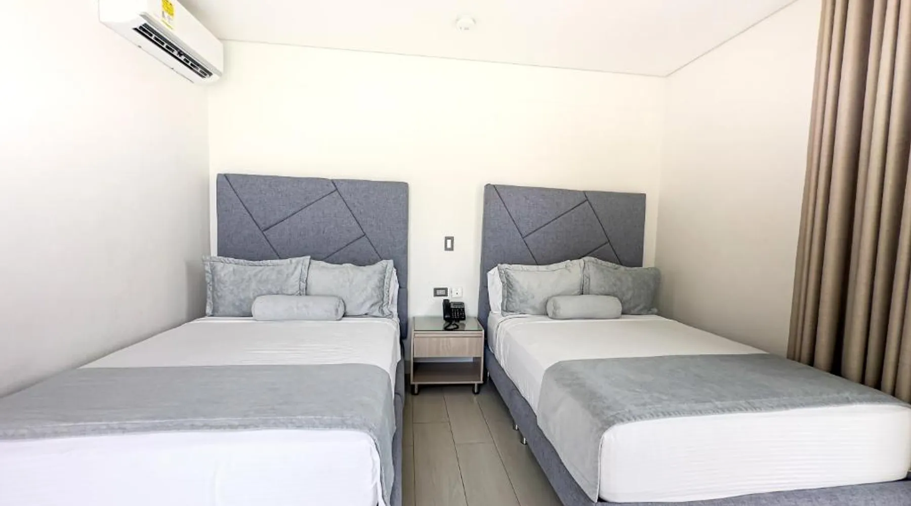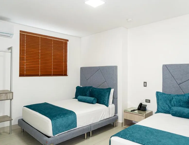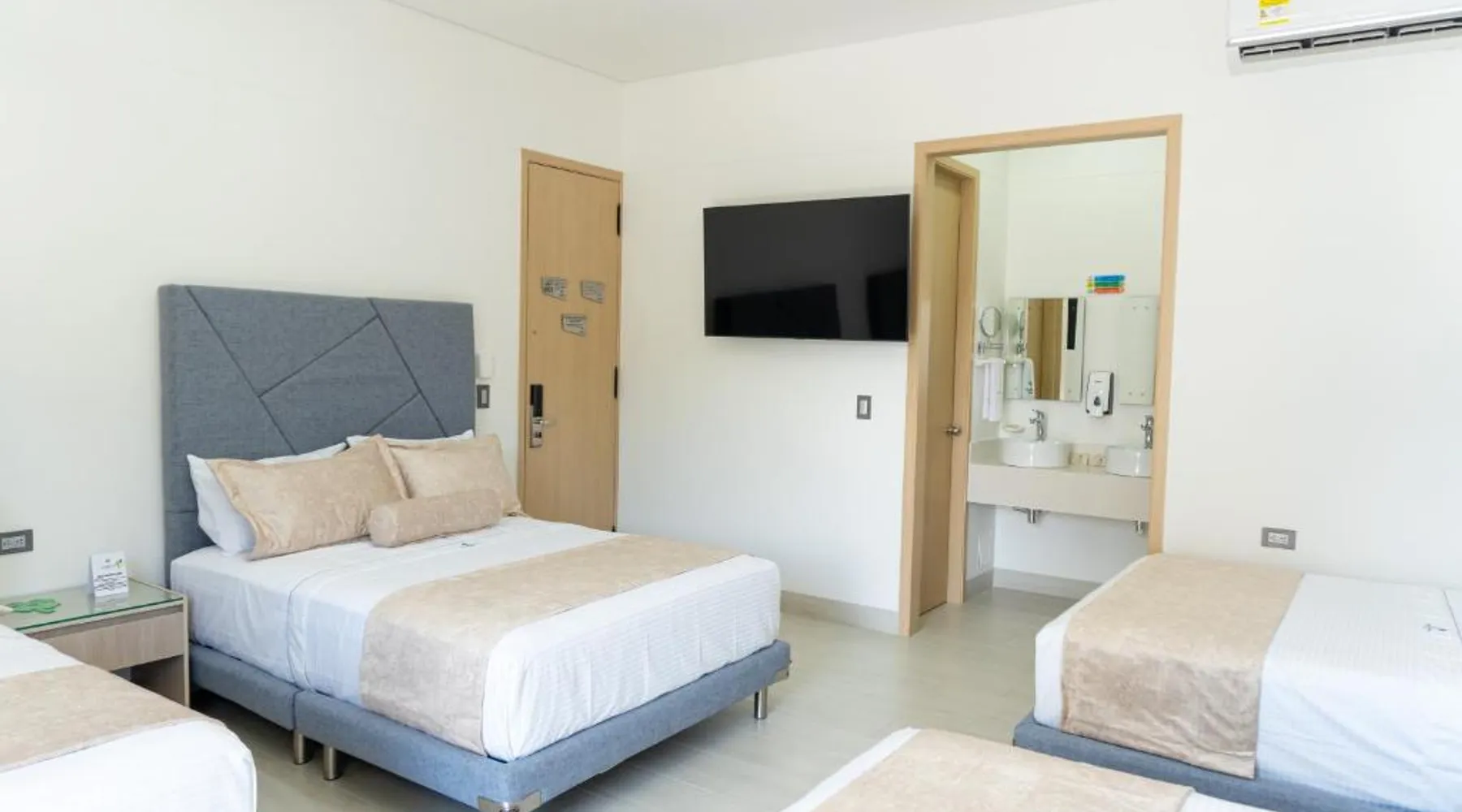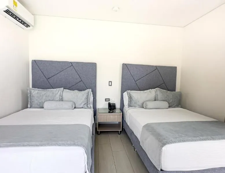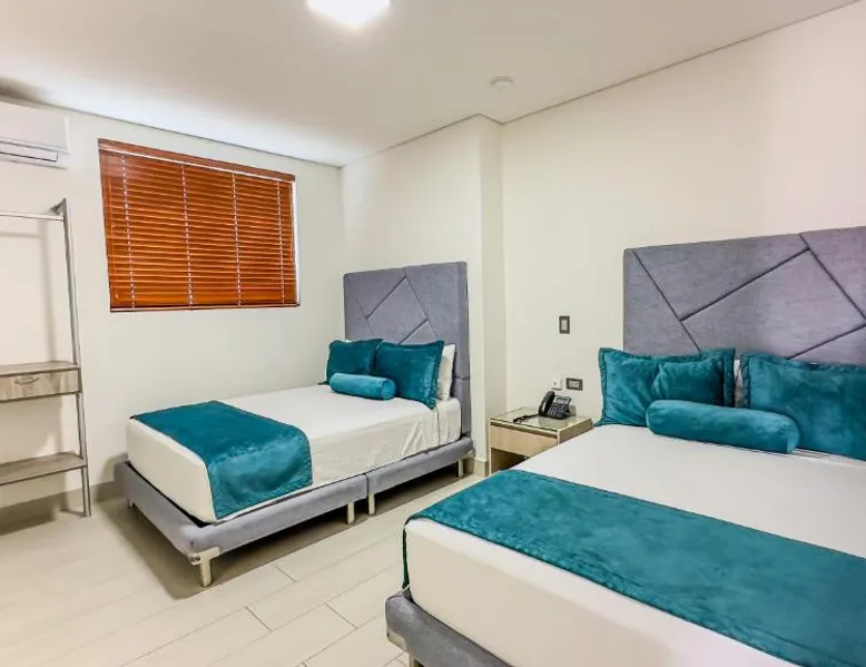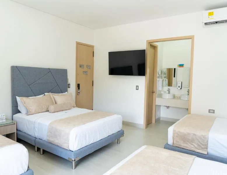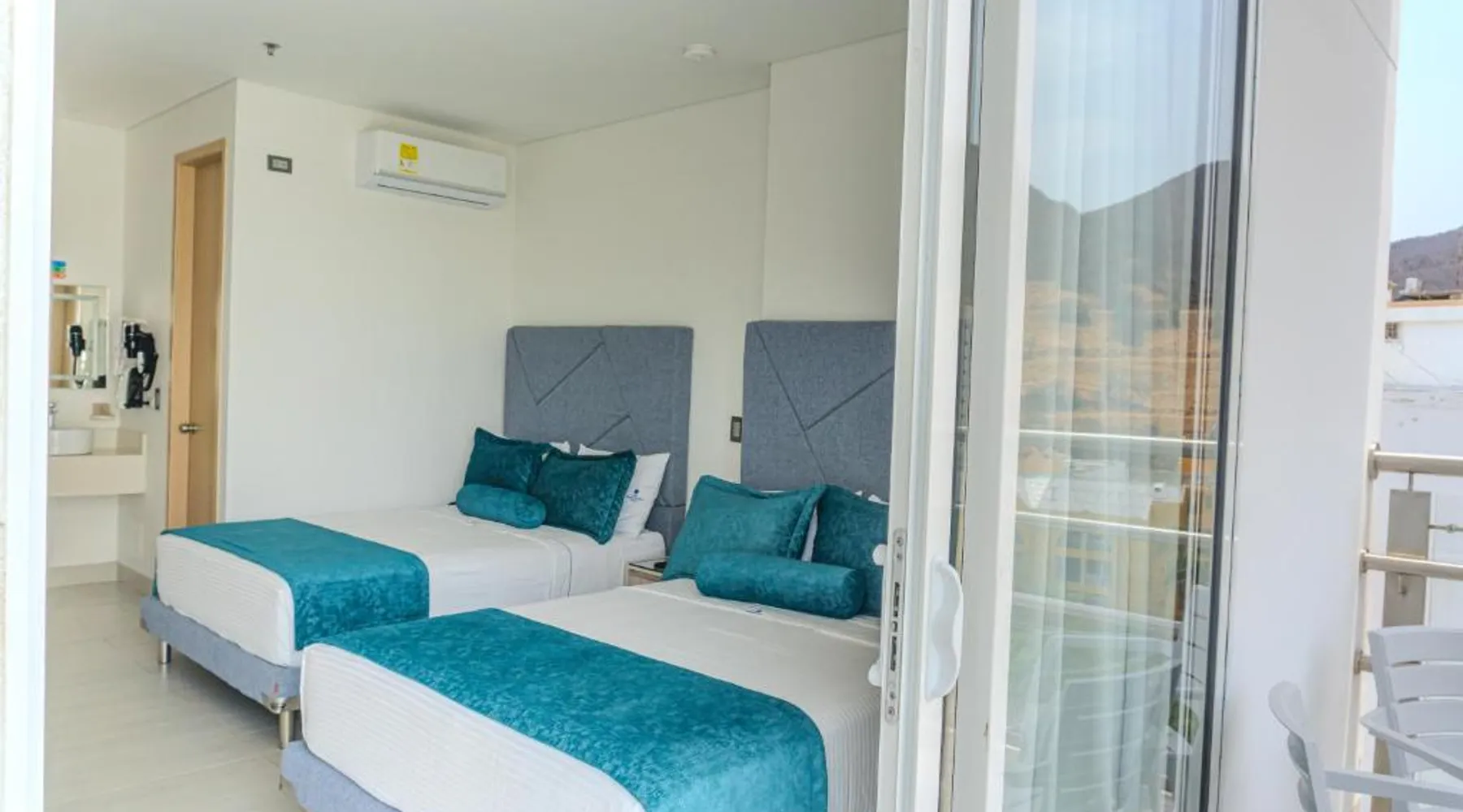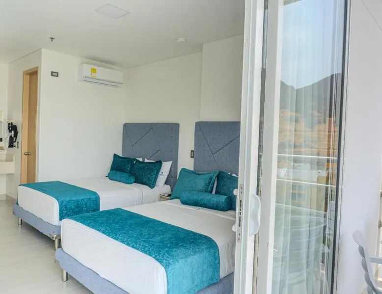 Comfortable Accommodations: Hotel Marco Polo Rodadero in Santa Marta offers family rooms with air-conditioning, private bathrooms, balconies, and free WiFi. Each room includes a TV, hairdryer, and free toiletries. Convenient Facilities: Guests enjoy a casino, 24-hour front desk, daily housekeeping, full-day security, and a tour desk. The hotel provides an American breakfast and a tour desk to explore nearby attractions. Prime Location: Located 6.2 mi from Simón Bolívar International Airport, the hotel is a 2-minute walk from El Rodadero Beach. Nearby attractions include Rodadero Sea Aquarium and Museum (1.3 mi) and Santa Marta Cathedral (3.1 mi). Guest Satisfaction: Highly rated for room cleanliness, convenient location, and room comfort. Featuring free toiletries, this twin room includes a private bathroom with a shower and a hairdryer. This twin room features air conditioning, a flat-screen TV and a balcony. The unit has 2 beds.