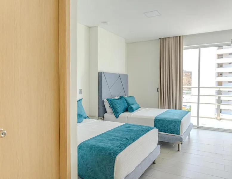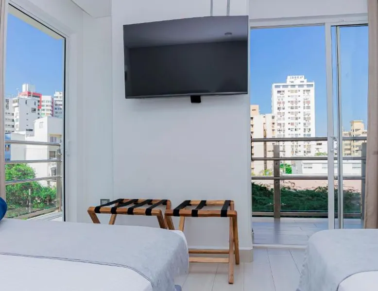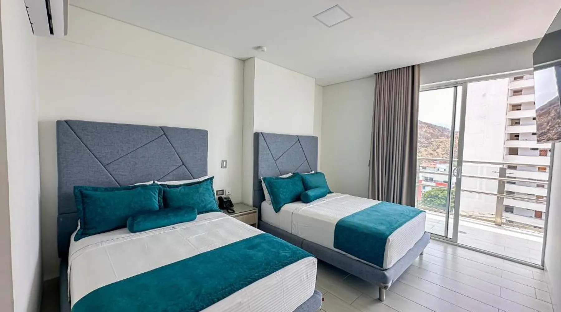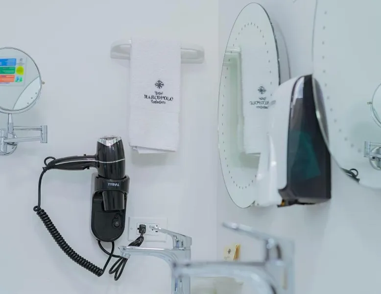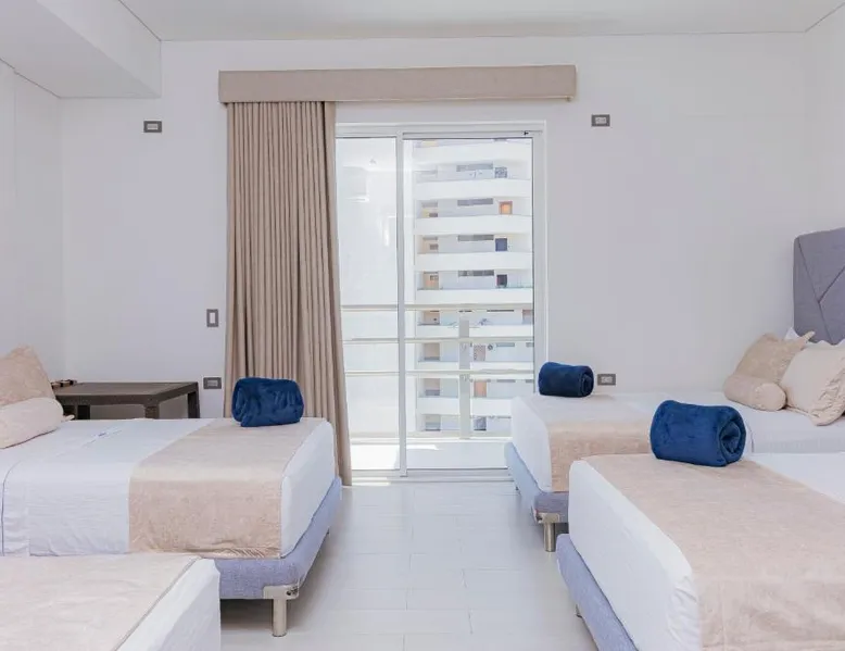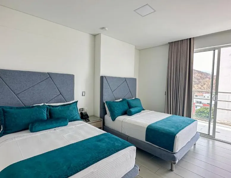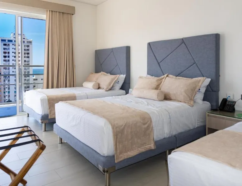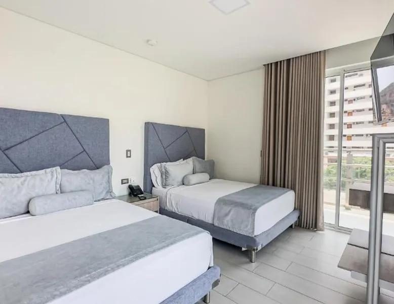 Comfortable Accommodations: Hotel Marco Polo Rodadero in Santa Marta offers family rooms with air-conditioning, private bathrooms, balconies, and free WiFi. Each room includes a TV, hairdryer, and free toiletries. Convenient Facilities: Guests enjoy a casino, 24-hour front desk, daily housekeeping, full-day security, and a tour desk. The hotel provides an American breakfast and a tour desk to explore nearby attractions. Prime Location: Located 6.2 mi from Simón Bolívar International Airport, the hotel is a 2-minute walk from El Rodadero Beach. Nearby attractions include Rodadero Sea Aquarium and Museum (1.3 mi) and Santa Marta Cathedral (3.1 mi). Guest Satisfaction: Highly rated for room cleanliness, convenient location, and room comfort. Featuring free toiletries, this twin room includes a private bathroom with a shower and a hairdryer. This twin room features air conditioning, a flat-screen TV and a balcony. The unit has 2 beds.