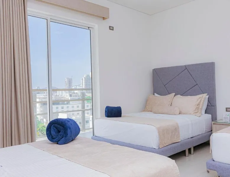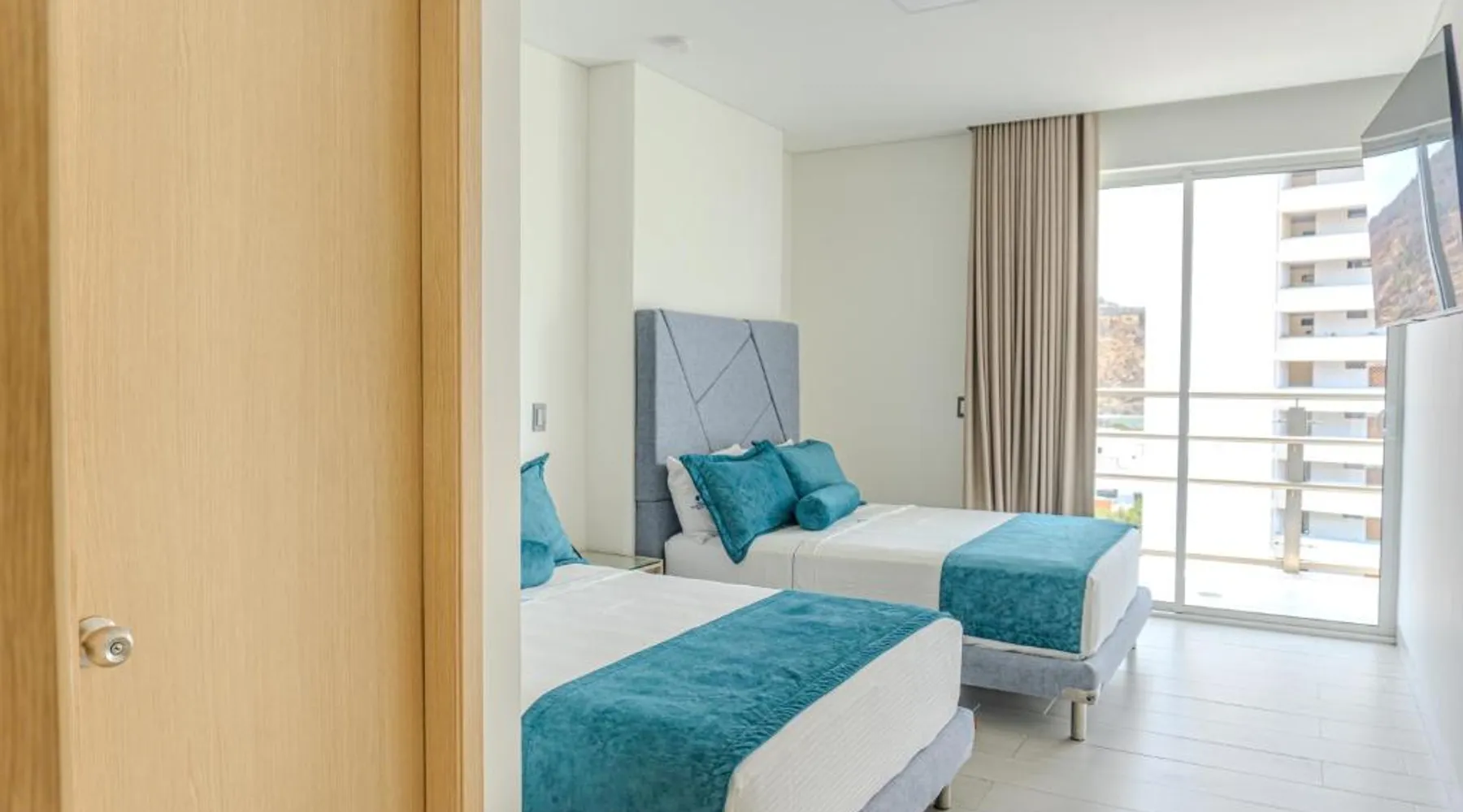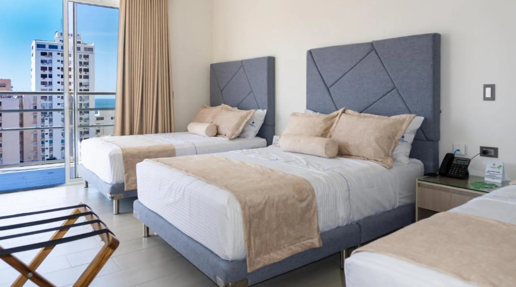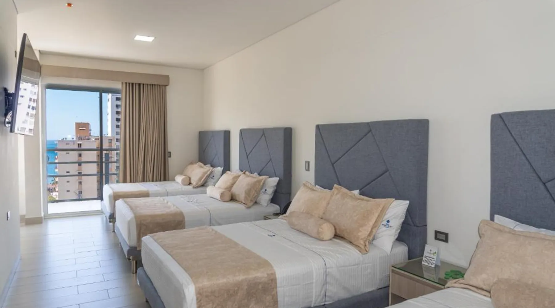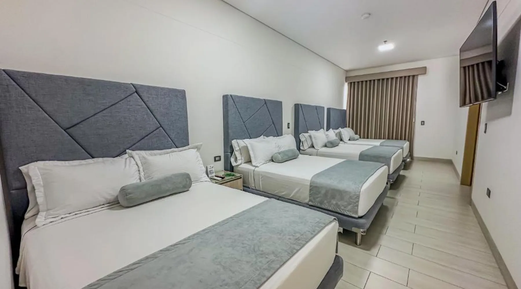 Comfortable Accommodations: Hotel Marco Polo Rodadero in Santa Marta offers family rooms with air-conditioning, private bathrooms, balconies, and free WiFi. Each room includes a TV, hairdryer, and free toiletries. Convenient Facilities: Guests enjoy a casino, 24-hour front desk, daily housekeeping, full-day security, and a tour desk. The hotel provides an American breakfast and a tour desk to explore nearby attractions. Prime Location: Located 6.2 mi from Simón Bolívar International Airport, the hotel is a 2-minute walk from El Rodadero Beach. Nearby attractions include Rodadero Sea Aquarium and Museum (1.3 mi) and Santa Marta Cathedral (3.1 mi). Guest Satisfaction: Highly rated for room cleanliness, convenient location, and room comfort. Featuring free toiletries, this twin room includes a private bathroom with a shower and a hairdryer. This twin room features air conditioning, a flat-screen TV and a balcony. The unit has 2 beds.