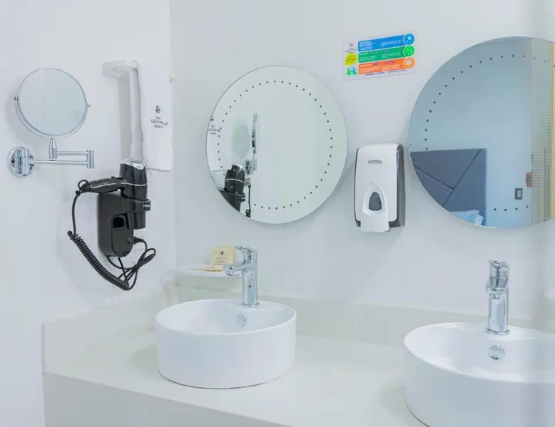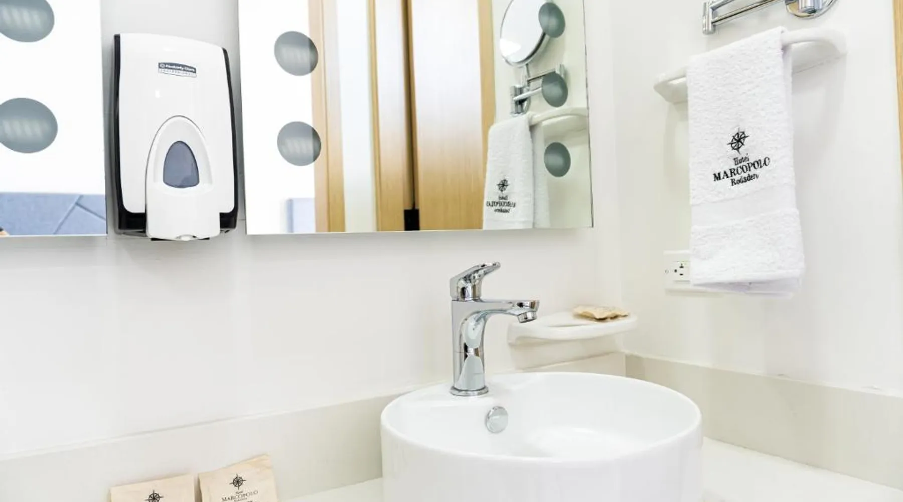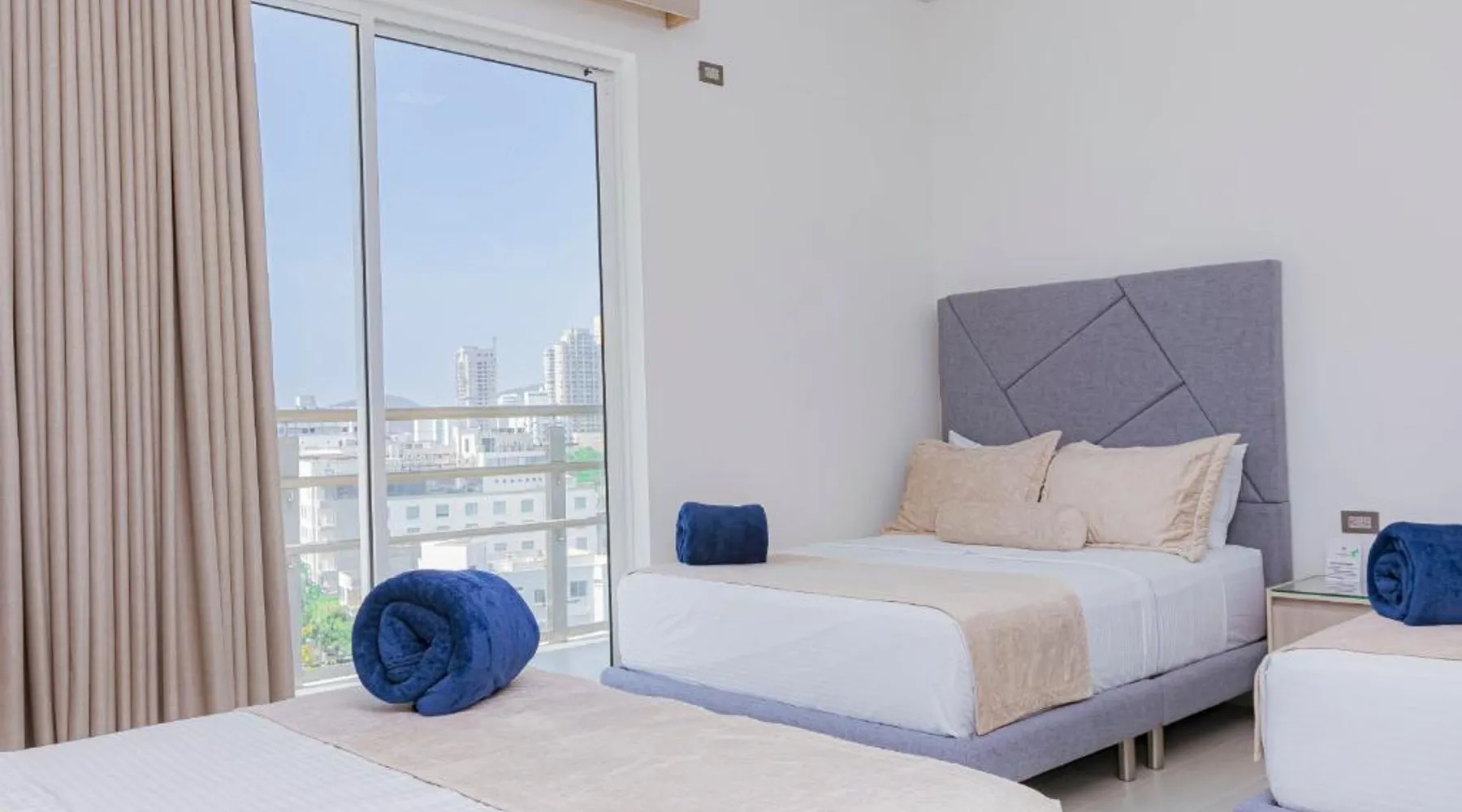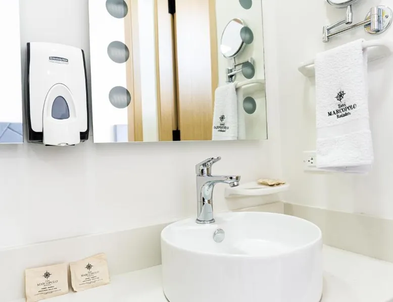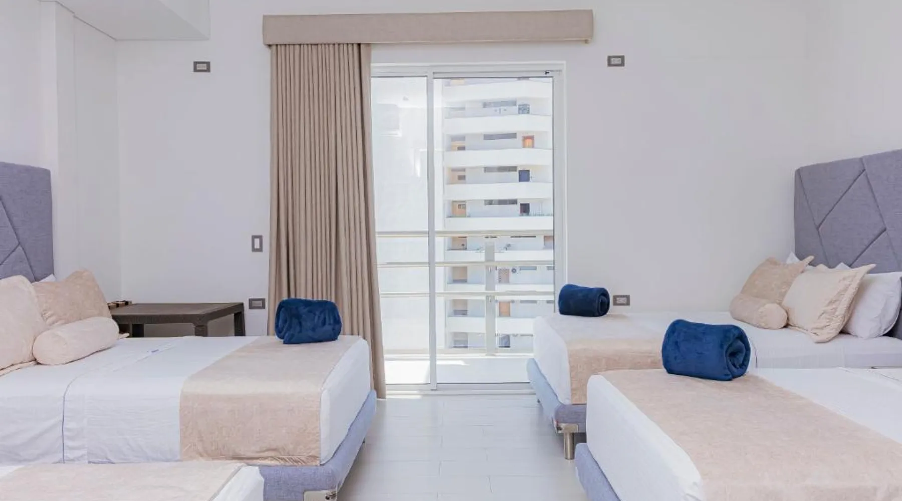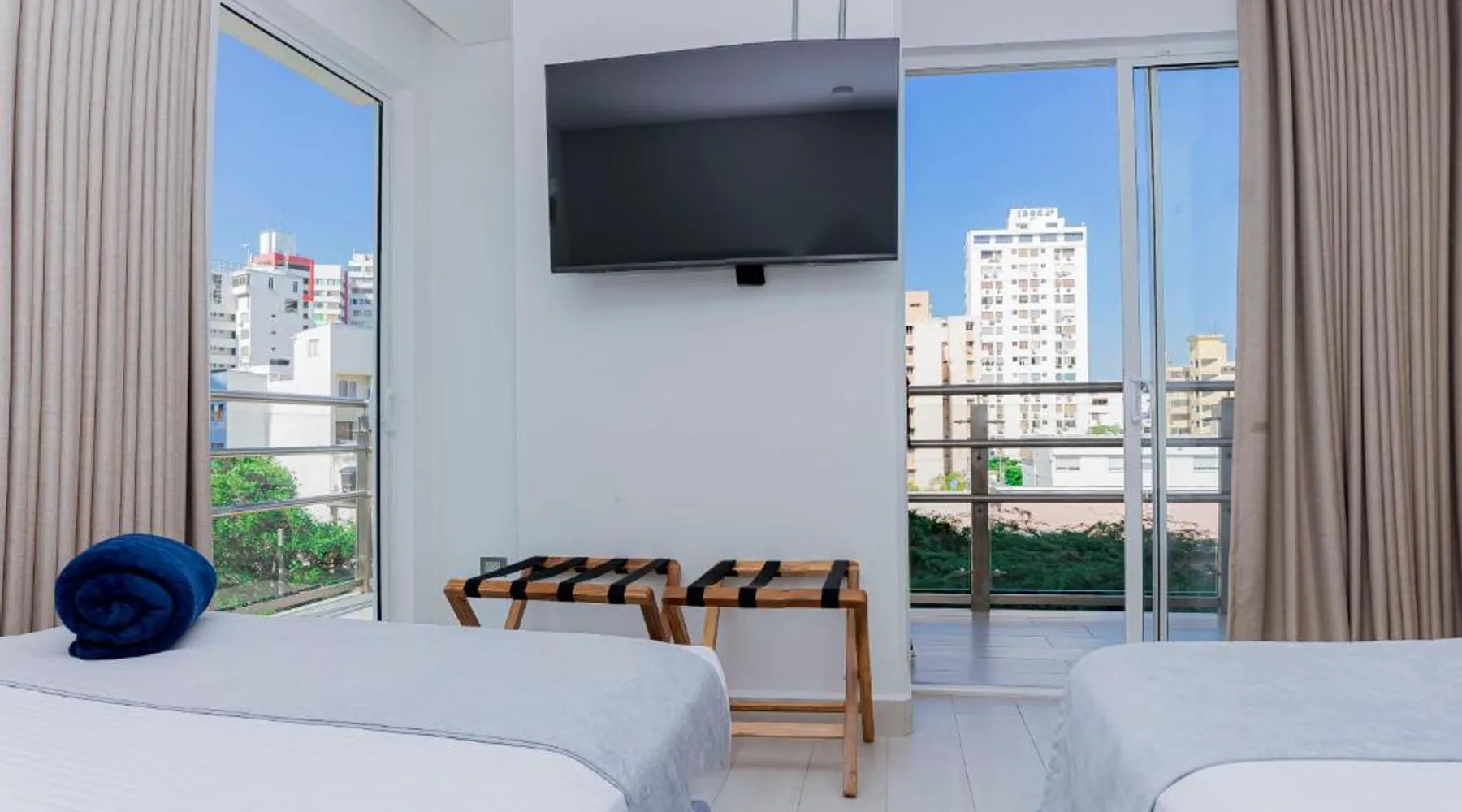 Comfortable Accommodations: Hotel Marco Polo Rodadero in Santa Marta offers family rooms with air-conditioning, private bathrooms, balconies, and free WiFi. Each room includes a TV, hairdryer, and free toiletries. Convenient Facilities: Guests enjoy a casino, 24-hour front desk, daily housekeeping, full-day security, and a tour desk. The hotel provides an American breakfast and a tour desk to explore nearby attractions. Prime Location: Located 6.2 mi from Simón Bolívar International Airport, the hotel is a 2-minute walk from El Rodadero Beach. Nearby attractions include Rodadero Sea Aquarium and Museum (1.3 mi) and Santa Marta Cathedral (3.1 mi). Guest Satisfaction: Highly rated for room cleanliness, convenient location, and room comfort. Featuring free toiletries, this twin room includes a private bathroom with a shower and a hairdryer. This twin room features air conditioning, a flat-screen TV and a balcony. The unit has 2 beds.