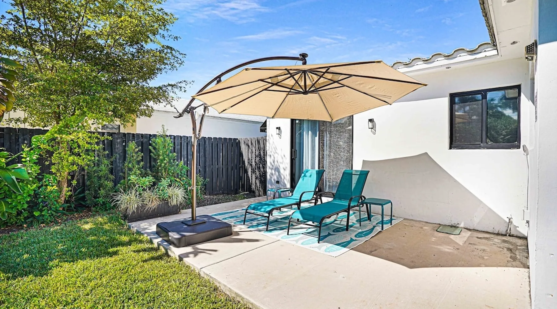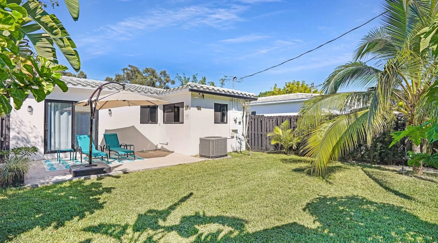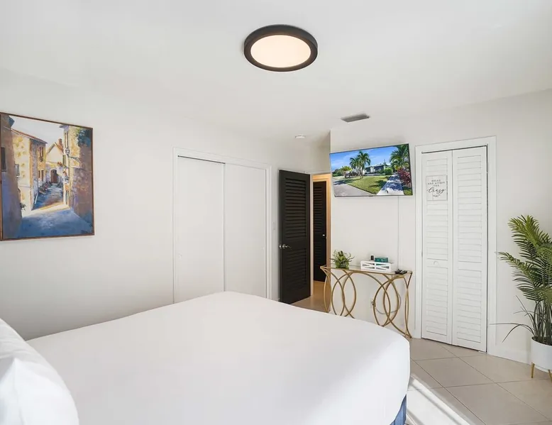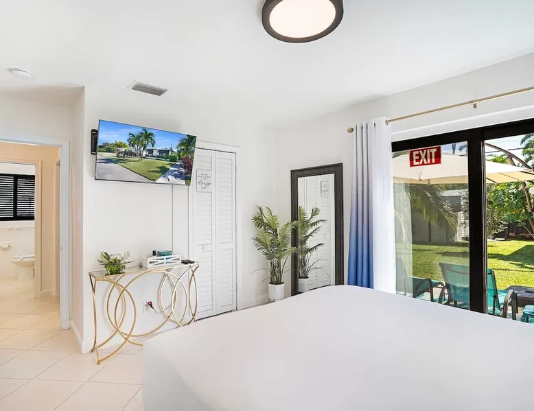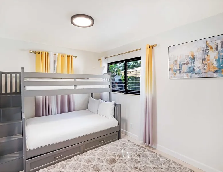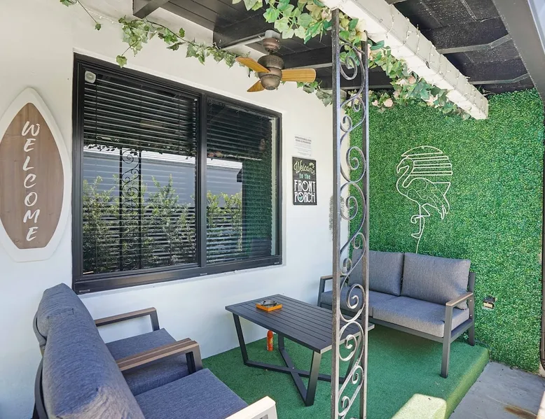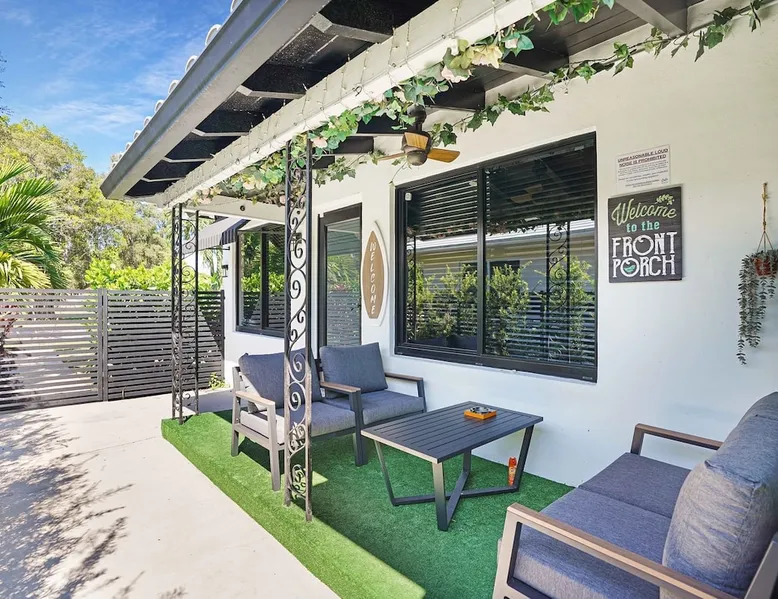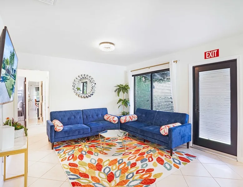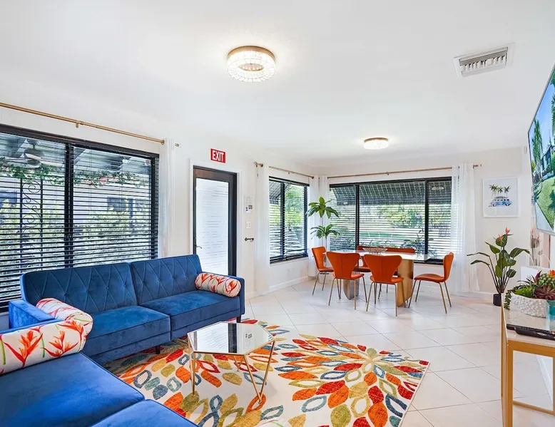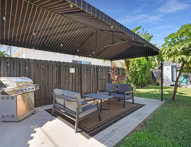 Unwind in this cozy 2-bedroom, 2-bath home just steps from Downtown Hollywood’s shops, dining, and nightlife. With a private backyard, fully stocked kitchen, and smart amenities, this home is the perfect mix of relaxation and convenience. Enjoy easy access to the beach, Publix, and local attractions while staying in a peaceful neighborhood retreat. The space – 2 bedrooms, 2 bathrooms, sleeps 4 – Master bedroom with plush queen bed + ensuite bath – Second bedroom with 2 twin beds – Fully equipped kitchen with modern appliances – Open living room with smart TV + streaming – Washer + dryer in unit – High-speed Wi-Fi + dedicated workspace – Central A/C + heating – Fenced backyard with BBQ grill, sun loungers, and outdoor seating Guest access – The entire home is yours during your stay – Self check-in with smart lock – Free parking on-site for 1 vehicle Other things to note – Guests must sign a Vacation Rental Agreement before check-in (per City of Hollywood regulations) – Property includes a noise monitoring system (no cameras inside) – Quiet hours: 10 PM – 8 AM (strictly enforced by city ordinance) – Pets allowed with approval; assistance animals always welcome – No parties or events FAQ ➤ Is the beach close by? Yes, Hollywood Beach and the Boardwalk are just a 7-minute drive. ➤ Do I need to sign anything? Yes, the Vacation Rental Agreement is required before check-in. ➤ Can I bring pets? Yes, small pets are allowed with approval (fee applies).