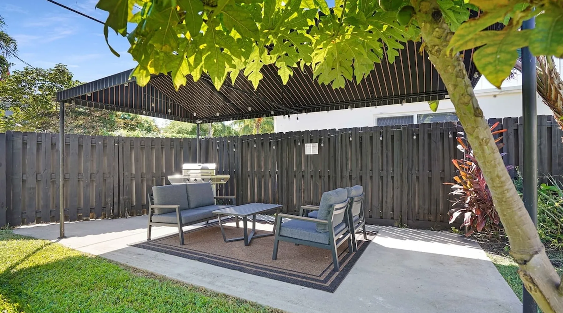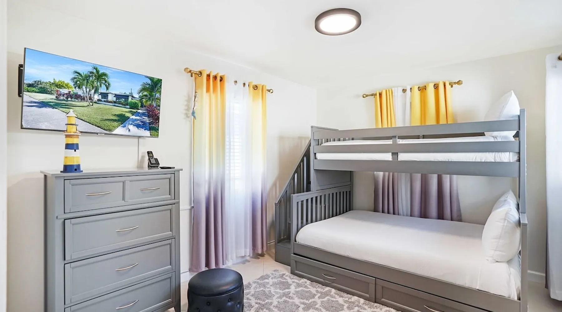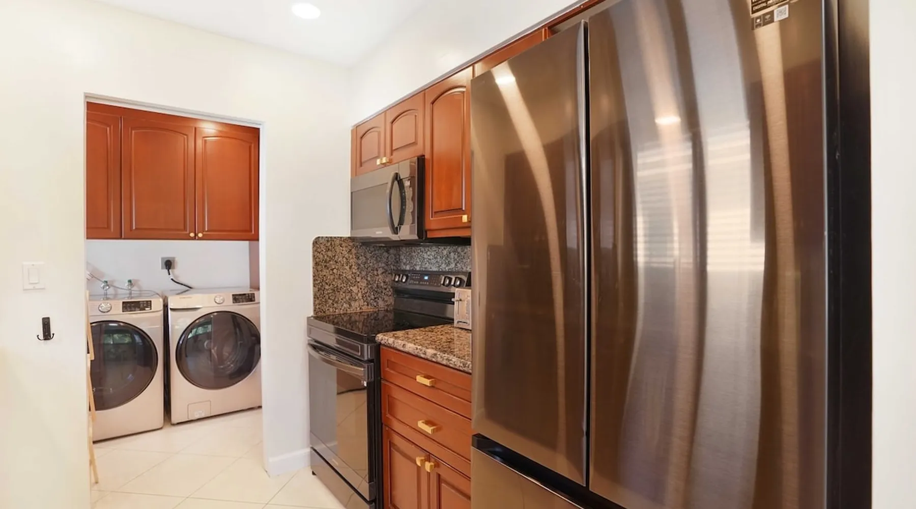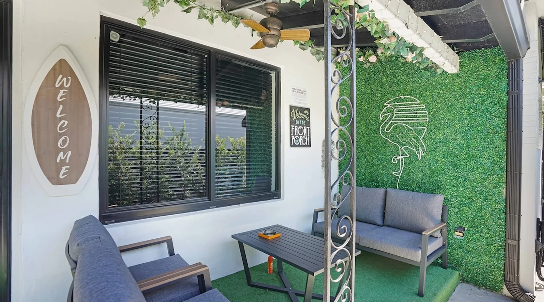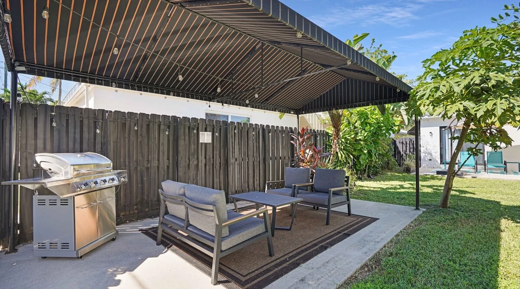 Unwind in this cozy 2-bedroom, 2-bath home just steps from Downtown Hollywood’s shops, dining, and nightlife. With a private backyard, fully stocked kitchen, and smart amenities, this home is the perfect mix of relaxation and convenience. Enjoy easy access to the beach, Publix, and local attractions while staying in a peaceful neighborhood retreat. The space – 2 bedrooms, 2 bathrooms, sleeps 4 – Master bedroom with plush queen bed + ensuite bath – Second bedroom with 2 twin beds – Fully equipped kitchen with modern appliances – Open living room with smart TV + streaming – Washer + dryer in unit – High-speed Wi-Fi + dedicated workspace – Central A/C + heating – Fenced backyard with BBQ grill, sun loungers, and outdoor seating Guest access – The entire home is yours during your stay – Self check-in with smart lock – Free parking on-site for 1 vehicle Other things to note – Guests must sign a Vacation Rental Agreement before check-in (per City of Hollywood regulations) – Property includes a noise monitoring system (no cameras inside) – Quiet hours: 10 PM – 8 AM (strictly enforced by city ordinance) – Pets allowed with approval; assistance animals always welcome – No parties or events FAQ ➤ Is the beach close by? Yes, Hollywood Beach and the Boardwalk are just a 7-minute drive. ➤ Do I need to sign anything? Yes, the Vacation Rental Agreement is required before check-in. ➤ Can I bring pets? Yes, small pets are allowed with approval (fee applies).