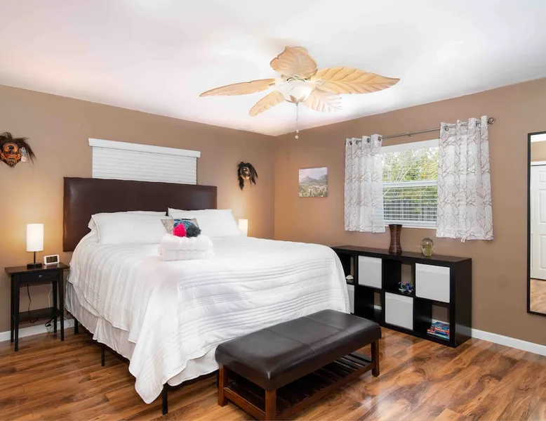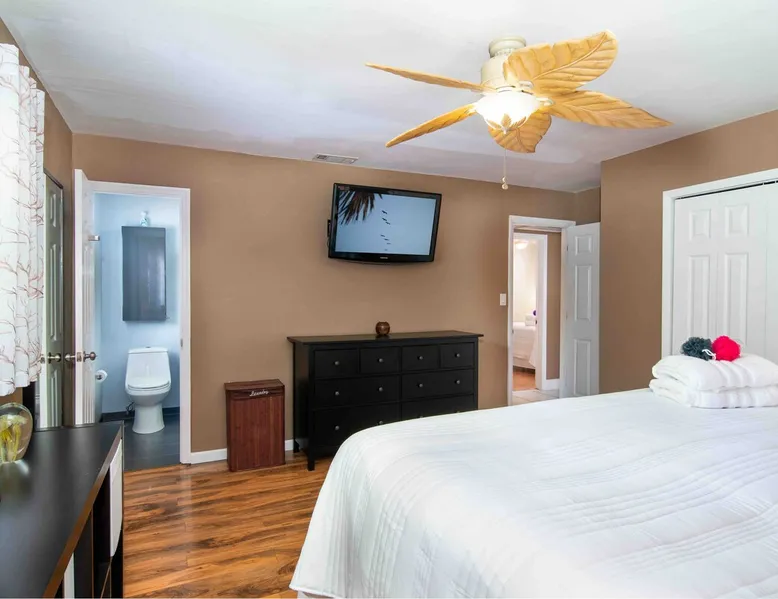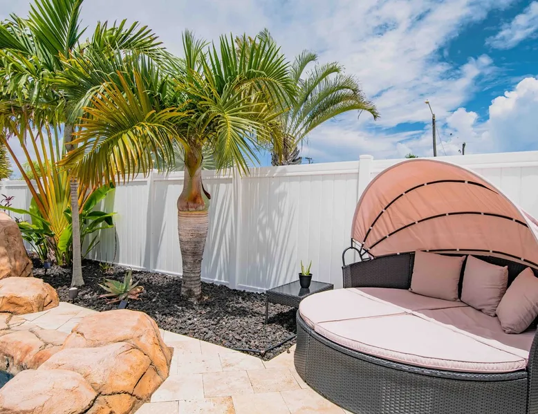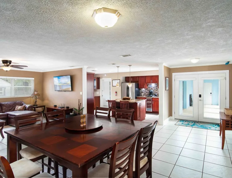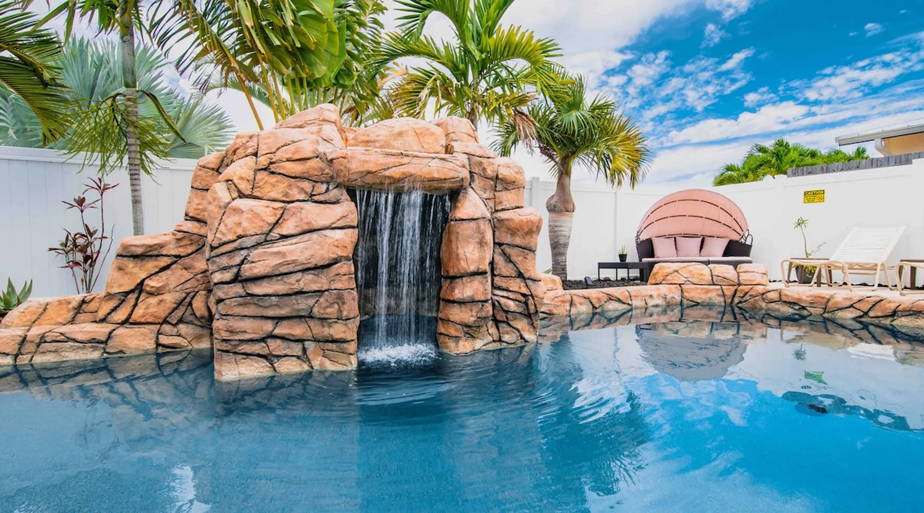 Welcome to my 5 bedroom beachside home with beautiful pool/swim-in-grotto. The home is on a barrier island, with a 10 minute walk to the beach. The space has a fully equipped kitchen, BBQ grill for entertaining along with plenty of indoor and outdoor seating. There is a international airport 20 minutes away, Disney is about an hour and Kennedy space center is a 45 minute drive. Book you unforgettable vacation at the Beachside Grotto! The space 5 bedrooms 1-10 guests