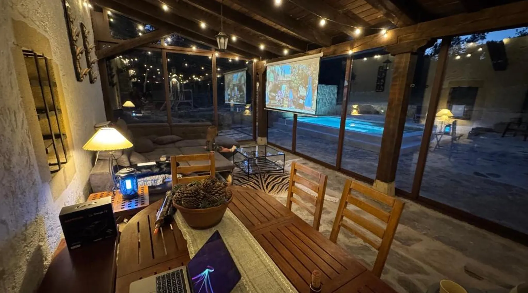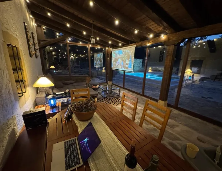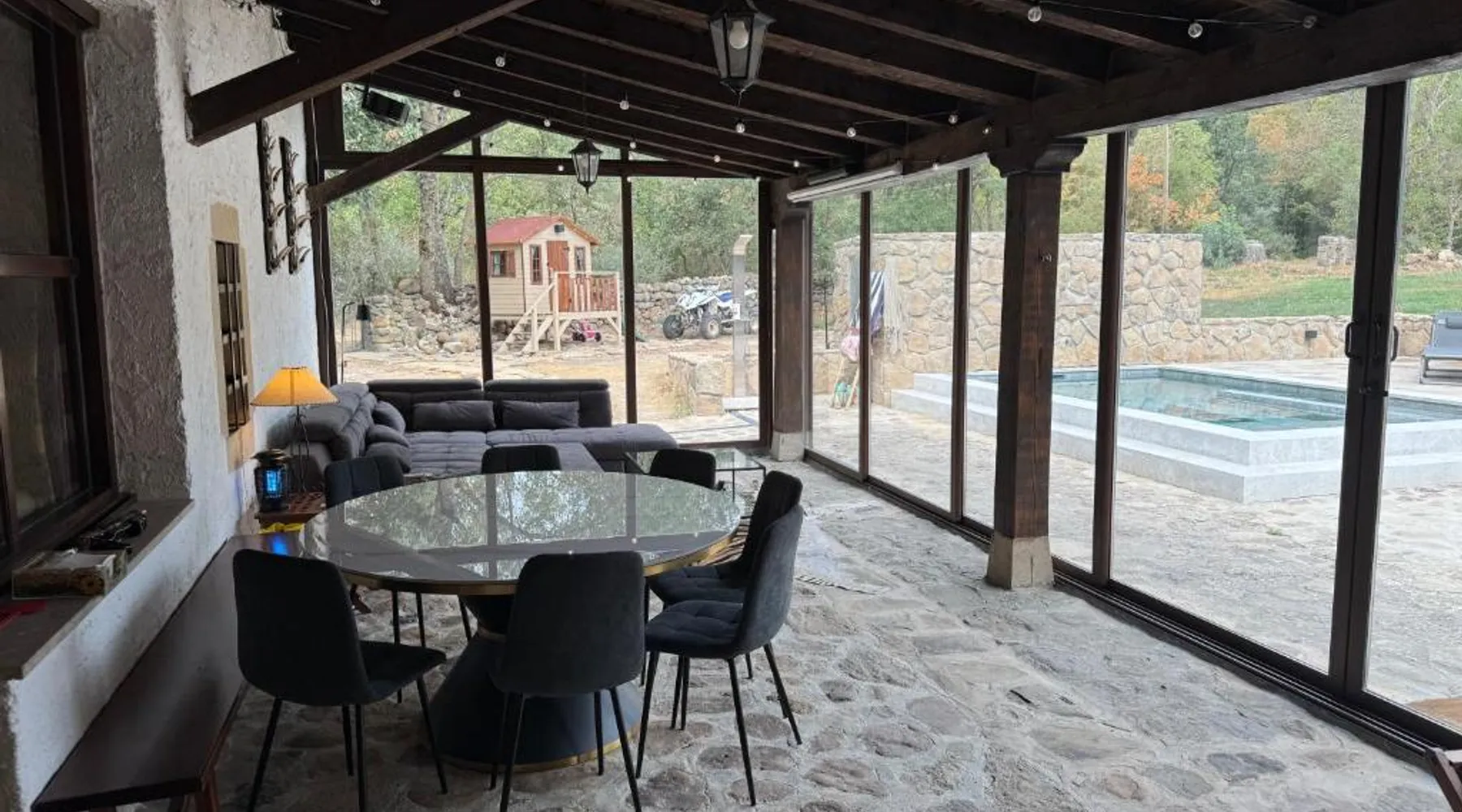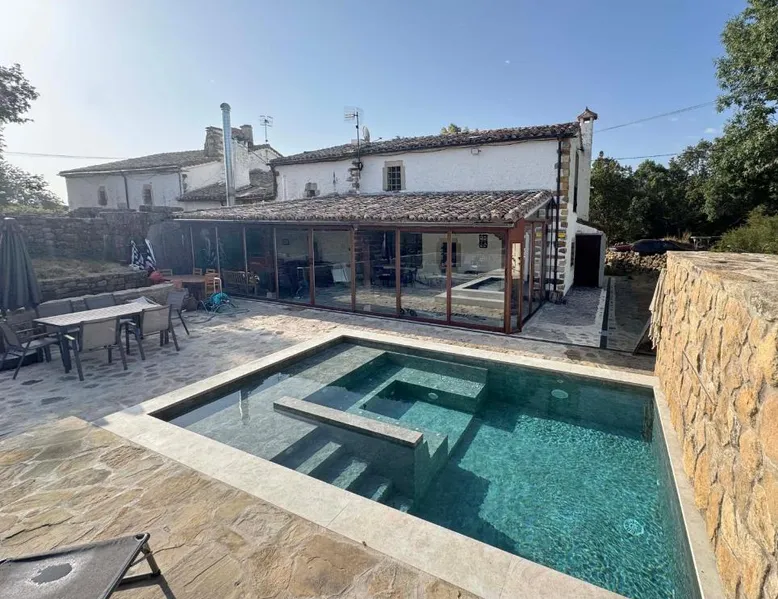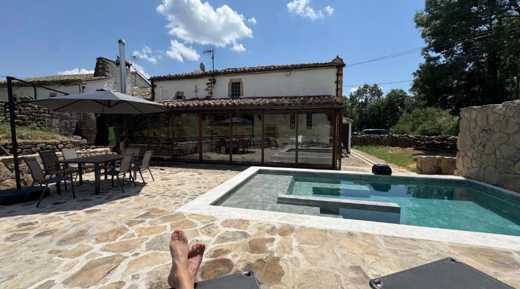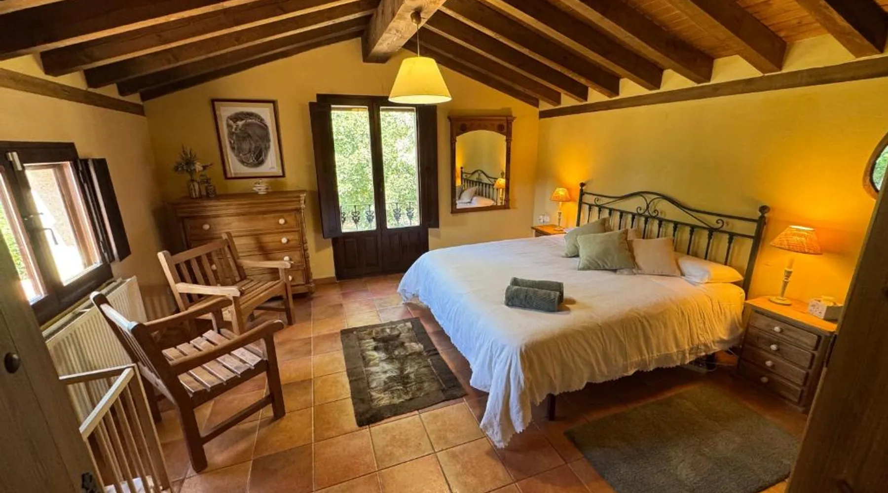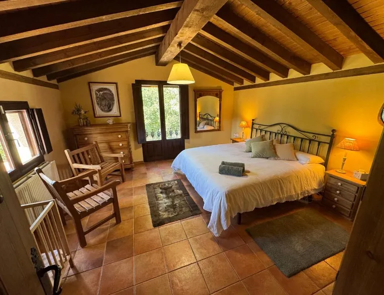 Historic Charm: Villa El Molino Blanco in Sotillo del Rincón offers a spacious setting within a historic building. Guests enjoy a swimming pool with stunning views, a lush garden, and an open-air bath. Modern Amenities: The chalet features free WiFi, a private check-in and check-out service, a lounge, and an outdoor fireplace. Additional facilities include a hot tub, games room, and bicycle parking. Comfortable Accommodations: With five bedrooms and two bathrooms, the property provides a comfortable living space. The kitchen is equipped with modern appliances, and the dining area offers garden and mountain views. Local Attractions: Located 67 mi from Logroño–Agoncillo Airport, Villa El Molino Blanco is near Mayor Soria Plaza (18 mi), Numantino Museum (19 mi), and Soria Bus Station (20 mi). Guests can enjoy skiing and cycling activities. This chalet's special feature is the fireplace. This spacious chalet consists of 3 living rooms, 5 separate bedrooms and 2 bathrooms with a bath and a shower. Guests will find a refrigerator, a dishwasher, kitchenware and an oven in the kitchen. The chalet also offers a barbecue. Featuring a terrace with garden views, this chalet also provides a washing machine and a flat-screen TV with streaming services. The unit offers 7 beds.