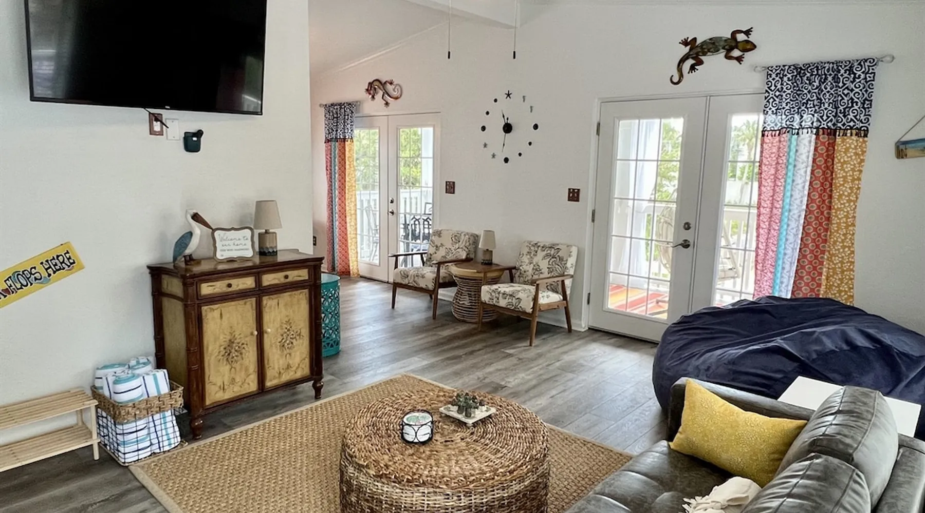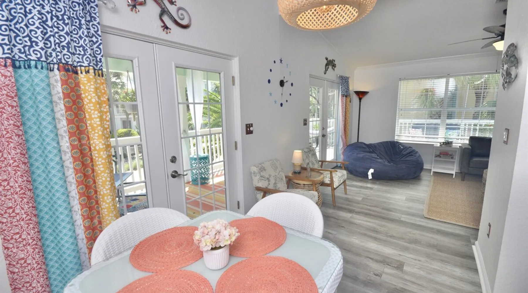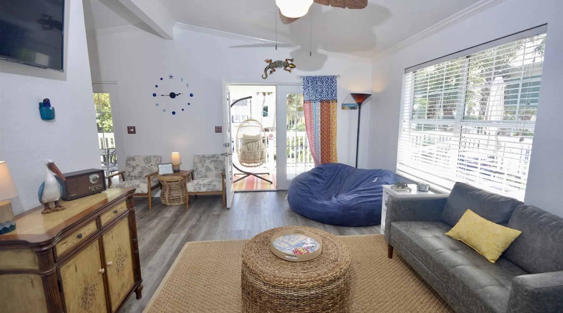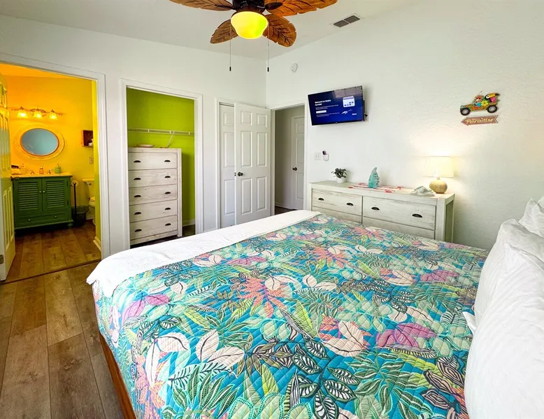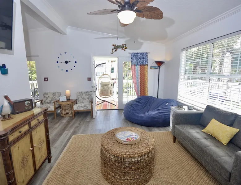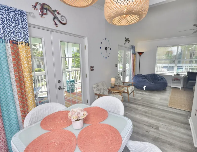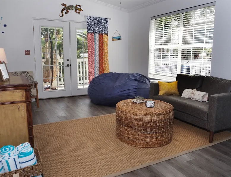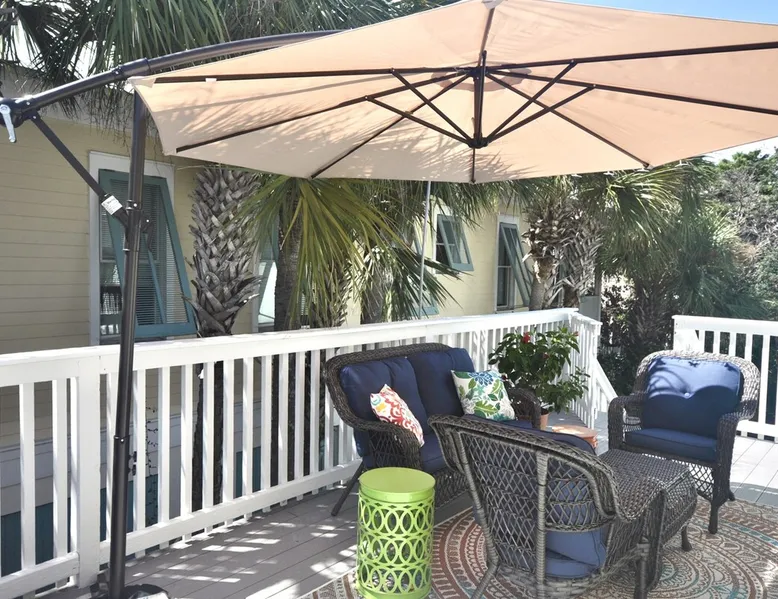 This beach cottage is VERY popular so book early! Vibrant Snowbird community! This cottage has a secret! Once here, guests don't want to leave! ・Private Beach Access 1 block ・Beach towels/cart/chairs ・Well-equipped Kitchen ・Pack-n-Play/High Chair ・Firepit ・Walk to coffee, shops, bars, beachfront dining ・Nearby boat ramp, pickleball ・2 mi. to Outlets, shopping, grocery Click ❤️ at top to bookmark this listing! Read all the great details about Remarkable MOJITO GRANDE! The space — ABOUT MOJITO GRANDE — ・BDRM 1: Twin “floor bunk” w/stairs (no ladder) ⏤ great for smaller children. TV ・BDRM 2: Queen bed w/hybrid mattress, closet/dresser, and an HDTV. ・BDRM 3: King bed w/memory foam mattress, dresser/chest/closet, TV, ensuite bath. ・Bath1: Shared, tub/shower combo ・Bath2: In Master, dual-head shower. ・Laundry: washer/dryer, iron & ironing board ・Living Rm: Loveseat, TV, chairs, french doors to deck ・Kitchen: stainless appliances w/dishwasher, drip & K-cup coffee machines, pantry ・Dining: 4-seat island table and french doors to deck ・Deck: 4-seat cafe table, swing chair, hammock, conversation set, umbrella. ・Ground level: covered seating area w/table, fire pit, shower, shed w/beach gear, parking for 3 vehicles At the entrance to the cottage, you’ll be greeted by our comfortable outdoor seating area, with a large offset umbrella, set amongst palm trees and plants. The nearby hammock calls to you to try it, perfect for those lazy time naps. Continuing to the front deck, framed by billowy curtains, there is a 4-seat cafe table for dining al-fresco and a hanging egg chair, perfect for reading in the gulf breezes. Two sets of French doors provide easy access. Note: Mojito Grande is non-smoking property. — BEACH — The private beach access gate is 1 block west, only 160 steps. Gate code will be in our digital guidebook. When security guards are present, they require proof of occupancy and will issue wristbands for your stay. They are very strict about this so we make it easy by sending you a special copy of your receipt, with the specific information they want, just before your arrival so you will have it handy in your inbox. Once on the beach. you have access to the area South of the Erosion Control Line (plainly marked). If you prefer, beach services (chairs, umbrellas, wave runners, etc) can be arranged with the licensed vendor at fees they set. This information and contact info is in the digital guidebook. Guest access Guest has access to the whole property, except for a private closet. There are no shared spaces. Access is provided by contactless check-in and a unique code issued within 48 hours of scheduled arrival. Other things to note — WHAT WE PROVIDE — We provide a good number of consumables to start your stay, but they are not intended to cover an entire stay. ・high-quality bedding/blankets/comforters ・bath towels/washcloths/hand towels/make-up towels/bath mats ・beach wagon, chairs, toys, & beach towels ・basic cleaners & cleaning tools* ・starter set of toilet paper, paper towels, trash bags ・dispensers w/shampoo, conditioner, body wash, hand soap, hand sanitizer ・laundry pods, dryer sheets, dishwasher pods, dish soap & dishwasher tabs ・high chair & Pack-n-Play (if requested) We try to stock kitchen essentials (foil, plastic wrap, salt/pepper, basic spices, etc.). But we ask guests to replace what they use of these. Our team tries, but it is just not possible to inventory them after every stay. If we have not been told that something has run out, you may not find it. — WHAT YOU NEED TO BRING — ・sunscreen ・your stress and cares for our beach to melt them away ・A refundable security deposit of $300.00 is required by placing a hold on the credit card provided. — BOOKING INFO — Once reserved here, we will send a confirmation message with a link to our secure website and instructions to finalize your booking within 24 hours, or the reservation may be canceled. The Renter of record must: ・meet the minimum age; ・provide credit card for the security deposit; ・be present during entire stay; ・upload a valid government-issued ID; ・sign our rental agreement; and, ・provide names & ages of the entire party. When completed, we will provide check-in information 2 days prior to your scheduled arrival by message and in our digital guidebook. Pricing is updated frequently. Rates are not final until the property is fully reserved. We are unable to accommodate luggage drop-off, early arrivals, or late checkouts. — CANCELLATION POLICY — Be sure you understand our cancellation policy as described here on the site and in the Renter Agreement. ⏤ TRAVEL INSURANCE ⏤ We STRONGLY recommend Travel Insurance, especially if there is a chance of cancellation due to health, work, government policies, weather, or other reasons. Coverage is available during booking or from other online sources. — ACCIDENTAL DAMAGE COVERAGE — Accidents happen and we don't want you to worry over simple things. ・We cover accidental damage up to $500 - no cost to you. ・This "no-hassle" coverage protects against damage like broken dishes, damaged furniture or fixtures, etc. ・Damage must be reported *during* the stay to be eligible. ・Photos are required - please do not dispose of the broken item unless specifically instructed. The coverage does not include: ・bedding & linens ・intentional damage ・missing items ・unreported damage found after departure ・shipping, rush fees, additional cleaning, or off-hours labor costs. With any of these incidents, they will be charged to the security deposit first, then to the card on file. Coverage does not include "wetting" the bed. It will result in forfeiture of the entire security deposit. ⏤ DIGITAL GUIDEBOOK ⏤ When Renter Agreement is signed, we'll send a link to your personalized version of our digital guidebook for the property. No app to download. No account to create. Easy
