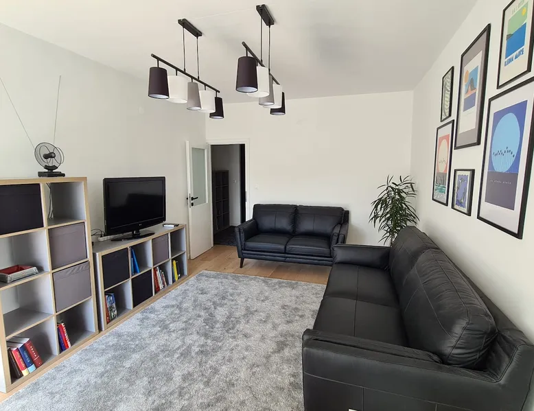 Spacious two-bedroom apartment with two bedrooms, living room, fully equipped kitchen, two toilets and balcony overlooking the park. Each room has a double bed, and the living room has a three-seater sofa and a two-seater sofa. The apartment has three air conditioners and a washing machine. It is located in a quiet neighborhood just a few minutes walk to the city center. There is no private parking, but you can use the parking along the road around the building. Nearby is a green recreational area with beaches and trails for walking and running.