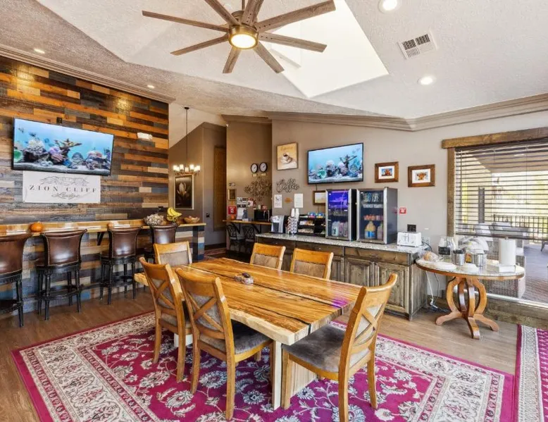 Comfortable Accommodations: Zion Cliff Lodge in Hildale offers 4-star comfort with air-conditioning, free WiFi, and private bathrooms. Each room includes a kitchenette, dining area, and work desk, ensuring a pleasant stay. Modern Amenities: Guests enjoy free on-site private parking, streaming services, and a fully equipped kitchen with a refrigerator, oven, and dishwasher. Additional amenities include a washing machine, barbecue, and free toiletries. Outdoor Spaces: The hotel features a beautiful garden and a seating area, providing relaxing outdoor spaces. A dining area and work desk cater to both leisure and business travelers. Convenient Location: Located 46 mi from St. George Regional Airport, the lodge offers easy access to local attractions. Free WiFi and streaming services enhance the guest experience. Offering free toiletries, this studio includes a shared bathroom with a shower and a hairdryer. The air-conditioned studio offers a flat-screen TV with streaming services, a washing machine, a tea and coffee maker and a seating area. The unit offers 2 beds.