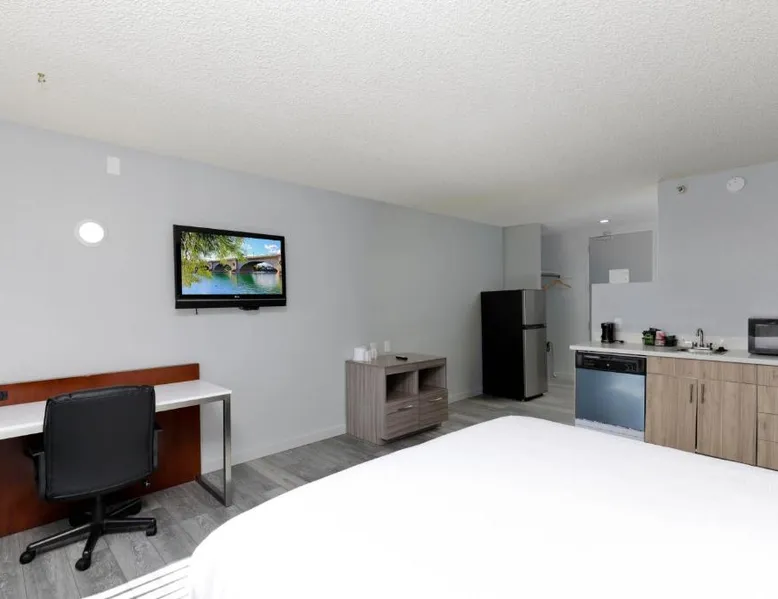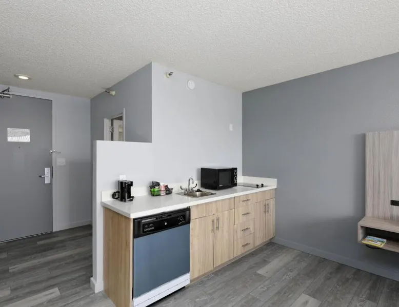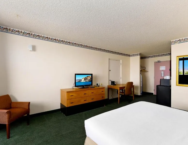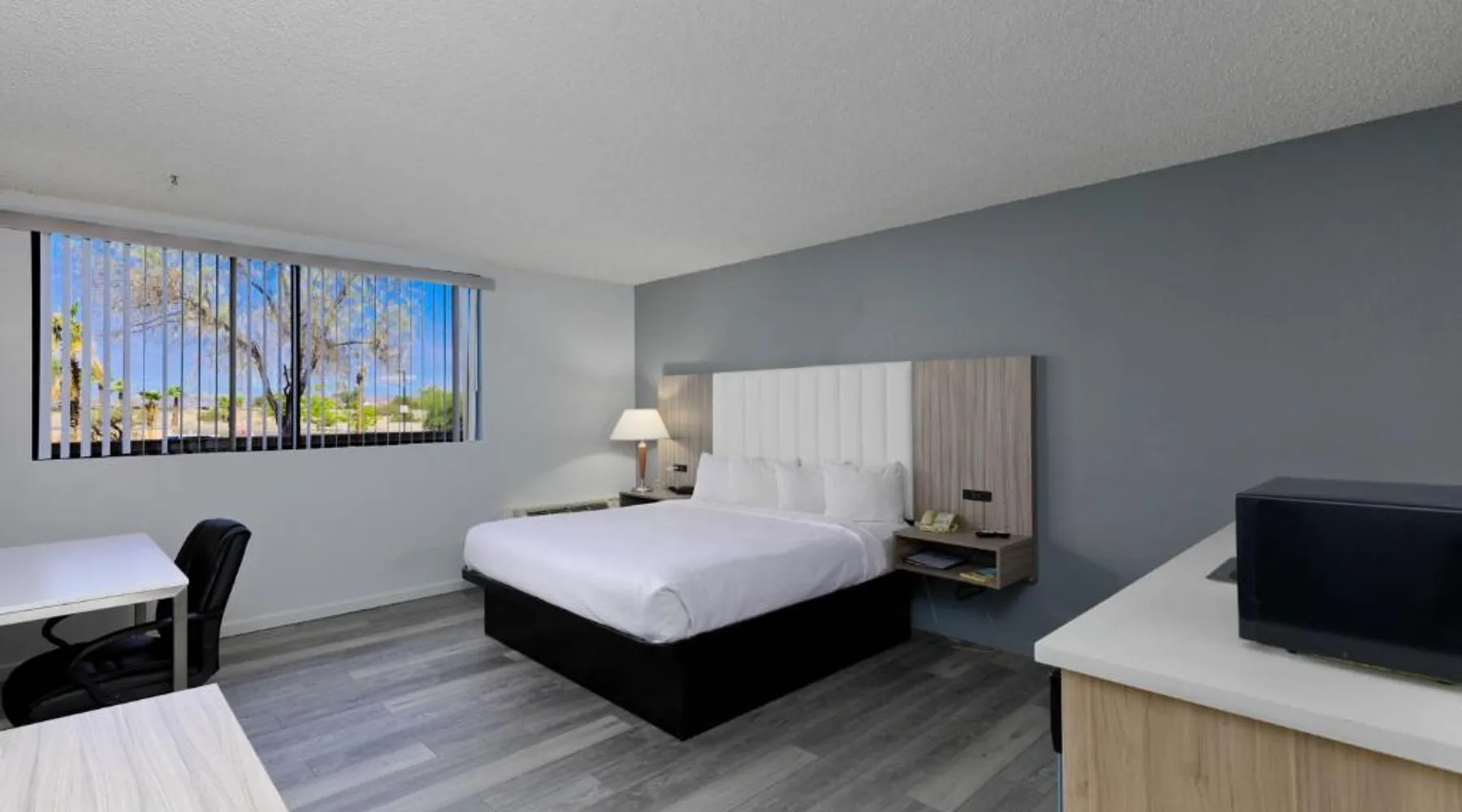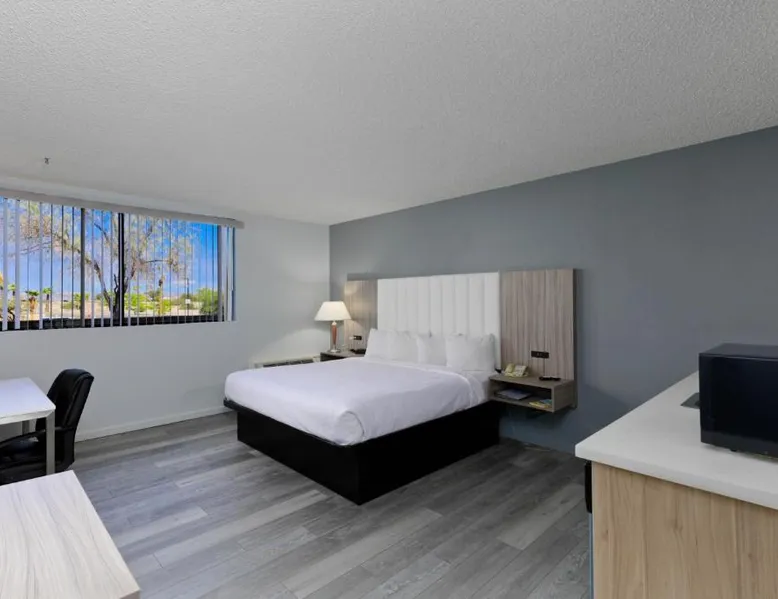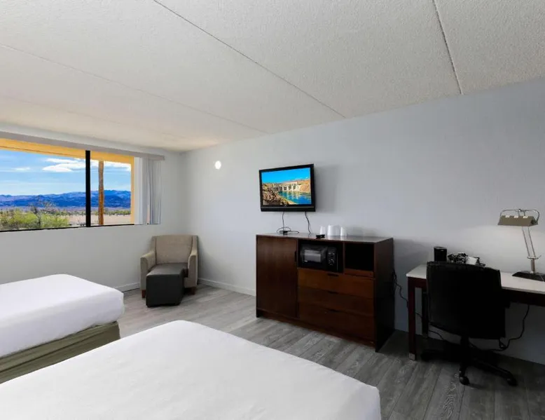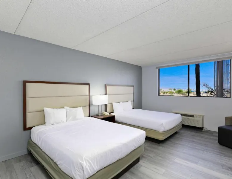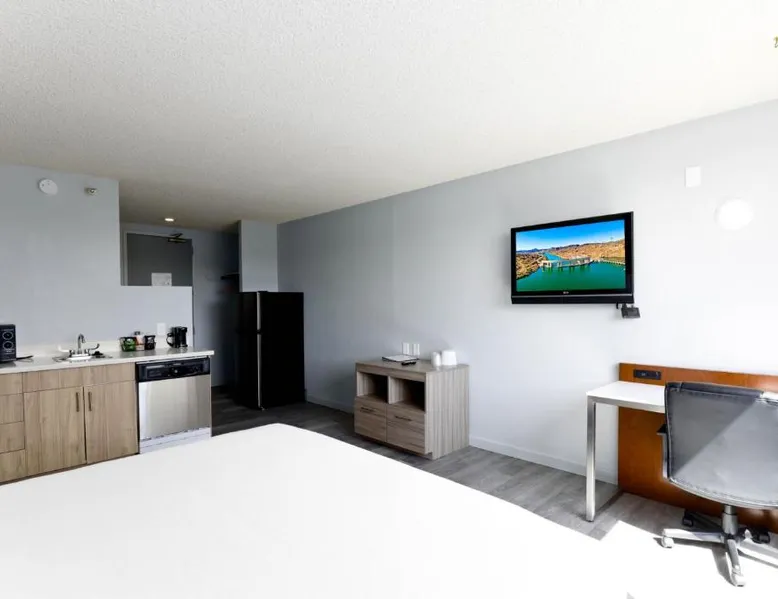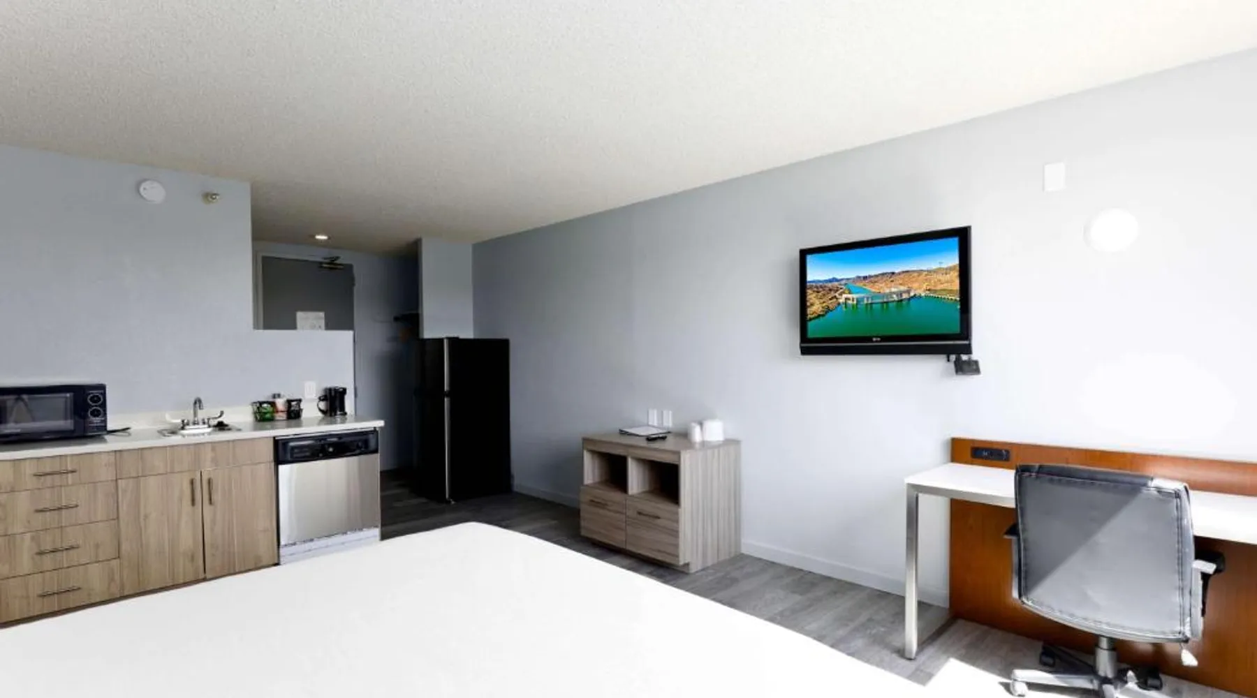 Comfortable Accommodations: Studio 6 Suites Lake Havasu City AZ in Lake Havasu City offers air-conditioned rooms with private bathrooms, coffee machines, refrigerators, microwaves, showers, and TVs. Each room includes a kitchenette, bath, hairdryer, city view, work desk, dishwasher, kitchenware, and toaster. Exceptional Facilities: Guests enjoy an outdoor swimming pool and free WiFi in public areas. The hotel features a elevator, 24-hour front desk, and free on-site private parking. The property is pet-friendly and welcomes travelers with pets. Prime Location: Located 18 minutes from Balloon Rides Lake Havasu City and 1 mi from Outback Off-Road Adventures, the hotel is near attractions such as Wheeler Park (1.7 mi), Judy'S Frameworks & Gallery (2.2 mi), and Parker Dam And Power Plant (25 mi). Guests appreciate the friendly staff and convenient location. This air-conditioned double room is consisted of of a TV with cable channels and a private bathroom. The unit has 1 bed.
