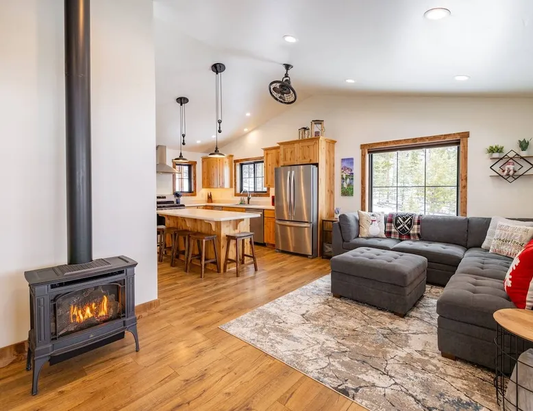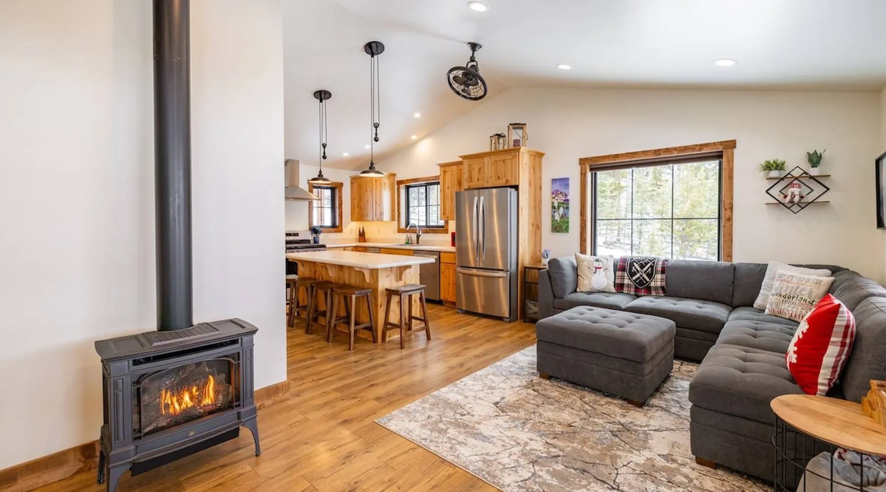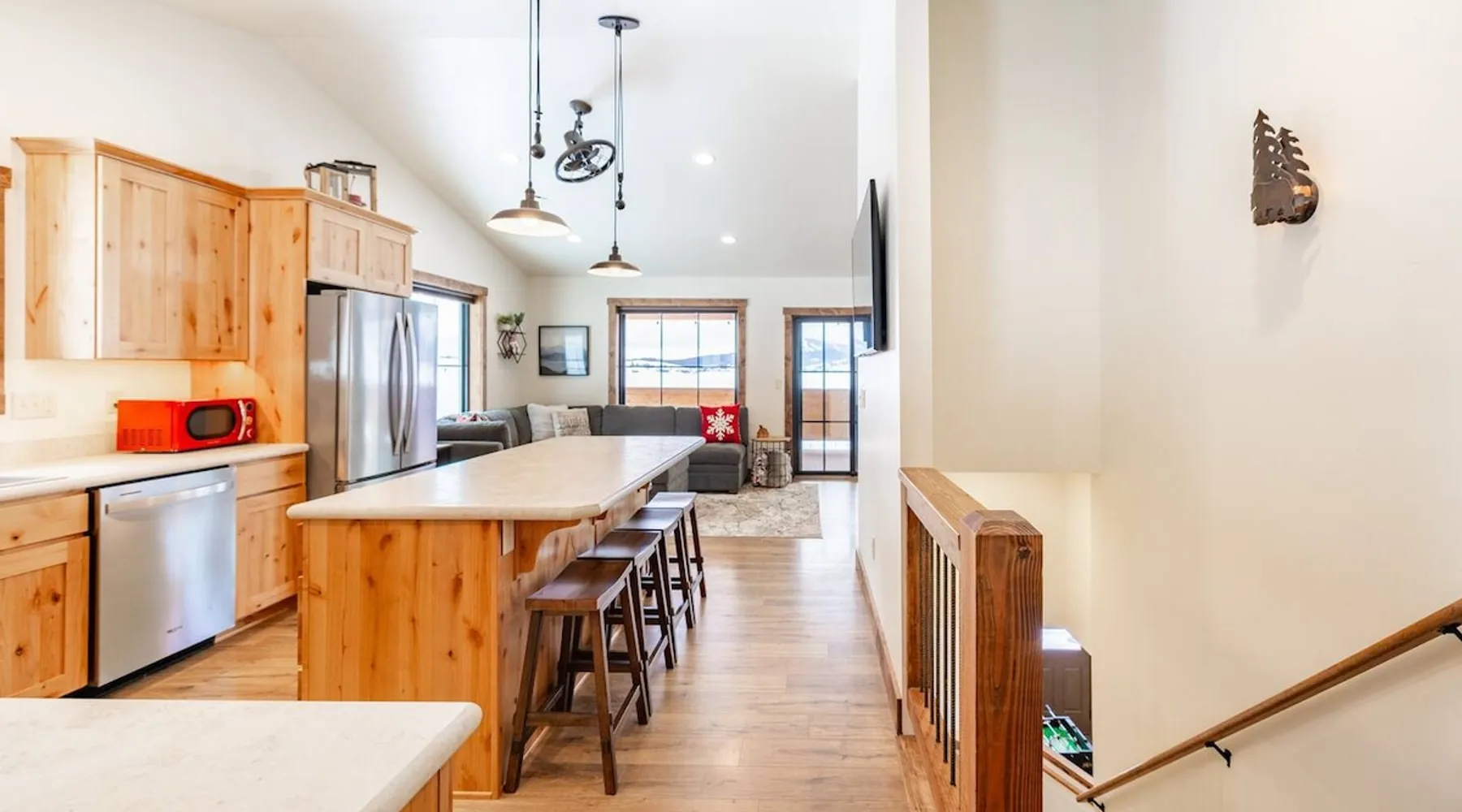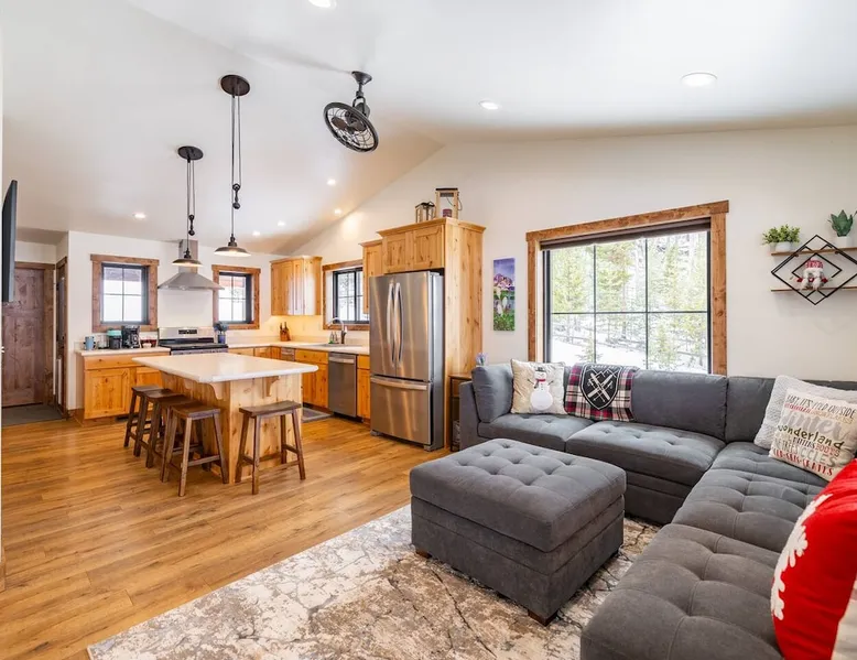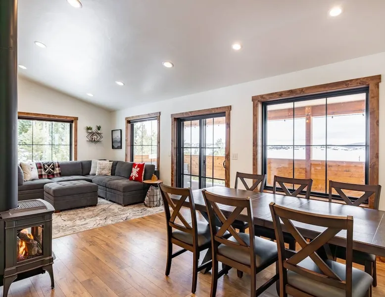 SKI DISCO ~ ICE FISH ~ CROSS COUNTRY SKI ~ SNOWMOBILE Gorgeous views the whole family can enjoy! This lake view home is just a short walk to the water's edge, where you can snowmobile, ice fish or head over to ski at Disco. Tucked at the end of the road, the Copper Cabin is a great place to unwind, take in the fresh mountain air, and enjoy a magnificent sunset over the lake. 7 Night Minimum Stay - Contact us for details on current promotions. The space Welcome to Copper Cabin at Georgetown Lake! Just steps from Georgetown Lake, you'll find everything you need for your lake view retreat. The welcoming main level has a spacious kitchen for hosting all your family dinners. There is everything you need for cooking and baking, as well as a flat-top gas grill just steps away on the covered back porch. The cozy family room has sweeping views of Georgetown Lake - be sure to watch for the eagles that frequent the trees next to the cabin! There is a gas free-standing fireplace for those cool mountain nights. The dining table seats 6 (with additional seating at kitchen island), and is great for taking in the sunset while enjoying family game night. Step outside on the expansive back covered deck to enjoy your coffee or an adult beverage while taking in the crisp mountain air, or enjoy your meals or a game of UNO al fresco at the outdoor dining table. The primary suite features a king bed and an attached 3/4 bathroom. There is a desk for those times you need to check in with the office. Also on the main level is a half bath and full-sized washer & dryer. On the lower level, you'll find a foosball table for the epic family competition, with another outdoor seating area just outside the doors. Bedroom 2 has a queen bed, with twin bunk over. Bedroom 3 has 2 twin bunk beds, and a couch for movie night with the kids. There is also a 3/4 bathroom on the lower level. Outside, you'll find the yard is fully fenced for the kids to explore. There are some epic sledding hills, so be sure to bring your sled! Please be sure to clean up all trash & food - this is a cabin in the woods and there are wildlife that frequent the property, including but not limited to bear, moose, deer, eagles, mice, spiders and other critters. Keep doors closed to prevent any unwelcome visitors! Guest access Guest will have full access to the home. No garage access, primary bedroom closet or pantry access. Other things to note This property is in a quiet community. Parties are strictly prohibited and subject to immediate eviction without refund. 7 night minimum visit.