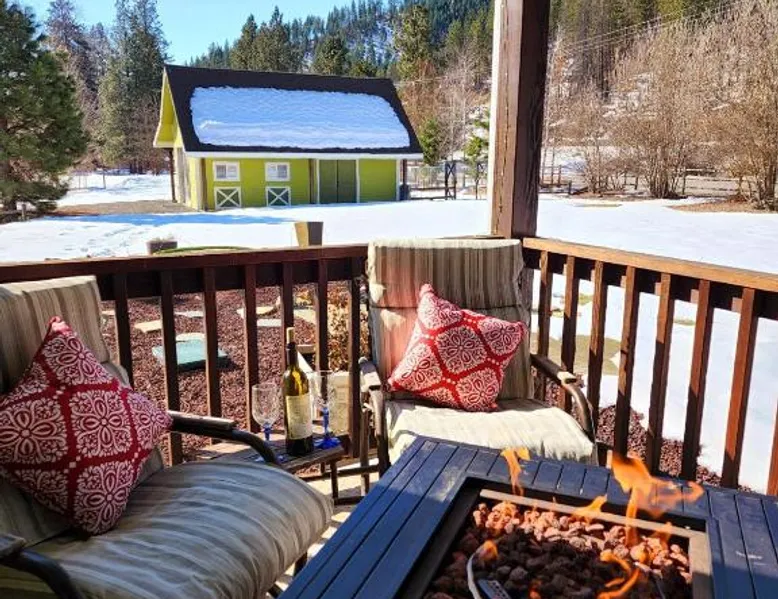 Spacious Accommodations: WANDER INN in Leavenworth offers a spacious holiday home with four bedrooms and two bathrooms. The property features a living room, dining area, and a fully equipped kitchen. Outdoor Amenities: Guests can enjoy a private garden, outdoor fireplace, and outdoor seating area. The property includes an indoor play area, picnic area, and games room, ensuring entertainment for all ages. Convenient Facilities: The home provides free WiFi, air-conditioning, and streaming services. Additional amenities include a washing machine, dishwasher, and free on-site private parking. Local Attractions: Located 30 mi from Pangborn Memorial Airport and 25 mi from Wenatchee Convention Center, the property offers easy access to skiing and cycling activities. Highly rated by guests. This holiday home features a fireplace. Boasting a private entrance, this air-conditioned holiday home features 1 living room, 4 separate bedrooms and 2 bathrooms with a walk-in shower and a bath. Guests will find a stovetop, a refrigerator, a dishwasher and kitchenware in the fully equipped kitchen. The holiday home also comes with a barbecue. The spacious holiday home features a washing machine, soundproof walls, a tea and coffee maker, a flat-screen TV with streaming services, as well as garden views. The unit has 5 beds.
