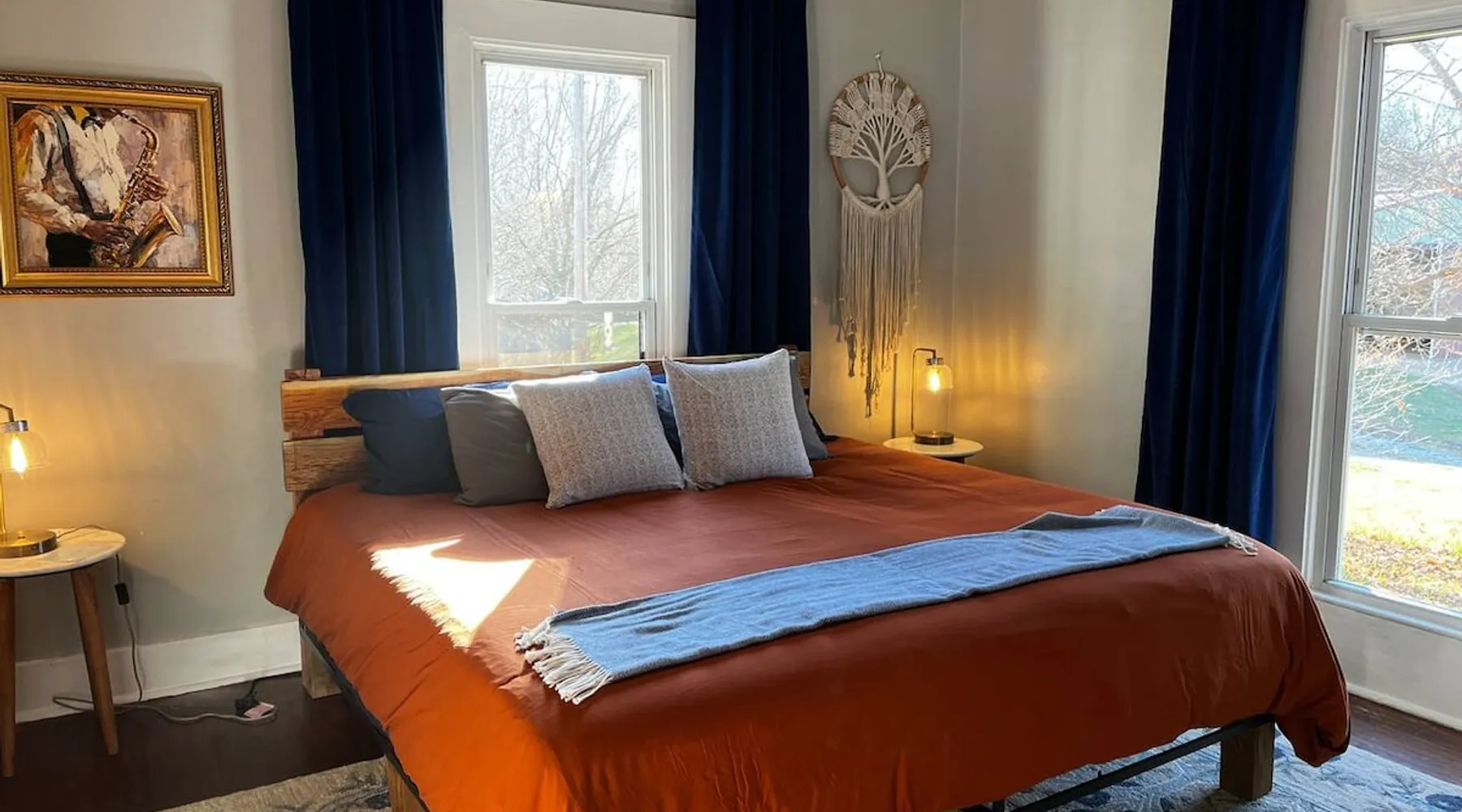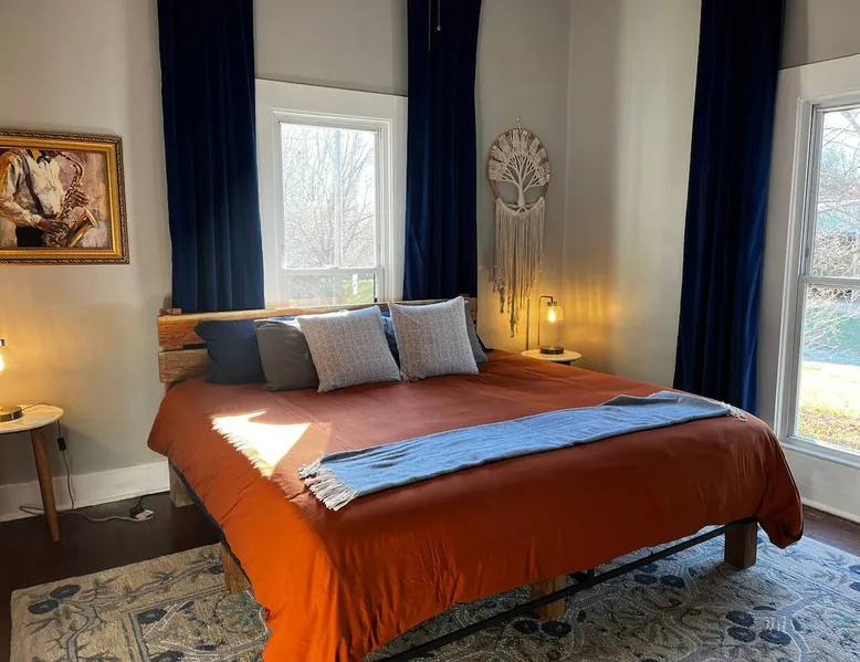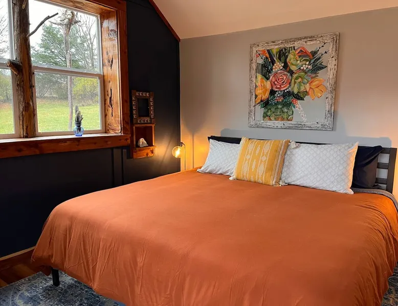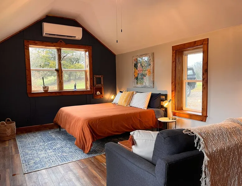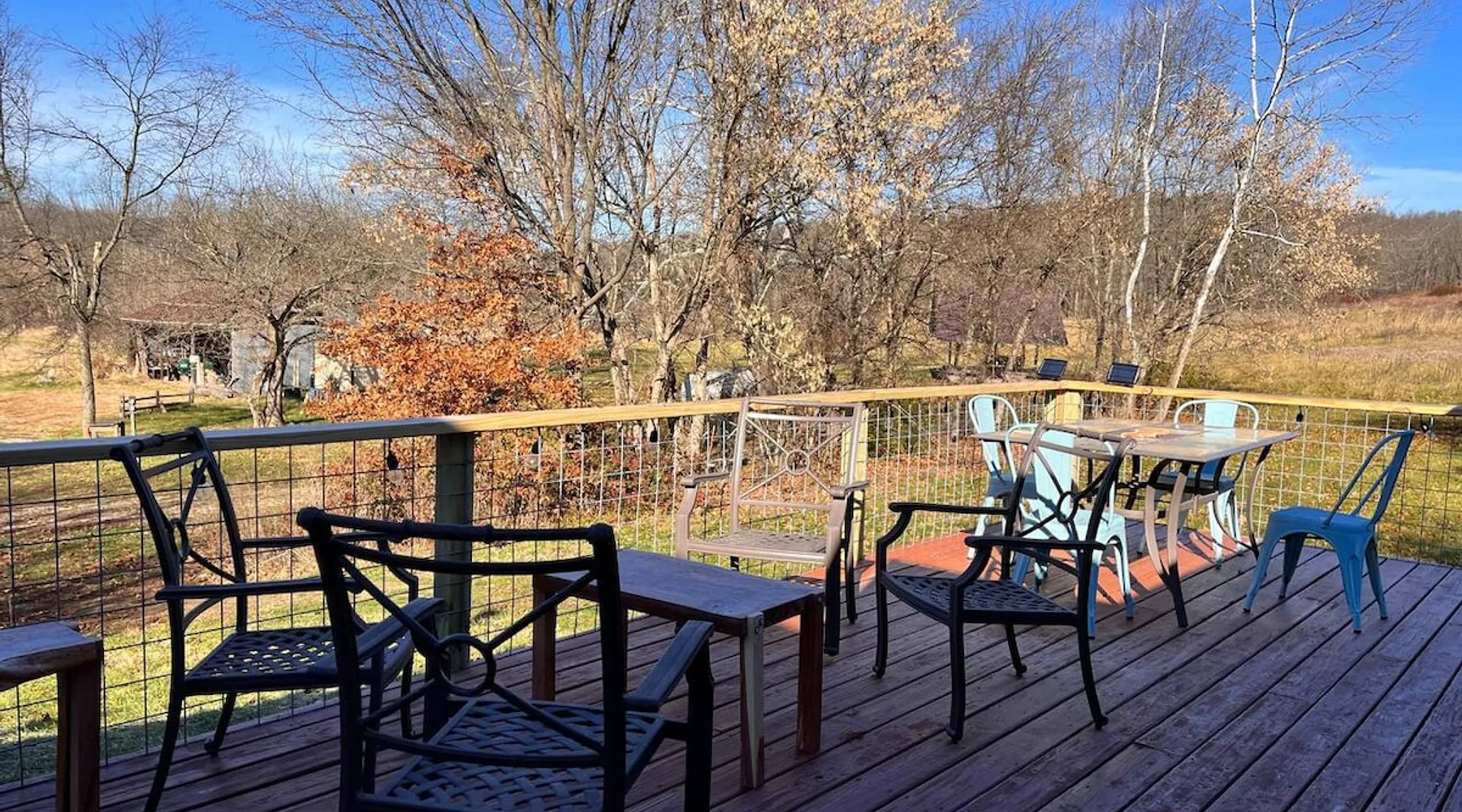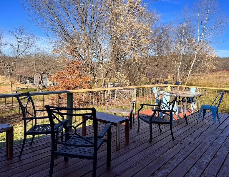 Charming farmhouse nestled on Jemerson Creek Rd in Hartsburg, MO. This idyllic property offers rustic charm with modern amenities. Spacious interiors and picturesque views create a warm and inviting atmosphere. Enjoy the tranquility of country living while being conveniently located. A perfect blend of comfort and character awaits in this farmhouse retreat. The space Step into a thoughtfully designed interior that seamlessly combines classic farmhouse charm with contemporary amenities. The spacious living areas are adorned with natural light, creating a warm and inviting atmosphere. The kitchen boasts modern appliances and ample counter space, making it a delightful space for culinary enthusiasts. With multiple bedrooms, the farmhouse provides comfortable accommodation for family and guests. The outdoor space is a highlight, featuring 170 acres with miles of trails and a picturesque setting. Enjoy relaxing moments on the front porch or hosting gatherings in the backyard. Located adjacent to the 600+ acre Hart Creek Conservation area, this farmhouse is a haven for nature lovers and those seeking a slower pace of life. The property's proximity to local amenities and attractions adds convenience to its idyllic setting. Whether you're looking for a place to gather family and friends or a quiet weekend getaway, our 1906 Farmhouse is the perfect place. SWIMMING POND We have a small swimming pond nearby with a little beach. As it is fed by both rain and a little spring, the water level depends on how much rain we've gotten. You can also swim in the nearby beautiful Hart Creek to cool down or rinse off. We provide towels. Guest access Guests have keyless access to the entire Farmhouse. There are an additional two rental cabins situated on 170 acre property, so Farmhouse guests may encounter cabin guests during hikes on the property. During the winter months, when leaves have dropped, one of the other cabins is visible from the back deck. Other things to note No smoking, aboslutely no parties. UNAUTHORIZED LATE CHECKOUTS: Unauthorized late checkouts are not allowed and will be billed at $25/hr in hourly increments. Please be respectful of our housekeer's time and be sure to checkout on-time.