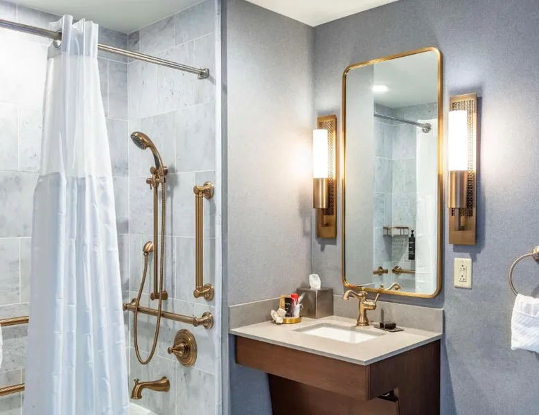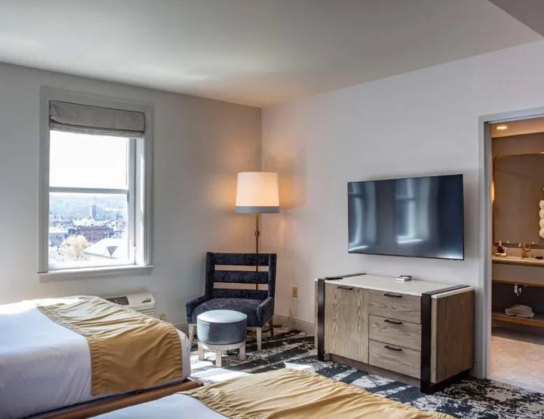 Located in York, this Pennsylvania hotel is 1 mile from the York Expo Center and tours of York’s Harley-Davidson factory is 10 minutes’ drive away. Guests at The Yorktowne Hotel, Tapestry Collection by Hilton can enjoy dining at 2 on-site bars. The rooms at The The Yorktowne Hotel, Tapestry Collection by Hilton have an elegant décor complete with a cable TV and seating area. The rooms also have an private bathroom with free toiletries. York’s city center is 1 minutes’ drive from the hotel. The air-conditioned double room features a flat-screen TV with cable channels, a tea and coffee maker, a seating area, a safe deposit box as well as city views. The unit has 1 bed.