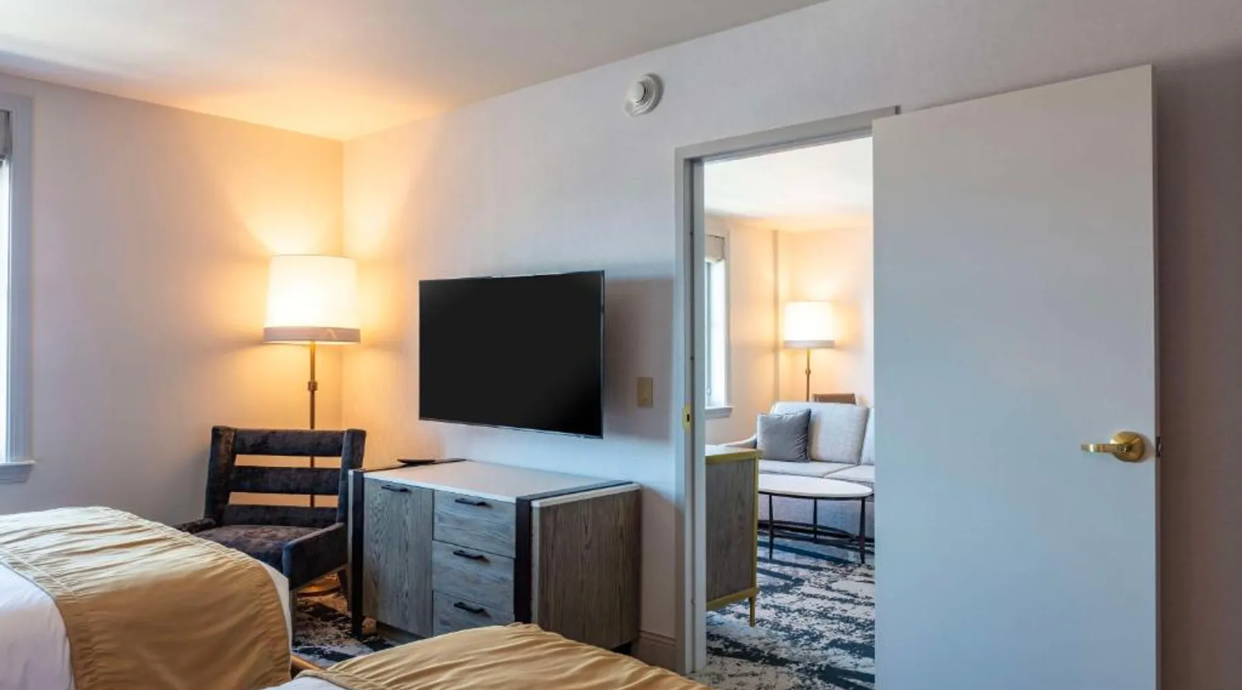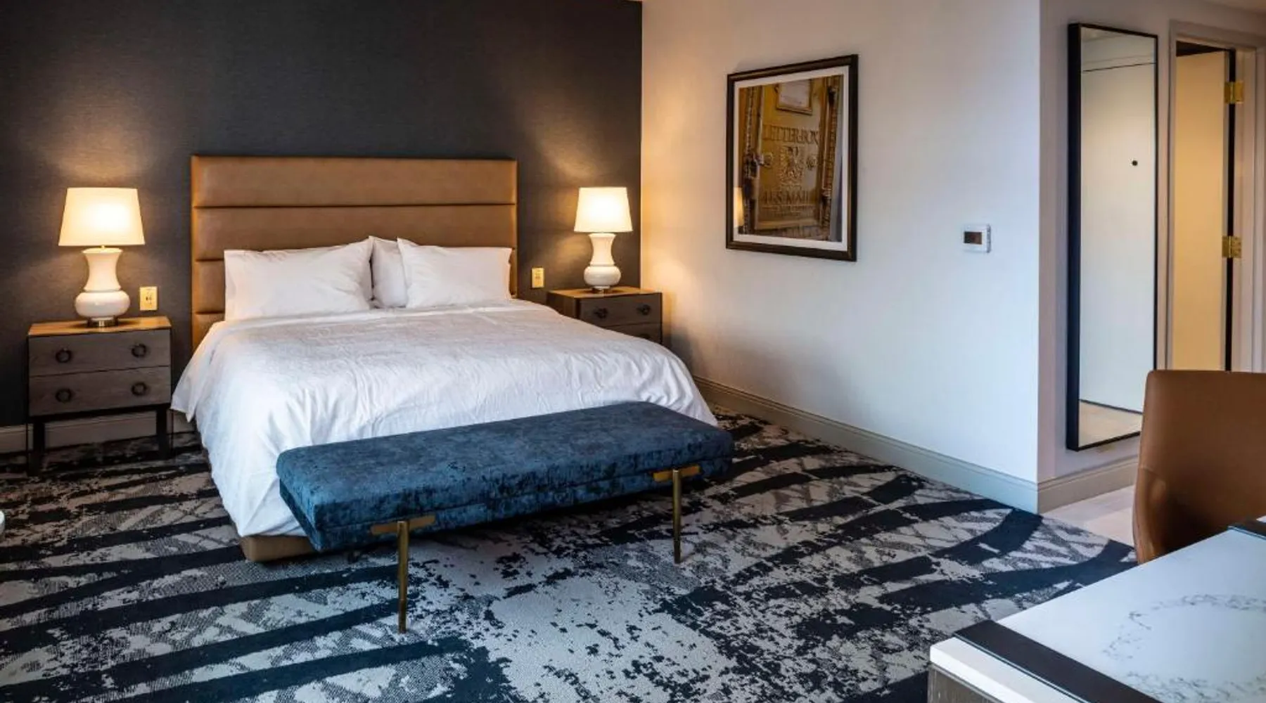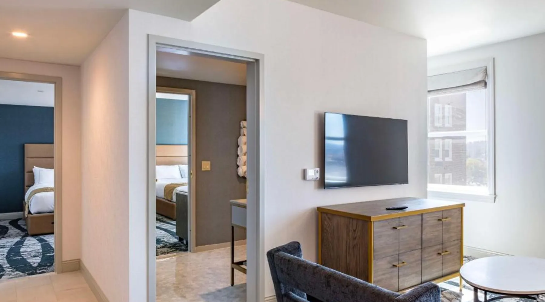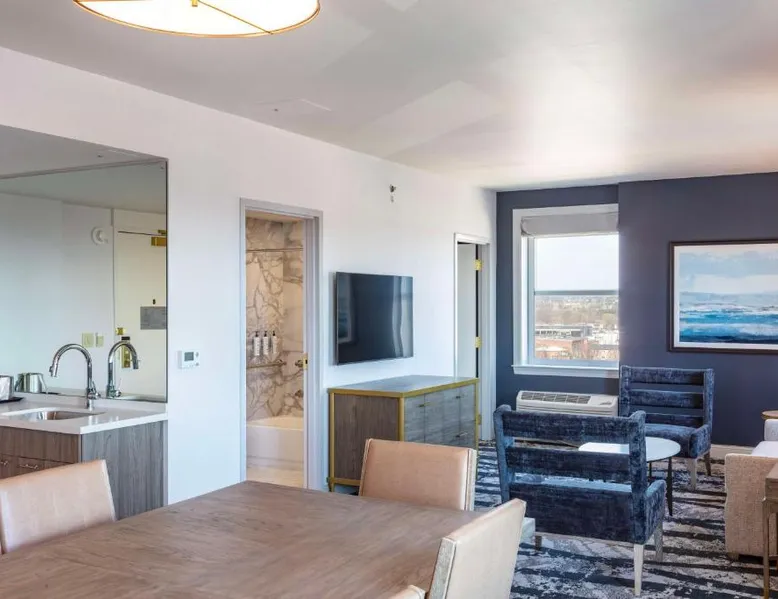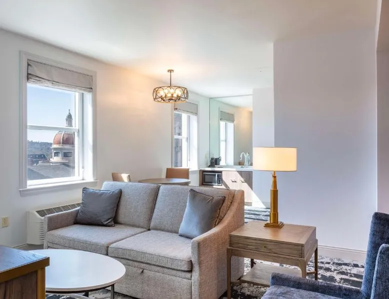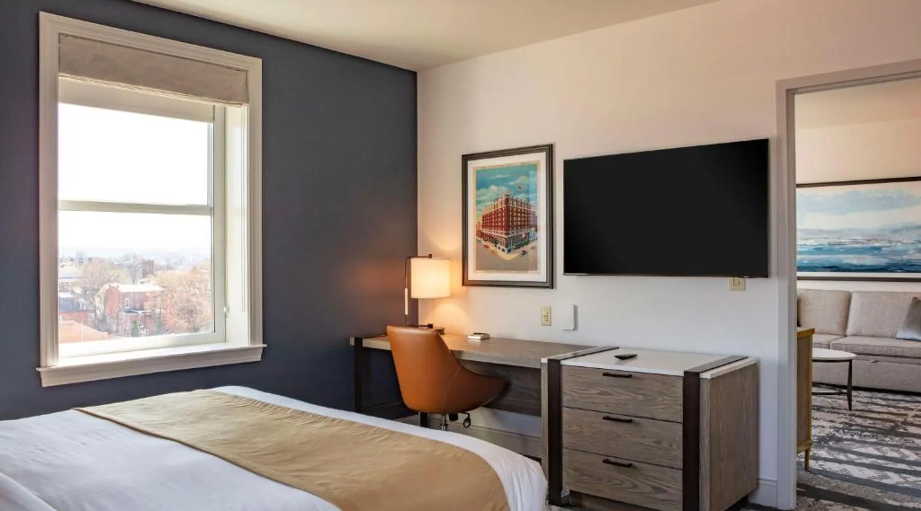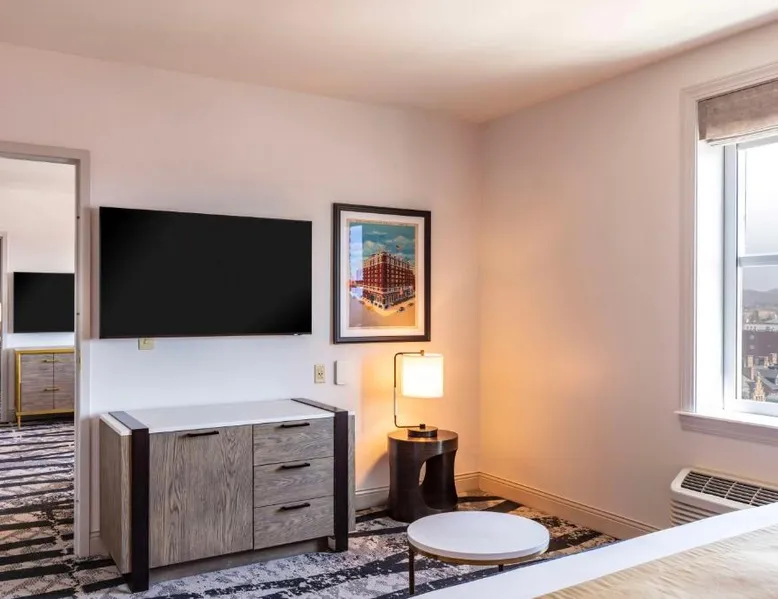 Located in York, this Pennsylvania hotel is 1 mile from the York Expo Center and tours of York’s Harley-Davidson factory is 10 minutes’ drive away. Guests at The Yorktowne Hotel, Tapestry Collection by Hilton can enjoy dining at 2 on-site bars. The rooms at The The Yorktowne Hotel, Tapestry Collection by Hilton have an elegant décor complete with a cable TV and seating area. The rooms also have an private bathroom with free toiletries. York’s city center is 1 minutes’ drive from the hotel. The spacious air-conditioned suite offers a flat-screen TV with cable channels, a tea and coffee maker, a seating area, a safe deposit box as well as city views. The unit offers 1 bed.