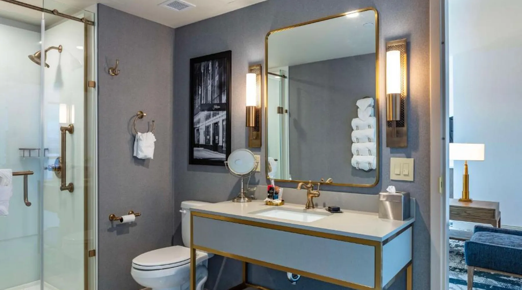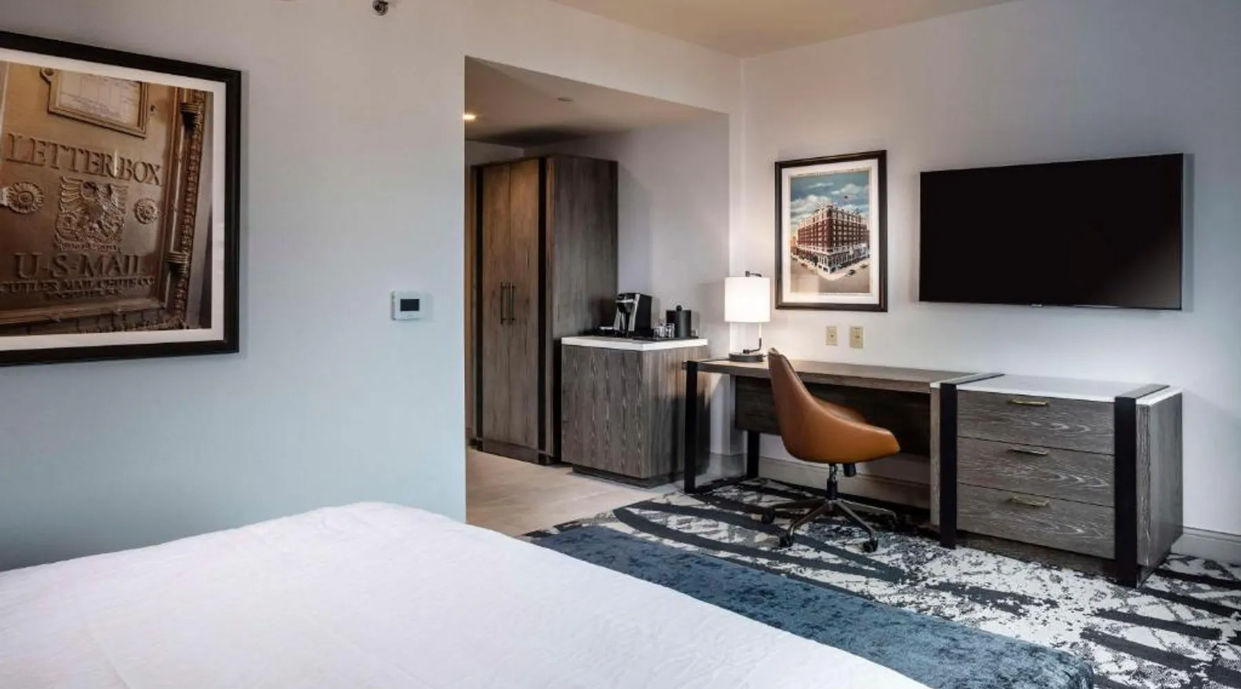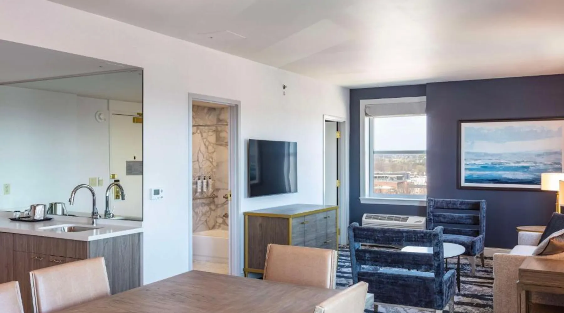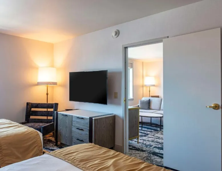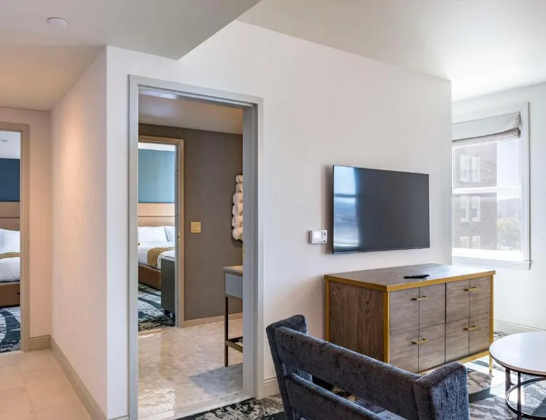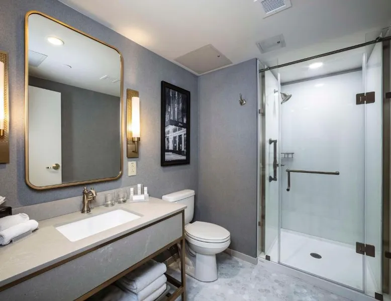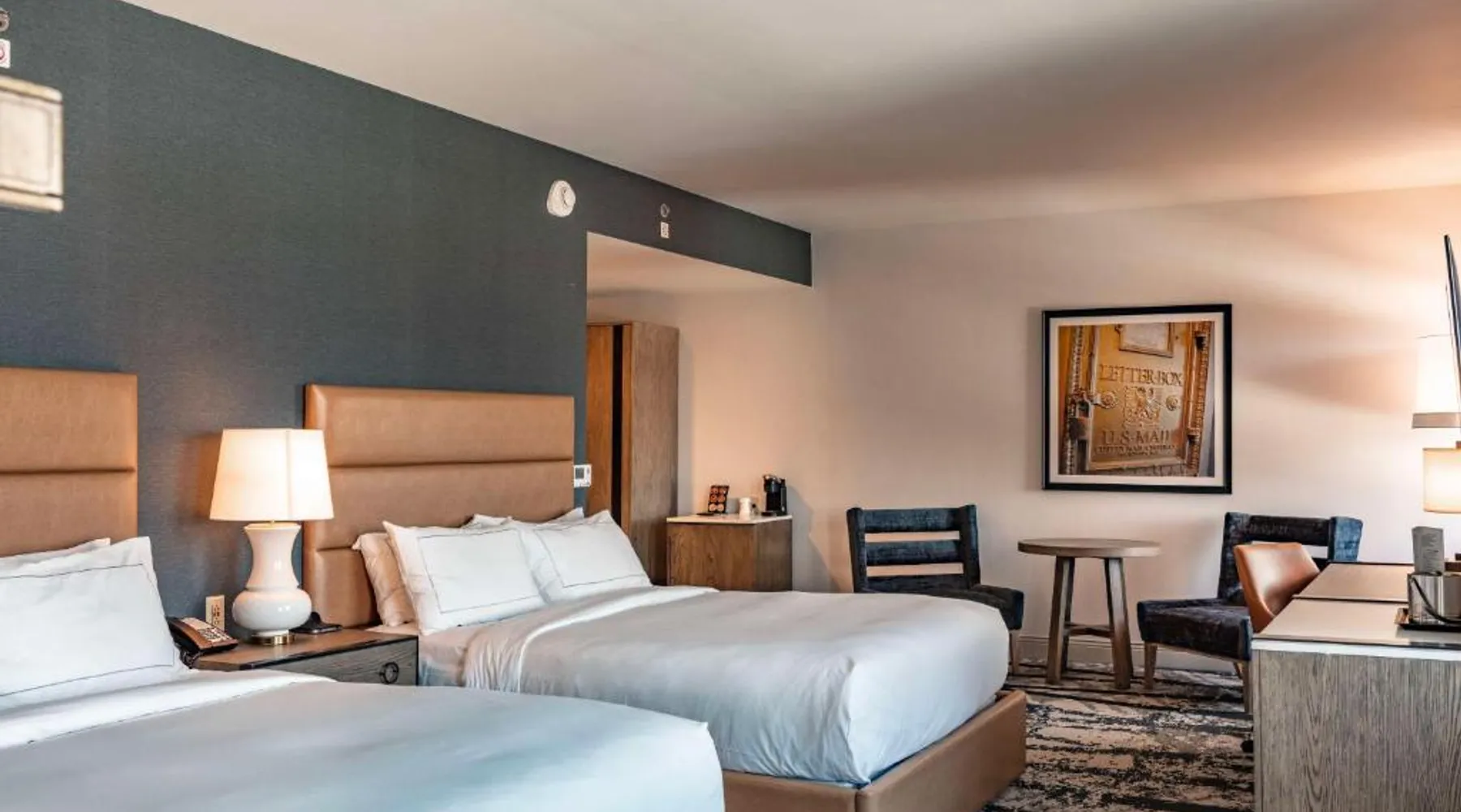 Located in York, this Pennsylvania hotel is 1 mile from the York Expo Center and tours of York’s Harley-Davidson factory is 10 minutes’ drive away. Guests at The Yorktowne Hotel, Tapestry Collection by Hilton can enjoy dining at 2 on-site bars. The rooms at The The Yorktowne Hotel, Tapestry Collection by Hilton have an elegant décor complete with a cable TV and seating area. The rooms also have an private bathroom with free toiletries. York’s city center is 1 minutes’ drive from the hotel. The spacious air-conditioned suite offers a flat-screen TV with cable channels, a tea and coffee maker, a seating area, a safe deposit box as well as city views. The unit offers 1 bed.