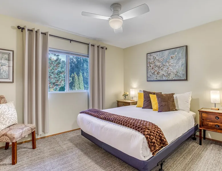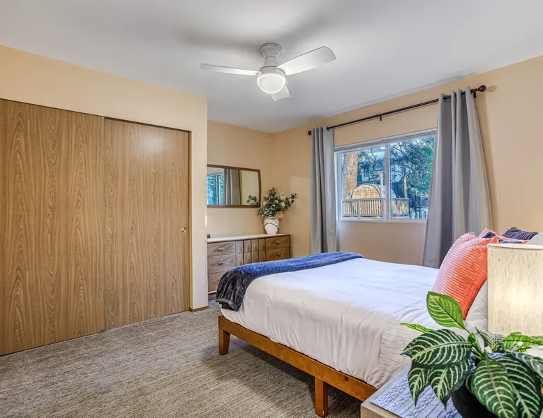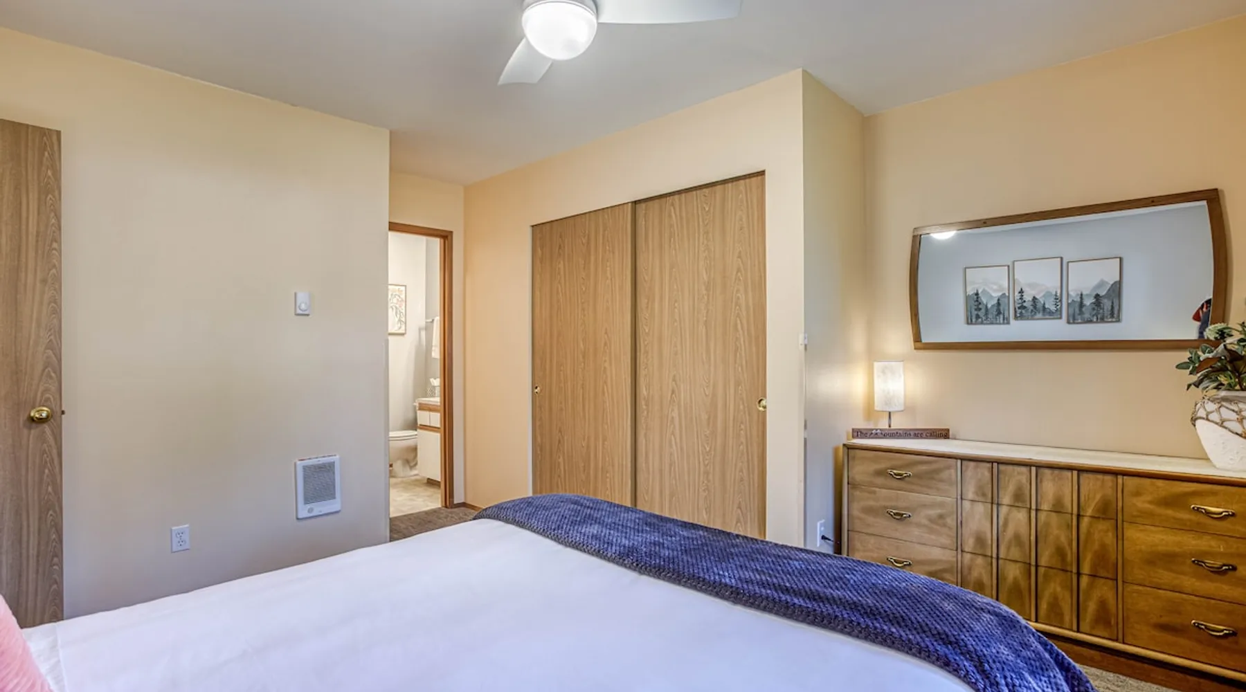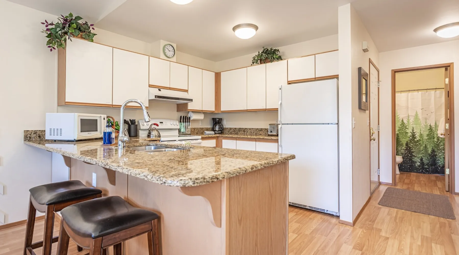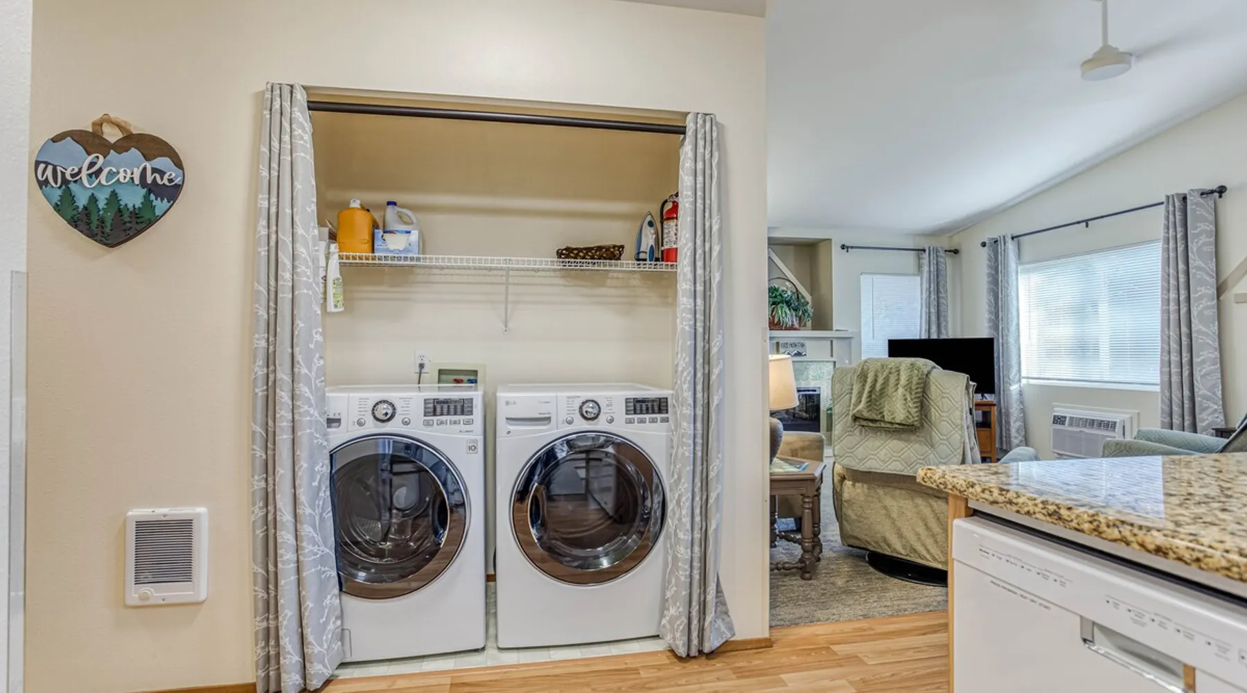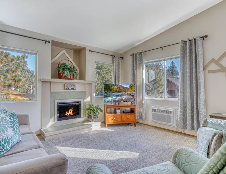 •Master: Queen Bed w/Private Bath •2nd Bedroom: Queen bed •2nd Bath in Hallway •Living Room: Sofa, Twin Recliners •SmartTV (no regular cable, Apps only) •Electric Fireplace Alpine Paradise Condo is a peaceful 2nd floor condo that offers tranquility in its corner location away from road traffic. Besides its serene location, it offers a bright, cheerful & airy feel with its expansive view of the mountains, whispering pines & everything you need for a relaxing Bavarian getaway. Continue Reading ↓ The space •Fully Stocked Kitchen (cook full meals) •In-unit Washer/Dryer w/detergent + softener •Heat, A/C & fans •Comfy sofa, twin recliners, Smart TV & electric fireplace. •Blinds and room-darkening drapes •Heat Thermostats in each room •So Much More! Relax and unwind on the private balcony where you can enjoy the breathtaking mountain view’s while savoring a glass of Leavenworth’s finest wine paired with delicious local cheese. •Free Parking: Your stay includes one covered parking spot. Additional vehicles can park in any uncovered parking spot. •Save the driving and parking fees with a 15-20 minute stroll to downtown Leavenworth either along the road or through nearby Enchantment Park where beautiful nature trails along the Wenatchee River lead you to downtown. • Stroll to shops, the gazebo, wine tastings, German restaurants and all the festivities! •Note: This condo does *not* permit any pets in order to maintain cleanliness for guests with allergies. Fines apply. •A Welcome Binder is provided, with great information for your stay including the Wi-fi password, maps, restaurants and more! •For exceptional customer service and any inquiries, feel free to reach out. Our communication has garnered repeated 5-star ratings. We welcome you to our Alpine Paradise Condo. Book your stay with us! QUESTIONS? Your questions are important to us and answered really fast! We're here to serve you & to make your stay incredibly memorable! Kristiina Miller, Property Manager iloveleavenworth Guest access The entire condo is yours! Enjoy! Other things to note Please note, this condo does *not* permit pets to maintain cleanliness for guests with allergies. Breaking this policy will result in fines. Smart TV does *not* have cable channels. Please come equipped with your apps to login and enjoy your programs. Our condo is located walking distance to the new Leavenworth Alpine Roller Coaster. Purchase your tickets ahead of time to guarantee your spot.