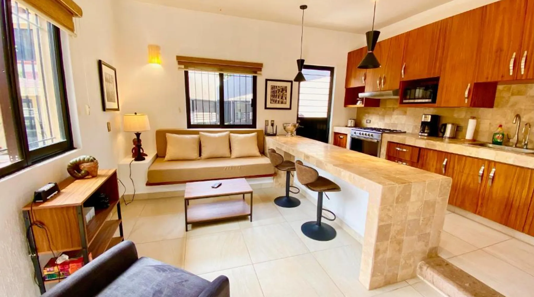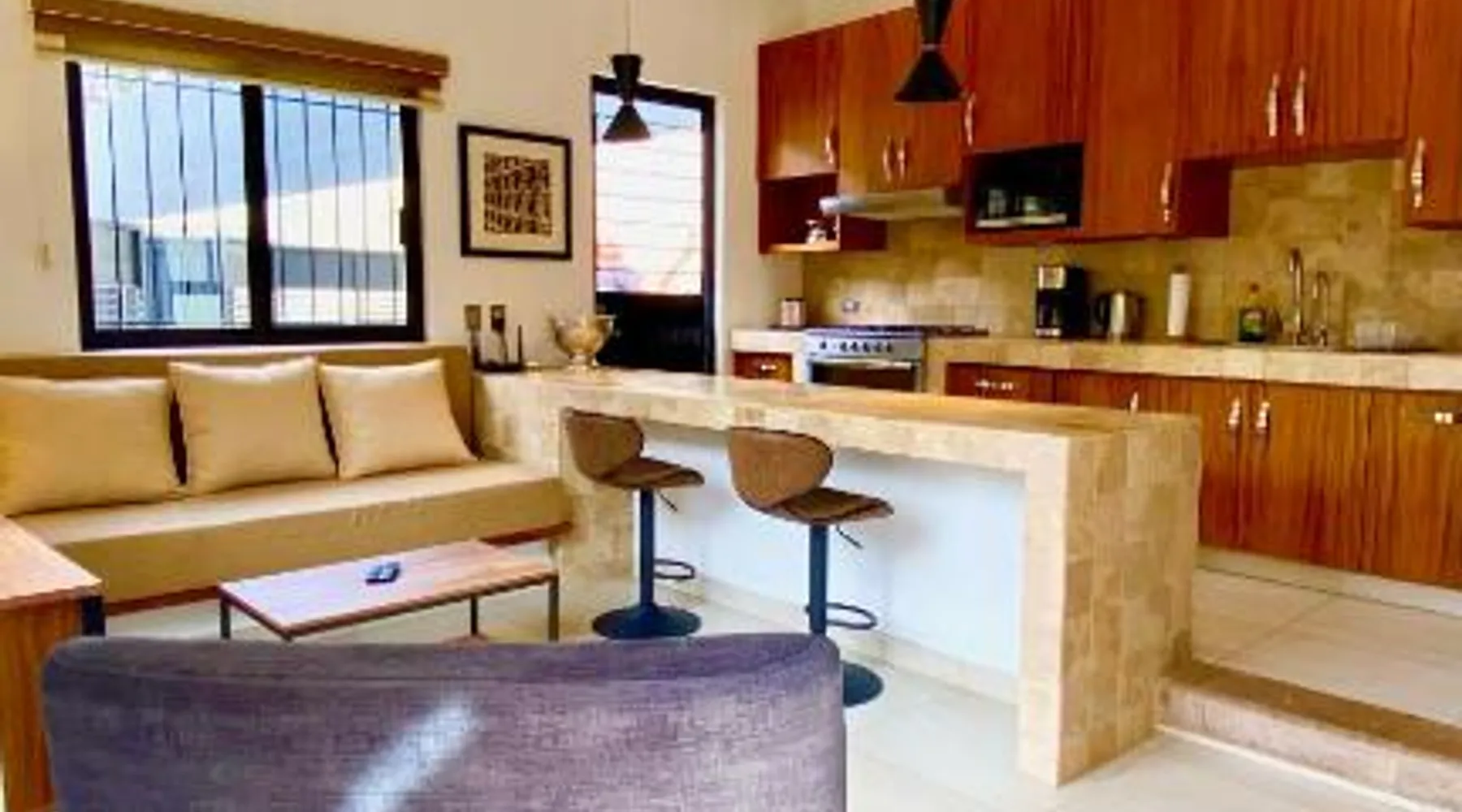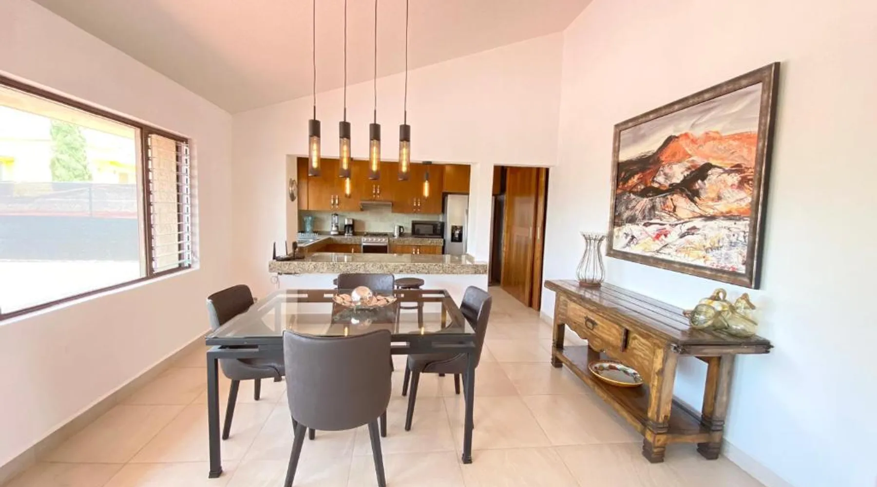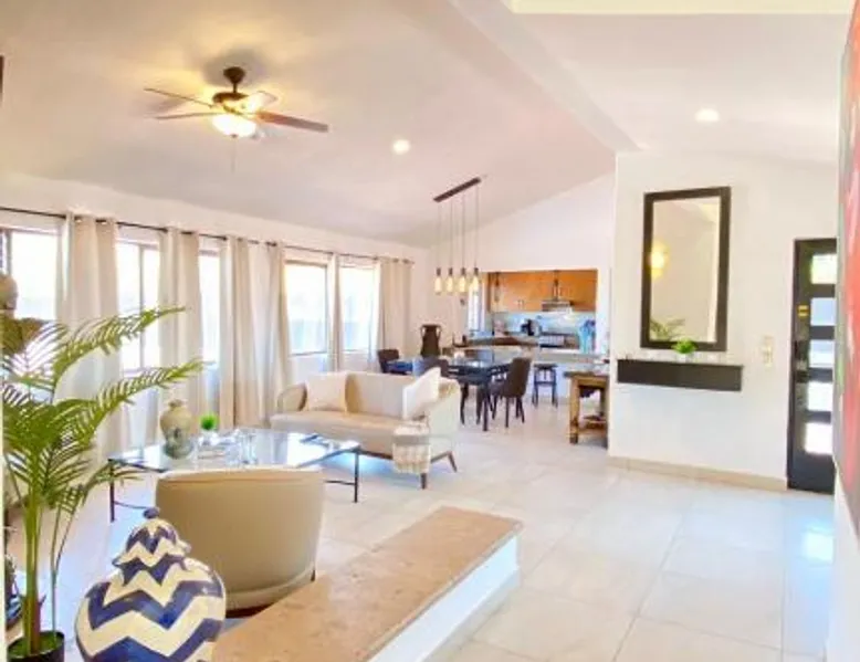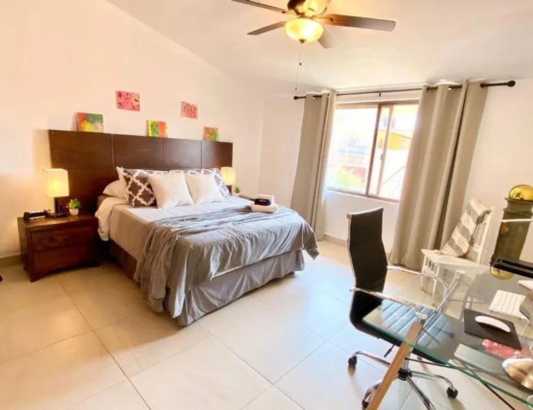 Modern Comforts: San Angel Villas in San Antonio offers a recently renovated holiday home with a fitness center, sun terrace, garden, tennis court, and free WiFi. Private check-in and check-out services ensure a seamless arrival and departure. Outdoor Amenities: Guests can relax on the terrace or balcony with lake, garden, or mountain views. The property features a fitness room, squash court, outdoor seating area, and barbecue facilities. Free on-site parking is available. Convenient Location: Located 21 mi from Guadalajara Airport and 31 mi from Tlaquepaque Regional Ceramic Museum, the holiday home is highly rated for its friendly host and convenient location. Nearby attractions include Tlaquepaque and San Antonio. Guests will have a special experience as the holiday home offers a fireplace. This spacious holiday home consists of 1 living room, 2 separate bedrooms and 1 bathroom with a walk-in shower and free toiletries. Meals can be prepared in the well-fitted kitchen, which is equipped with a stovetop, a refrigerator, kitchenware and an oven. The holiday home provides a washing machine, a private entrance, soundproof walls, a flat-screen TV with streaming services, as well as lake views. The unit offers 2 beds.