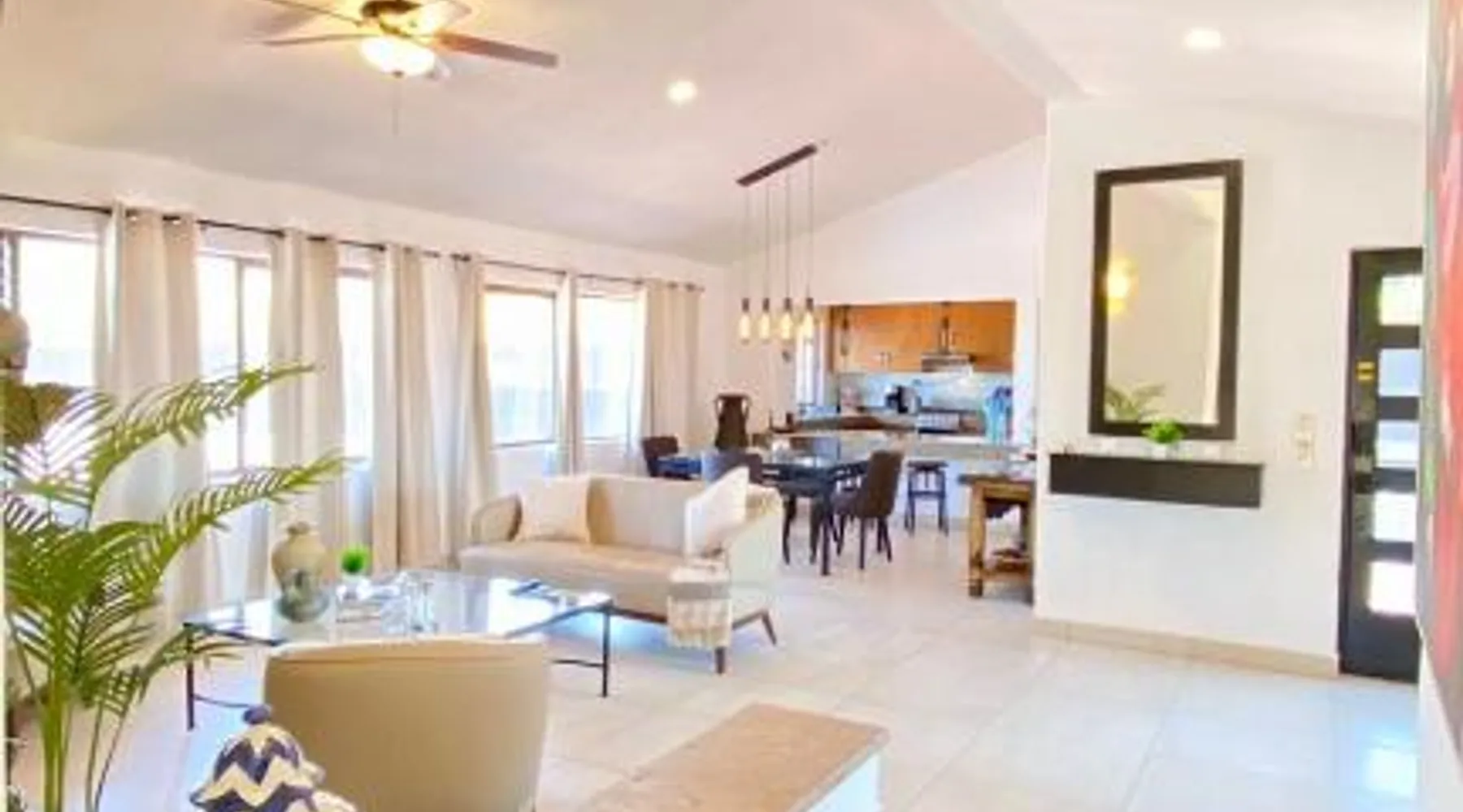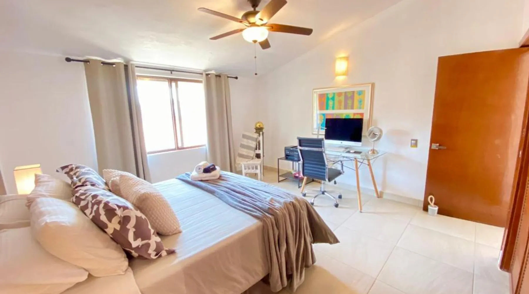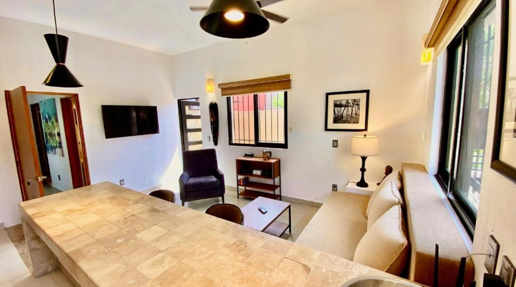 Modern Comforts: San Angel Villas in San Antonio offers a recently renovated holiday home with a fitness center, sun terrace, garden, tennis court, and free WiFi. Private check-in and check-out services ensure a seamless arrival and departure. Outdoor Amenities: Guests can relax on the terrace or balcony with lake, garden, or mountain views. The property features a fitness room, squash court, outdoor seating area, and barbecue facilities. Free on-site parking is available. Convenient Location: Located 21 mi from Guadalajara Airport and 31 mi from Tlaquepaque Regional Ceramic Museum, the holiday home is highly rated for its friendly host and convenient location. Nearby attractions include Tlaquepaque and San Antonio. Guests will have a special experience as the holiday home offers a fireplace. This spacious holiday home consists of 1 living room, 2 separate bedrooms and 1 bathroom with a walk-in shower and free toiletries. Meals can be prepared in the well-fitted kitchen, which is equipped with a stovetop, a refrigerator, kitchenware and an oven. The holiday home provides a washing machine, a private entrance, soundproof walls, a flat-screen TV with streaming services, as well as lake views. The unit offers 2 beds.