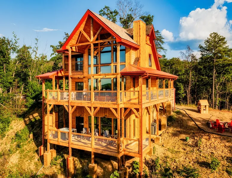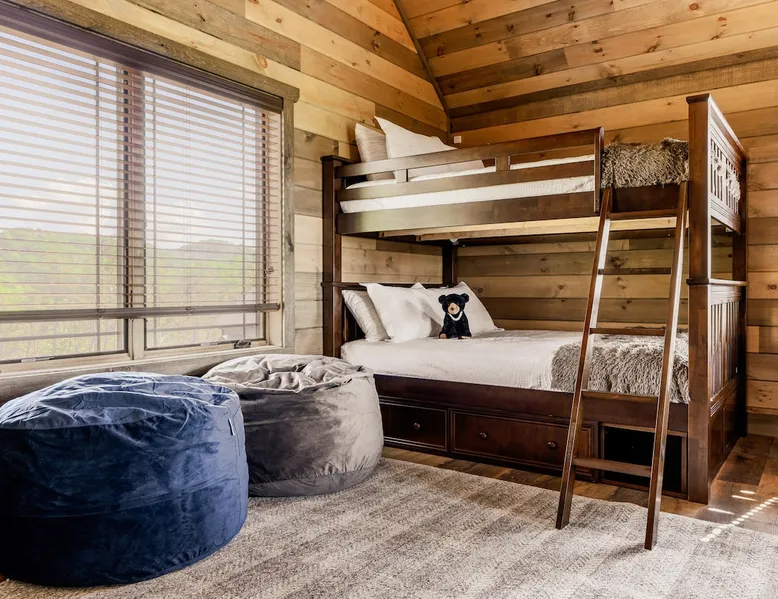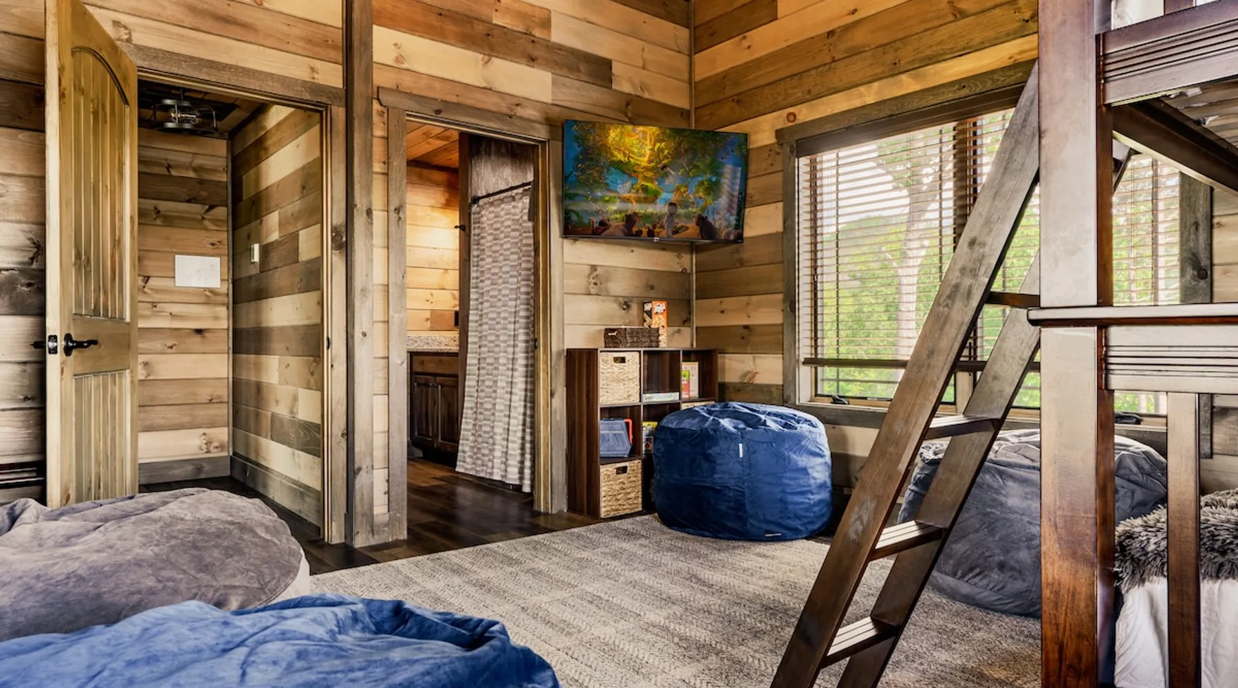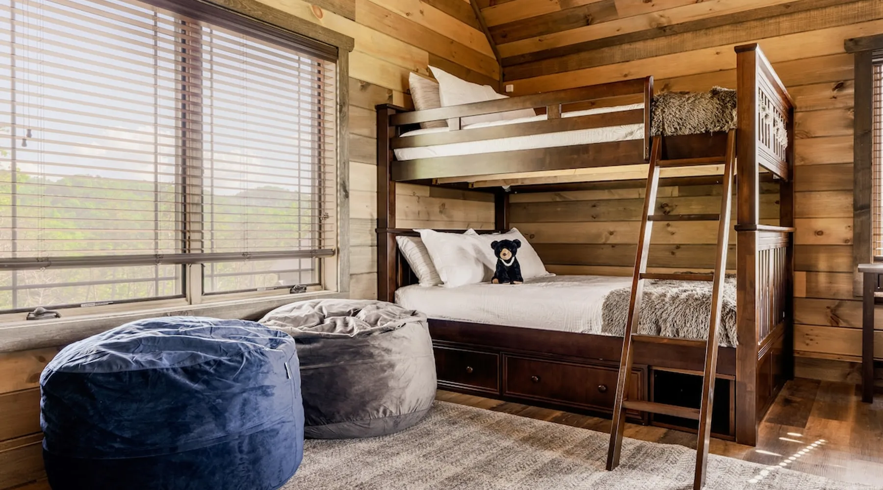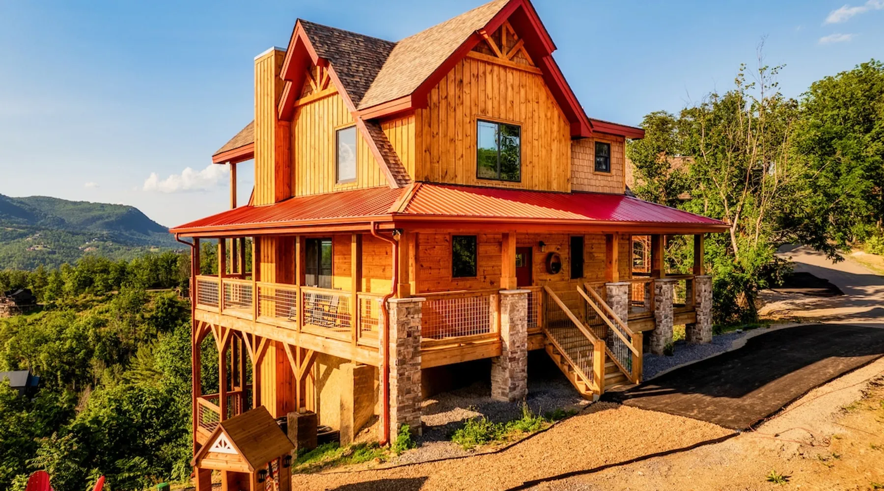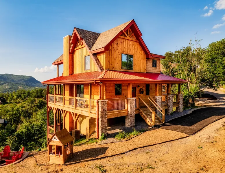 “Bear Mountain Vista” by is a brand new custom built 3-story cabin located in a semi-private setting at the very TOP of our exclusive gated mountain community in the Smokey Mountaints of Tennessee. Located at the end of a cul-de-sac, you will enjoy majestic views from every room! Enjoy the 4 en-suite bedrooms (3 with King beds and 1 with a Queen over Queen adult sized bunk bed), a 6-person hot tub, a fire pit, and even a mini-cabin for the kids, all with views for miles. The space Newly constructed cabin that is ready for occupancy. Perfect for a larger family, multiple small families, or friends who would like to stay and relax together in a custom built comfortable private cabin. OUTDOORS - YOU WILL ENJOY: ★Spectacular view from all decks - the best in our gated community ★Wrap-around covered decks and seating to enjoy the Smoky Mountain air. ★Outdoor fire pit area with Adirondack seating and views ★A mini play-cabin of their own, for the kids ★Outdoor dining table with seating for 6 ★A 6-person hot tub with views, day or night and string lighting INDOORS - YOU WILL ENJOY: ★A 3-Level cabin with a private en-suite bedroom with king beds on each level. ★A private en-suite bedroom with a Queen over Queen bunk bed with spectacular views. ★Plenty of room for groups to spread out indoors and not feel crammed ★Fantastic view from every room. Here is what each level of the home includes: Upper Level- ★ En-suite King bedroom with a private balcony and 55" 4K smartTV ★ En-suite Queen over Queen bunk bed bedroom for adults or kids Main Level- ★ Entry door ★ Well appointed kitchen ★ Dining table with seating for 8 ★ Living Room with Queen sofa bed, 75” 4K smartTV. Dramatic wall of glass for maximum view enjoyment. Vaulted ceiling. Plenty of natural lighting. Electric fireplace. ★ En-suite King bedroom with 55” 4K smartTV. Private bathroom. Deck access from living room and bedroom. ★ Common area bathroom Lower Level- ★ Game Room with shuffleboard/bowling game and digital pinball game. ★ 55” 4K smartTV, recliner chairs, bar table and seating. ★ Theater with comfortable seating for 6 or more with a 75” 4K smartTV. ★ En-suite King bedroom with 55” 4K smartTV, Deck access from game room and bedroom. What's nearby?: ★ Dollywood is 13 miles away. ★The Parkway (the main road of Pigeon Forge), 8 miles ★The quieter entrance of the Great Smoky Mountain National Park (the "Line Springs Rd. entrance") is 11 miles away. It leads to: -Metcalf Bottom scenic picnic area and swimming hole -The scenic and easy-to-get-to Sinks, Meigs, and Spruce Flats Waterwalls in the Summer or Winter -The Townsend Wye, a perfect river tubing and swimming location -Cades Cove Scenic Loop ★17 Miles to Downtown Gatlinburg ★21 Miles to Tuckaleechee Caverns WE WOULD LOVE TO HOST YOU AT OUR LOVELY CABIN! FEEL FREE TO SEND US A MESSAGE WITH ANY QUESTIONS YOU MAY HAVE. Guest access Guest will have access to the entire property, minus an owner's closet and the mechanical room. Other things to note PRIVATE PARKING: Parking for up to 6 cars in the driveway, depending on the size of your vehicles. Driveway is flat. Please do not drive past our driveway onto the gravel footpath. ENTRY: The front door is equipped with an electronic keypad, we will send a personalized door code before check-in. No need to go to a rental office to pick up a key. Check in any time after 4pm EST. Check out is 10am EST. No late check-out or early check-in. If you arrive early or depart late additional charges will incur. INTERNET/CABLE: High Speed Wireless Internet (up to 500Mbps). Do not modify or turn off the internet system of the home. SmartTVs in each of 4 bedrooms, plus 2 in common areas, and 1 in the theater. No cable programing provided due to the multitude of streaming/screen-casting options guests typically have nowadays. BEDROOMS: The 4 bedrooms can accommodate up to 10 adults comfortably. There is 1 queen sofa bed on the main level which can accommodate an additional 2 adults. Maximum weight on each level of the bunk bed is 600 lbs. KITCHEN: Well equipped kitchen with refrigerator, stove, microwave, dishwasher, toaster, blender, food processor, pots, pans, cups, plates, utensils, a regular coffee maker and Keurig machine. LAUNDRY: Stacked washer and dryer, ironing board, and iron AMENITIES: Our cleaning service provides start-up supplies including: paper towels, dish soap, dishwasher soap, kitchen trash can liners, toilet paper, hand soap, shampoo and conditioners, and bathroom trash liners. Depending on the length of your stay, you may need to purchase additional items when the initial supply runs out. GAMES: Digital pinball Shuffleboard/bowling KIDS PLAYHOUSE: Maximum age is 5 years old. SECURITY/HEALTH AND SAFETY: 3 Ring floodlight security cameras with 24-hr video and audio recording at the front and sides of the cabin that record audio/video activity on the driveway, front porch, and all grounds around the home. NO indoor cameras. WATER WELL: Water service to the cabin is from a water well. The water has been tested safe to drink but we recommend guests bring their own bottled water to drink. GUEST CLEANING FEE: The cleaning fee compensates our cleaning team to clean and sanitize a cabin that is left in a fair condition. If heavy or special cleaning is required after your stay, additional fees may apply. Rental Agreement: After booking, you will be prompted to sign a rental agreement, outlining the guidelines and house rules, within 24 hours. We use approved API-connected software, allowing guests to easily sign the agreement. (Airbnb policy: https://www.airbnb.com/help/article/465) Security Deposit: A $300 security deposit hold will be placed 5 days before check-in and released 14 days after check-out, provided no damages are reported. The time it takes for the funds to appear in your account will depend on your bank's processing times. We use approved API-connected software, allowi