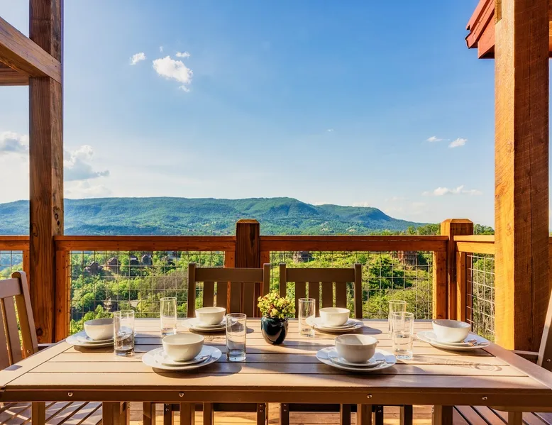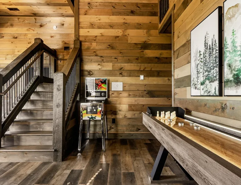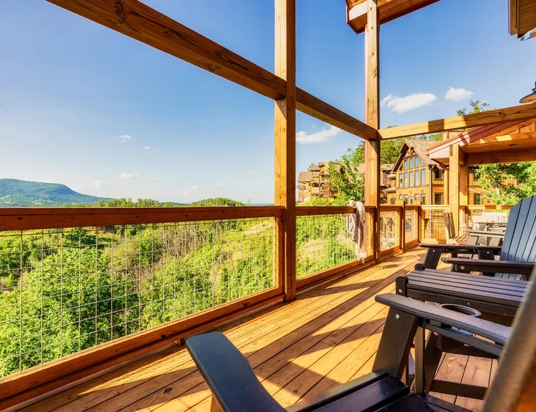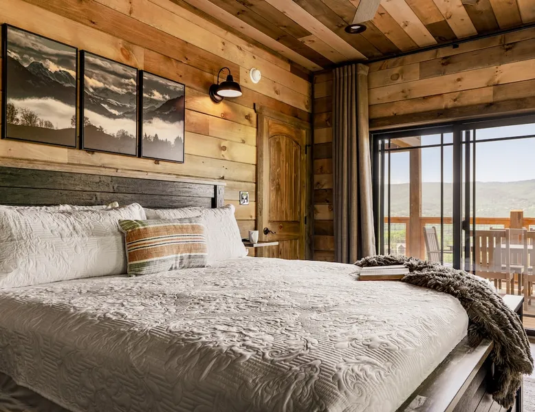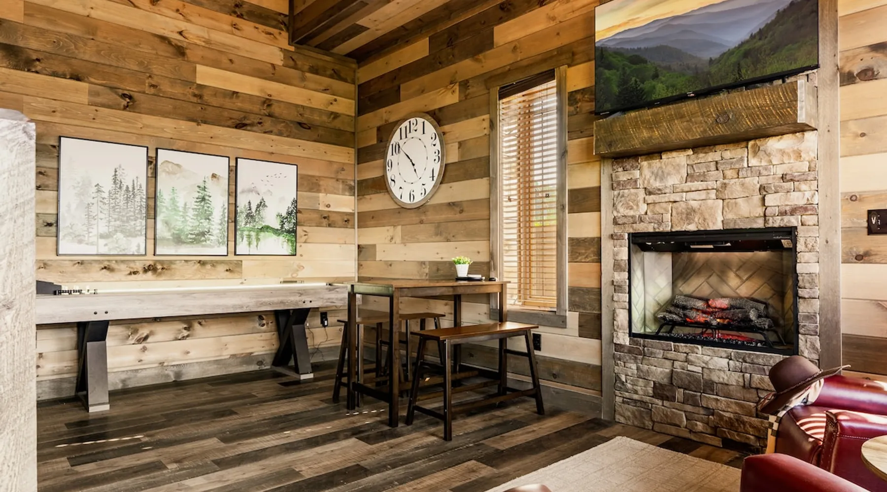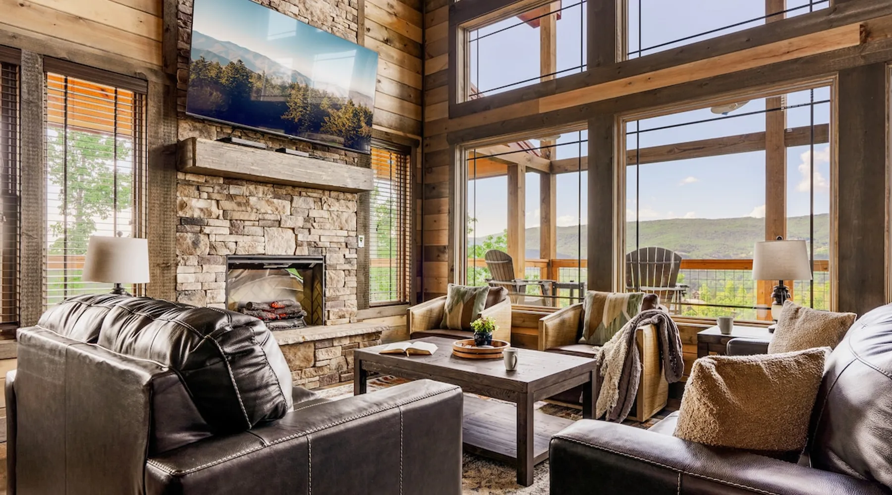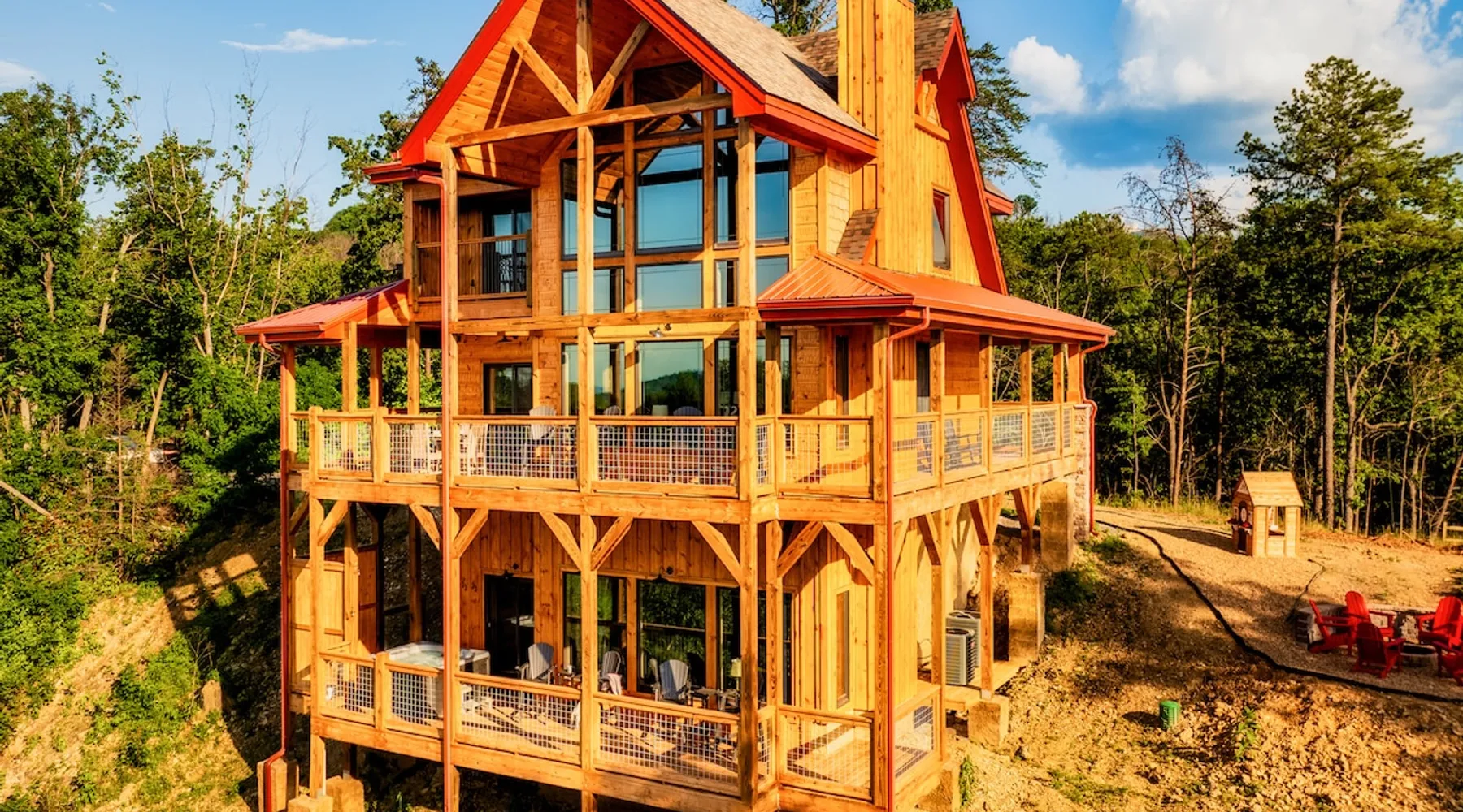 “Bear Mountain Vista” by is a brand new custom built 3-story cabin located in a semi-private setting at the very TOP of our exclusive gated mountain community in the Smokey Mountaints of Tennessee. Located at the end of a cul-de-sac, you will enjoy majestic views from every room! Enjoy the 4 en-suite bedrooms (3 with King beds and 1 with a Queen over Queen adult sized bunk bed), a 6-person hot tub, a fire pit, and even a mini-cabin for the kids, all with views for miles. The space Newly constructed cabin that is ready for occupancy. Perfect for a larger family, multiple small families, or friends who would like to stay and relax together in a custom built comfortable private cabin. OUTDOORS - YOU WILL ENJOY: ★Spectacular view from all decks - the best in our gated community ★Wrap-around covered decks and seating to enjoy the Smoky Mountain air. ★Outdoor fire pit area with Adirondack seating and views ★A mini play-cabin of their own, for the kids ★Outdoor dining table with seating for 6 ★A 6-person hot tub with views, day or night and string lighting INDOORS - YOU WILL ENJOY: ★A 3-Level cabin with a private en-suite bedroom with king beds on each level. ★A private en-suite bedroom with a Queen over Queen bunk bed with spectacular views. ★Plenty of room for groups to spread out indoors and not feel crammed ★Fantastic view from every room. Here is what each level of the home includes: Upper Level- ★ En-suite King bedroom with a private balcony and 55" 4K smartTV ★ En-suite Queen over Queen bunk bed bedroom for adults or kids Main Level- ★ Entry door ★ Well appointed kitchen ★ Dining table with seating for 8 ★ Living Room with Queen sofa bed, 75” 4K smartTV. Dramatic wall of glass for maximum view enjoyment. Vaulted ceiling. Plenty of natural lighting. Electric fireplace. ★ En-suite King bedroom with 55” 4K smartTV. Private bathroom. Deck access from living room and bedroom. ★ Common area bathroom Lower Level- ★ Game Room with shuffleboard/bowling game and digital pinball game. ★ 55” 4K smartTV, recliner chairs, bar table and seating. ★ Theater with comfortable seating for 6 or more with a 75” 4K smartTV. ★ En-suite King bedroom with 55” 4K smartTV, Deck access from game room and bedroom. What's nearby?: ★ Dollywood is 13 miles away. ★The Parkway (the main road of Pigeon Forge), 8 miles ★The quieter entrance of the Great Smoky Mountain National Park (the "Line Springs Rd. entrance") is 11 miles away. It leads to: -Metcalf Bottom scenic picnic area and swimming hole -The scenic and easy-to-get-to Sinks, Meigs, and Spruce Flats Waterwalls in the Summer or Winter -The Townsend Wye, a perfect river tubing and swimming location -Cades Cove Scenic Loop ★17 Miles to Downtown Gatlinburg ★21 Miles to Tuckaleechee Caverns WE WOULD LOVE TO HOST YOU AT OUR LOVELY CABIN! FEEL FREE TO SEND US A MESSAGE WITH ANY QUESTIONS YOU MAY HAVE. Guest access Guest will have access to the entire property, minus an owner's closet and the mechanical room. Other things to note PRIVATE PARKING: Parking for up to 6 cars in the driveway, depending on the size of your vehicles. Driveway is flat. Please do not drive past our driveway onto the gravel footpath. ENTRY: The front door is equipped with an electronic keypad, we will send a personalized door code before check-in. No need to go to a rental office to pick up a key. Check in any time after 4pm EST. Check out is 10am EST. No late check-out or early check-in. If you arrive early or depart late additional charges will incur. INTERNET/CABLE: High Speed Wireless Internet (up to 500Mbps). Do not modify or turn off the internet system of the home. SmartTVs in each of 4 bedrooms, plus 2 in common areas, and 1 in the theater. No cable programing provided due to the multitude of streaming/screen-casting options guests typically have nowadays. BEDROOMS: The 4 bedrooms can accommodate up to 10 adults comfortably. There is 1 queen sofa bed on the main level which can accommodate an additional 2 adults. Maximum weight on each level of the bunk bed is 600 lbs. KITCHEN: Well equipped kitchen with refrigerator, stove, microwave, dishwasher, toaster, blender, food processor, pots, pans, cups, plates, utensils, a regular coffee maker and Keurig machine. LAUNDRY: Stacked washer and dryer, ironing board, and iron AMENITIES: Our cleaning service provides start-up supplies including: paper towels, dish soap, dishwasher soap, kitchen trash can liners, toilet paper, hand soap, shampoo and conditioners, and bathroom trash liners. Depending on the length of your stay, you may need to purchase additional items when the initial supply runs out. GAMES: Digital pinball Shuffleboard/bowling KIDS PLAYHOUSE: Maximum age is 5 years old. SECURITY/HEALTH AND SAFETY: 3 Ring floodlight security cameras with 24-hr video and audio recording at the front and sides of the cabin that record audio/video activity on the driveway, front porch, and all grounds around the home. NO indoor cameras. WATER WELL: Water service to the cabin is from a water well. The water has been tested safe to drink but we recommend guests bring their own bottled water to drink. GUEST CLEANING FEE: The cleaning fee compensates our cleaning team to clean and sanitize a cabin that is left in a fair condition. If heavy or special cleaning is required after your stay, additional fees may apply. Rental Agreement: After booking, you will be prompted to sign a rental agreement, outlining the guidelines and house rules, within 24 hours. We use approved API-connected software, allowing guests to easily sign the agreement. (Airbnb policy: https://www.airbnb.com/help/article/465) Security Deposit: A $300 security deposit hold will be placed 5 days before check-in and released 14 days after check-out, provided no damages are reported. The time it takes for the funds to appear in your account will depend on your bank's processing times. We use approved API-connected software, allowi