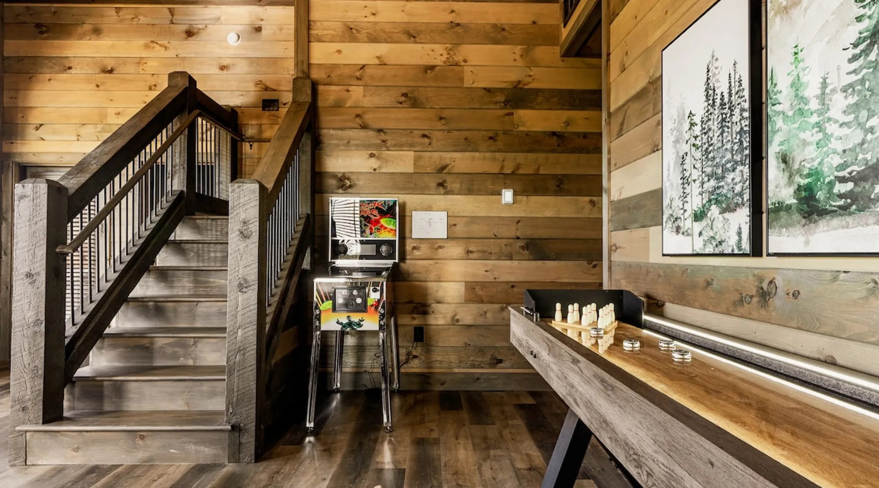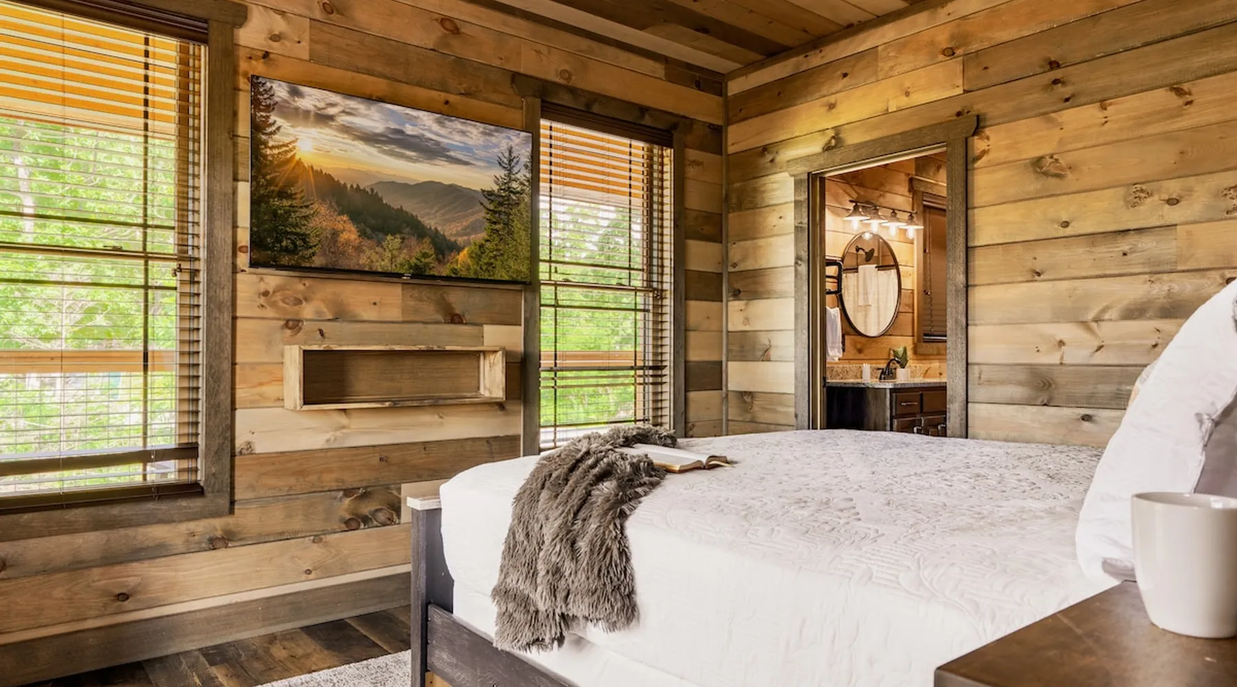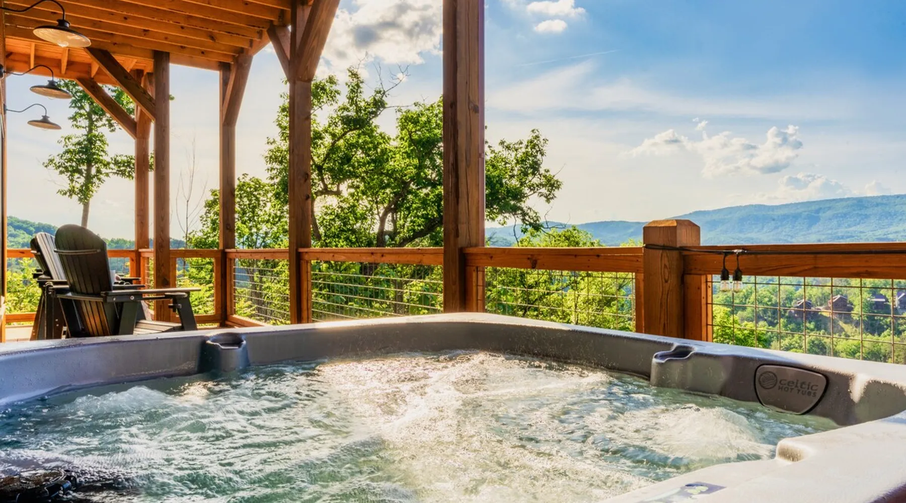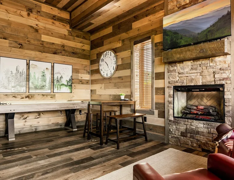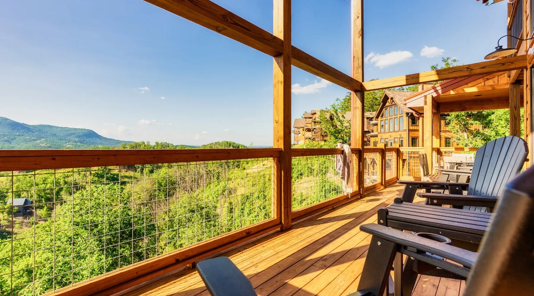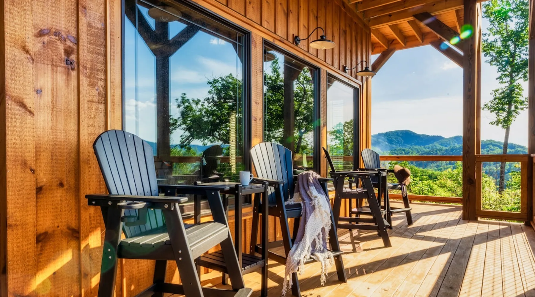 “Bear Mountain Vista” by is a brand new custom built 3-story cabin located in a semi-private setting at the very TOP of our exclusive gated mountain community in the Smokey Mountaints of Tennessee. Located at the end of a cul-de-sac, you will enjoy majestic views from every room! Enjoy the 4 en-suite bedrooms (3 with King beds and 1 with a Queen over Queen adult sized bunk bed), a 6-person hot tub, a fire pit, and even a mini-cabin for the kids, all with views for miles. The space Newly constructed cabin that is ready for occupancy. Perfect for a larger family, multiple small families, or friends who would like to stay and relax together in a custom built comfortable private cabin. OUTDOORS - YOU WILL ENJOY: ★Spectacular view from all decks - the best in our gated community ★Wrap-around covered decks and seating to enjoy the Smoky Mountain air. ★Outdoor fire pit area with Adirondack seating and views ★A mini play-cabin of their own, for the kids ★Outdoor dining table with seating for 6 ★A 6-person hot tub with views, day or night and string lighting INDOORS - YOU WILL ENJOY: ★A 3-Level cabin with a private en-suite bedroom with king beds on each level. ★A private en-suite bedroom with a Queen over Queen bunk bed with spectacular views. ★Plenty of room for groups to spread out indoors and not feel crammed ★Fantastic view from every room. Here is what each level of the home includes: Upper Level- ★ En-suite King bedroom with a private balcony and 55" 4K smartTV ★ En-suite Queen over Queen bunk bed bedroom for adults or kids Main Level- ★ Entry door ★ Well appointed kitchen ★ Dining table with seating for 8 ★ Living Room with Queen sofa bed, 75” 4K smartTV. Dramatic wall of glass for maximum view enjoyment. Vaulted ceiling. Plenty of natural lighting. Electric fireplace. ★ En-suite King bedroom with 55” 4K smartTV. Private bathroom. Deck access from living room and bedroom. ★ Common area bathroom Lower Level- ★ Game Room with shuffleboard/bowling game and digital pinball game. ★ 55” 4K smartTV, recliner chairs, bar table and seating. ★ Theater with comfortable seating for 6 or more with a 75” 4K smartTV. ★ En-suite King bedroom with 55” 4K smartTV, Deck access from game room and bedroom. What's nearby?: ★ Dollywood is 13 miles away. ★The Parkway (the main road of Pigeon Forge), 8 miles ★The quieter entrance of the Great Smoky Mountain National Park (the "Line Springs Rd. entrance") is 11 miles away. It leads to: -Metcalf Bottom scenic picnic area and swimming hole -The scenic and easy-to-get-to Sinks, Meigs, and Spruce Flats Waterwalls in the Summer or Winter -The Townsend Wye, a perfect river tubing and swimming location -Cades Cove Scenic Loop ★17 Miles to Downtown Gatlinburg ★21 Miles to Tuckaleechee Caverns WE WOULD LOVE TO HOST YOU AT OUR LOVELY CABIN! FEEL FREE TO SEND US A MESSAGE WITH ANY QUESTIONS YOU MAY HAVE. Guest access Guest will have access to the entire property, minus an owner's closet and the mechanical room. Other things to note PRIVATE PARKING: Parking for up to 6 cars in the driveway, depending on the size of your vehicles. Driveway is flat. Please do not drive past our driveway onto the gravel footpath. ENTRY: The front door is equipped with an electronic keypad, we will send a personalized door code before check-in. No need to go to a rental office to pick up a key. Check in any time after 4pm EST. Check out is 10am EST. No late check-out or early check-in. If you arrive early or depart late additional charges will incur. INTERNET/CABLE: High Speed Wireless Internet (up to 500Mbps). Do not modify or turn off the internet system of the home. SmartTVs in each of 4 bedrooms, plus 2 in common areas, and 1 in the theater. No cable programing provided due to the multitude of streaming/screen-casting options guests typically have nowadays. BEDROOMS: The 4 bedrooms can accommodate up to 10 adults comfortably. There is 1 queen sofa bed on the main level which can accommodate an additional 2 adults. Maximum weight on each level of the bunk bed is 600 lbs. KITCHEN: Well equipped kitchen with refrigerator, stove, microwave, dishwasher, toaster, blender, food processor, pots, pans, cups, plates, utensils, a regular coffee maker and Keurig machine. LAUNDRY: Stacked washer and dryer, ironing board, and iron AMENITIES: Our cleaning service provides start-up supplies including: paper towels, dish soap, dishwasher soap, kitchen trash can liners, toilet paper, hand soap, shampoo and conditioners, and bathroom trash liners. Depending on the length of your stay, you may need to purchase additional items when the initial supply runs out. GAMES: Digital pinball Shuffleboard/bowling KIDS PLAYHOUSE: Maximum age is 5 years old. SECURITY/HEALTH AND SAFETY: 3 Ring floodlight security cameras with 24-hr video and audio recording at the front and sides of the cabin that record audio/video activity on the driveway, front porch, and all grounds around the home. NO indoor cameras. WATER WELL: Water service to the cabin is from a water well. The water has been tested safe to drink but we recommend guests bring their own bottled water to drink. GUEST CLEANING FEE: The cleaning fee compensates our cleaning team to clean and sanitize a cabin that is left in a fair condition. If heavy or special cleaning is required after your stay, additional fees may apply. Rental Agreement: After booking, you will be prompted to sign a rental agreement, outlining the guidelines and house rules, within 24 hours. We use approved API-connected software, allowing guests to easily sign the agreement. (Airbnb policy: https://www.airbnb.com/help/article/465) Security Deposit: A $300 security deposit hold will be placed 5 days before check-in and released 14 days after check-out, provided no damages are reported. The time it takes for the funds to appear in your account will depend on your bank's processing times. We use approved API-connected software, allowi