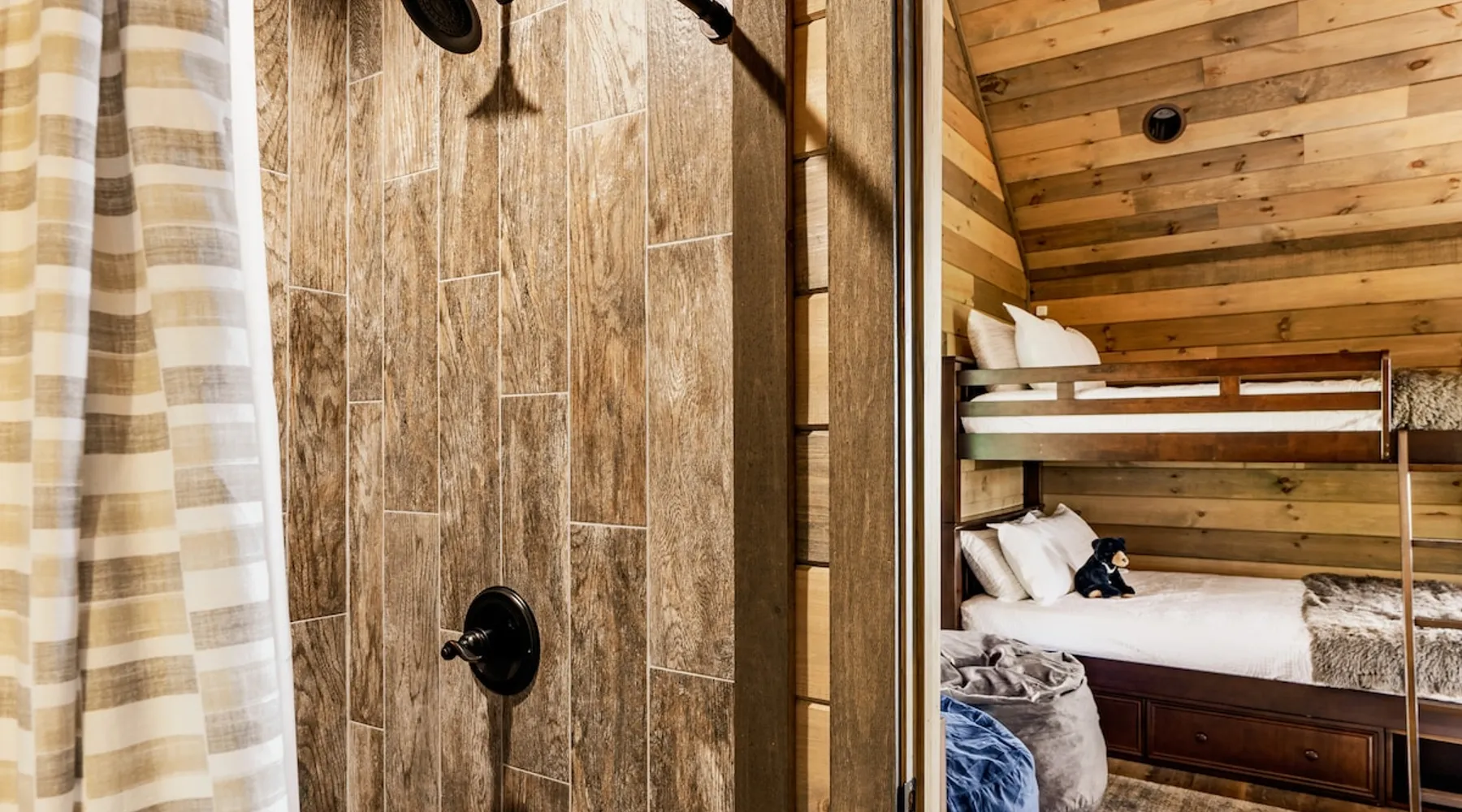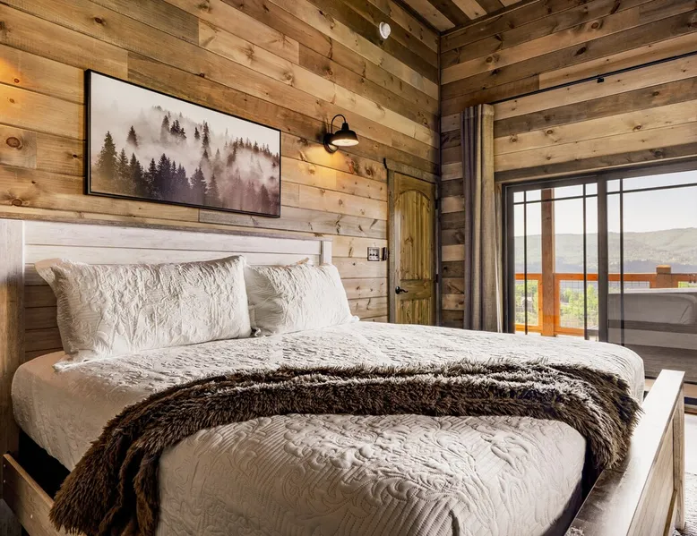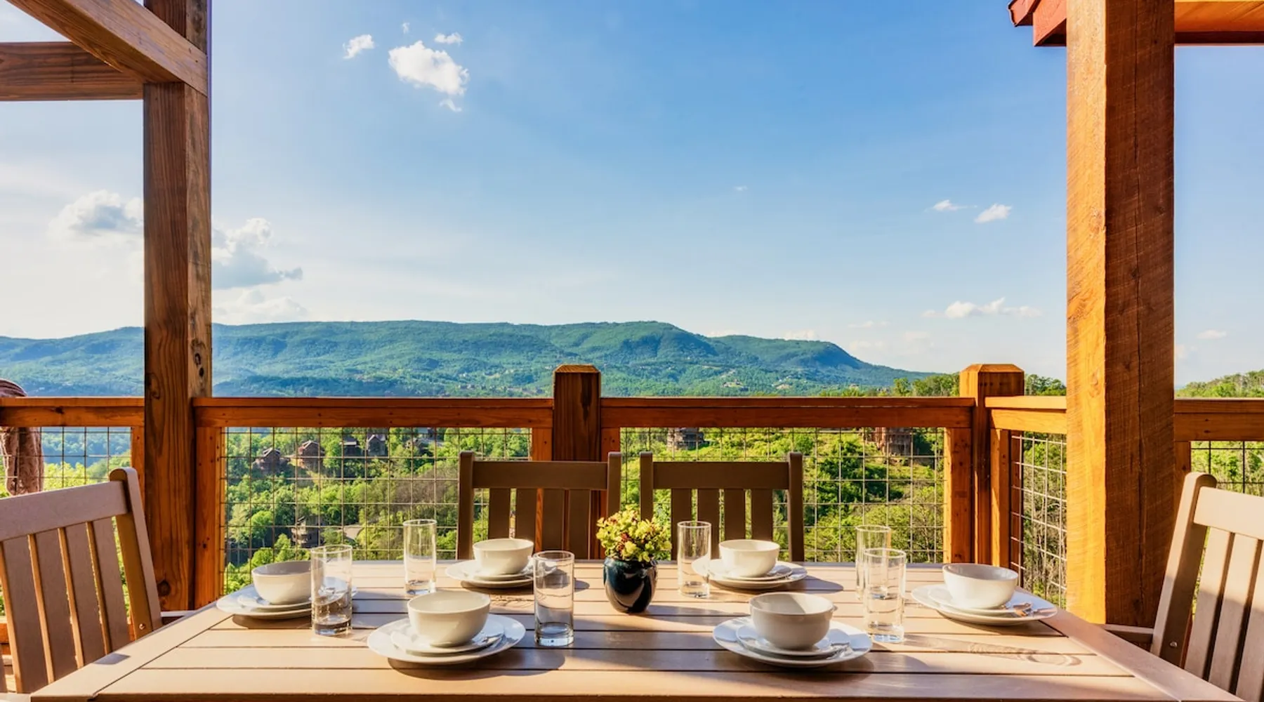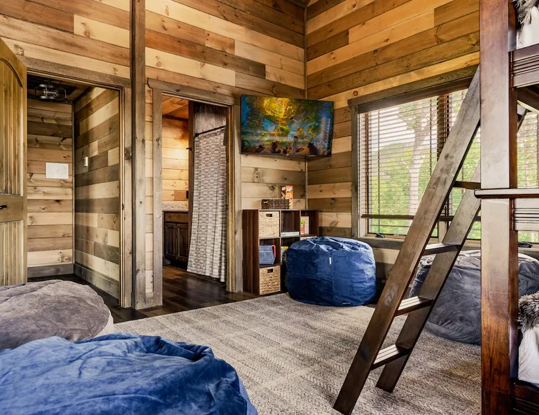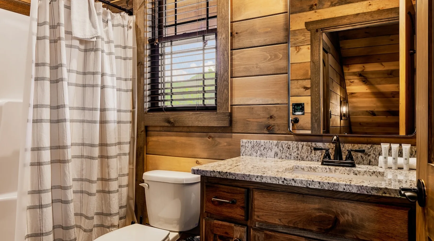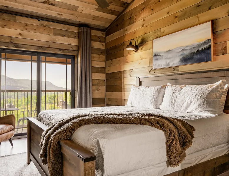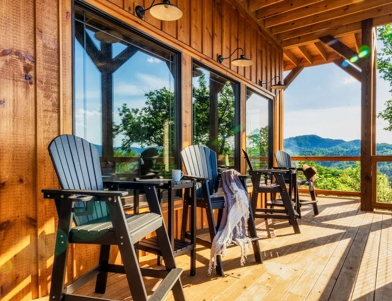 “Bear Mountain Vista” by is a brand new custom built 3-story cabin located in a semi-private setting at the very TOP of our exclusive gated mountain community in the Smokey Mountaints of Tennessee. Located at the end of a cul-de-sac, you will enjoy majestic views from every room! Enjoy the 4 en-suite bedrooms (3 with King beds and 1 with a Queen over Queen adult sized bunk bed), a 6-person hot tub, a fire pit, and even a mini-cabin for the kids, all with views for miles. The space Newly constructed cabin that is ready for occupancy. Perfect for a larger family, multiple small families, or friends who would like to stay and relax together in a custom built comfortable private cabin. OUTDOORS - YOU WILL ENJOY: ★Spectacular view from all decks - the best in our gated community ★Wrap-around covered decks and seating to enjoy the Smoky Mountain air. ★Outdoor fire pit area with Adirondack seating and views ★A mini play-cabin of their own, for the kids ★Outdoor dining table with seating for 6 ★A 6-person hot tub with views, day or night and string lighting INDOORS - YOU WILL ENJOY: ★A 3-Level cabin with a private en-suite bedroom with king beds on each level. ★A private en-suite bedroom with a Queen over Queen bunk bed with spectacular views. ★Plenty of room for groups to spread out indoors and not feel crammed ★Fantastic view from every room. Here is what each level of the home includes: Upper Level- ★ En-suite King bedroom with a private balcony and 55" 4K smartTV ★ En-suite Queen over Queen bunk bed bedroom for adults or kids Main Level- ★ Entry door ★ Well appointed kitchen ★ Dining table with seating for 8 ★ Living Room with Queen sofa bed, 75” 4K smartTV. Dramatic wall of glass for maximum view enjoyment. Vaulted ceiling. Plenty of natural lighting. Electric fireplace. ★ En-suite King bedroom with 55” 4K smartTV. Private bathroom. Deck access from living room and bedroom. ★ Common area bathroom Lower Level- ★ Game Room with shuffleboard/bowling game and digital pinball game. ★ 55” 4K smartTV, recliner chairs, bar table and seating. ★ Theater with comfortable seating for 6 or more with a 75” 4K smartTV. ★ En-suite King bedroom with 55” 4K smartTV, Deck access from game room and bedroom. What's nearby?: ★ Dollywood is 13 miles away. ★The Parkway (the main road of Pigeon Forge), 8 miles ★The quieter entrance of the Great Smoky Mountain National Park (the "Line Springs Rd. entrance") is 11 miles away. It leads to: -Metcalf Bottom scenic picnic area and swimming hole -The scenic and easy-to-get-to Sinks, Meigs, and Spruce Flats Waterwalls in the Summer or Winter -The Townsend Wye, a perfect river tubing and swimming location -Cades Cove Scenic Loop ★17 Miles to Downtown Gatlinburg ★21 Miles to Tuckaleechee Caverns WE WOULD LOVE TO HOST YOU AT OUR LOVELY CABIN! FEEL FREE TO SEND US A MESSAGE WITH ANY QUESTIONS YOU MAY HAVE. Guest access Guest will have access to the entire property, minus an owner's closet and the mechanical room. Other things to note PRIVATE PARKING: Parking for up to 6 cars in the driveway, depending on the size of your vehicles. Driveway is flat. Please do not drive past our driveway onto the gravel footpath. ENTRY: The front door is equipped with an electronic keypad, we will send a personalized door code before check-in. No need to go to a rental office to pick up a key. Check in any time after 4pm EST. Check out is 10am EST. No late check-out or early check-in. If you arrive early or depart late additional charges will incur. INTERNET/CABLE: High Speed Wireless Internet (up to 500Mbps). Do not modify or turn off the internet system of the home. SmartTVs in each of 4 bedrooms, plus 2 in common areas, and 1 in the theater. No cable programing provided due to the multitude of streaming/screen-casting options guests typically have nowadays. BEDROOMS: The 4 bedrooms can accommodate up to 10 adults comfortably. There is 1 queen sofa bed on the main level which can accommodate an additional 2 adults. Maximum weight on each level of the bunk bed is 600 lbs. KITCHEN: Well equipped kitchen with refrigerator, stove, microwave, dishwasher, toaster, blender, food processor, pots, pans, cups, plates, utensils, a regular coffee maker and Keurig machine. LAUNDRY: Stacked washer and dryer, ironing board, and iron AMENITIES: Our cleaning service provides start-up supplies including: paper towels, dish soap, dishwasher soap, kitchen trash can liners, toilet paper, hand soap, shampoo and conditioners, and bathroom trash liners. Depending on the length of your stay, you may need to purchase additional items when the initial supply runs out. GAMES: Digital pinball Shuffleboard/bowling KIDS PLAYHOUSE: Maximum age is 5 years old. SECURITY/HEALTH AND SAFETY: 3 Ring floodlight security cameras with 24-hr video and audio recording at the front and sides of the cabin that record audio/video activity on the driveway, front porch, and all grounds around the home. NO indoor cameras. WATER WELL: Water service to the cabin is from a water well. The water has been tested safe to drink but we recommend guests bring their own bottled water to drink. GUEST CLEANING FEE: The cleaning fee compensates our cleaning team to clean and sanitize a cabin that is left in a fair condition. If heavy or special cleaning is required after your stay, additional fees may apply. Rental Agreement: After booking, you will be prompted to sign a rental agreement, outlining the guidelines and house rules, within 24 hours. We use approved API-connected software, allowing guests to easily sign the agreement. (Airbnb policy: https://www.airbnb.com/help/article/465) Security Deposit: A $300 security deposit hold will be placed 5 days before check-in and released 14 days after check-out, provided no damages are reported. The time it takes for the funds to appear in your account will depend on your bank's processing times. We use approved API-connected software, allowi