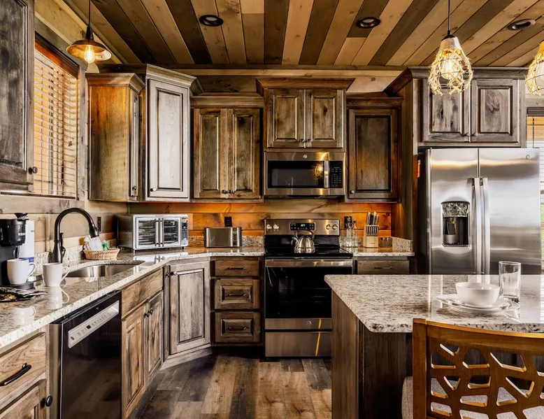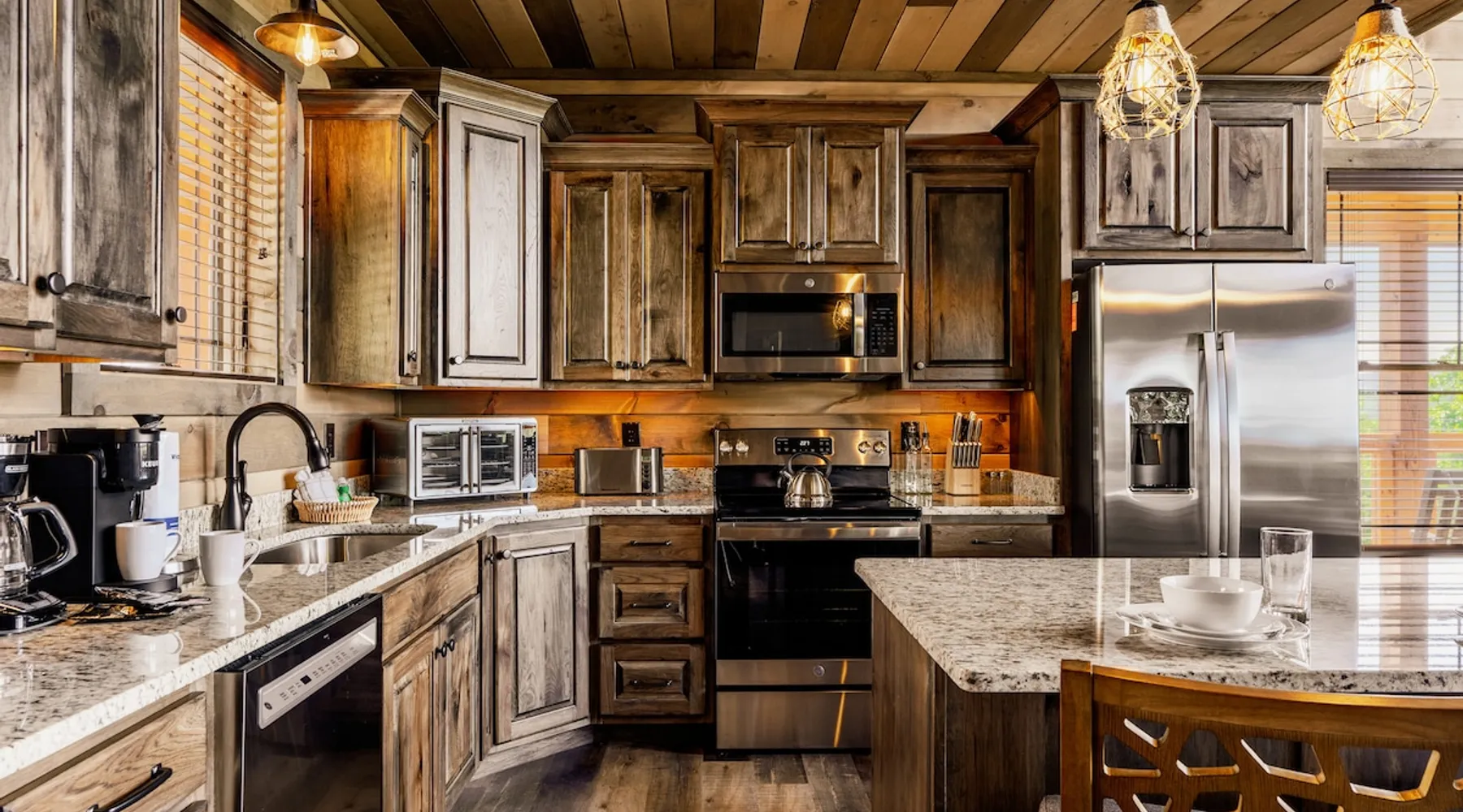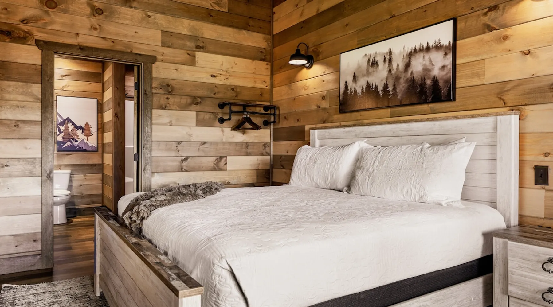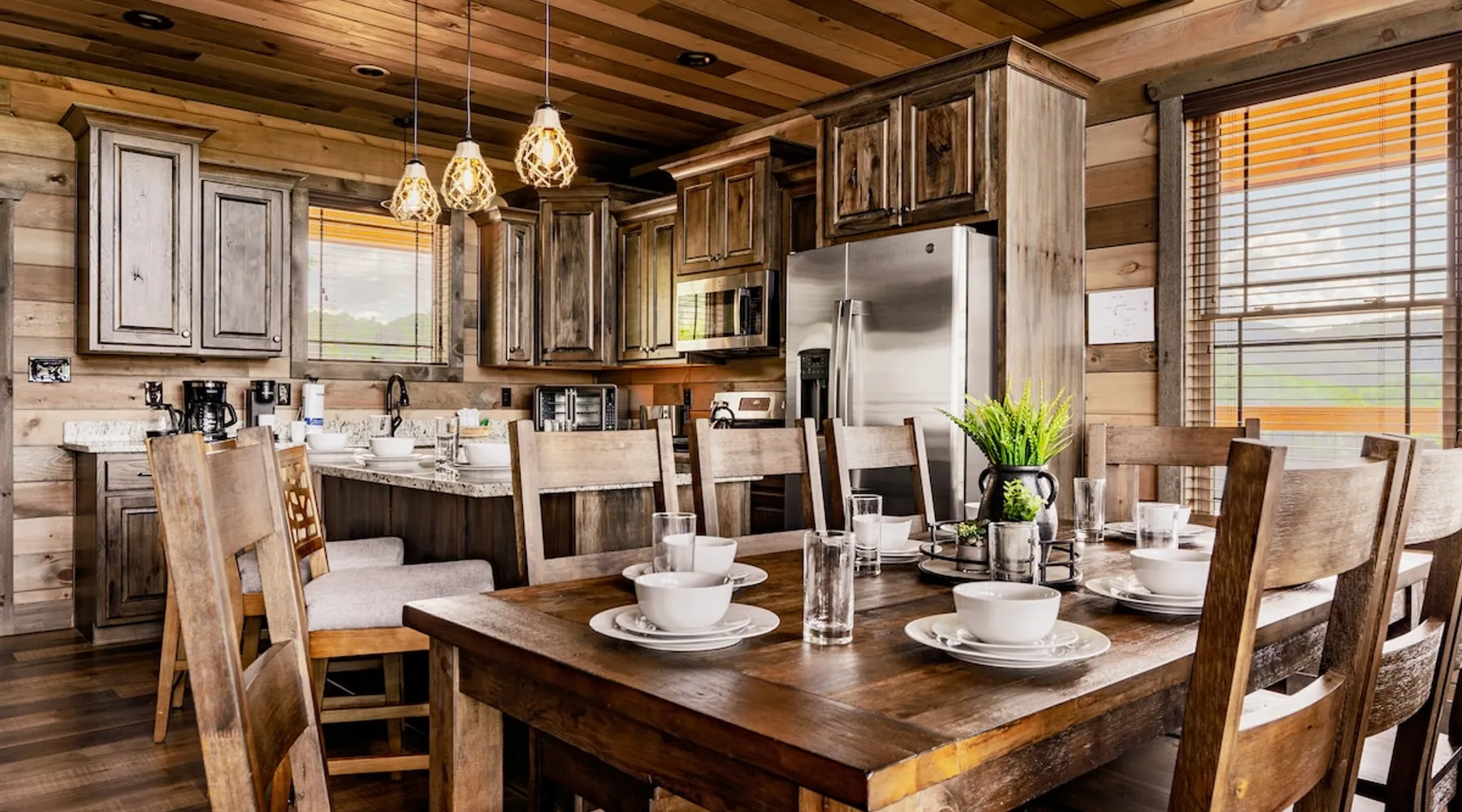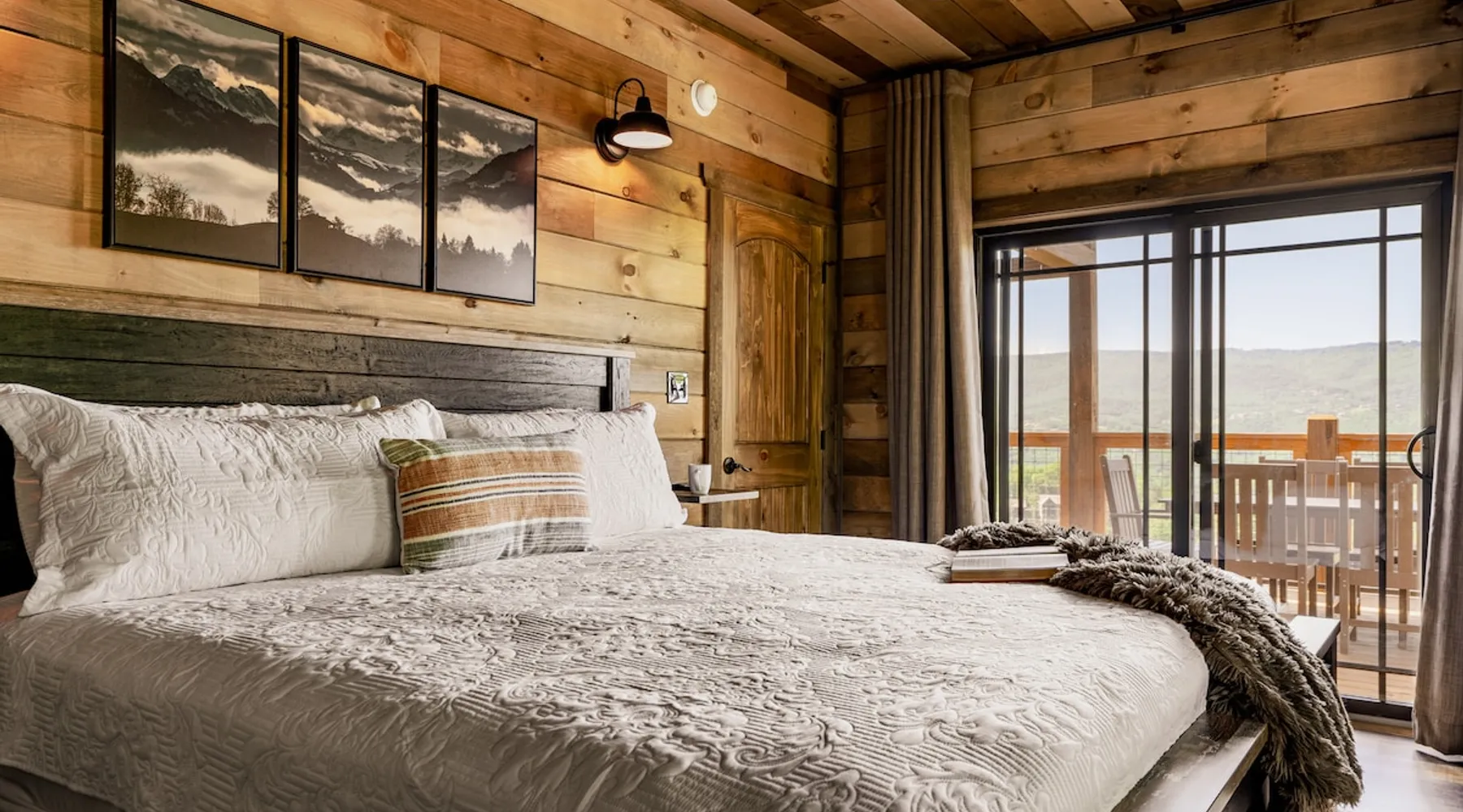 “Bear Mountain Vista” by is a brand new custom built 3-story cabin located in a semi-private setting at the very TOP of our exclusive gated mountain community in the Smokey Mountaints of Tennessee. Located at the end of a cul-de-sac, you will enjoy majestic views from every room! Enjoy the 4 en-suite bedrooms (3 with King beds and 1 with a Queen over Queen adult sized bunk bed), a 6-person hot tub, a fire pit, and even a mini-cabin for the kids, all with views for miles. The space Newly constructed cabin that is ready for occupancy. Perfect for a larger family, multiple small families, or friends who would like to stay and relax together in a custom built comfortable private cabin. OUTDOORS - YOU WILL ENJOY: ★Spectacular view from all decks - the best in our gated community ★Wrap-around covered decks and seating to enjoy the Smoky Mountain air. ★Outdoor fire pit area with Adirondack seating and views ★A mini play-cabin of their own, for the kids ★Outdoor dining table with seating for 6 ★A 6-person hot tub with views, day or night and string lighting INDOORS - YOU WILL ENJOY: ★A 3-Level cabin with a private en-suite bedroom with king beds on each level. ★A private en-suite bedroom with a Queen over Queen bunk bed with spectacular views. ★Plenty of room for groups to spread out indoors and not feel crammed ★Fantastic view from every room. Here is what each level of the home includes: Upper Level- ★ En-suite King bedroom with a private balcony and 55" 4K smartTV ★ En-suite Queen over Queen bunk bed bedroom for adults or kids Main Level- ★ Entry door ★ Well appointed kitchen ★ Dining table with seating for 8 ★ Living Room with Queen sofa bed, 75” 4K smartTV. Dramatic wall of glass for maximum view enjoyment. Vaulted ceiling. Plenty of natural lighting. Electric fireplace. ★ En-suite King bedroom with 55” 4K smartTV. Private bathroom. Deck access from living room and bedroom. ★ Common area bathroom Lower Level- ★ Game Room with shuffleboard/bowling game and digital pinball game. ★ 55” 4K smartTV, recliner chairs, bar table and seating. ★ Theater with comfortable seating for 6 or more with a 75” 4K smartTV. ★ En-suite King bedroom with 55” 4K smartTV, Deck access from game room and bedroom. What's nearby?: ★ Dollywood is 13 miles away. ★The Parkway (the main road of Pigeon Forge), 8 miles ★The quieter entrance of the Great Smoky Mountain National Park (the "Line Springs Rd. entrance") is 11 miles away. It leads to: -Metcalf Bottom scenic picnic area and swimming hole -The scenic and easy-to-get-to Sinks, Meigs, and Spruce Flats Waterwalls in the Summer or Winter -The Townsend Wye, a perfect river tubing and swimming location -Cades Cove Scenic Loop ★17 Miles to Downtown Gatlinburg ★21 Miles to Tuckaleechee Caverns WE WOULD LOVE TO HOST YOU AT OUR LOVELY CABIN! FEEL FREE TO SEND US A MESSAGE WITH ANY QUESTIONS YOU MAY HAVE. Guest access Guest will have access to the entire property, minus an owner's closet and the mechanical room. Other things to note PRIVATE PARKING: Parking for up to 6 cars in the driveway, depending on the size of your vehicles. Driveway is flat. Please do not drive past our driveway onto the gravel footpath. ENTRY: The front door is equipped with an electronic keypad, we will send a personalized door code before check-in. No need to go to a rental office to pick up a key. Check in any time after 4pm EST. Check out is 10am EST. No late check-out or early check-in. If you arrive early or depart late additional charges will incur. INTERNET/CABLE: High Speed Wireless Internet (up to 500Mbps). Do not modify or turn off the internet system of the home. SmartTVs in each of 4 bedrooms, plus 2 in common areas, and 1 in the theater. No cable programing provided due to the multitude of streaming/screen-casting options guests typically have nowadays. BEDROOMS: The 4 bedrooms can accommodate up to 10 adults comfortably. There is 1 queen sofa bed on the main level which can accommodate an additional 2 adults. Maximum weight on each level of the bunk bed is 600 lbs. KITCHEN: Well equipped kitchen with refrigerator, stove, microwave, dishwasher, toaster, blender, food processor, pots, pans, cups, plates, utensils, a regular coffee maker and Keurig machine. LAUNDRY: Stacked washer and dryer, ironing board, and iron AMENITIES: Our cleaning service provides start-up supplies including: paper towels, dish soap, dishwasher soap, kitchen trash can liners, toilet paper, hand soap, shampoo and conditioners, and bathroom trash liners. Depending on the length of your stay, you may need to purchase additional items when the initial supply runs out. GAMES: Digital pinball Shuffleboard/bowling KIDS PLAYHOUSE: Maximum age is 5 years old. SECURITY/HEALTH AND SAFETY: 3 Ring floodlight security cameras with 24-hr video and audio recording at the front and sides of the cabin that record audio/video activity on the driveway, front porch, and all grounds around the home. NO indoor cameras. WATER WELL: Water service to the cabin is from a water well. The water has been tested safe to drink but we recommend guests bring their own bottled water to drink. GUEST CLEANING FEE: The cleaning fee compensates our cleaning team to clean and sanitize a cabin that is left in a fair condition. If heavy or special cleaning is required after your stay, additional fees may apply. Rental Agreement: After booking, you will be prompted to sign a rental agreement, outlining the guidelines and house rules, within 24 hours. We use approved API-connected software, allowing guests to easily sign the agreement. (Airbnb policy: https://www.airbnb.com/help/article/465) Security Deposit: A $300 security deposit hold will be placed 5 days before check-in and released 14 days after check-out, provided no damages are reported. The time it takes for the funds to appear in your account will depend on your bank's processing times. We use approved API-connected software, allowi