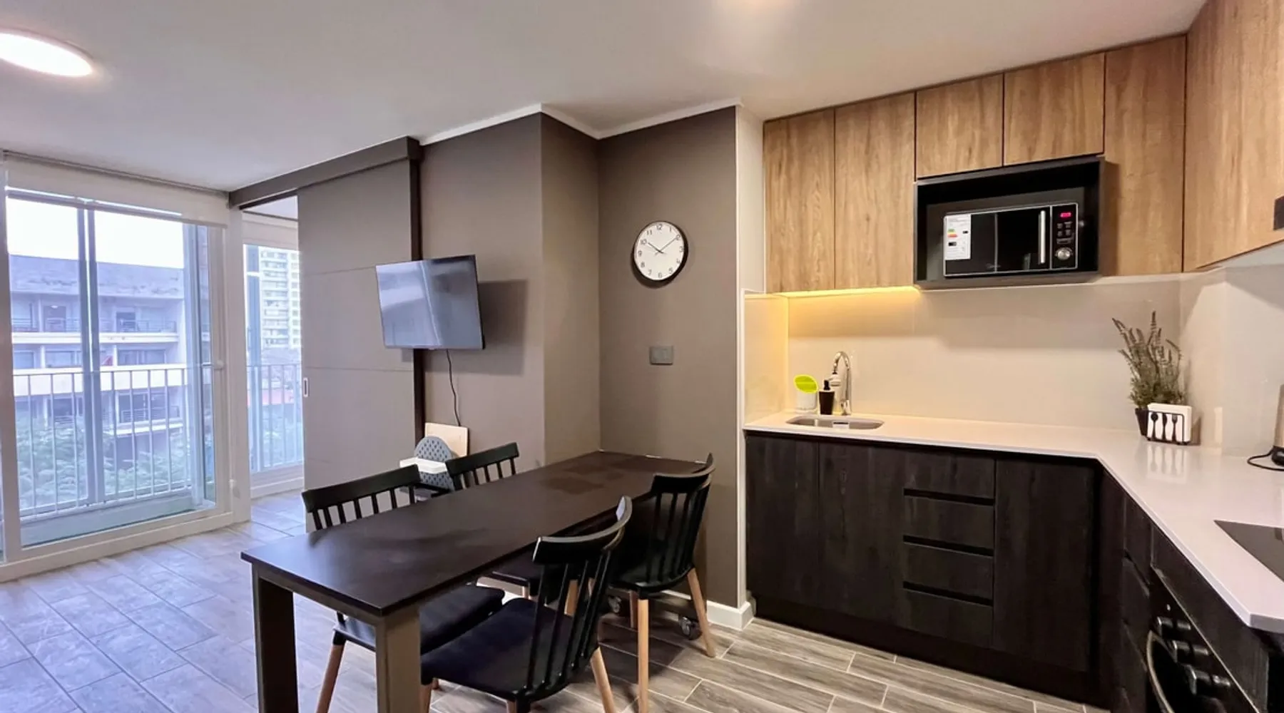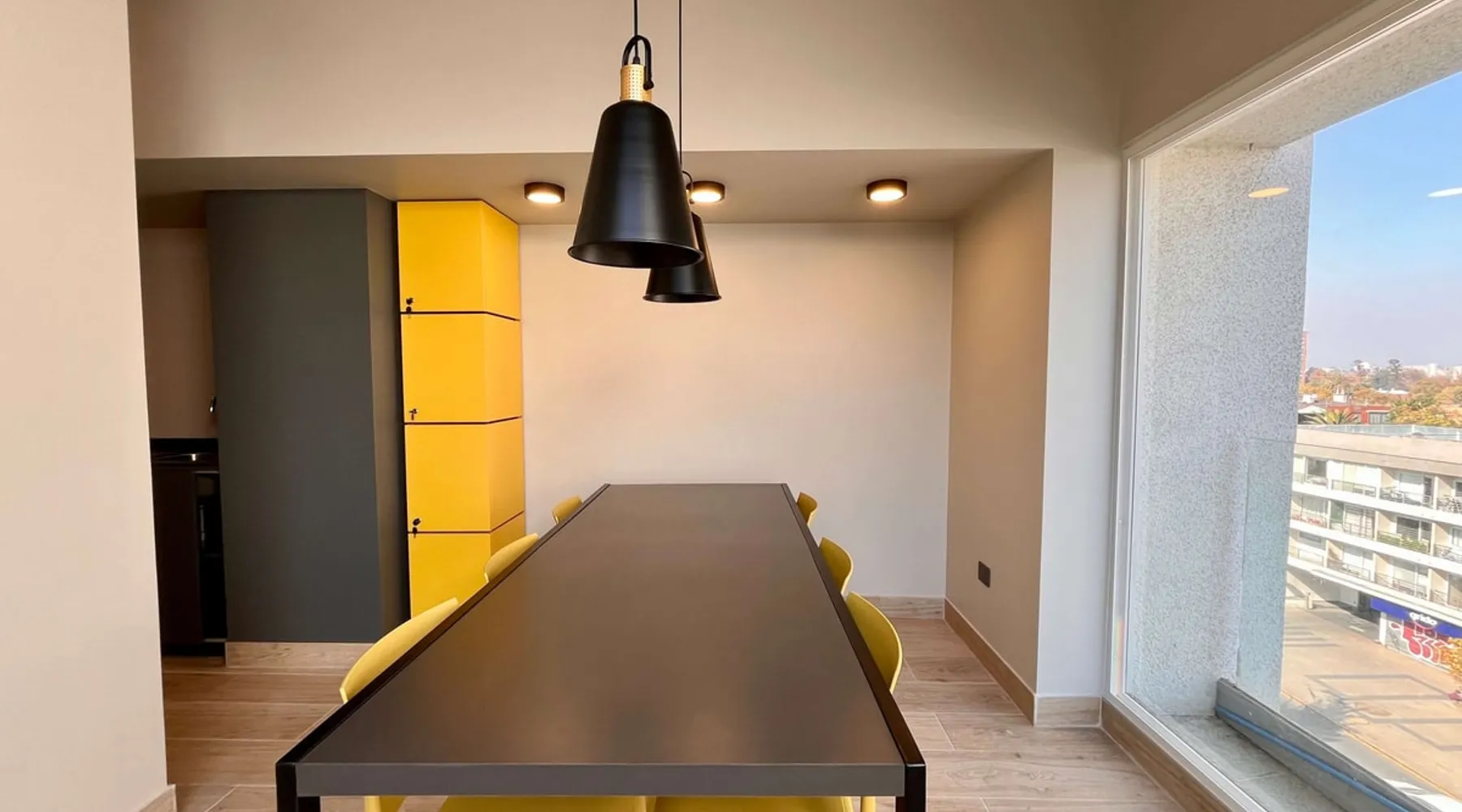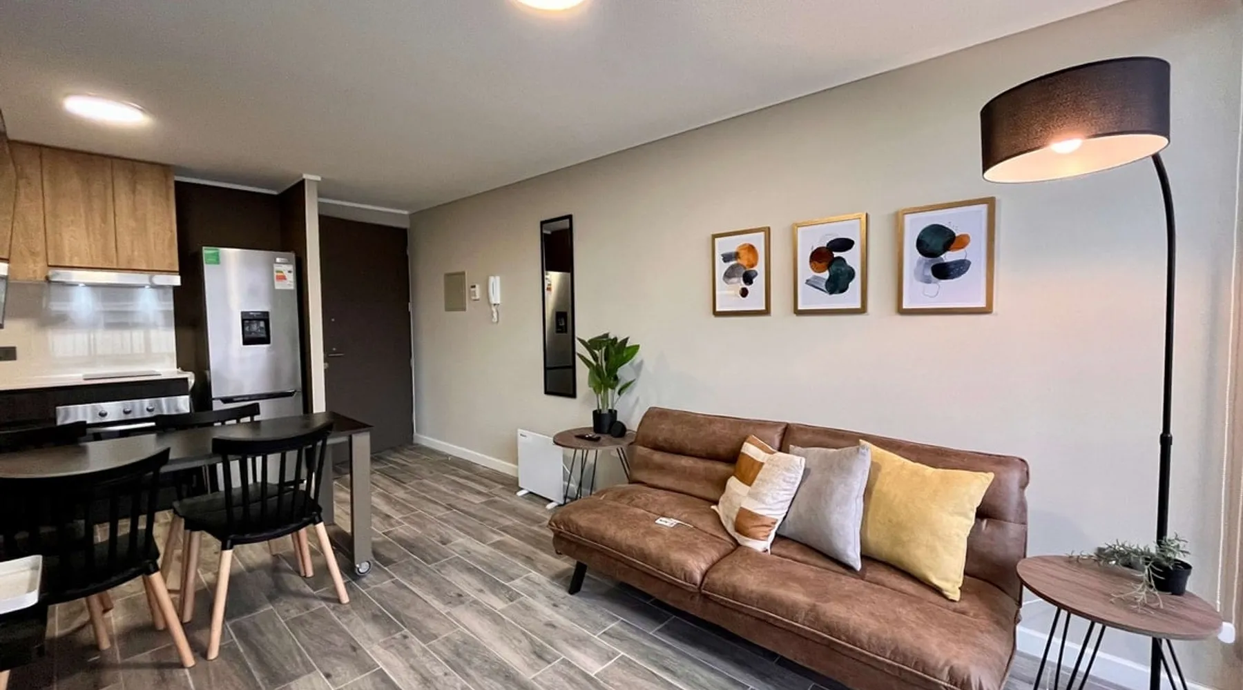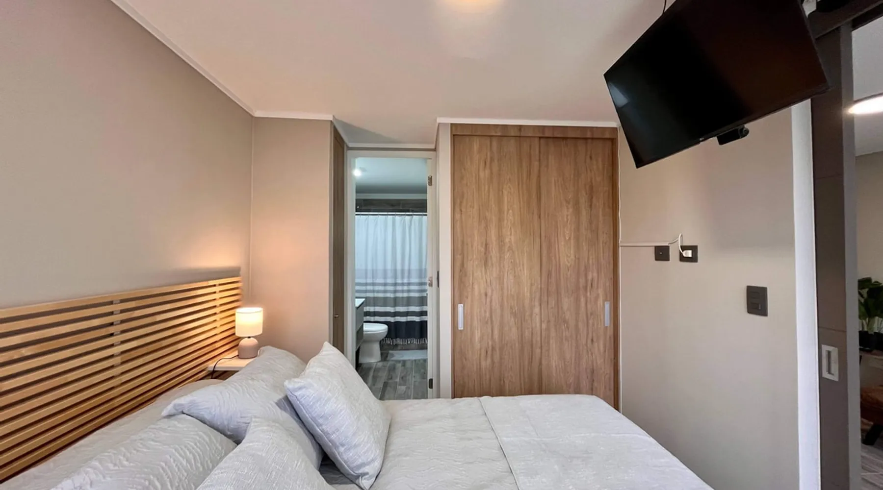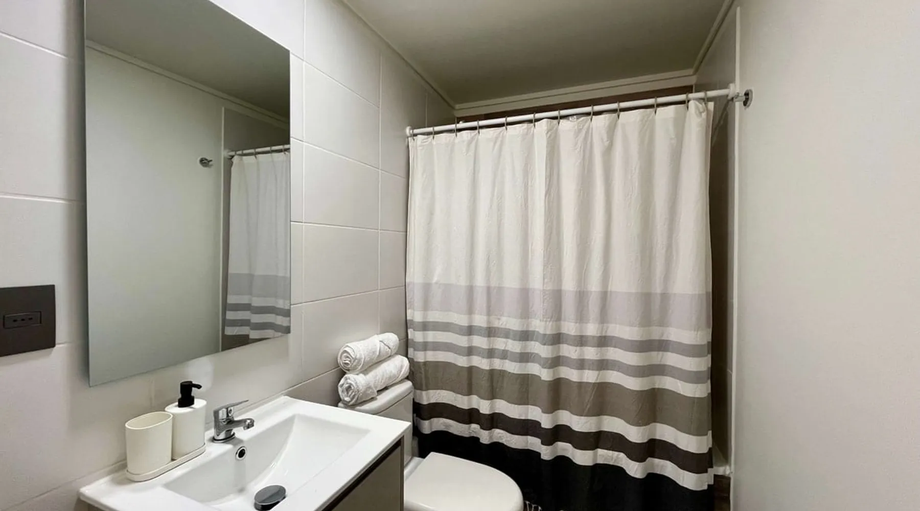 Charming and modern apartment just two blocks from the Ñuñoa metro (Line 3 and 6), two blocks from the metro Monseñor Eyzaguirre (Linea 3) and a 15min walk from the National Stadium. The space Master bedroom with double bed and indoor bathroom that provides privacy and convenience. It has 32'Smart TV with motorized base from the roof. Open kitchen, equipped with everything you need. And cozy living room with comfortable sofa bed to enjoy a movie night on the 32'Smart TV. In addition, you have free and safe parking, and your small pets are welcome! Other things to note The building has a pet bathing station, bikes, co-work room, and a beautiful terrace that you can enjoy. No parties, disturbing noises, or bringing visitors for condominium provisions and rules.