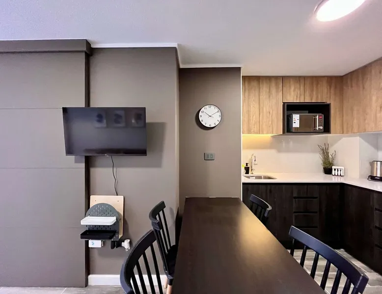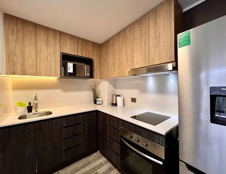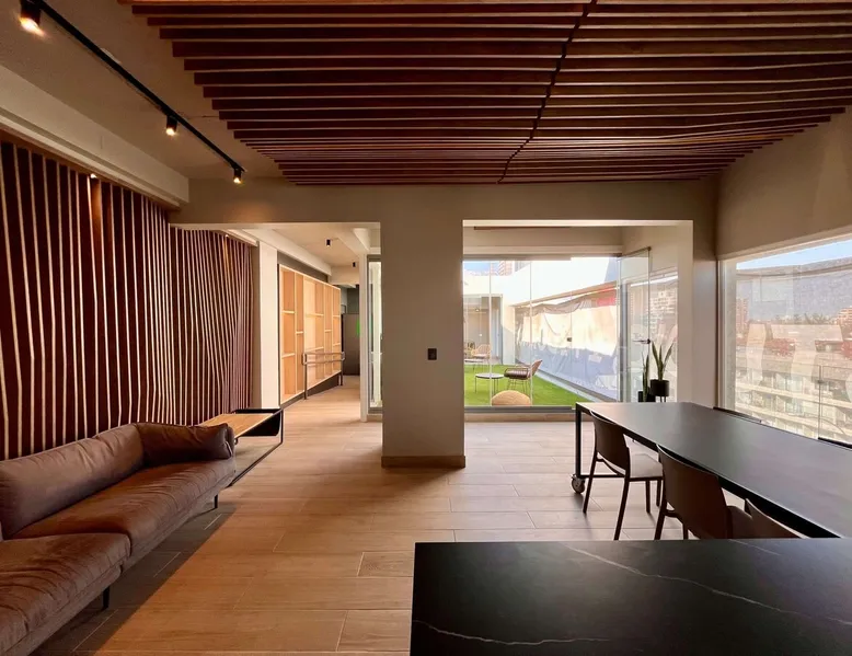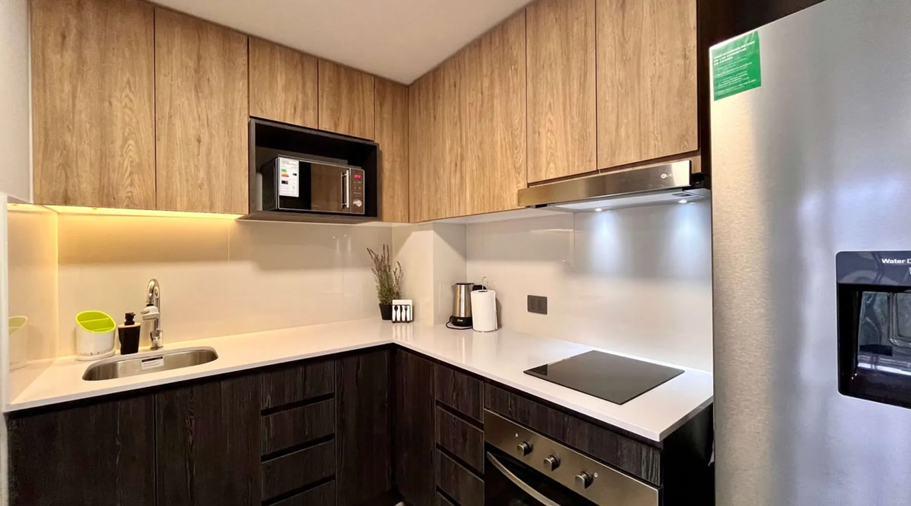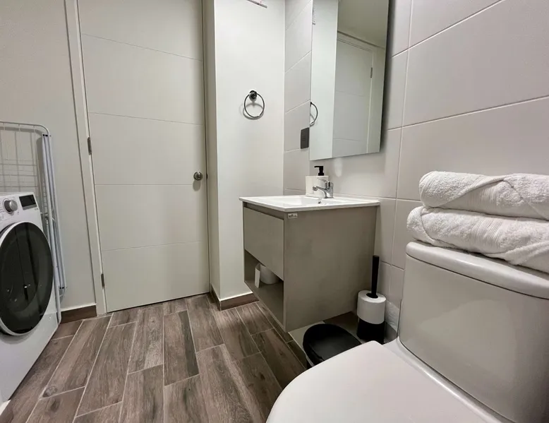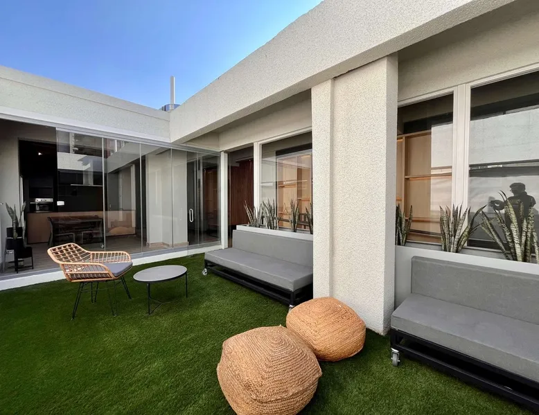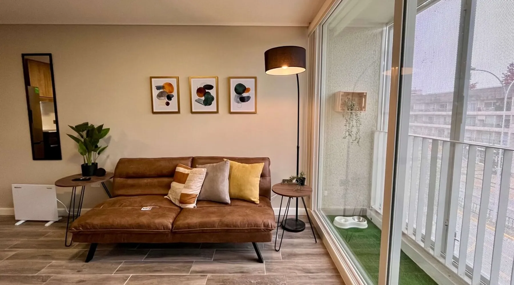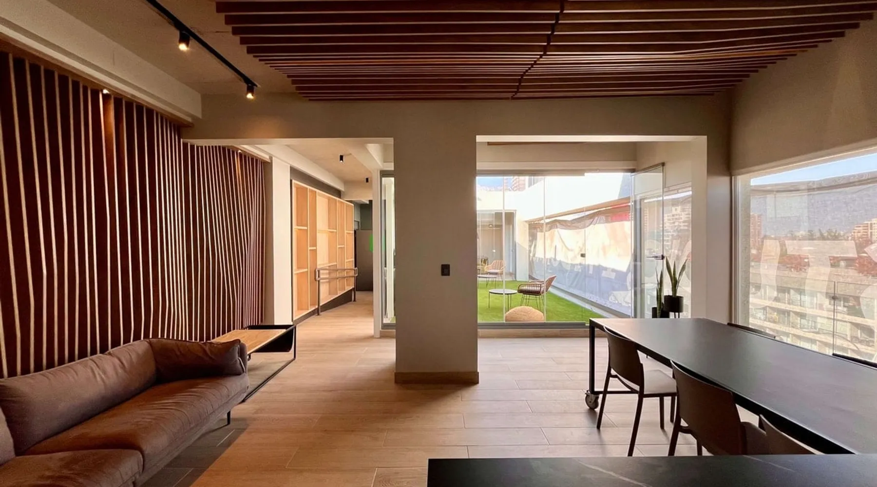 Charming and modern apartment just two blocks from the Ñuñoa metro (Line 3 and 6), two blocks from the metro Monseñor Eyzaguirre (Linea 3) and a 15min walk from the National Stadium. The space Master bedroom with double bed and indoor bathroom that provides privacy and convenience. It has 32'Smart TV with motorized base from the roof. Open kitchen, equipped with everything you need. And cozy living room with comfortable sofa bed to enjoy a movie night on the 32'Smart TV. In addition, you have free and safe parking, and your small pets are welcome! Other things to note The building has a pet bathing station, bikes, co-work room, and a beautiful terrace that you can enjoy. No parties, disturbing noises, or bringing visitors for condominium provisions and rules.