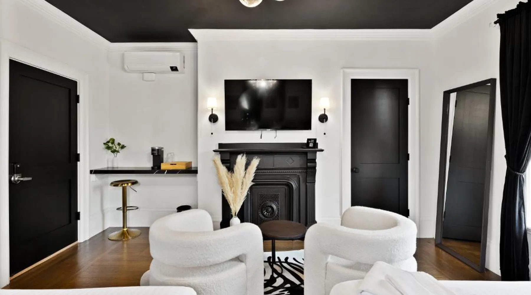 Comfortable Accommodations: The Coach House in Salem offers rooms with air-conditioning, private bathrooms, and free WiFi. Each room includes bathrobes, a tea and coffee maker, and a TV. Convenient Facilities: Guests benefit from free on-site private parking, concierge service, and full-day security. Additional amenities include a fireplace, refrigerator, and seating area. Prime Location: Located 13 mi from Logan Airport, the hotel is a short walk from Glendale Cove Beach and near the Peabody Essex Museum (1.1 mi). Other attractions include The House of the Seven Gables (1.3 mi) and Old North Church (16 mi). Guest Satisfaction: Highly rated for room cleanliness, comfort, and concierge service. The air-conditioned suite has 1 bedroom and 1 bathroom with a shower and a hairdryer. This suite features a tea and coffee maker, a wardrobe and a flat-screen TV with streaming services. The unit has 1 bed.