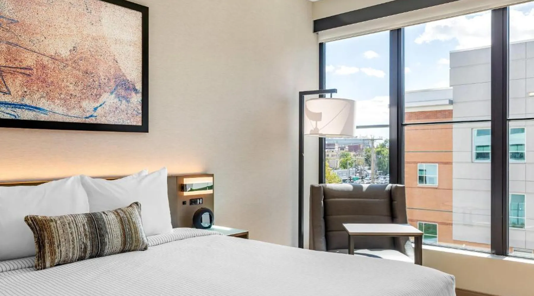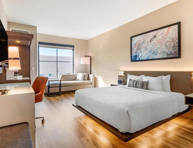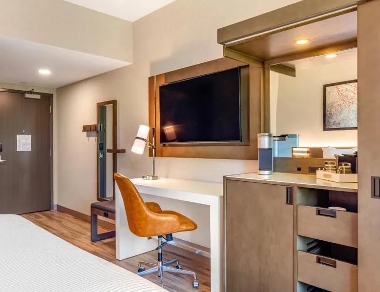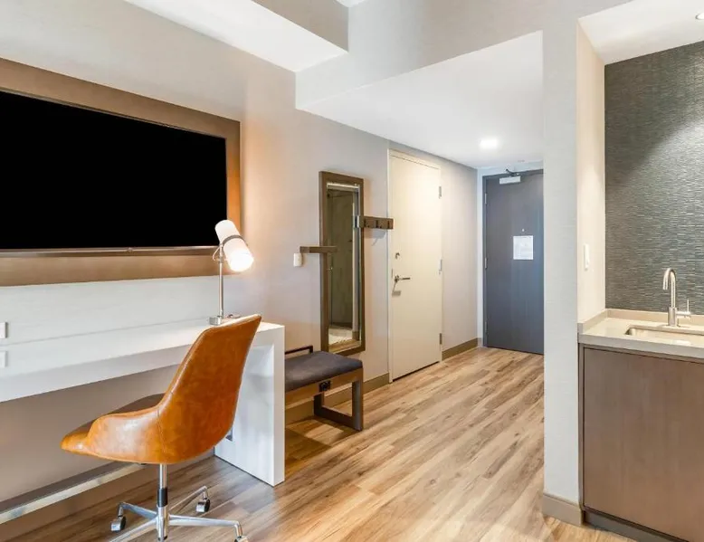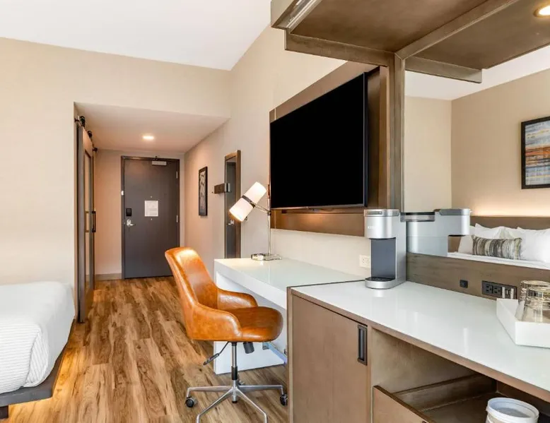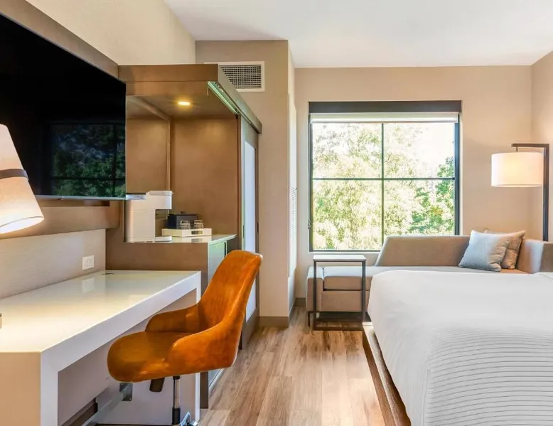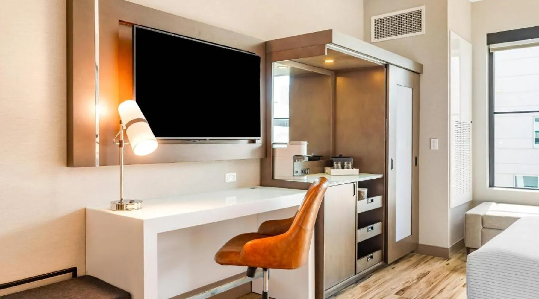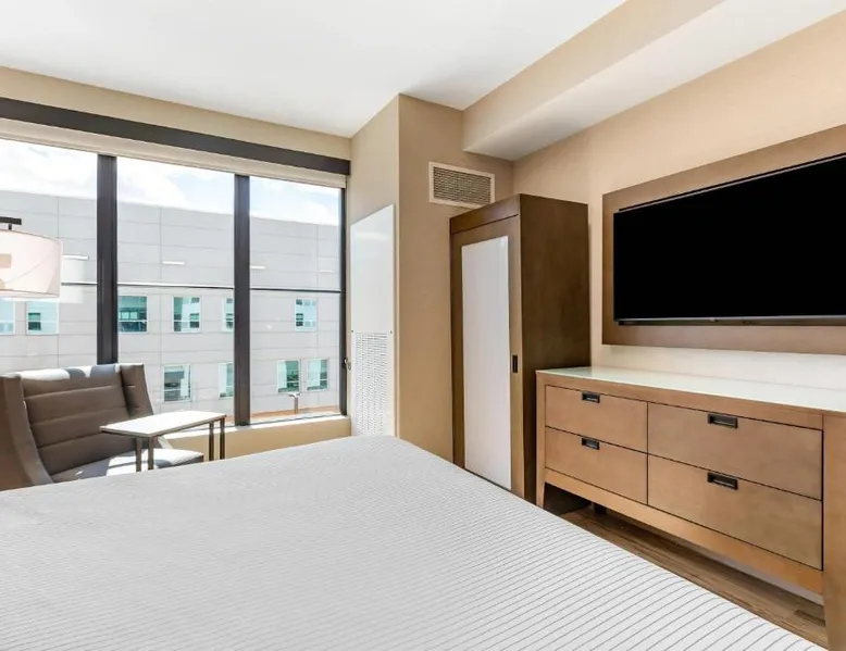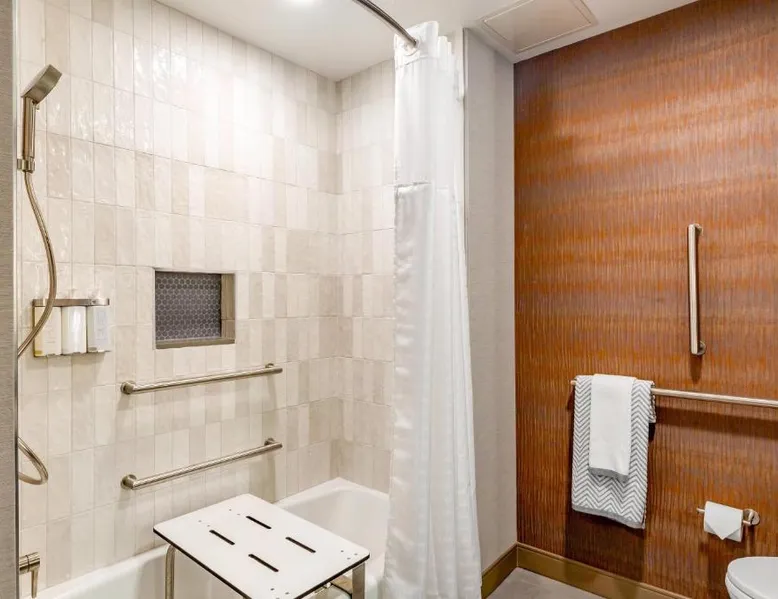Comfortable Accommodations: Rooms feature air-conditioning, private bathrooms, tea and coffee makers, hairdryers, free toiletries, work desks, and parquet floors. Guests appreciate the room cleanliness and comfort. Dining and Leisure: The hotel offers an American restaurant, bar, and fitness center. Free WiFi is available throughout the property. Additional facilities include a lounge, fitness room, elevator, 24-hour front desk, minimarket, business area, and meeting rooms. Convenient Location: Located in New Haven, the hotel is 4.3 mi from Tweed-New Haven Airport. Nearby attractions include Yale University (13-minute walk), City Hall (1.1 mi), and The Yale Bowl (1.9 mi). Highly rated for its convenient location. The spacious double room provides air conditioning, a tea and coffee maker, as well as a private bathroom featuring a bath or a shower and a hairdryer. This double room features parquet floors, heating and a flat-screen TV with cable channels. The unit offers 1 bed.