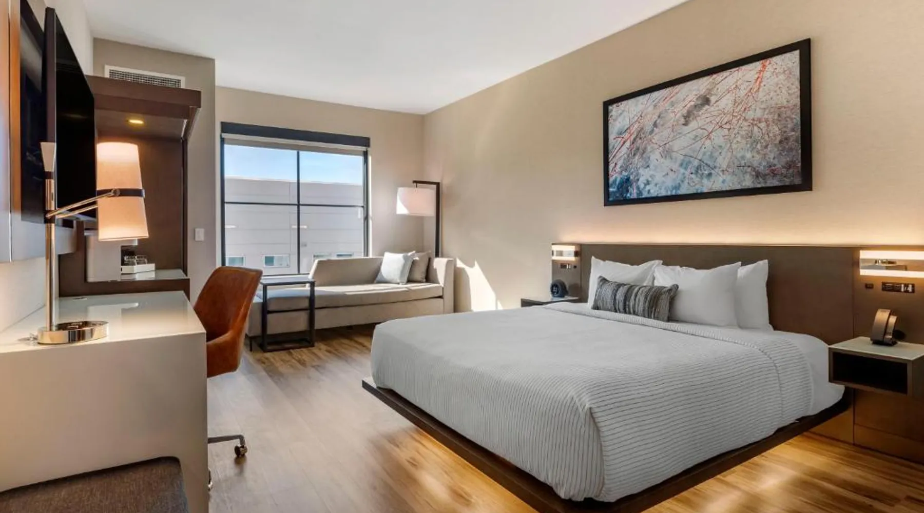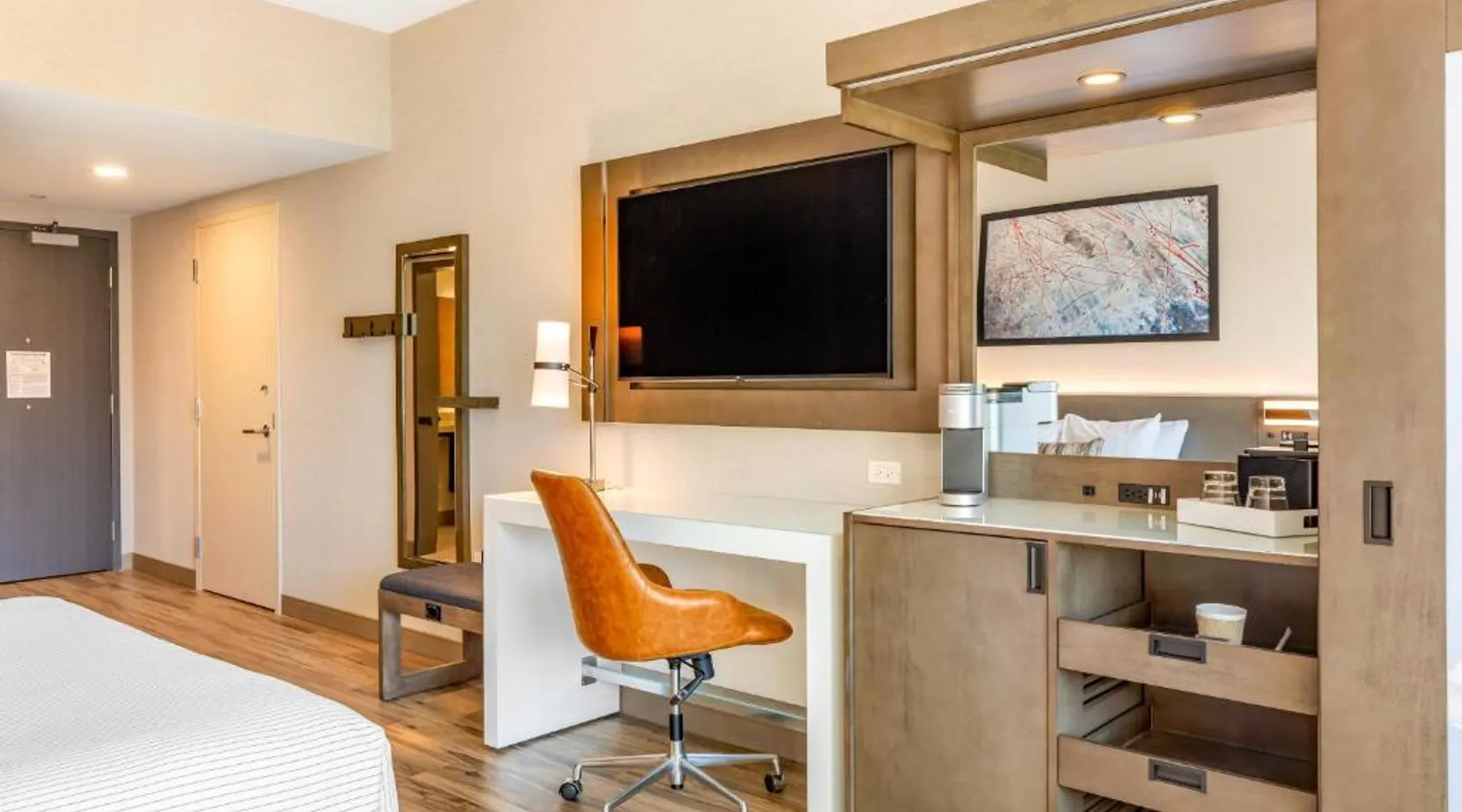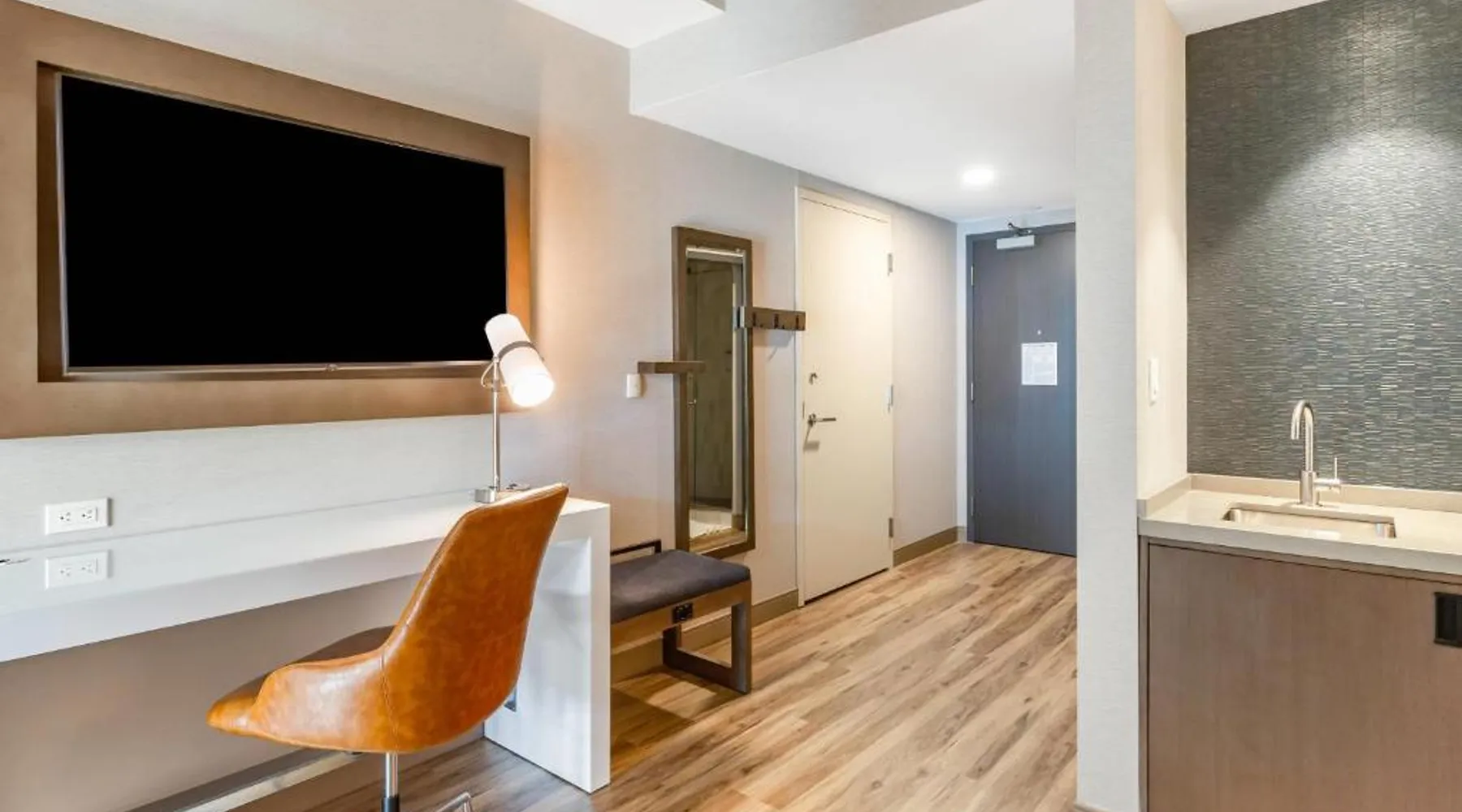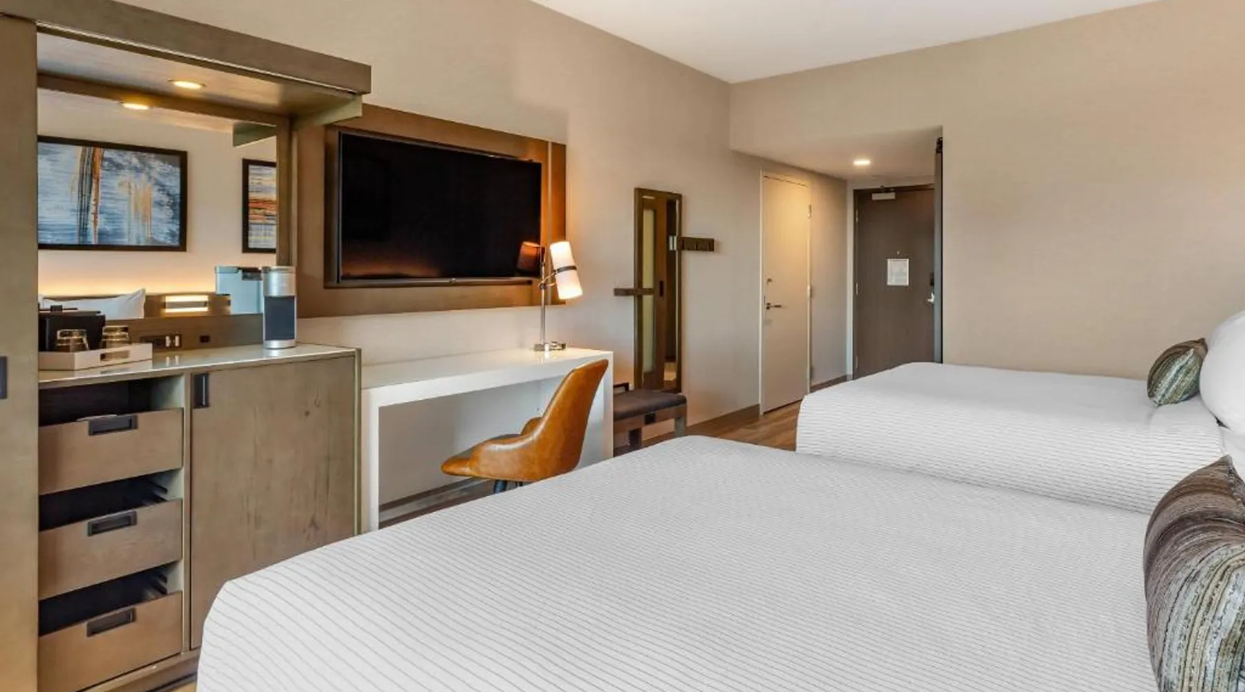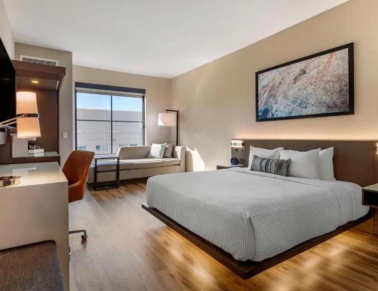 Comfortable Accommodations: Rooms feature air-conditioning, private bathrooms, tea and coffee makers, hairdryers, free toiletries, work desks, and parquet floors. Guests appreciate the room cleanliness and comfort. Dining and Leisure: The hotel offers an American restaurant, bar, and fitness center. Free WiFi is available throughout the property. Additional facilities include a lounge, fitness room, elevator, 24-hour front desk, minimarket, business area, and meeting rooms. Convenient Location: Located in New Haven, the hotel is 4.3 mi from Tweed-New Haven Airport. Nearby attractions include Yale University (13-minute walk), City Hall (1.1 mi), and The Yale Bowl (1.9 mi). Highly rated for its convenient location. The spacious double room provides air conditioning, a tea and coffee maker, as well as a private bathroom featuring a bath or a shower and a hairdryer. This double room features parquet floors, heating and a flat-screen TV with cable channels. The unit offers 1 bed.