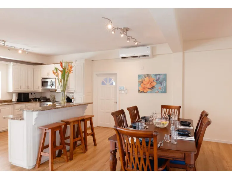 Relax in luxury at Oasis at Villa Bonne Terre. This Ground Level Apartment offers a saltwater swimming pool, sauna, yoga room, and a game room with complimentary snacks. Enjoy breathtaking views of Rodney Bay Marina, with shops, restaurants, and bars just steps away for a perfect blend of relaxation and entertainment. See all our airbnb listings here: www.airbnb.com/p/ovbtslu The space Our villa consists of two fully air conditioned luxury apartments, on the Upper and Ground Levels, available to rent separately or together. The Upper Level Apartment boasts four ensuite bedrooms and an outdoor balcony with expansive sea views. The Ground Level Apartment has four bedrooms, three bathrooms and a large main deck leading to the villa’s saltwater pool. Both apartments also feature spacious living and dining rooms, fully equipped kitchens and laundry rooms. By the pool, guests will also find a hot tub, a sauna and yoga room and a game room. See all our airbnb listings here: www.airbnb.com/p/ovbtslu Guest access Our villa has a gated private entrance to our driveway and parking. Each apartment also has its own separate entry door with keypad locks. Other things to note As part of your reservation, we've included a rental agreement that outlines key details such as deposit requirements and other essential terms of your stay. We strongly encourage you to read this agreement thoroughly to ensure a smooth and enjoyable experience at our property. If you have any questions or need further clarification on any points, please feel free to contact us.