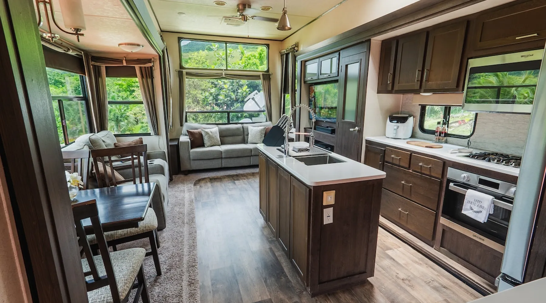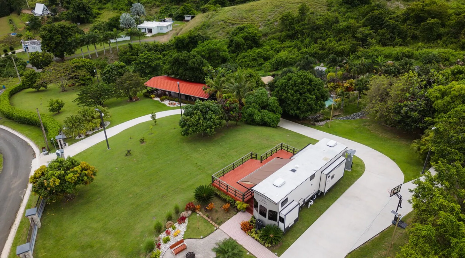 Ullasa is a trailer retreat perched above the mountains of Aibonito. You’ll treasure your time at this memorable place. It's the perfect place to relax in private with the whole family and enjoy swimming in the pool, basketball, outdoor fire pit, or pool table. Outdoor kitchen (Fogon) with a flat grill great for cooking while entertaining and enjoying stunning views. It has a beautiful deck that is great for enjoying the evenings and a large patio with a gazebo that affords gorgeous sunsets. The space A beautiful Villa Grand RV will make you feel at home. It is prepared for family enjoyment and fully equipped to accommodate up to 5 guests. It features one main bedroom with a queen-sized bed and cozy sleeping arrangements, a guest bedroom with three twin beds (low ceiling + stairs), and one bath with a stand-up shower. Two mini-split a/c units, a living room with an intelligent high-definition TV and comfortable furnishings, a fully equipped kitchen, a dining area, a wooden deck with stunning mountain views, salted heated pool basketball area, gazebo with seating hammocks and many more amenities. The camper has LED film lights on top of the sliding that you can control through the control panel and exterior lights on the deck. This property has a power generator. Guest access Our cozy trailer is entirely private and exclusive for our guests. Other things to note [DISCLAIMERS] - No smoking in or outside of this home. Subject to a $500 fine. - Occupancy and noise limits are vigorously enforced. Subject to fines that can reach up to $1,000 per violation. - Lost Keys replacement fee of $300 - All cancellation policies are respected, for any dispute you must contact Airbnb. Any damages to our home will incur additional charges. - Lost Towels or Damage Towels by Makeup or other stains - Damage or missing bed sheet sets Due to the recent atmospheric events that our island has suffered: power, water and internet outages may occur unexpectedly from time to time. Unfortunately, this situation is beyond our hands, and we’re not held responsible for the inconveniences this may cause during your stay. This property does NOT have a cistern. The power generator is located next to the exit gate. This property is available for corporate rentals, contact us for more information. *Additional Information / Fees Apply: If you'd like, we can pre-provision the house before guests arrive. A service charge of 20% will be added to the total shopping bill. Other services: - Travel arrangements available/Airline Tickets - Car Rentals - Charters - Private Transportation - Private Tours - Event Planning - Private Chef Services - Private Dinners - Masseuse - Fitness Trainer - Yoga Instructor For more information visit our website: The Reserve PR
